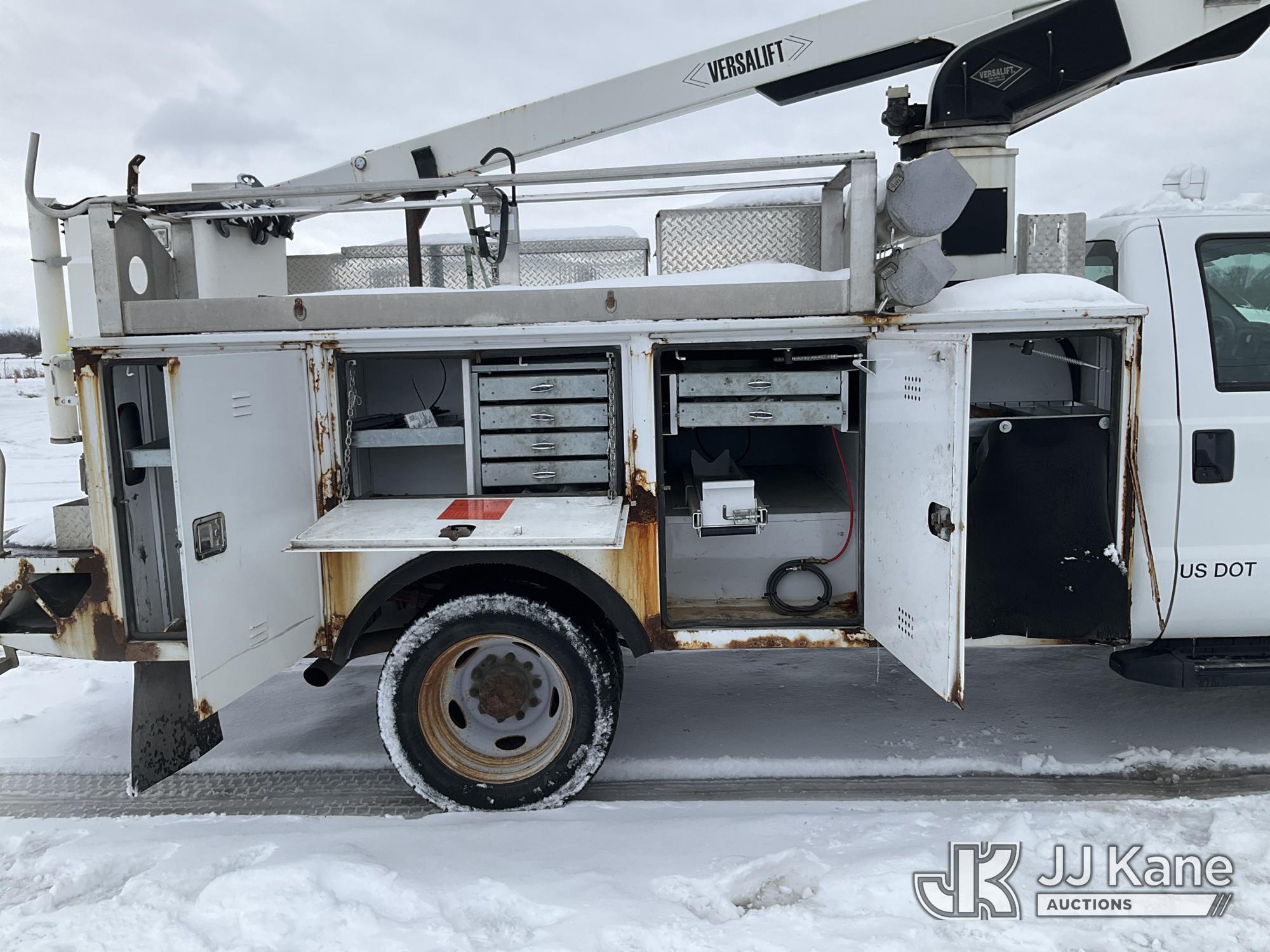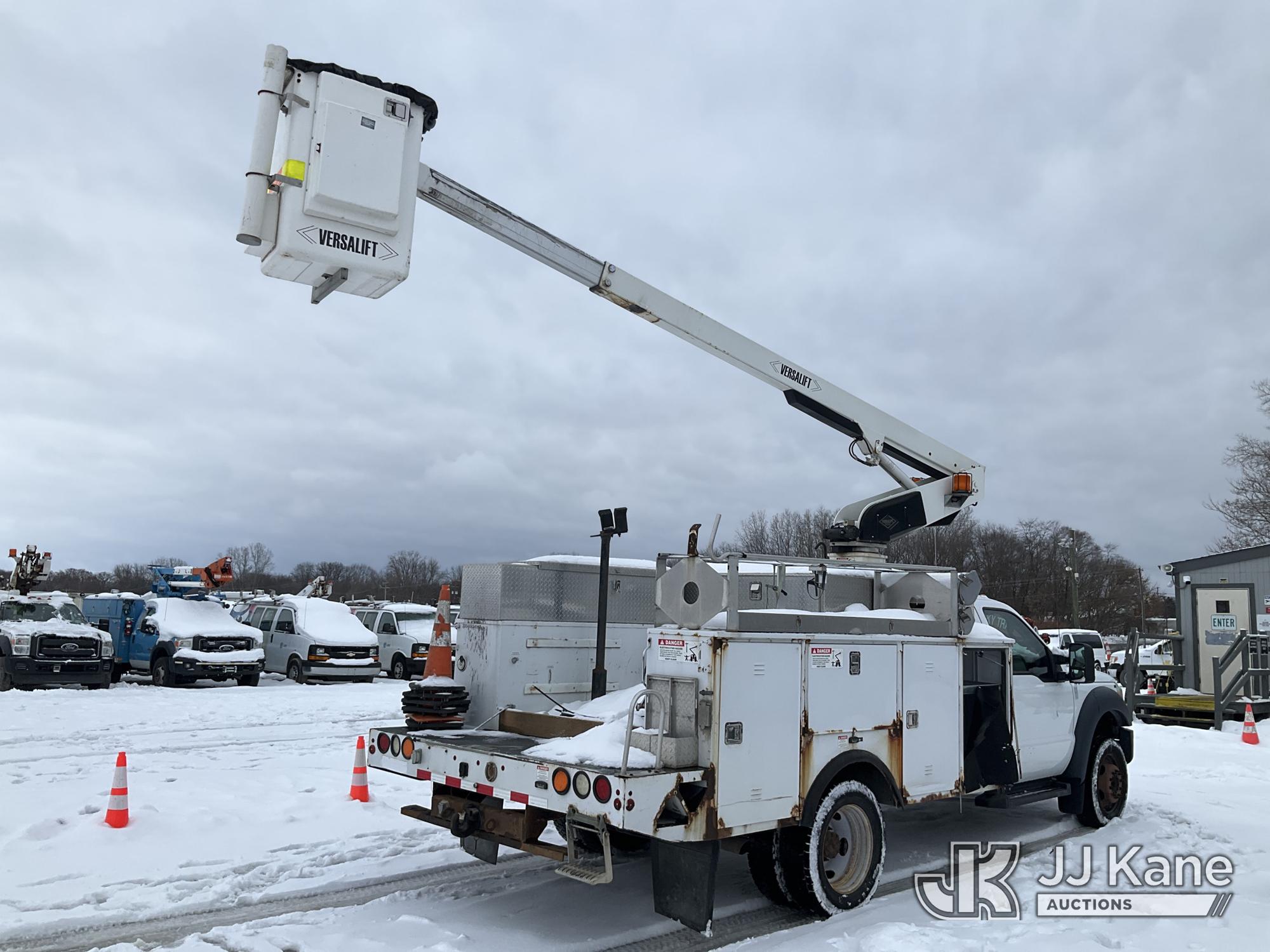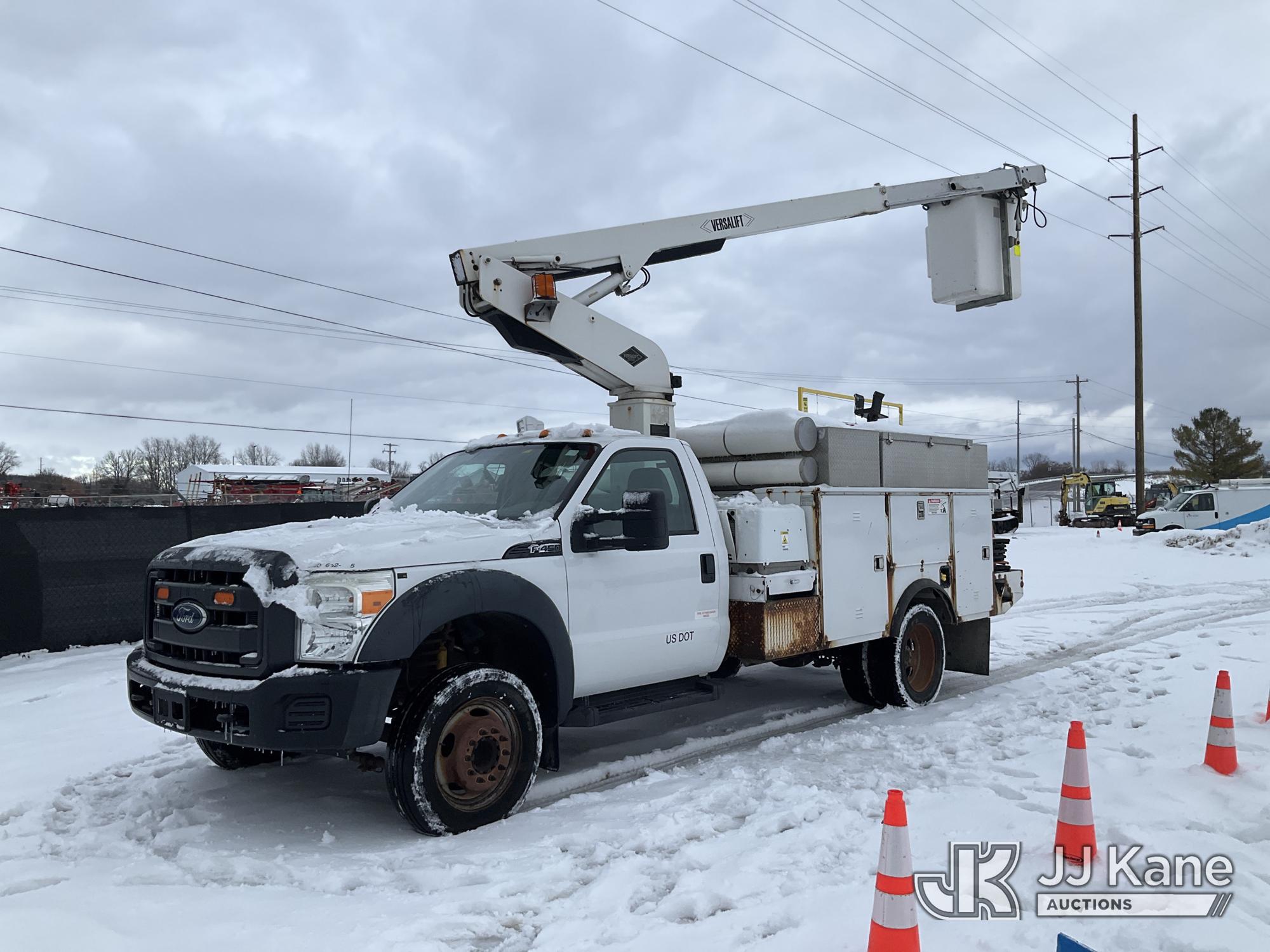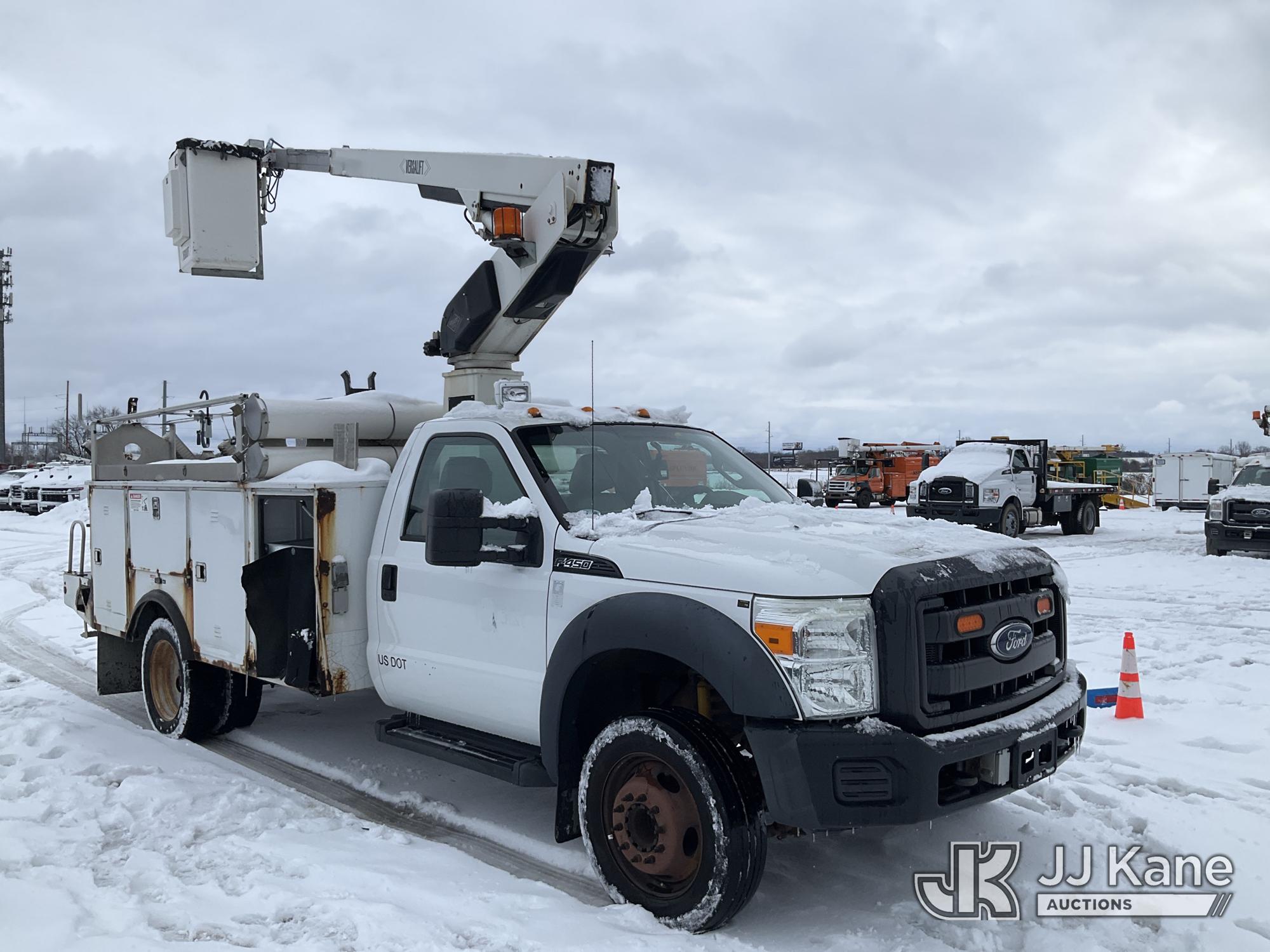 Versalift TEL29N-03, 34 ft, Telescopic Bucket Truck s/n AG150100, Onan with single man bucket, mounted behind cab on 2015 Ford F-450 SD Regular Cab DRW 2WD Service Truck, 6.8L V10 SOHC 30V Gas, Auto, A/C, (86,907 miles) (Runs, Moves & Upper Operates) (Rust) (Reads 3,931 hours) This is a Titled Item*