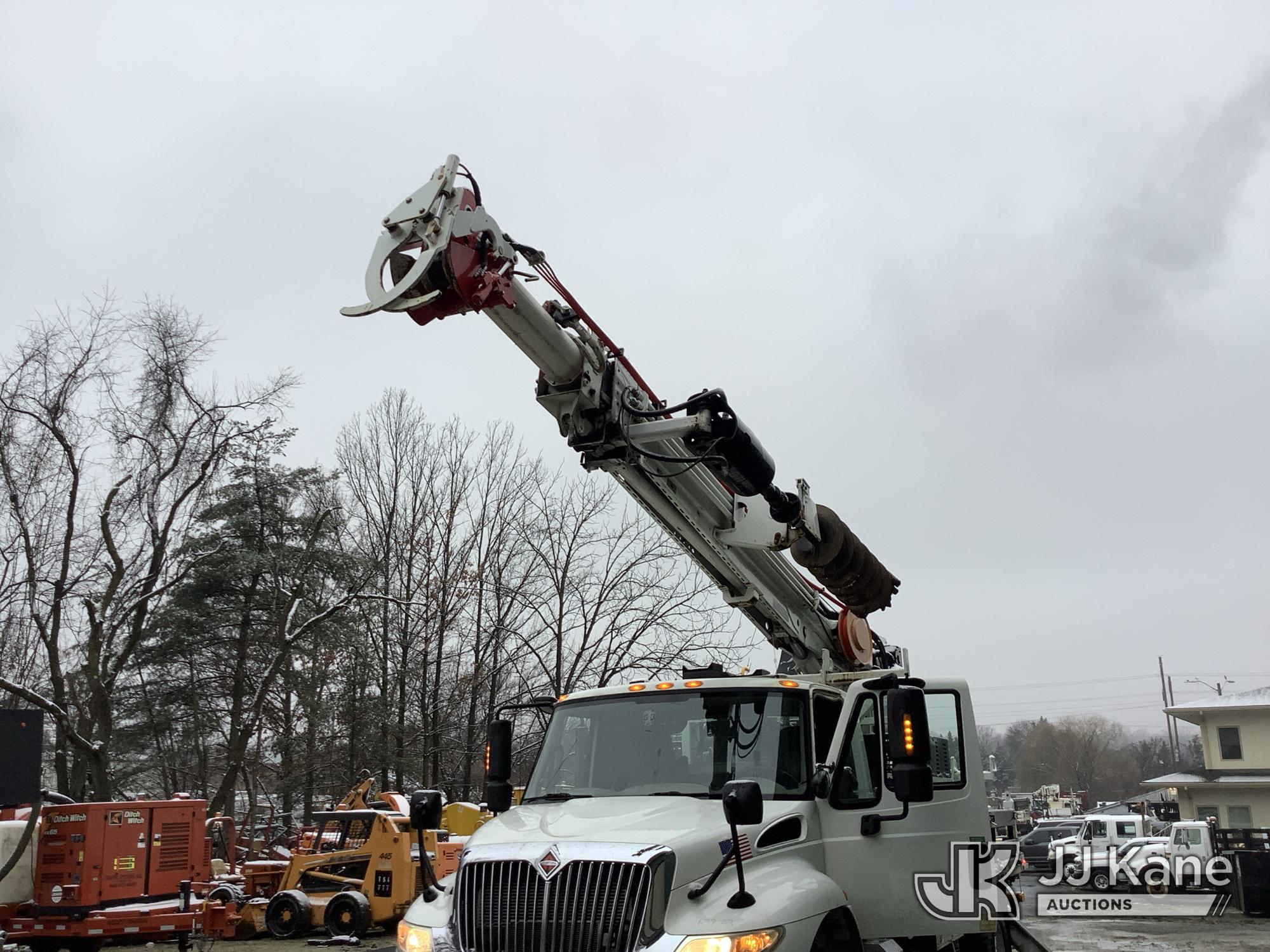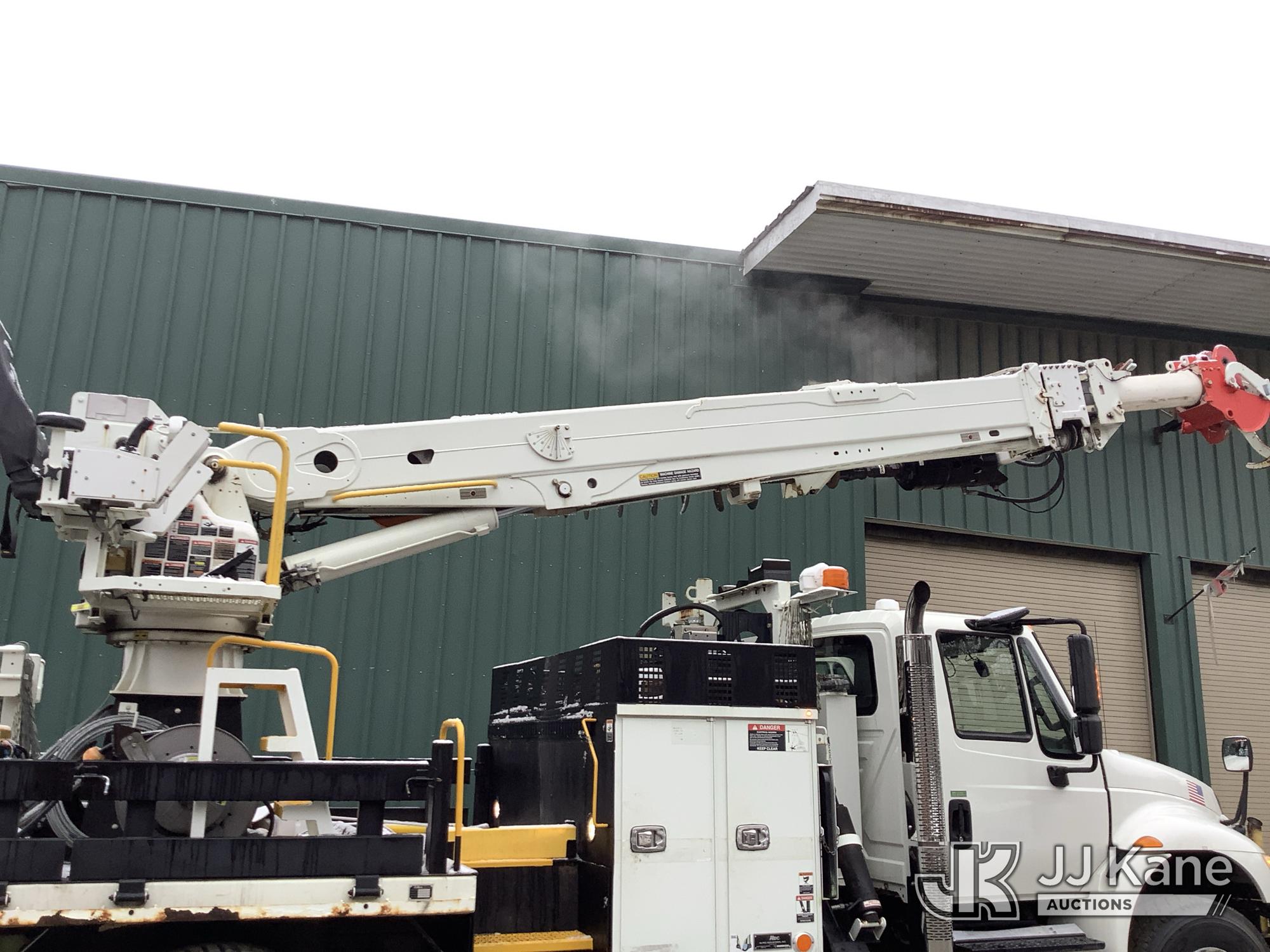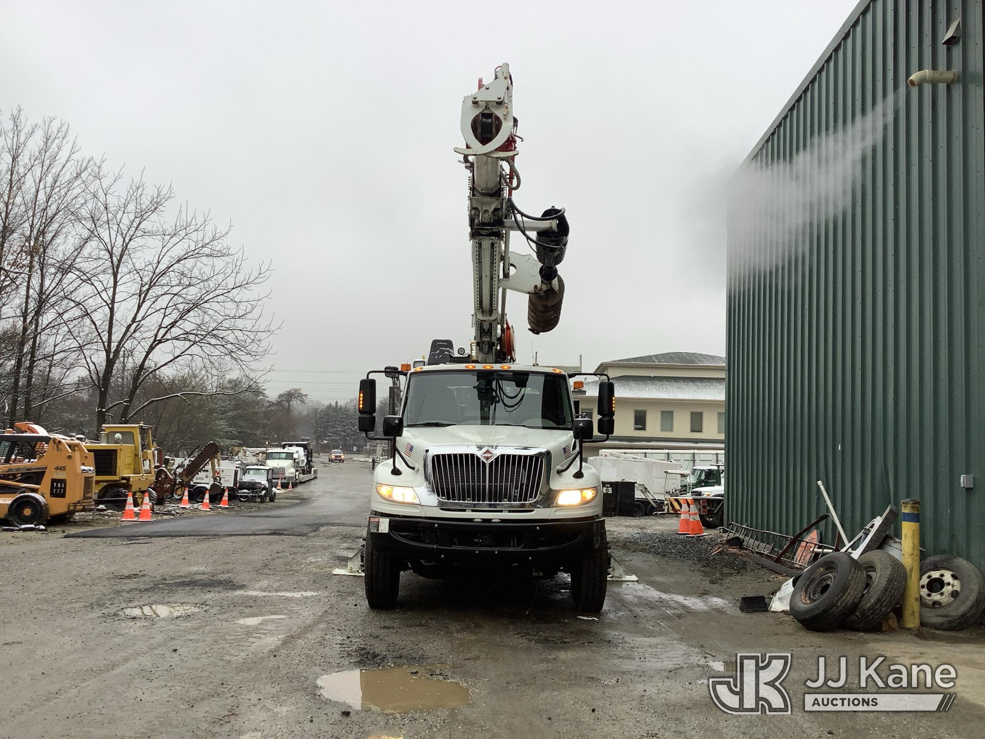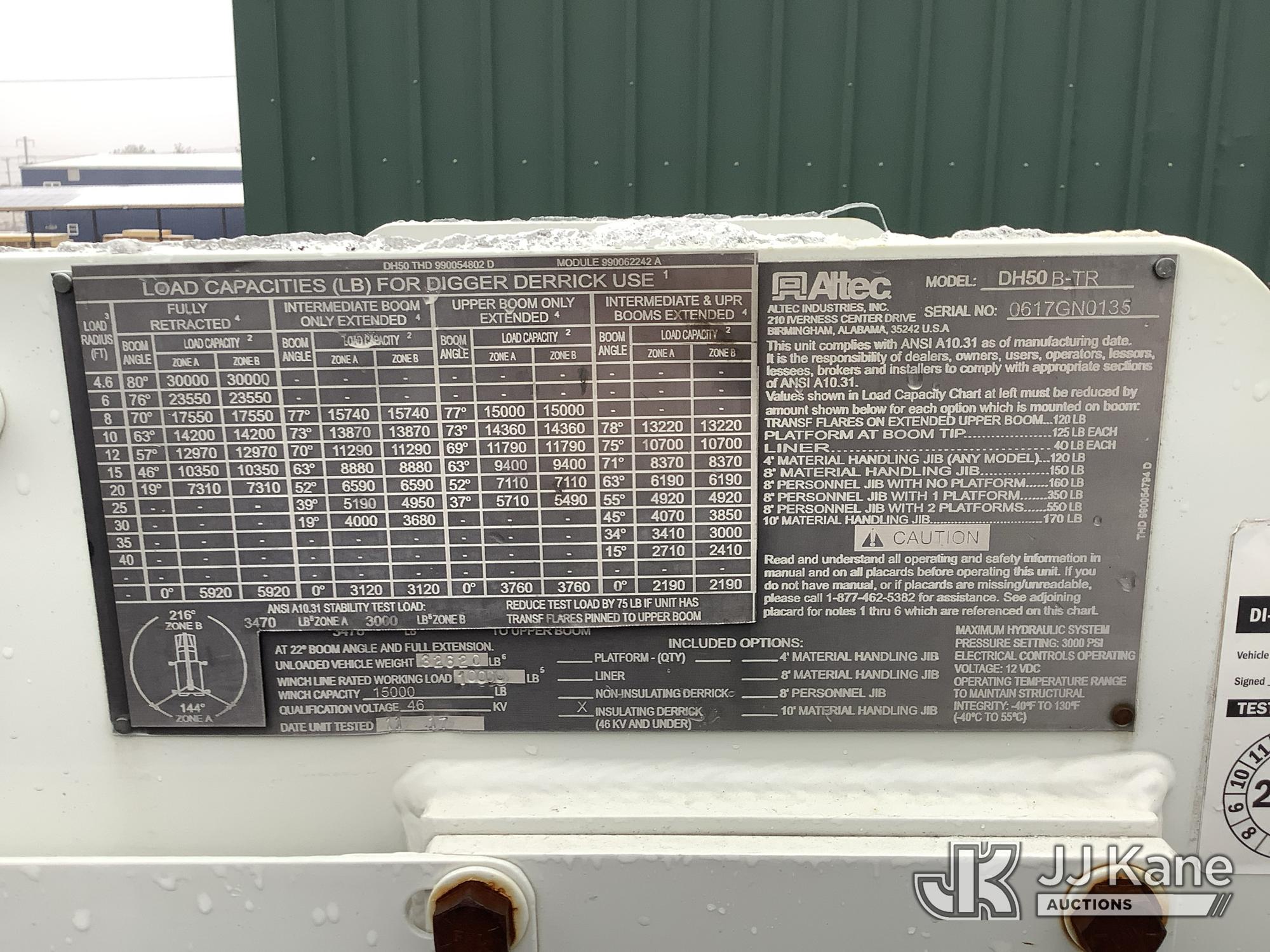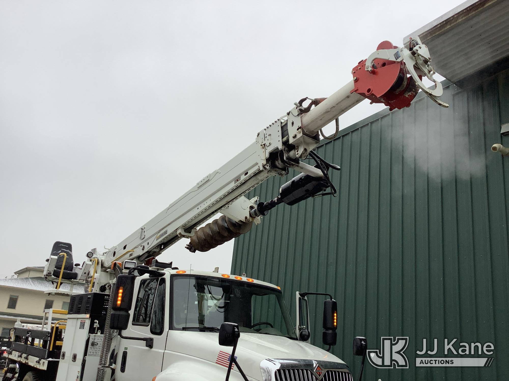 Altec DH50B-TR, Digger Derrick s/n 0617GN0135, with 50 ft. sheave height, 3 section hyd boom, 2 spd digger, heel winch, pole guides, riding console, radio remote, & 4 hyd outriggers, mounted on 2018 International DuraStar 4300 Utility Vehicle, 6.7 I6 Diesel Auto, (25,672 miles) (Runs, Moves & Operates, Rust On Utility Body) (Removal is by Appointment Only, Buyer MUST make a appointment prior to picking up, Buyer/Transporter MUST have PAID IN FULL RELEASE. No onsite assistance available, Please Come prepared. The manufacturer has notified JJ Kane that this equipment is subject to an open recall. CSN 700 Zone Rating System Software Update The equipment should not be operated until this is addressed. Buyer is responsible for reviewing the recall notice and contacting the manufacturer to schedule the recommended corrective actions. Associated costs may be covered by the manufacturer in some cases.) (Reads 2,562 hours) This is a Titled Item*