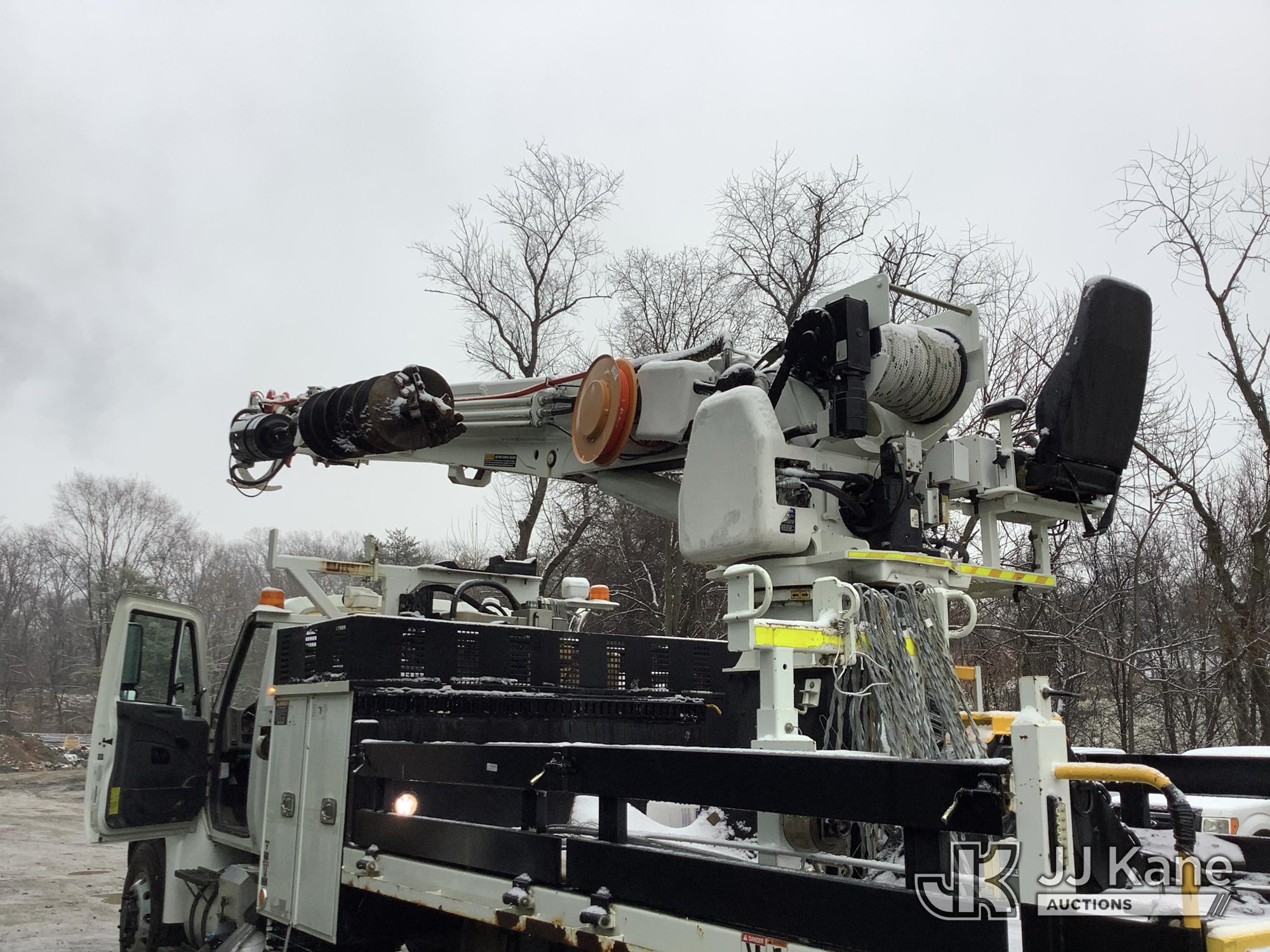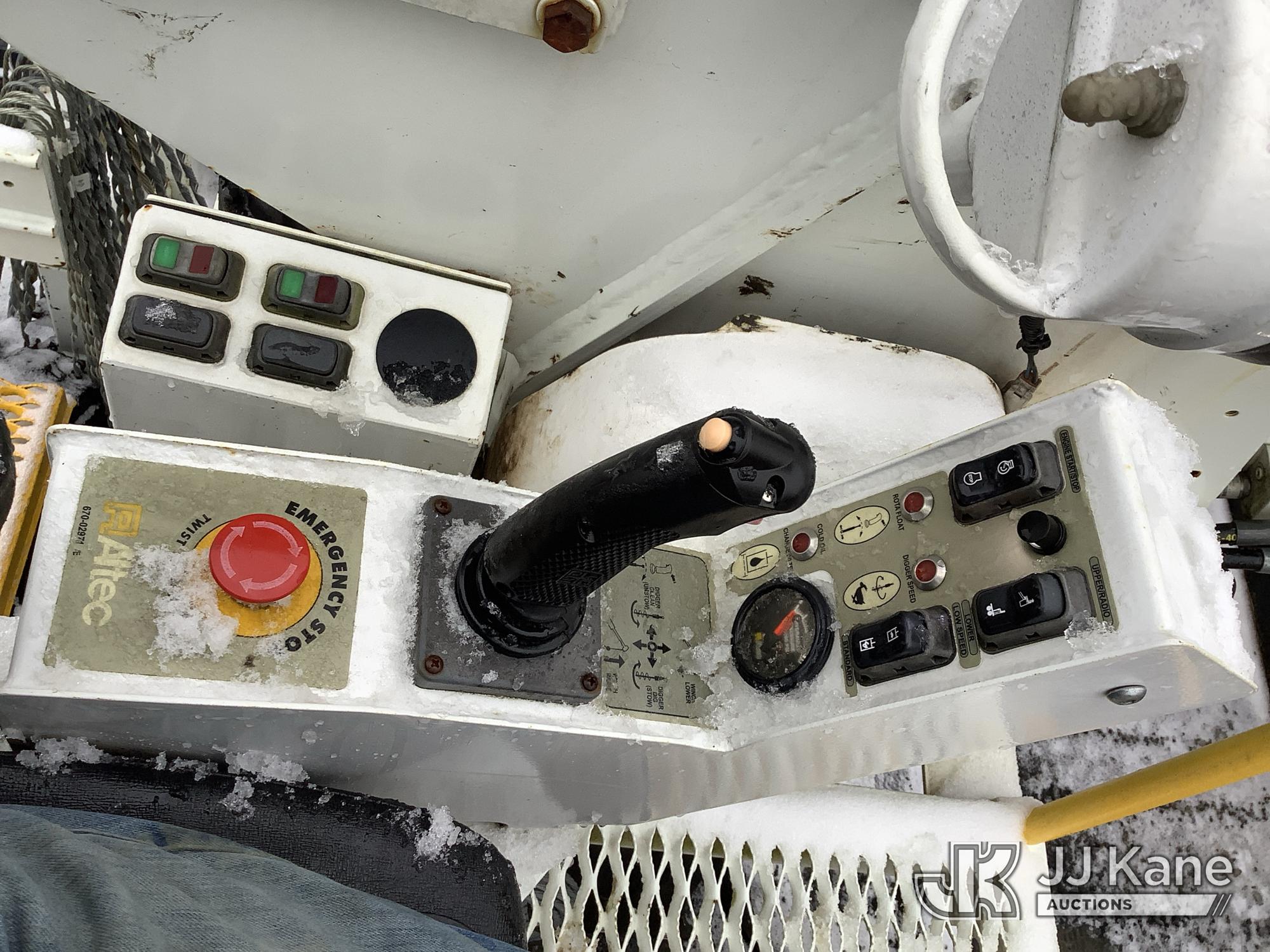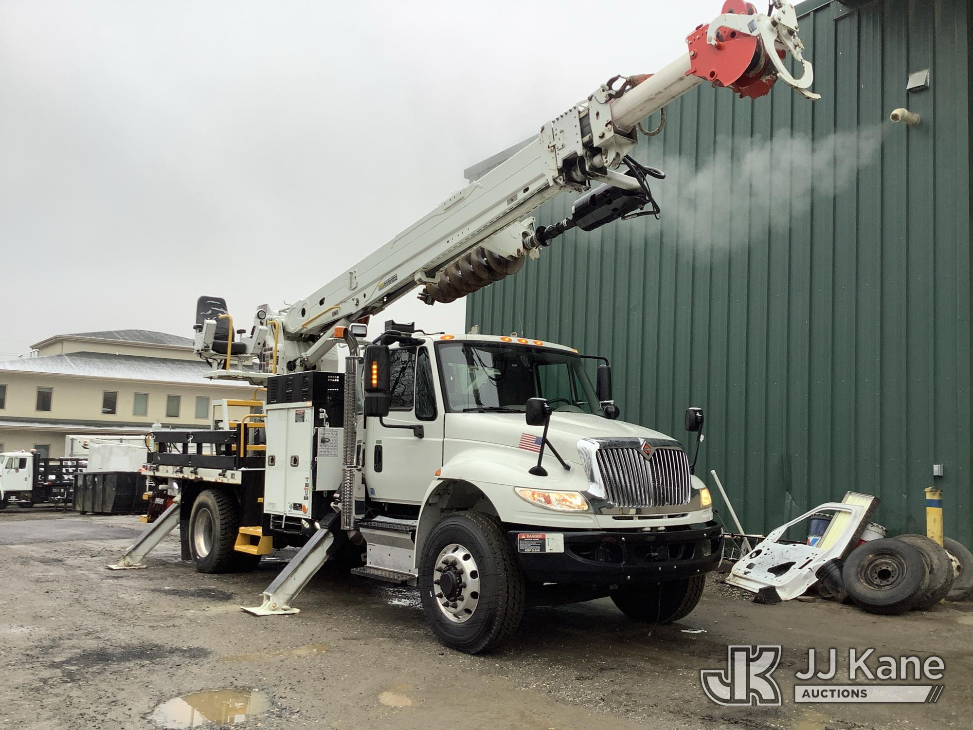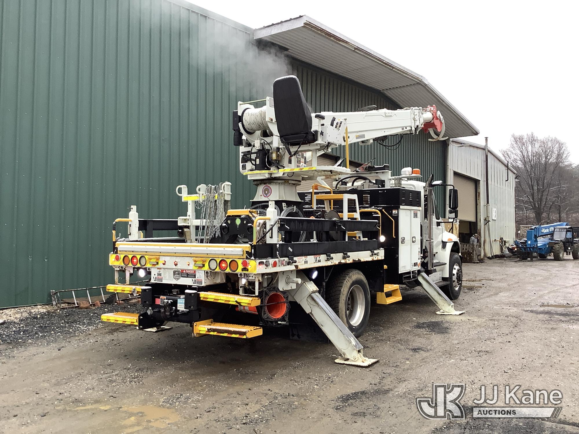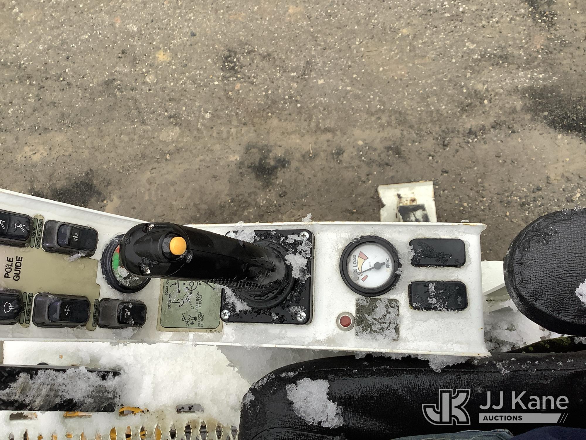 Altec DH50B-TR, Digger Derrick s/n 0617GN0135, with 50 ft. sheave height, 3 section hyd boom, 2 spd digger, heel winch, pole guides, riding console, radio remote, & 4 hyd outriggers, mounted on 2018 International DuraStar 4300 Utility Vehicle, 6.7 I6 Diesel Auto, (25,672 miles) (Runs, Moves & Operates, Rust On Utility Body) (Removal is by Appointment Only, Buyer MUST make a appointment prior to picking up, Buyer/Transporter MUST have PAID IN FULL RELEASE. No onsite assistance available, Please Come prepared. The manufacturer has notified JJ Kane that this equipment is subject to an open recall. CSN 700 Zone Rating System Software Update The equipment should not be operated until this is addressed. Buyer is responsible for reviewing the recall notice and contacting the manufacturer to schedule the recommended corrective actions. Associated costs may be covered by the manufacturer in some cases.) (Reads 2,562 hours) This is a Titled Item*