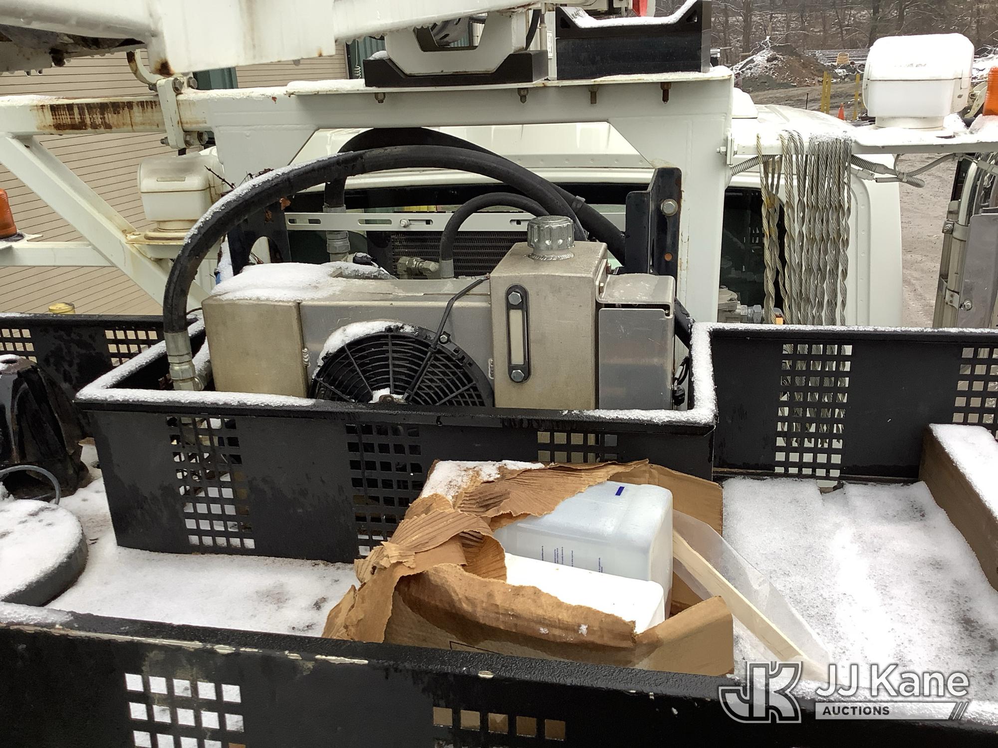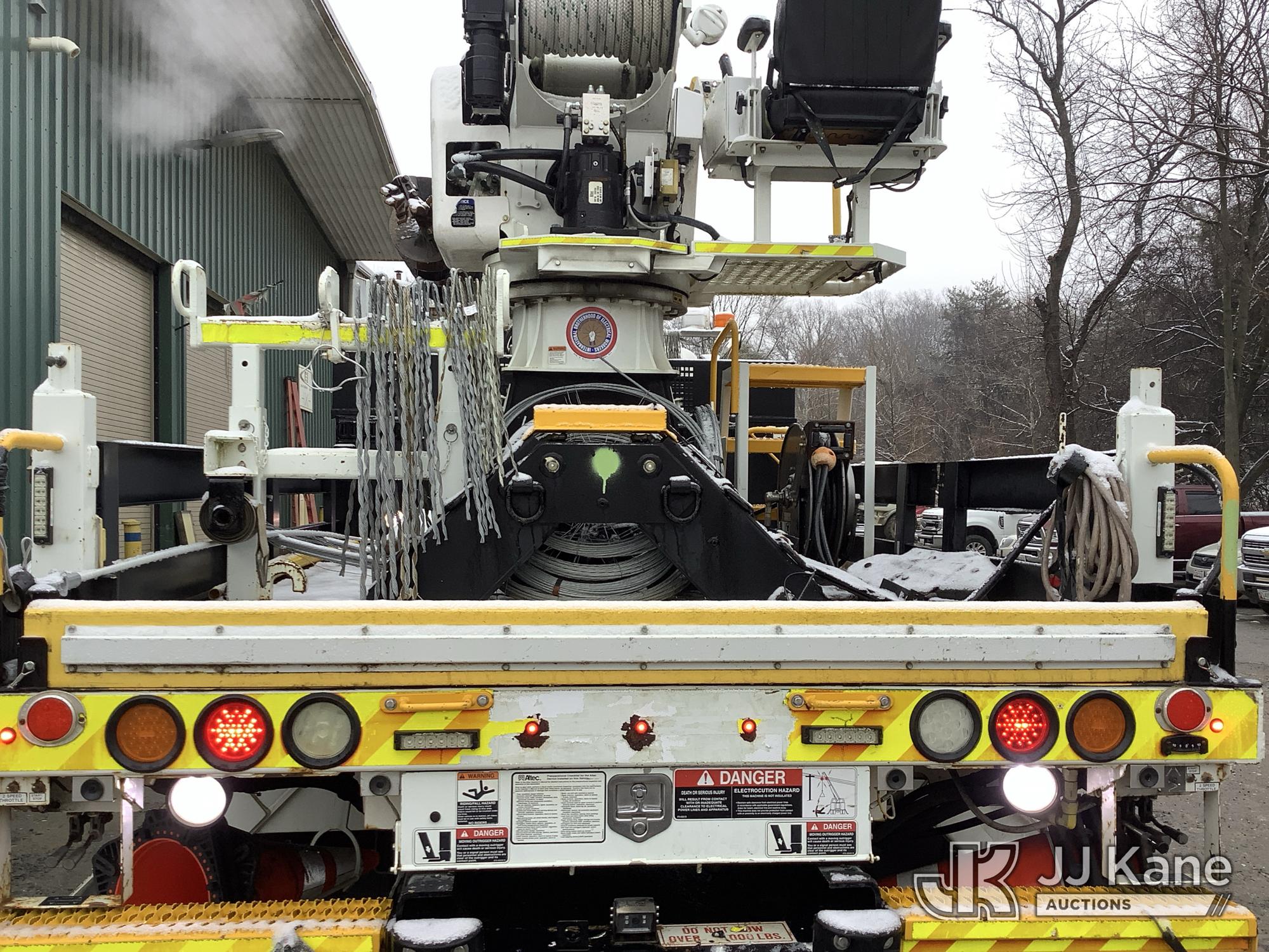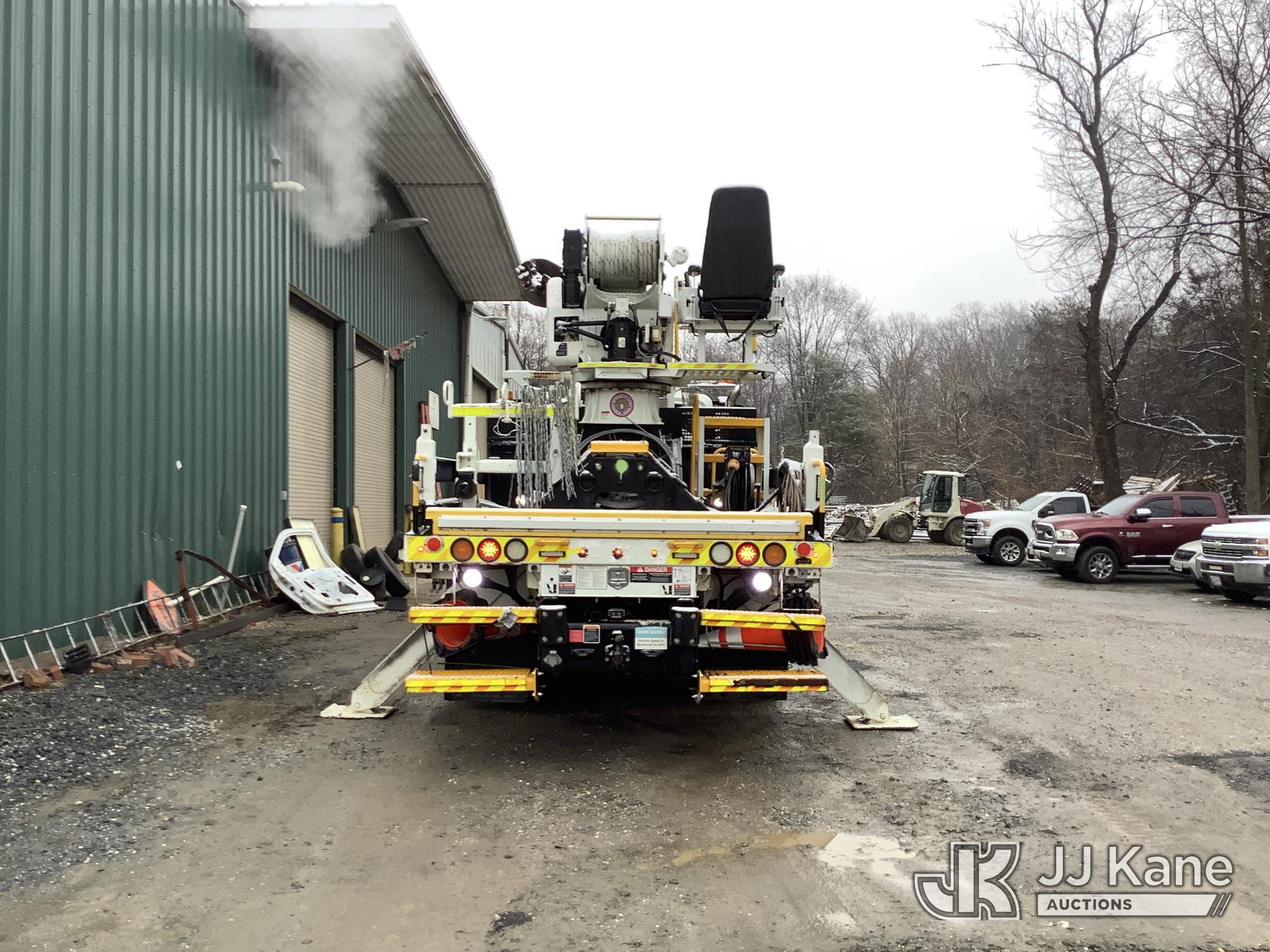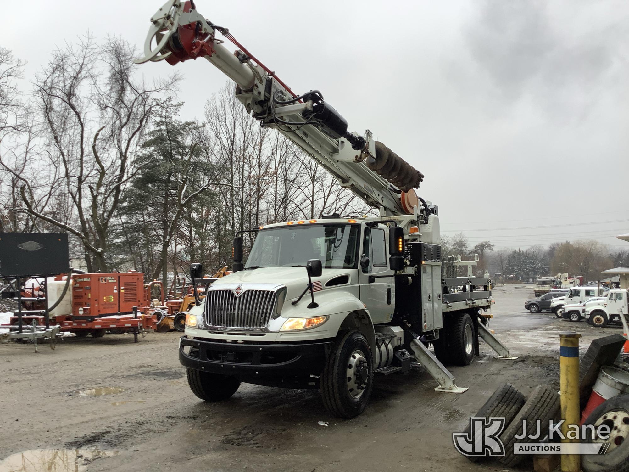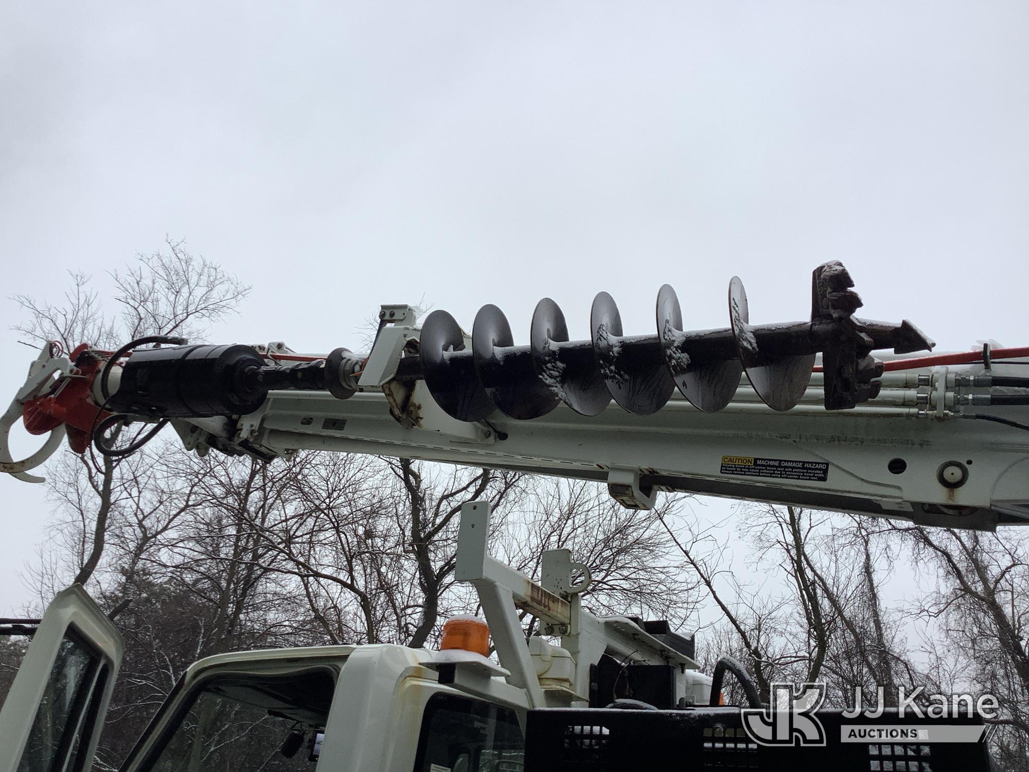 Altec DH50B-TR, Digger Derrick s/n 0617GN0135, with 50 ft. sheave height, 3 section hyd boom, 2 spd digger, heel winch, pole guides, riding console, radio remote, & 4 hyd outriggers, mounted on 2018 International DuraStar 4300 Utility Vehicle, 6.7 I6 Diesel Auto, (25,672 miles) (Runs, Moves & Operates, Rust On Utility Body) (Removal is by Appointment Only, Buyer MUST make a appointment prior to picking up, Buyer/Transporter MUST have PAID IN FULL RELEASE. No onsite assistance available, Please Come prepared. The manufacturer has notified JJ Kane that this equipment is subject to an open recall. CSN 700 Zone Rating System Software Update The equipment should not be operated until this is addressed. Buyer is responsible for reviewing the recall notice and contacting the manufacturer to schedule the recommended corrective actions. Associated costs may be covered by the manufacturer in some cases.) (Reads 2,562 hours) This is a Titled Item*