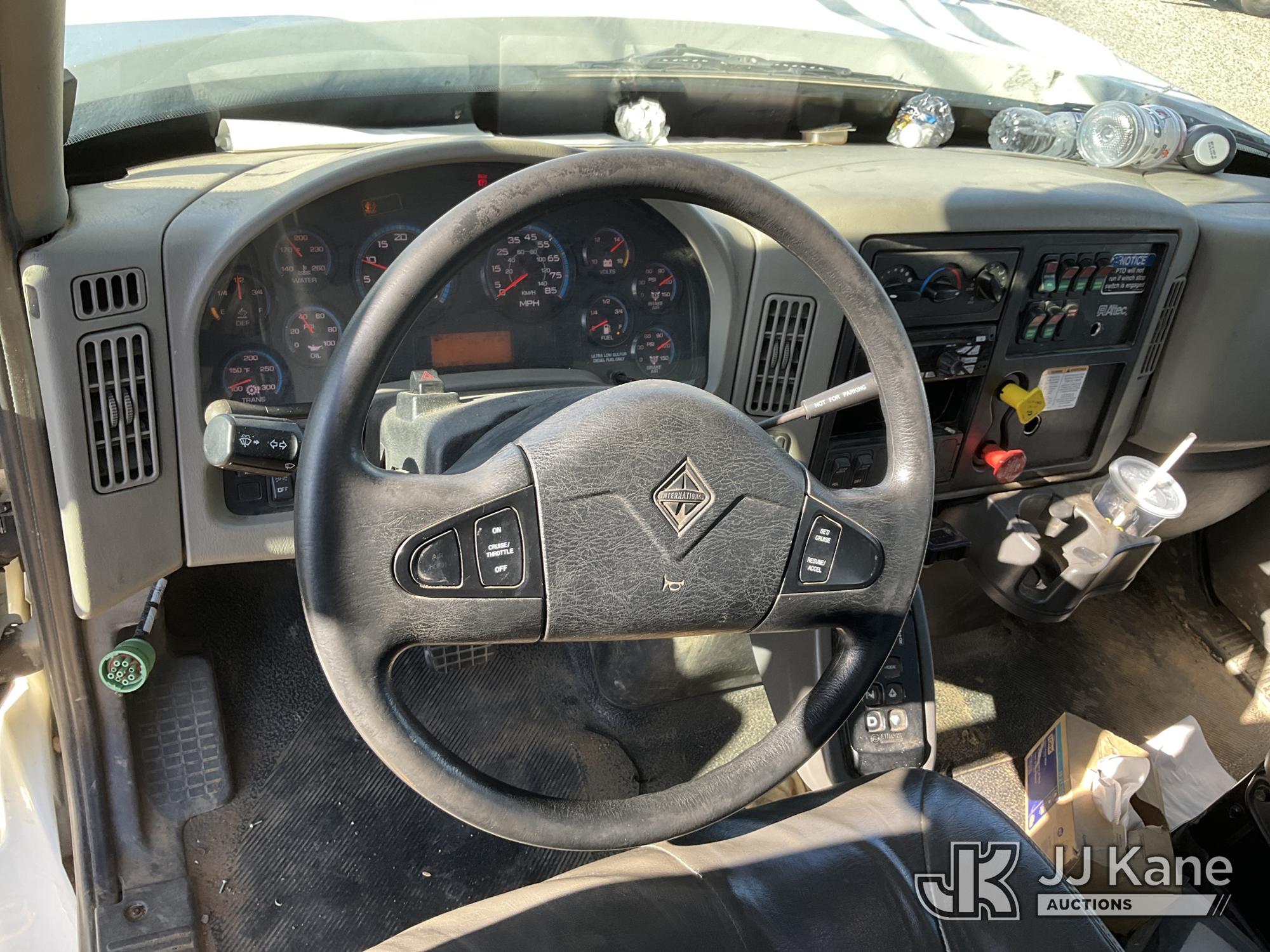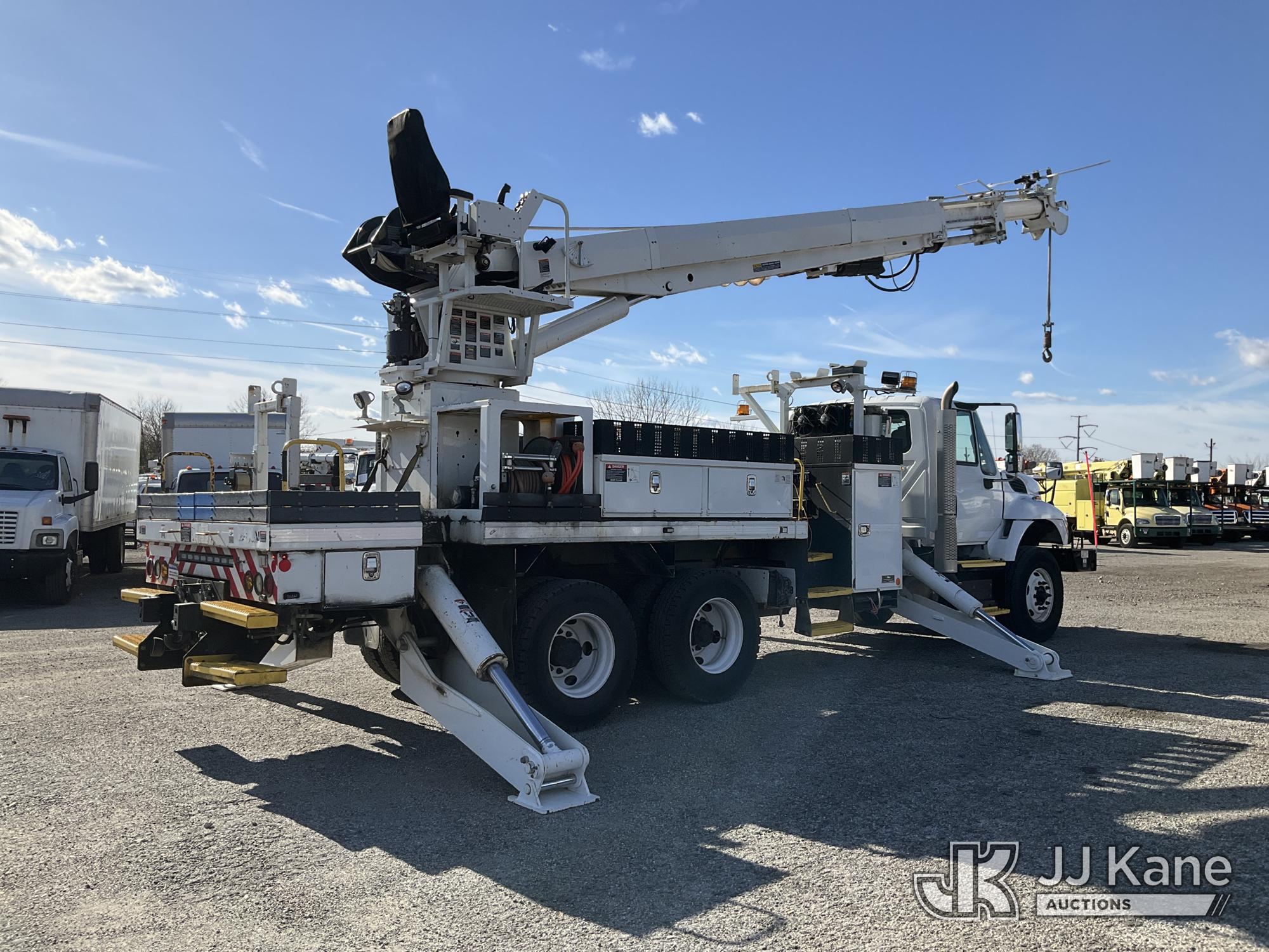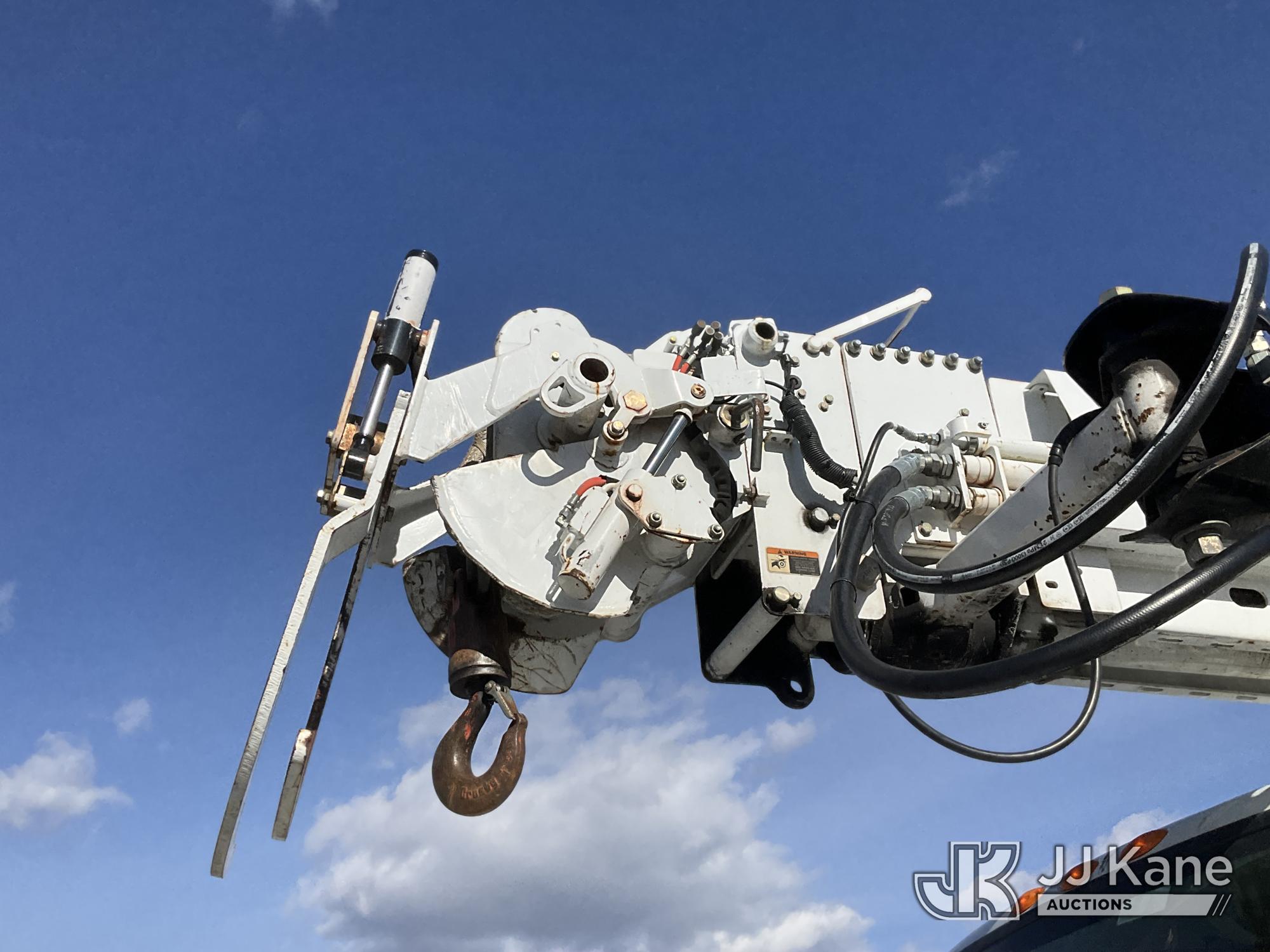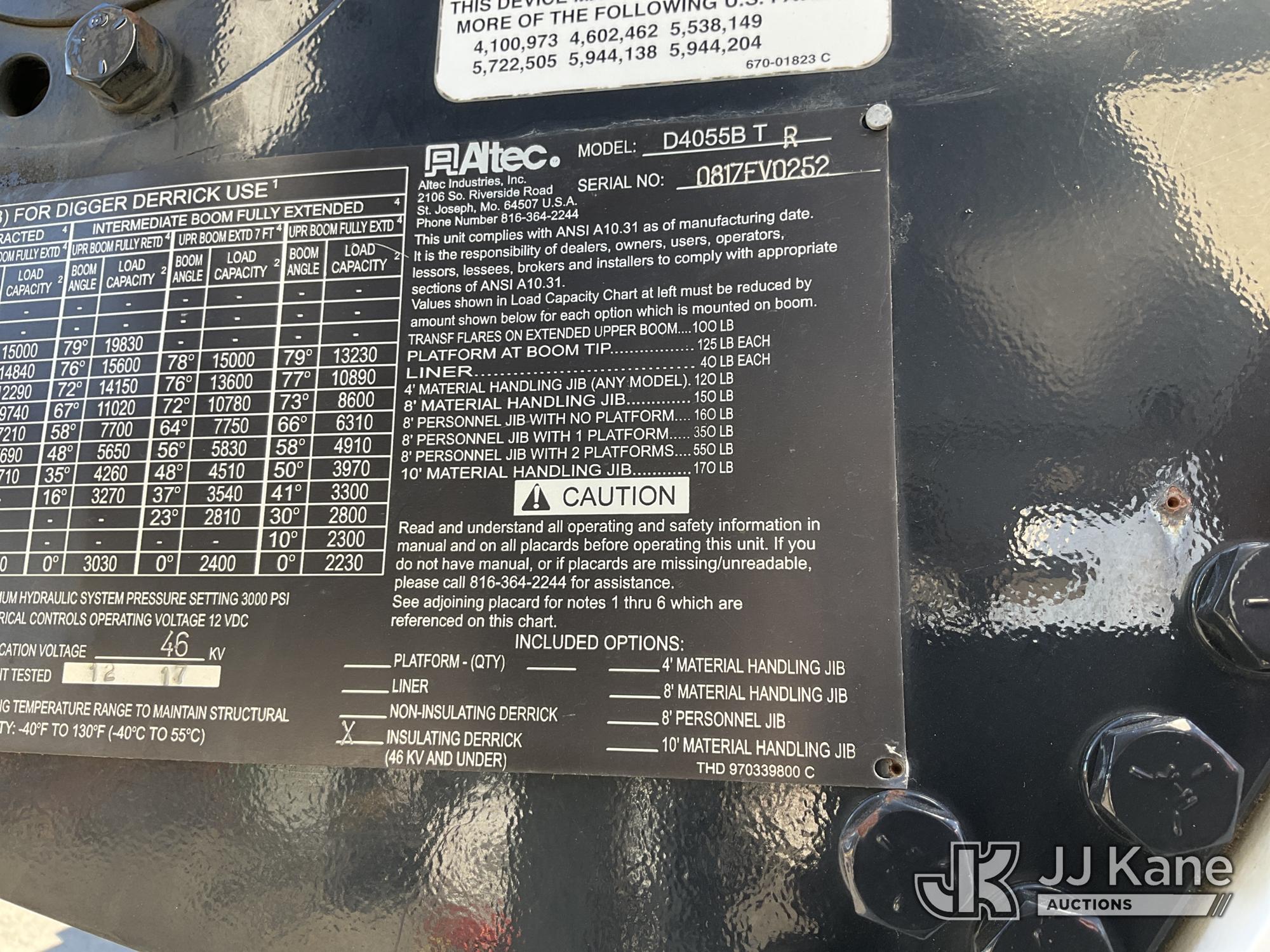 Altec D4055-BTR, 30,000 Lb Digger Derrick s/n 0817FV0252, with 55ft Sheave Ht, 3) section Hyd. Boom, Heel Winch, Pole Grabs, Riding Console, & 4 Outriggers, rear mounted on 2018 International 7500 T/A Utility/Flatbed Truck, MaxxForce diesel, Auto, A/C, with Front Bumper Winch, Vanair Compressor, (32,778 miles) (Runs Moves & Upper Operates, Body & Rust Damage. The manufacturer has notified JJ Kane that this equipment is subject to an open recall (CSN 3064 - Pole Rack Weld Inspection). The equipment should not be operated until this is addressed. Buyer is responsible for reviewing the recall notice and contacting the manufacturer to schedule the recommended corrective actions. Associated costs may be covered by the manufacturer in some cases.) This is a Titled Item*