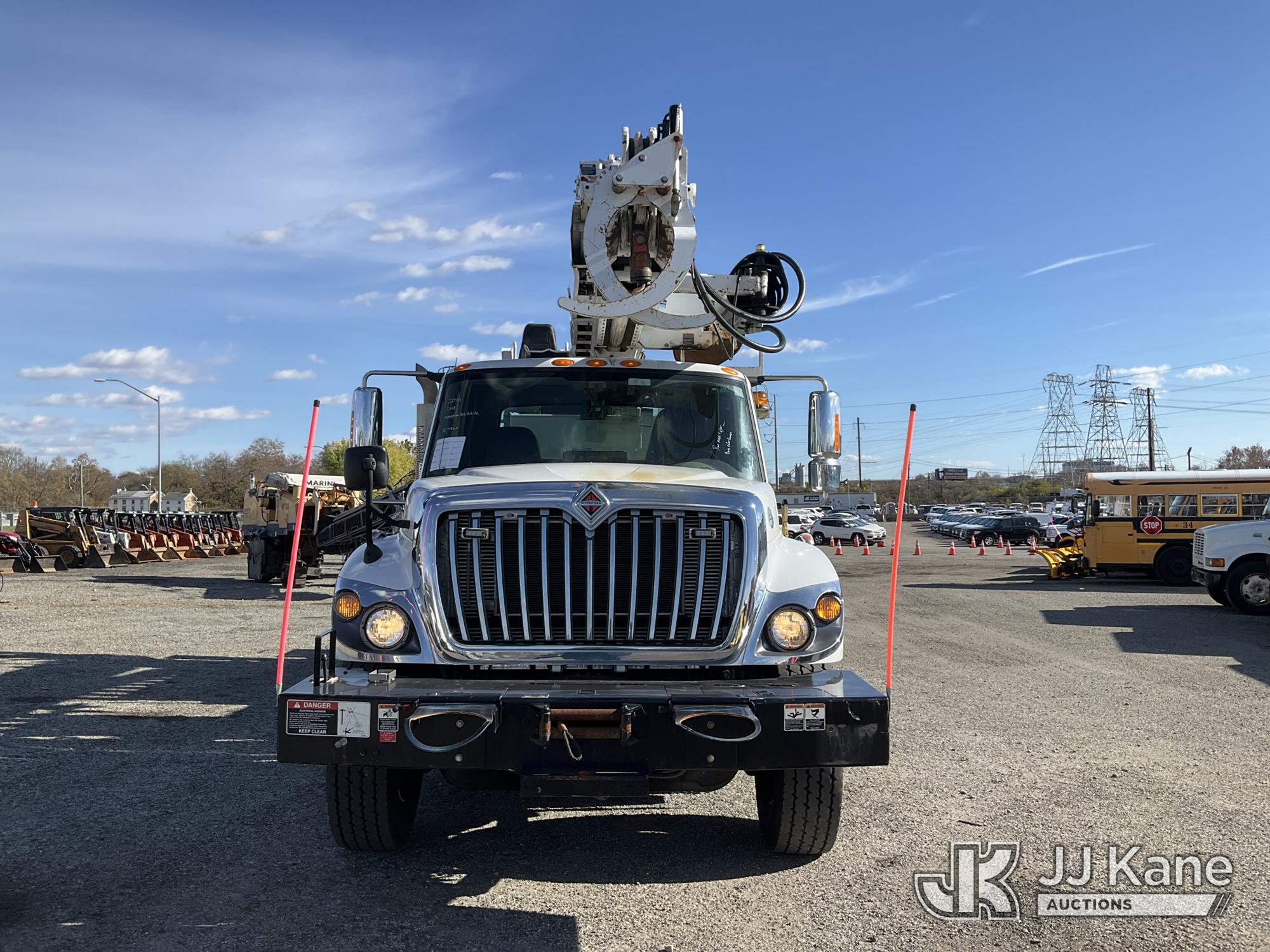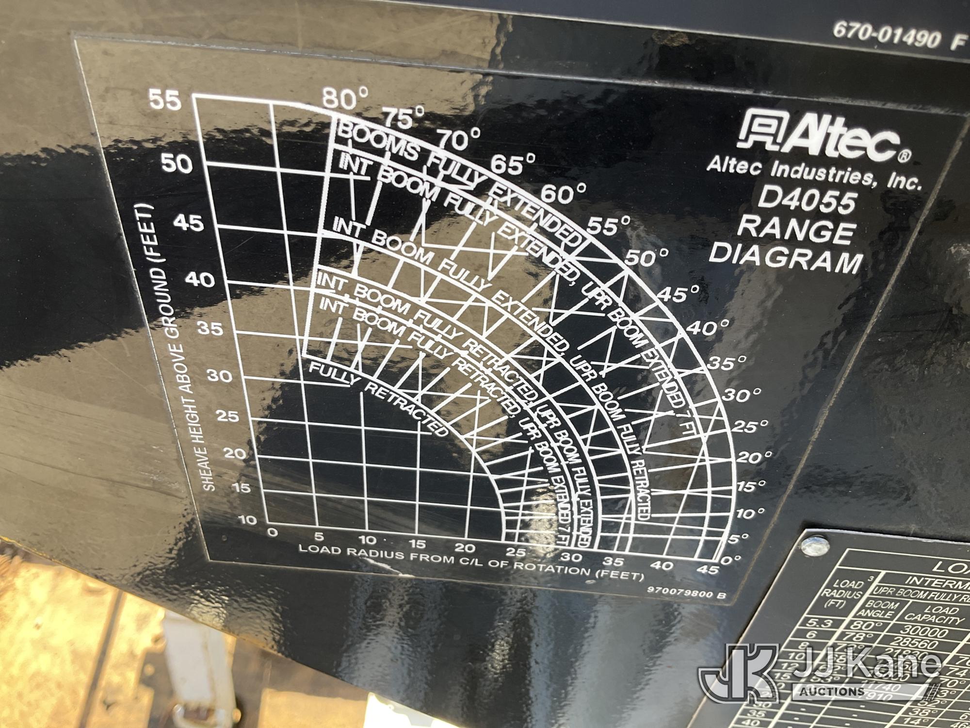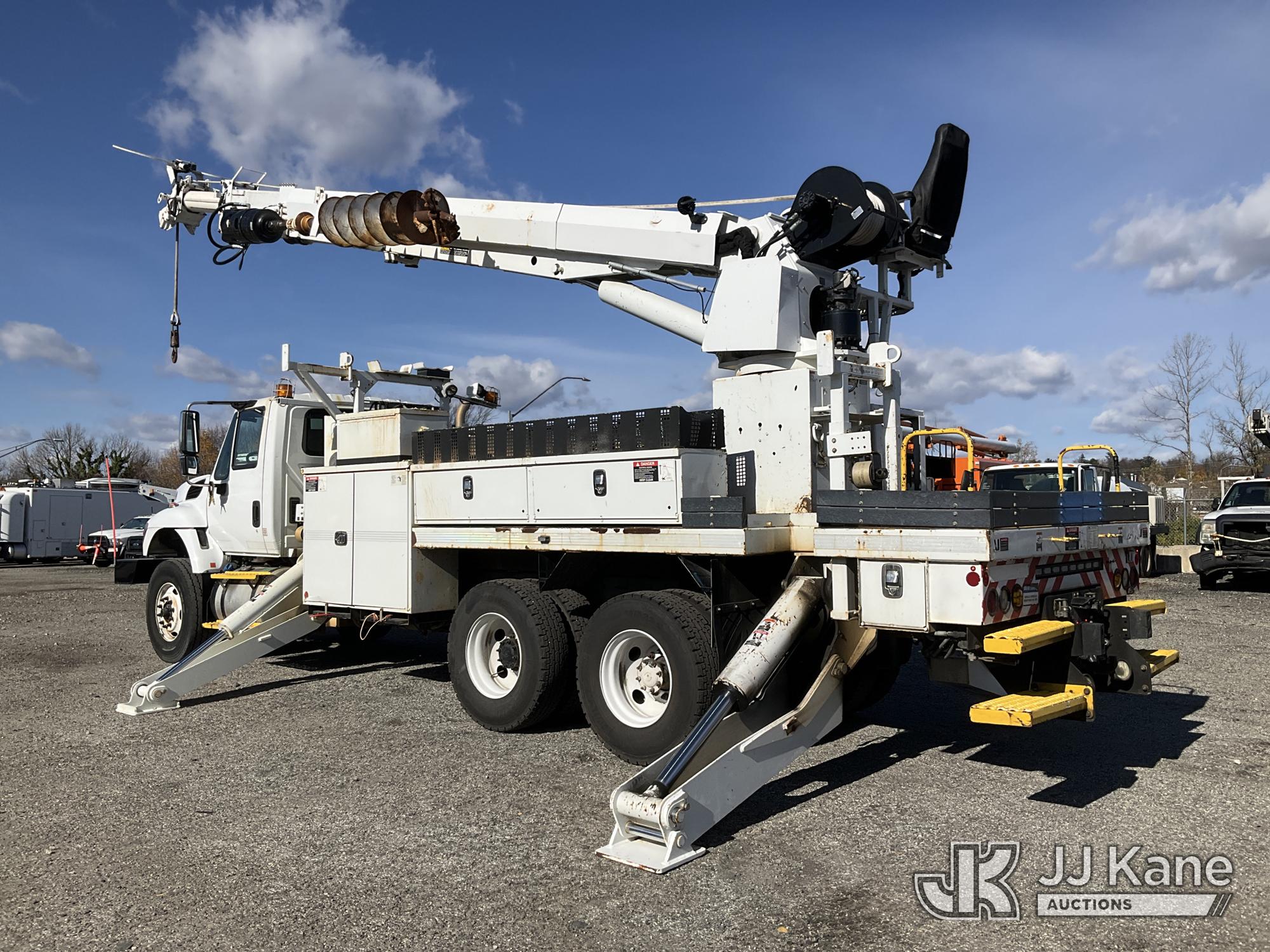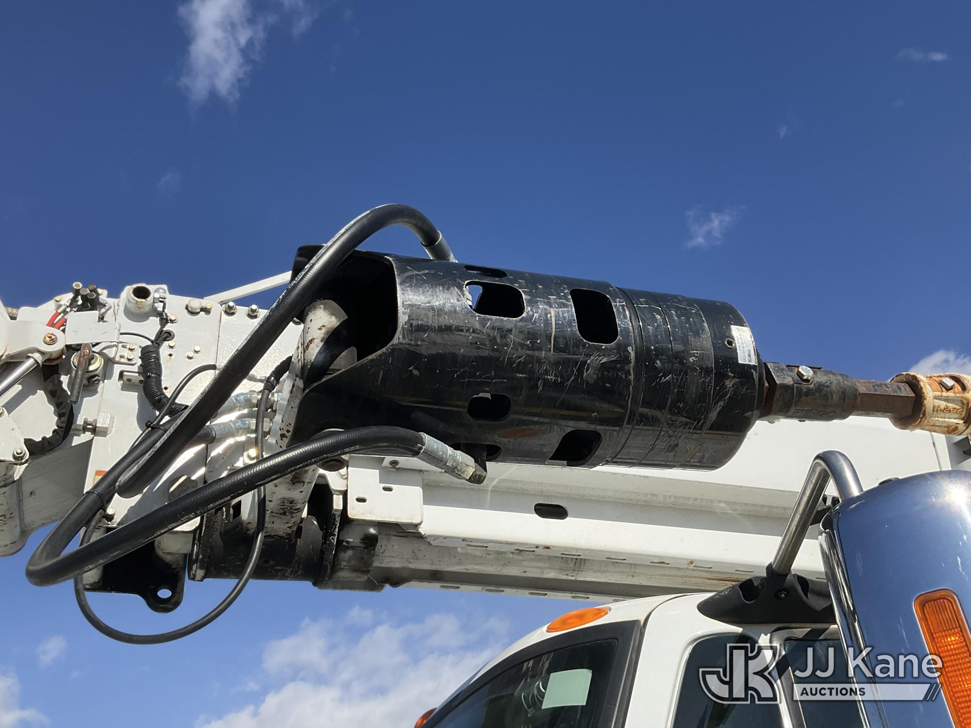 Altec D4055-BTR, 30,000 Lb Digger Derrick s/n 0817FV0252, with 55ft Sheave Ht, 3) section Hyd. Boom, Heel Winch, Pole Grabs, Riding Console, & 4 Outriggers, rear mounted on 2018 International 7500 T/A Utility/Flatbed Truck, MaxxForce diesel, Auto, A/C, with Front Bumper Winch, Vanair Compressor, (32,778 miles) (Runs Moves & Upper Operates, Body & Rust Damage. The manufacturer has notified JJ Kane that this equipment is subject to an open recall (CSN 3064 - Pole Rack Weld Inspection). The equipment should not be operated until this is addressed. Buyer is responsible for reviewing the recall notice and contacting the manufacturer to schedule the recommended corrective actions. Associated costs may be covered by the manufacturer in some cases.) This is a Titled Item*