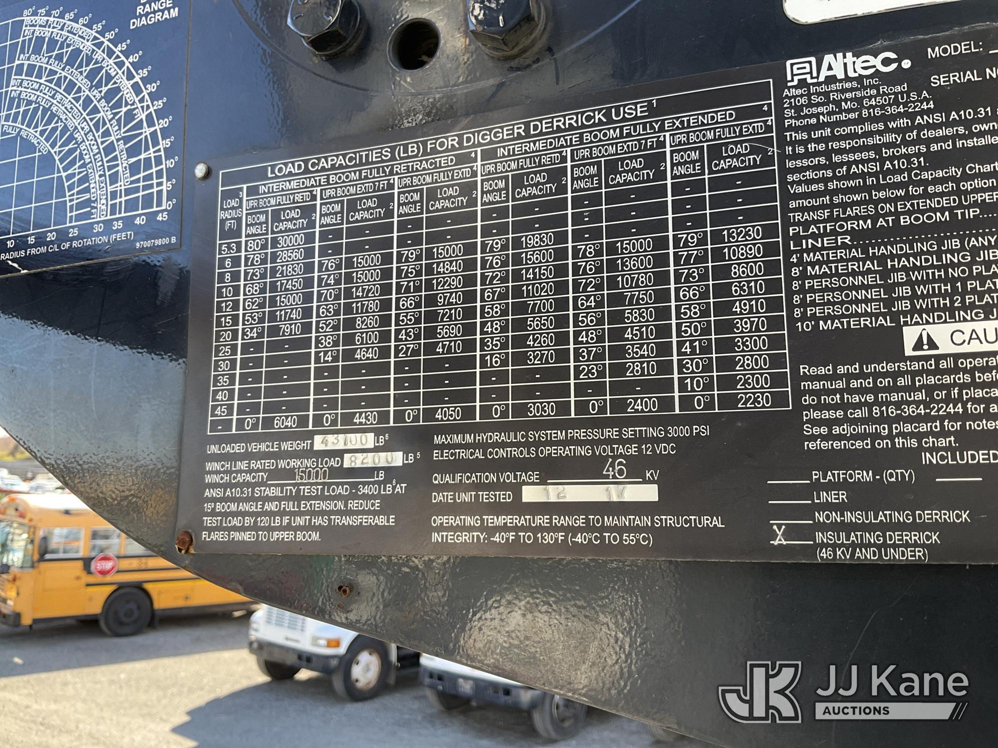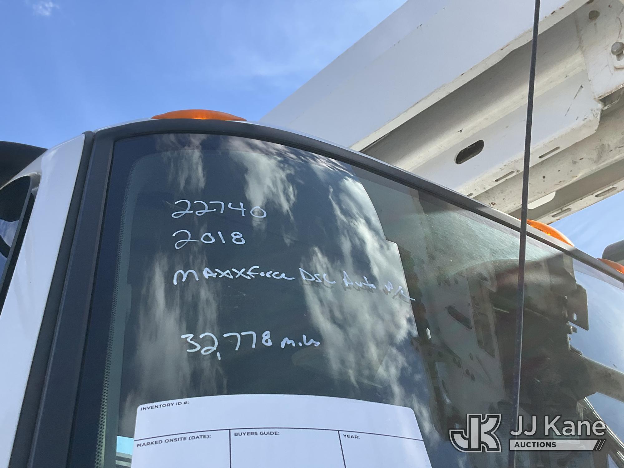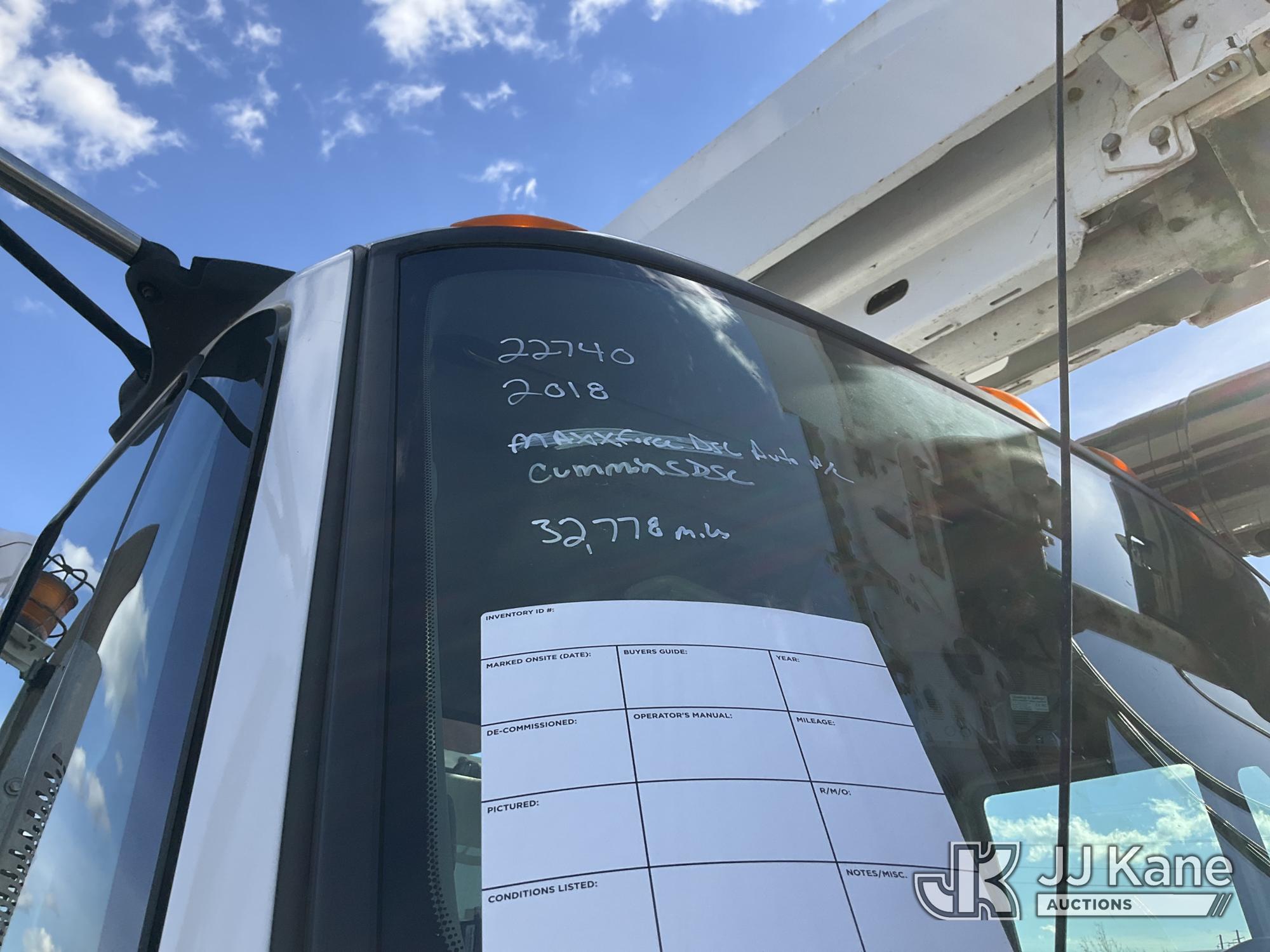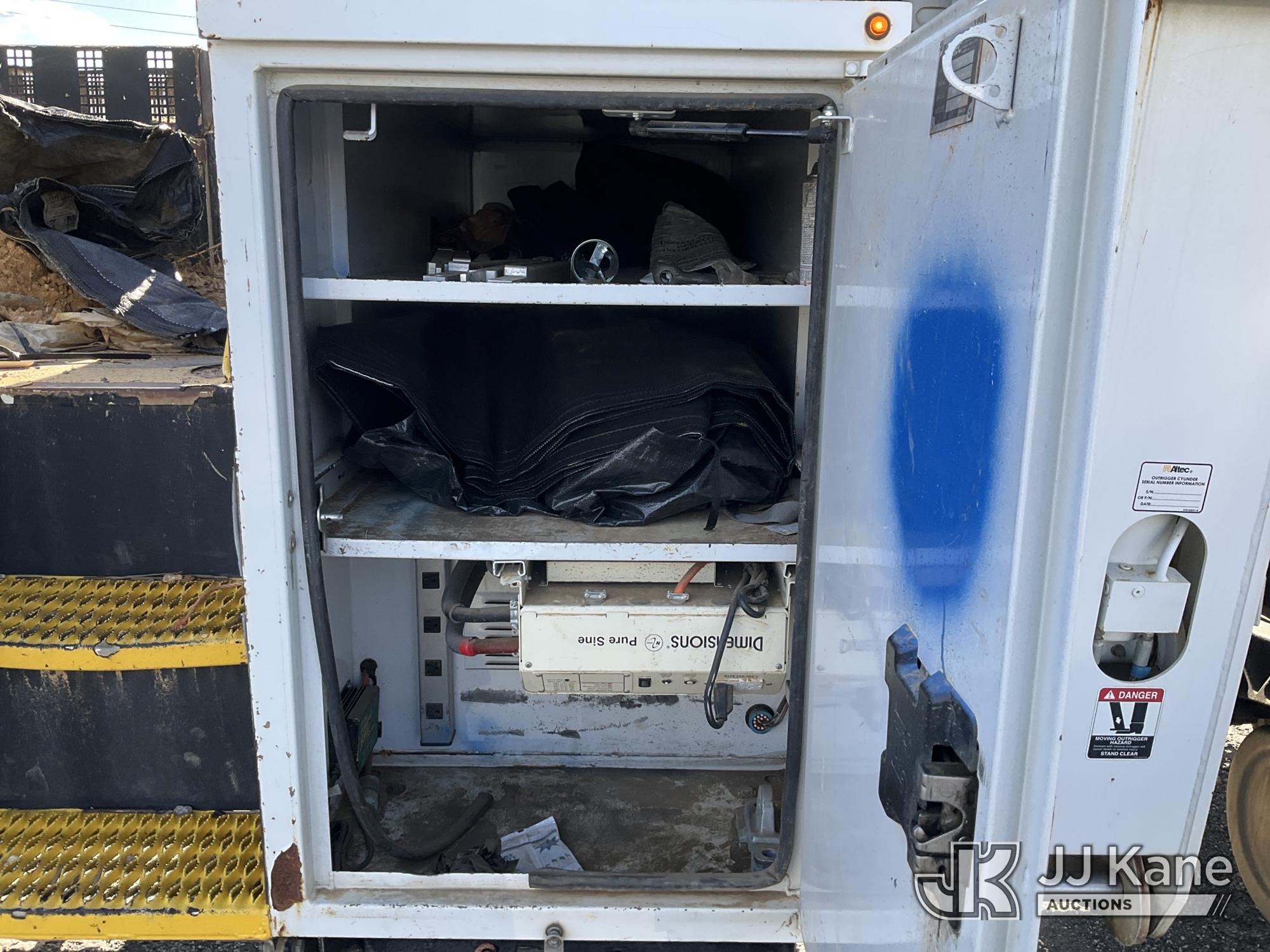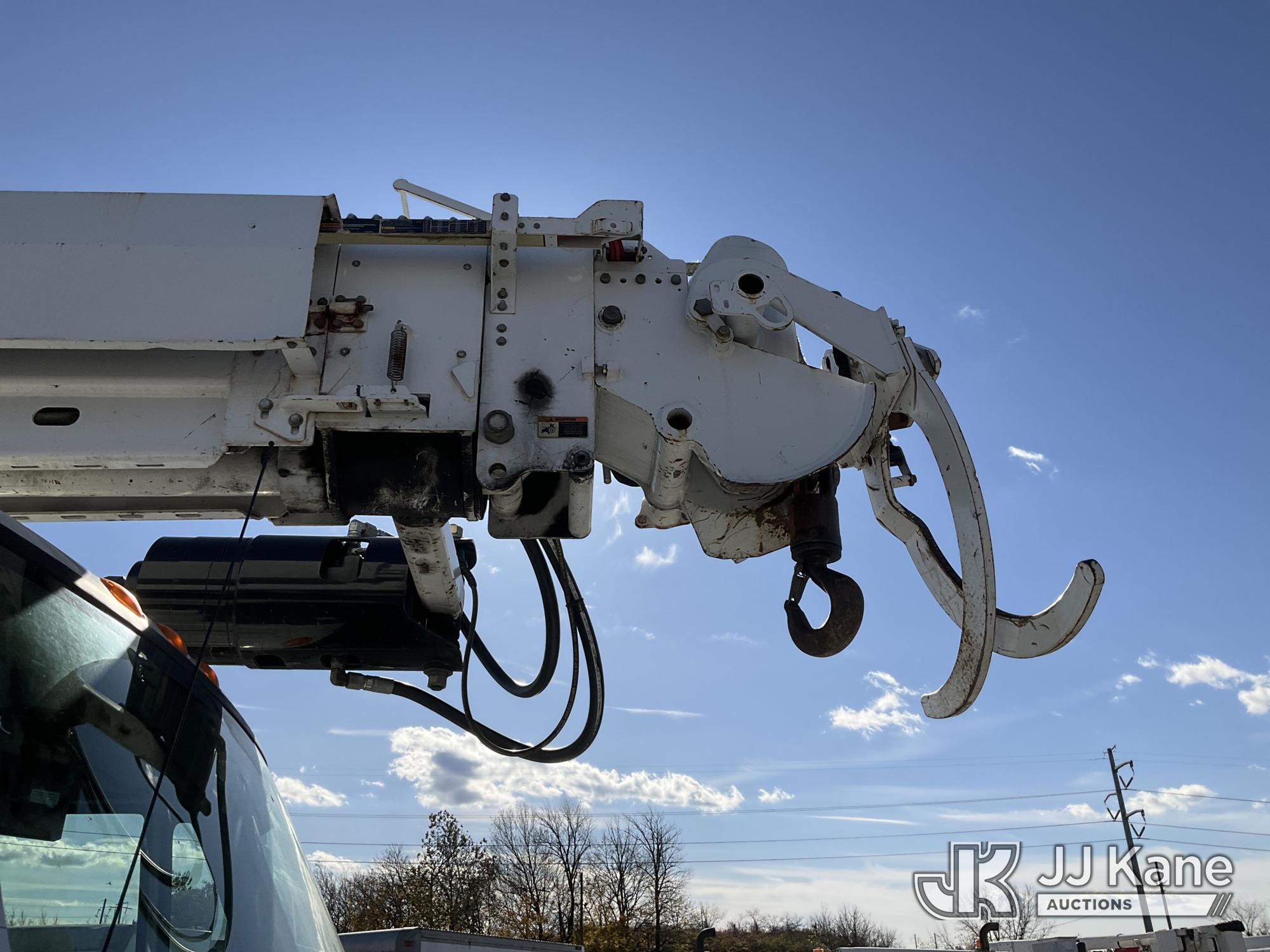 Altec D4055-BTR, 30,000 Lb Digger Derrick s/n 0817FV0252, with 55ft Sheave Ht, 3) section Hyd. Boom, Heel Winch, Pole Grabs, Riding Console, & 4 Outriggers, rear mounted on 2018 International 7500 T/A Utility/Flatbed Truck, MaxxForce diesel, Auto, A/C, with Front Bumper Winch, Vanair Compressor, (32,778 miles) (Runs Moves & Upper Operates, Body & Rust Damage. The manufacturer has notified JJ Kane that this equipment is subject to an open recall (CSN 3064 - Pole Rack Weld Inspection). The equipment should not be operated until this is addressed. Buyer is responsible for reviewing the recall notice and contacting the manufacturer to schedule the recommended corrective actions. Associated costs may be covered by the manufacturer in some cases.) This is a Titled Item*