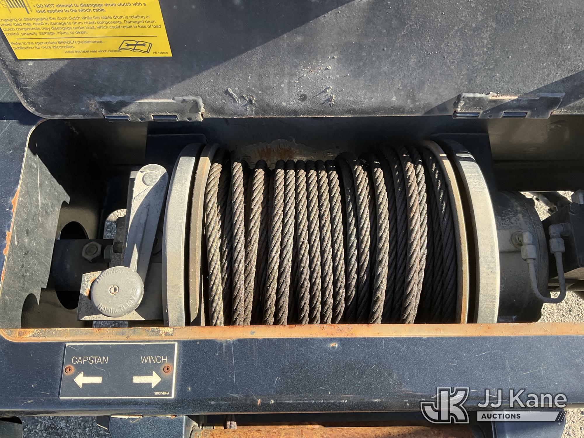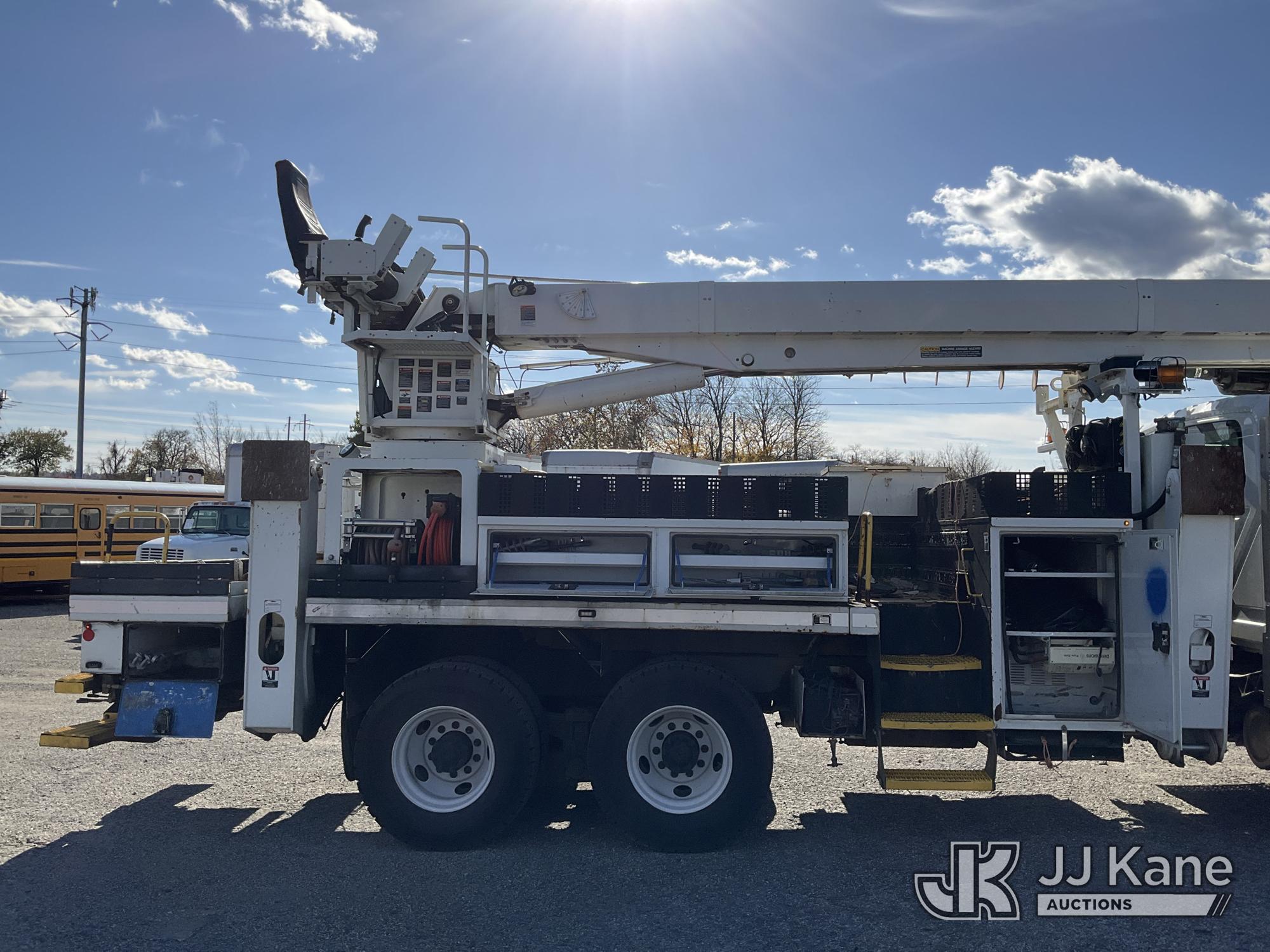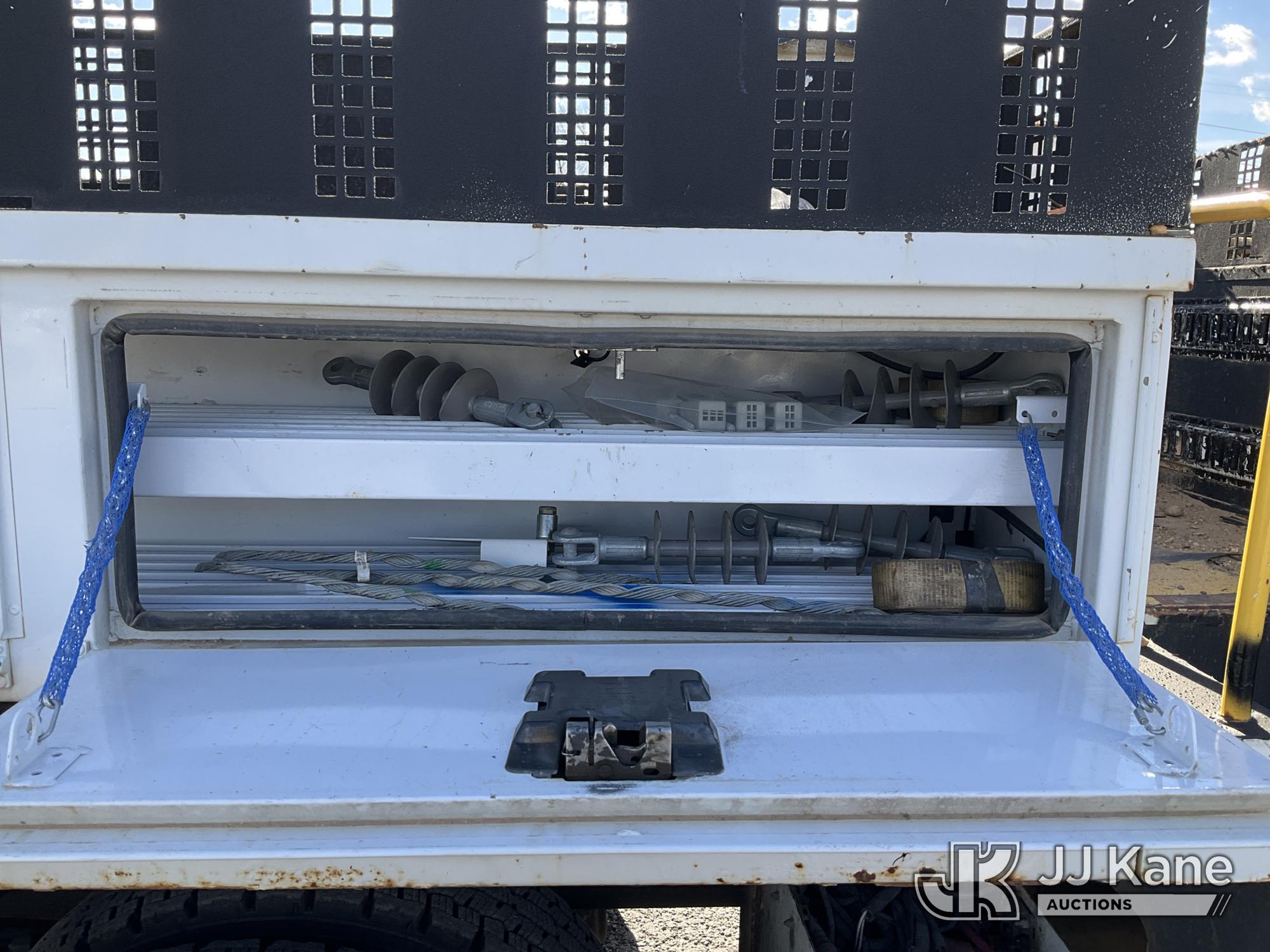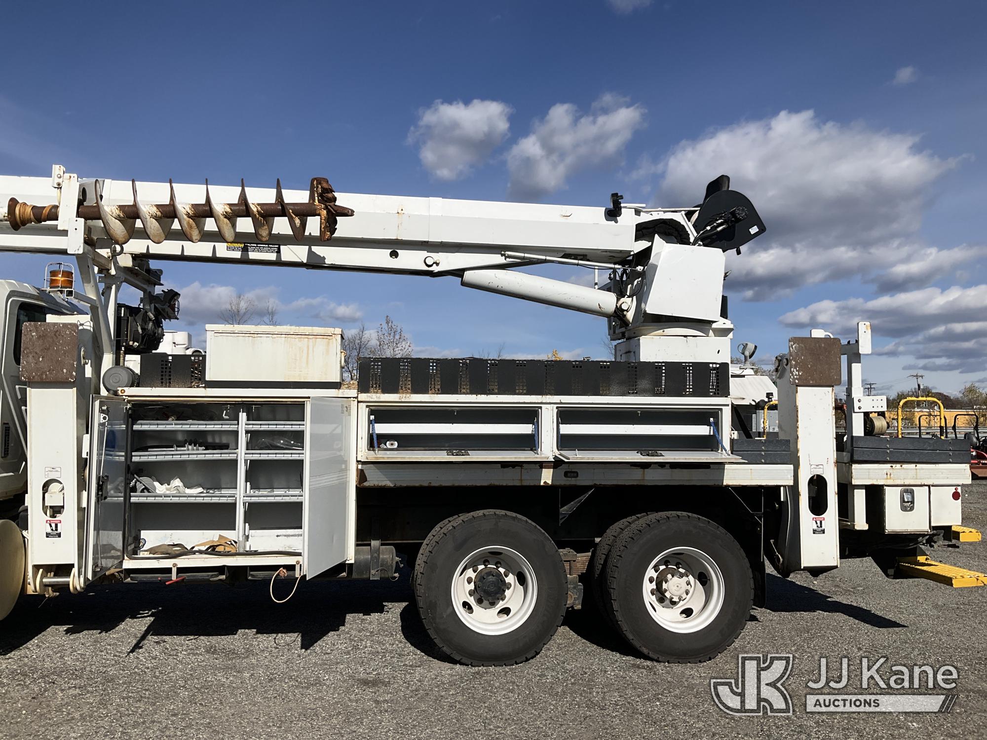 Altec D4055-BTR, 30,000 Lb Digger Derrick s/n 0817FV0252, with 55ft Sheave Ht, 3) section Hyd. Boom, Heel Winch, Pole Grabs, Riding Console, & 4 Outriggers, rear mounted on 2018 International 7500 T/A Utility/Flatbed Truck, MaxxForce diesel, Auto, A/C, with Front Bumper Winch, Vanair Compressor, (32,778 miles) (Runs Moves & Upper Operates, Body & Rust Damage. The manufacturer has notified JJ Kane that this equipment is subject to an open recall (CSN 3064 - Pole Rack Weld Inspection). The equipment should not be operated until this is addressed. Buyer is responsible for reviewing the recall notice and contacting the manufacturer to schedule the recommended corrective actions. Associated costs may be covered by the manufacturer in some cases.) This is a Titled Item*