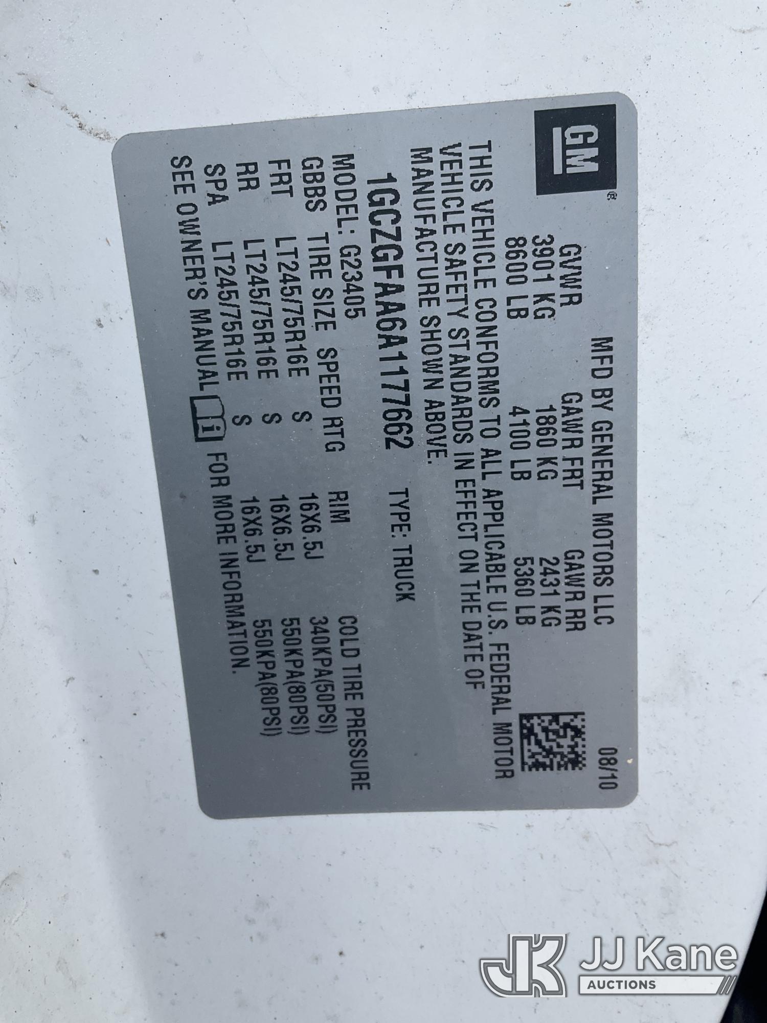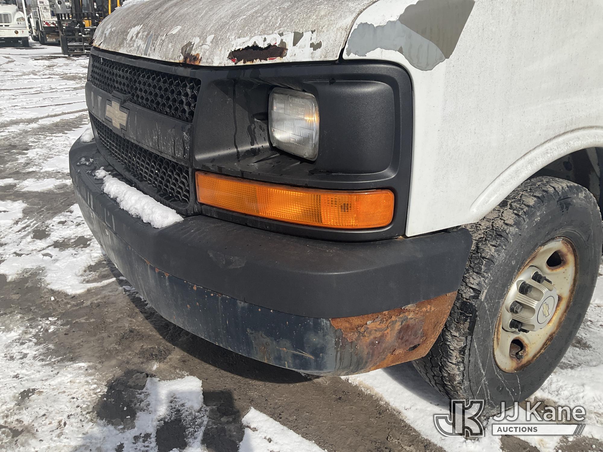 2010 Chevrolet Express G2500 Cargo Van, 8-cyl gas, Auto, A/C, (145,561 miles) (Runs) (Jump To Start, Bad Trans - Does Not Move, ABS Light On, Severe Rust Damage, Missing Mirror, Must Tow, Buyer Must Load) This is a Titled Item*