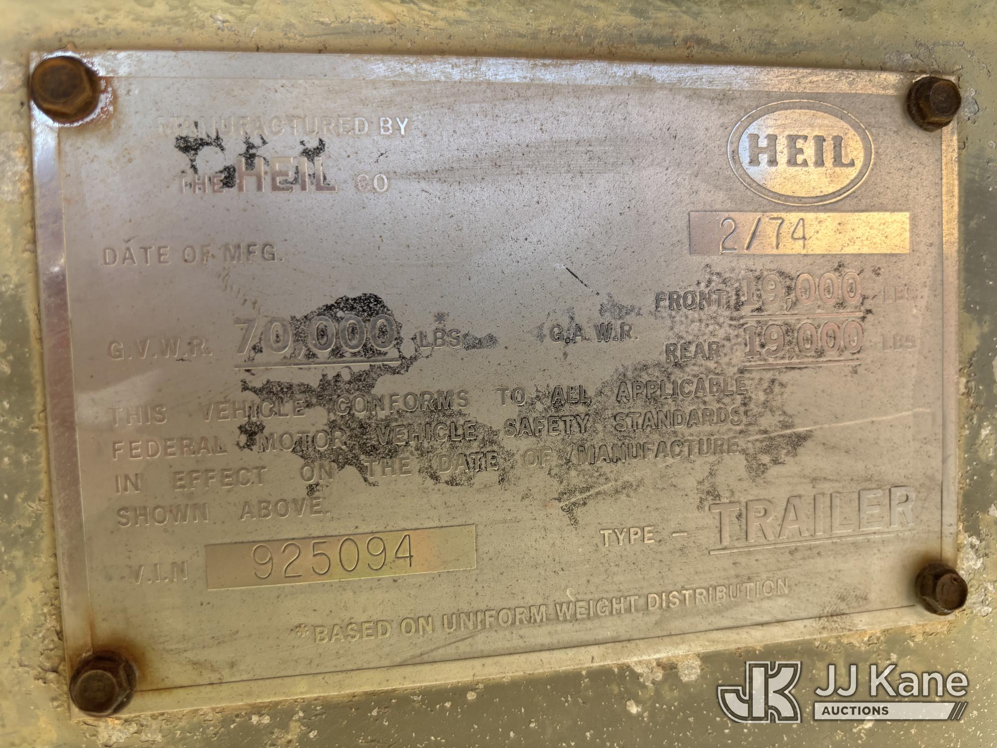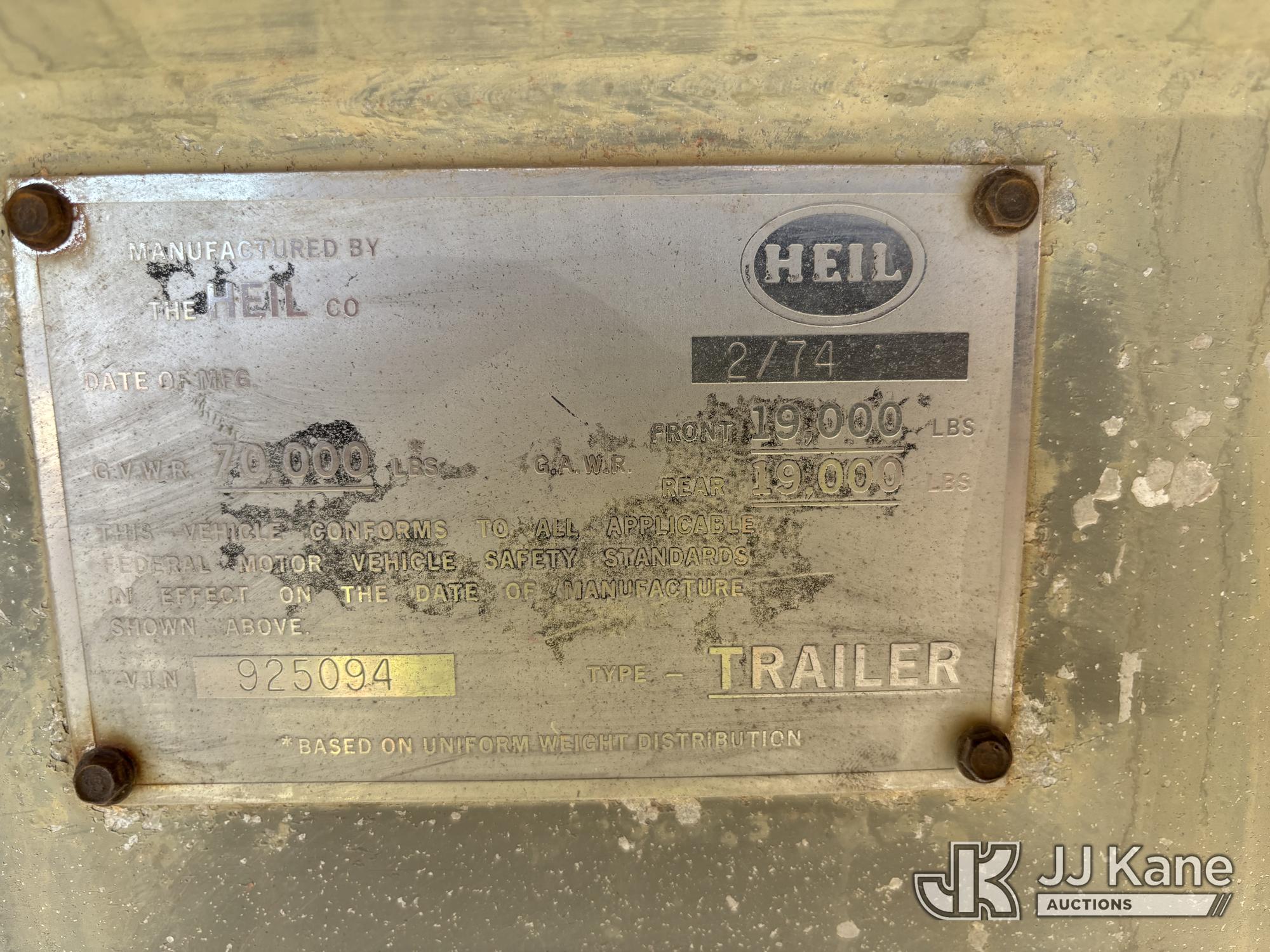 1974 Heil Tri-Axle Tank Trailer, with 10,000 gallon fuel tank, GVWR 70,000lbs, (Will Need Six Tires) This is a Titled Item*