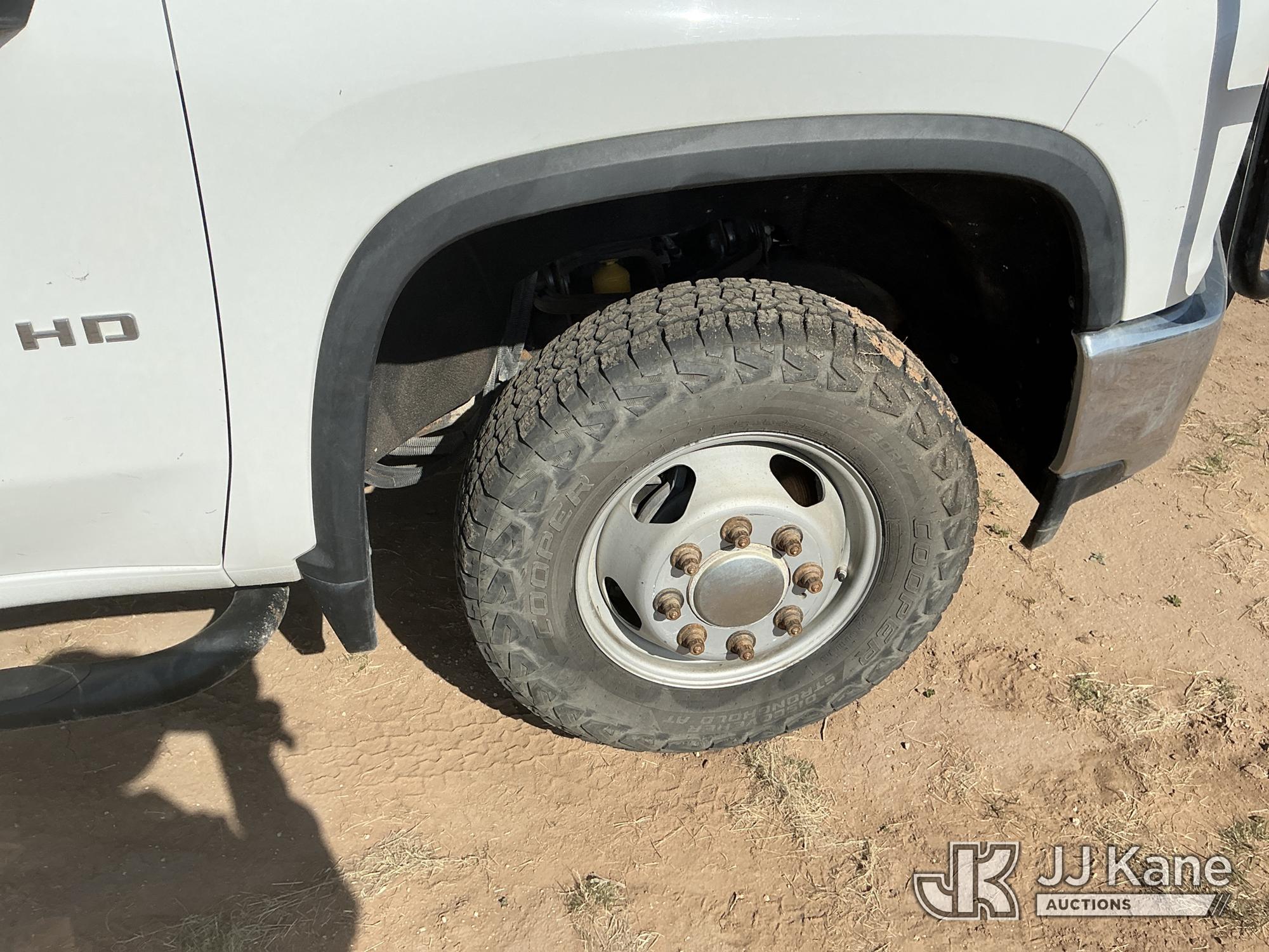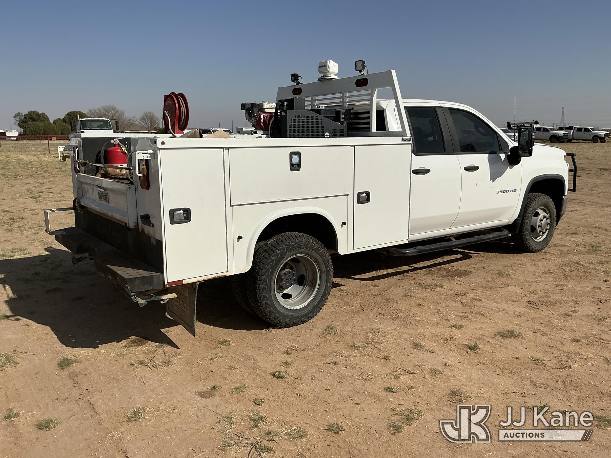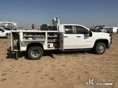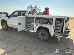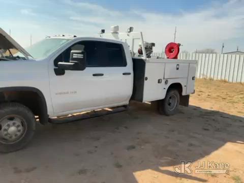 2020 Chevrolet Silverado 3500HD Extended-Cab Service Truck, 8-cyl gas, 4wd, 6-Speed Automatic, A/C, with heavy duty front brush guard, air compressor, pump motor, hoses, passenger side service compartment mounted power inverter , (101,944 miles) Unit must be picked up within 10 calendar days or a $39.99/day storage fee and a $22.95 + plus tax impound fee will apply. (Runs & Moves)(Check Engine Light On, Paint & Body Damage) (Reads 6,081 hours) This is a Titled Item*