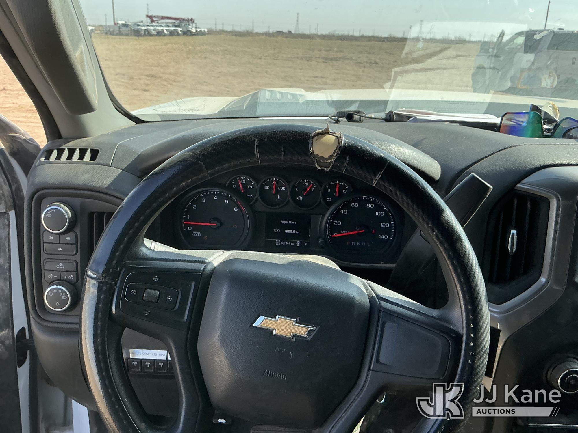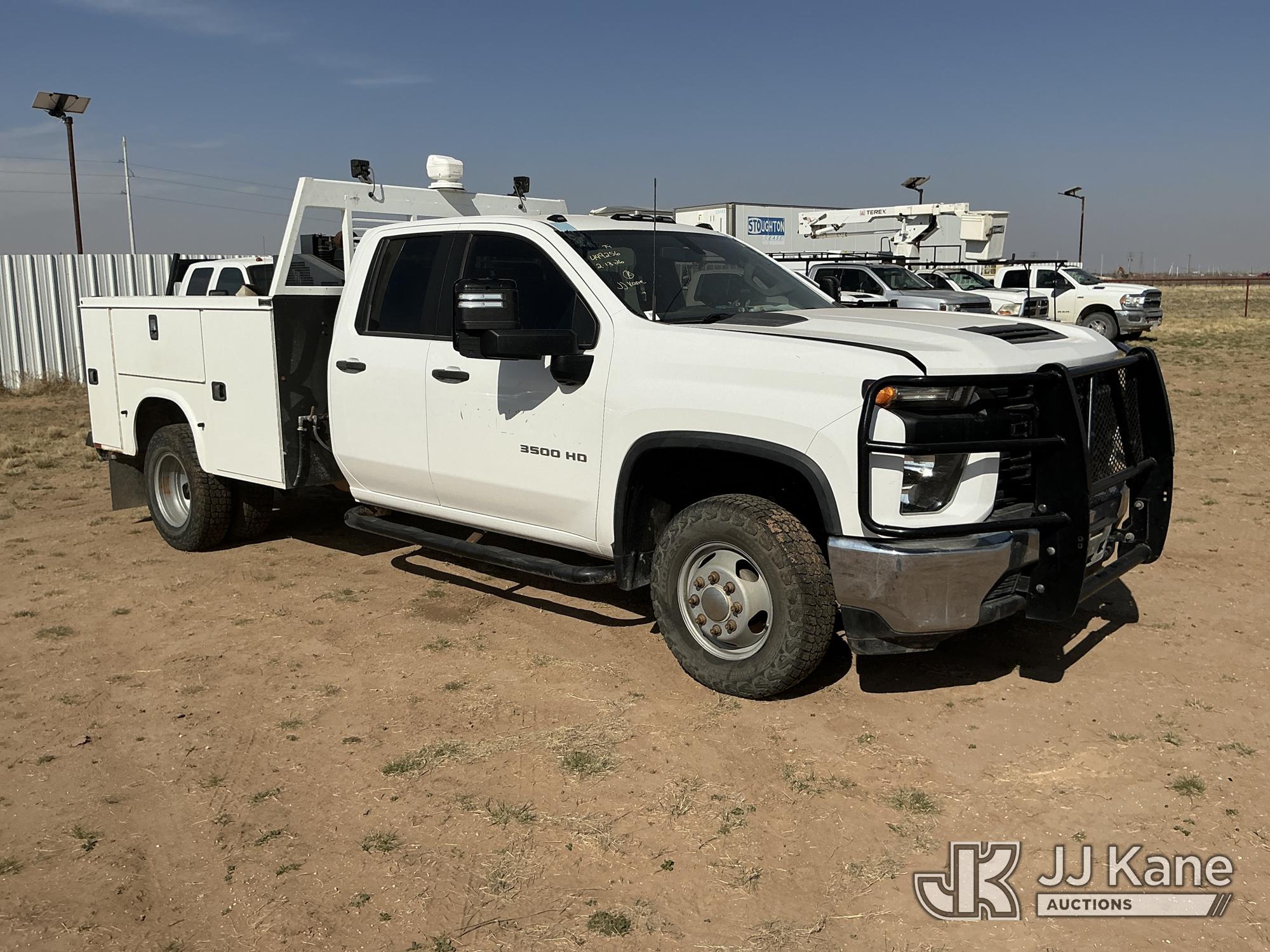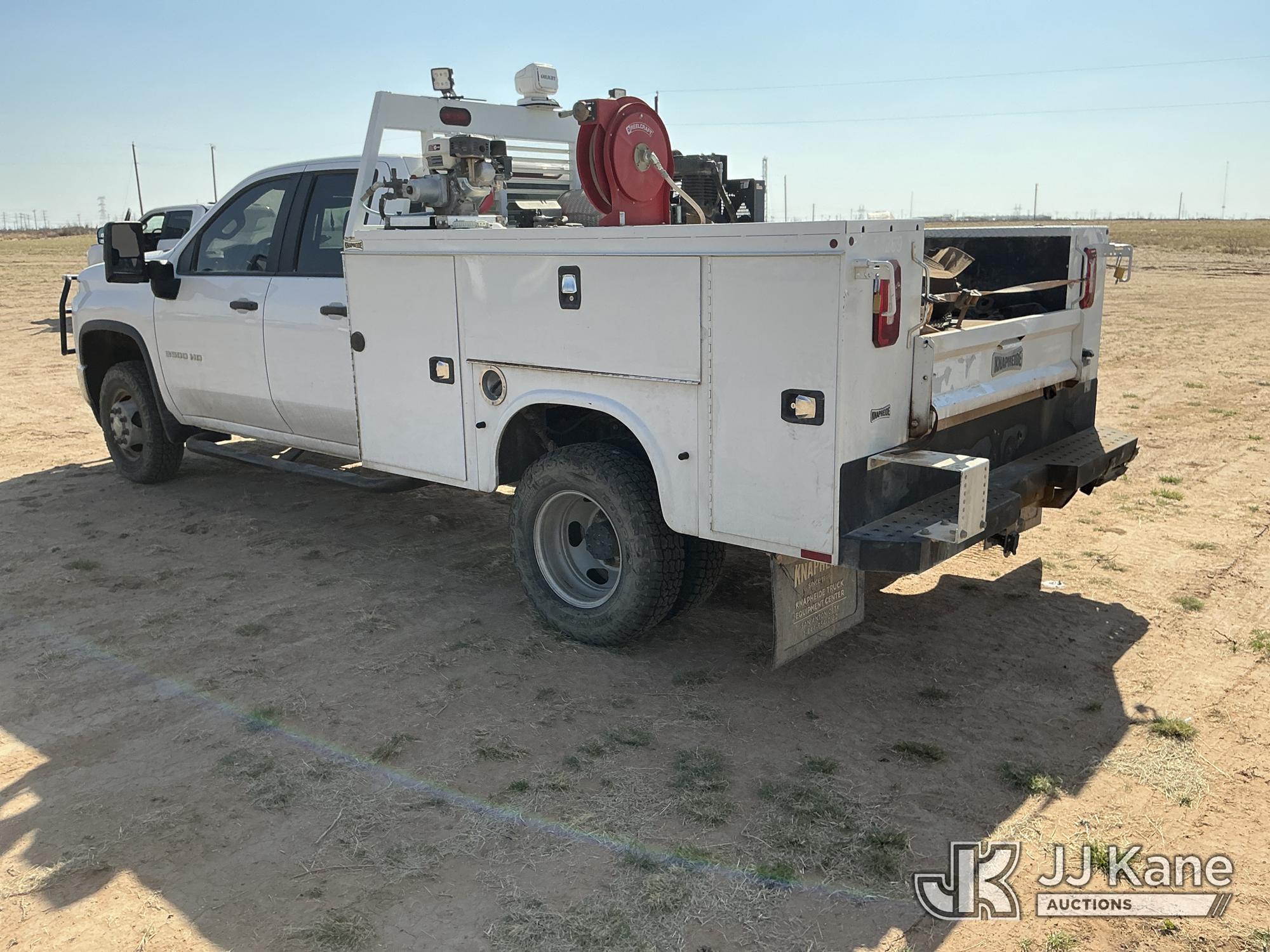 2020 Chevrolet Silverado 3500HD Extended-Cab Service Truck, 8-cyl gas, 4wd, 6-Speed Automatic, A/C, with heavy duty front brush guard, air compressor, pump motor, hoses, passenger side service compartment mounted power inverter , (101,944 miles) Unit must be picked up within 10 calendar days or a $39.99/day storage fee and a $22.95 + plus tax impound fee will apply. (Runs & Moves)(Check Engine Light On, Paint & Body Damage) (Reads 6,081 hours) This is a Titled Item*