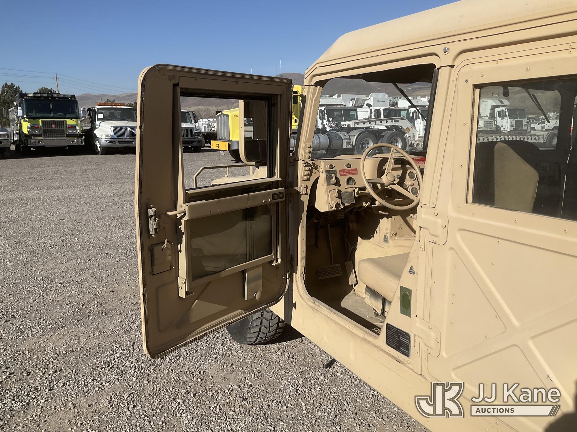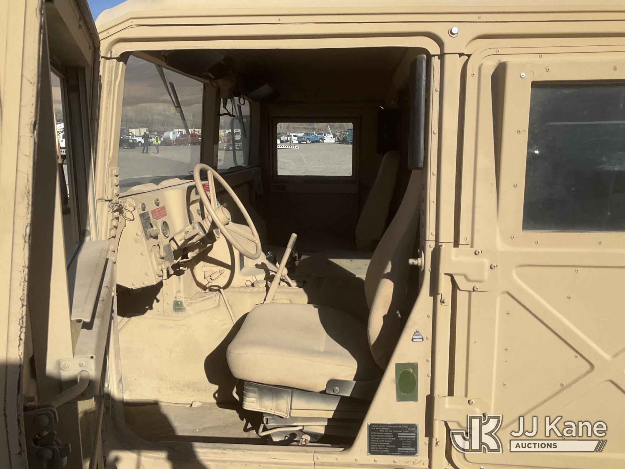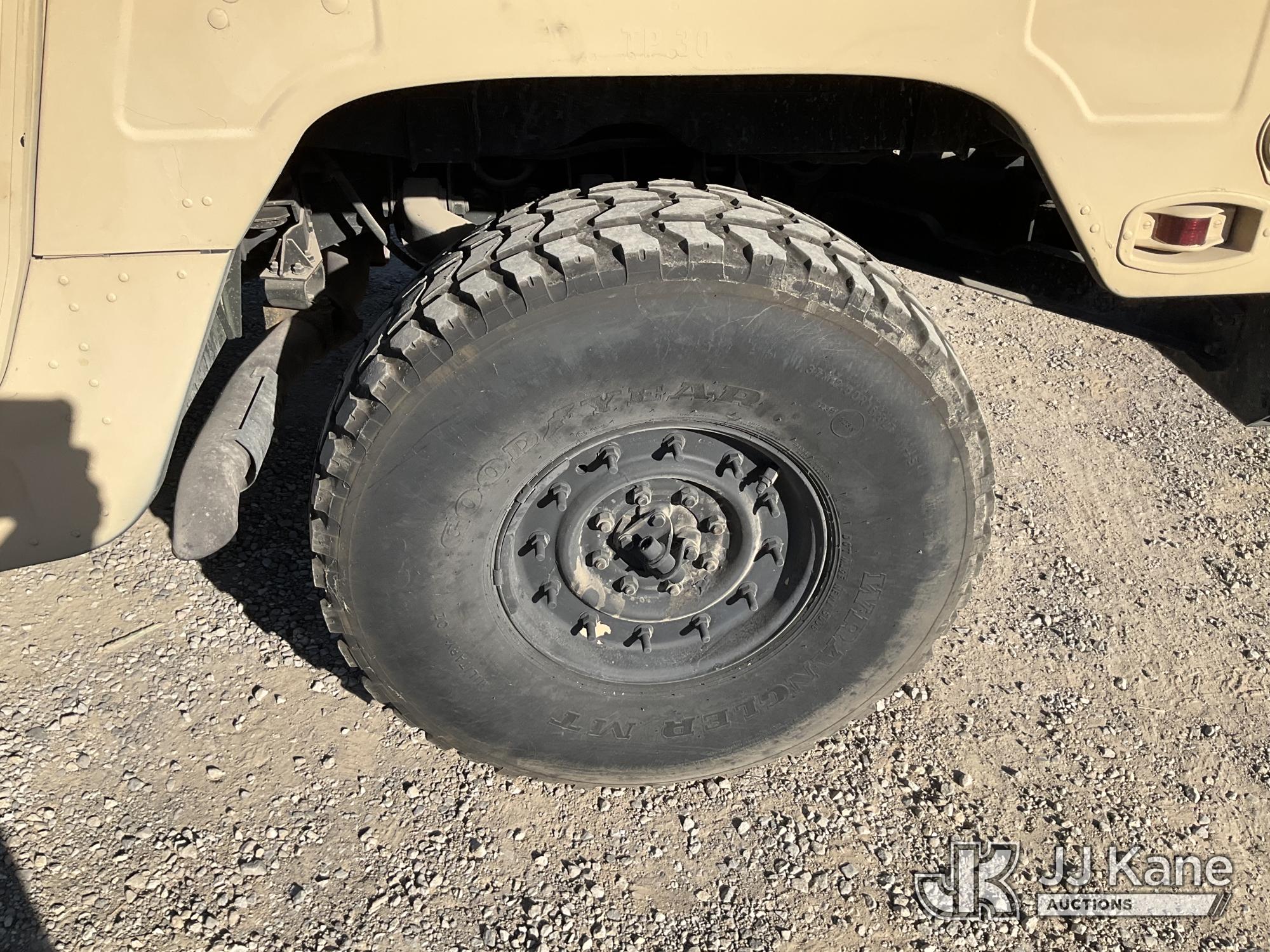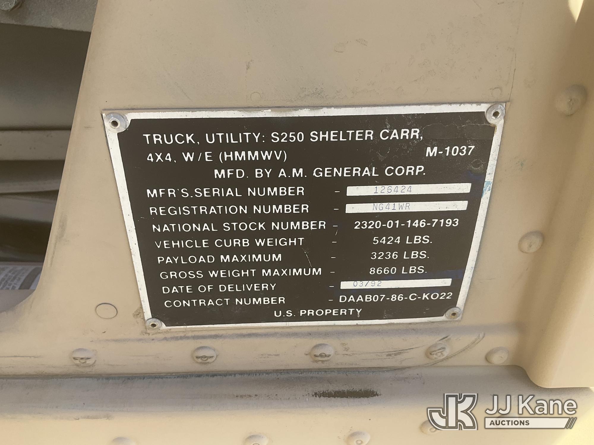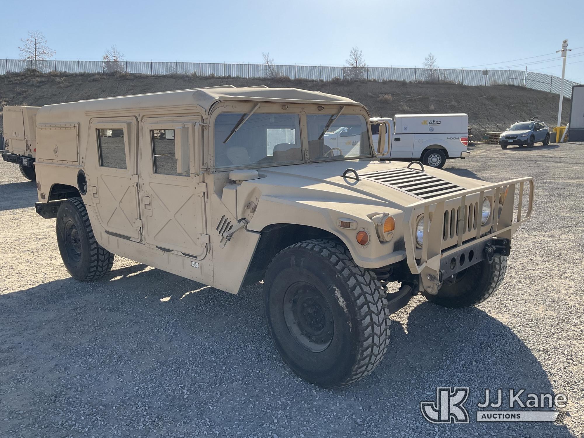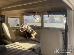 1992 AM General Hummer 4x4 M998 Utility Vehicle, 6.2L Detroit Diesel V8 Diesel, 3-spd Automatic, with Fuel Capacity: 25 gallons, Range: Approx. 350 miles Dimensions: 15 ft (L) x 7.1 ft (W) x 6 ft (H), Weight: 5,200 lbs (Curb), 7,700 lbs (GVWR), Ground Clearance: 16 inches, Suspension: Independent 4x4, (Exempt from Odometer Disclosure - Reads 12,750 miles) (Runs & Moves)(Jump to Start - Bad Batteries) This is a Titled Item*