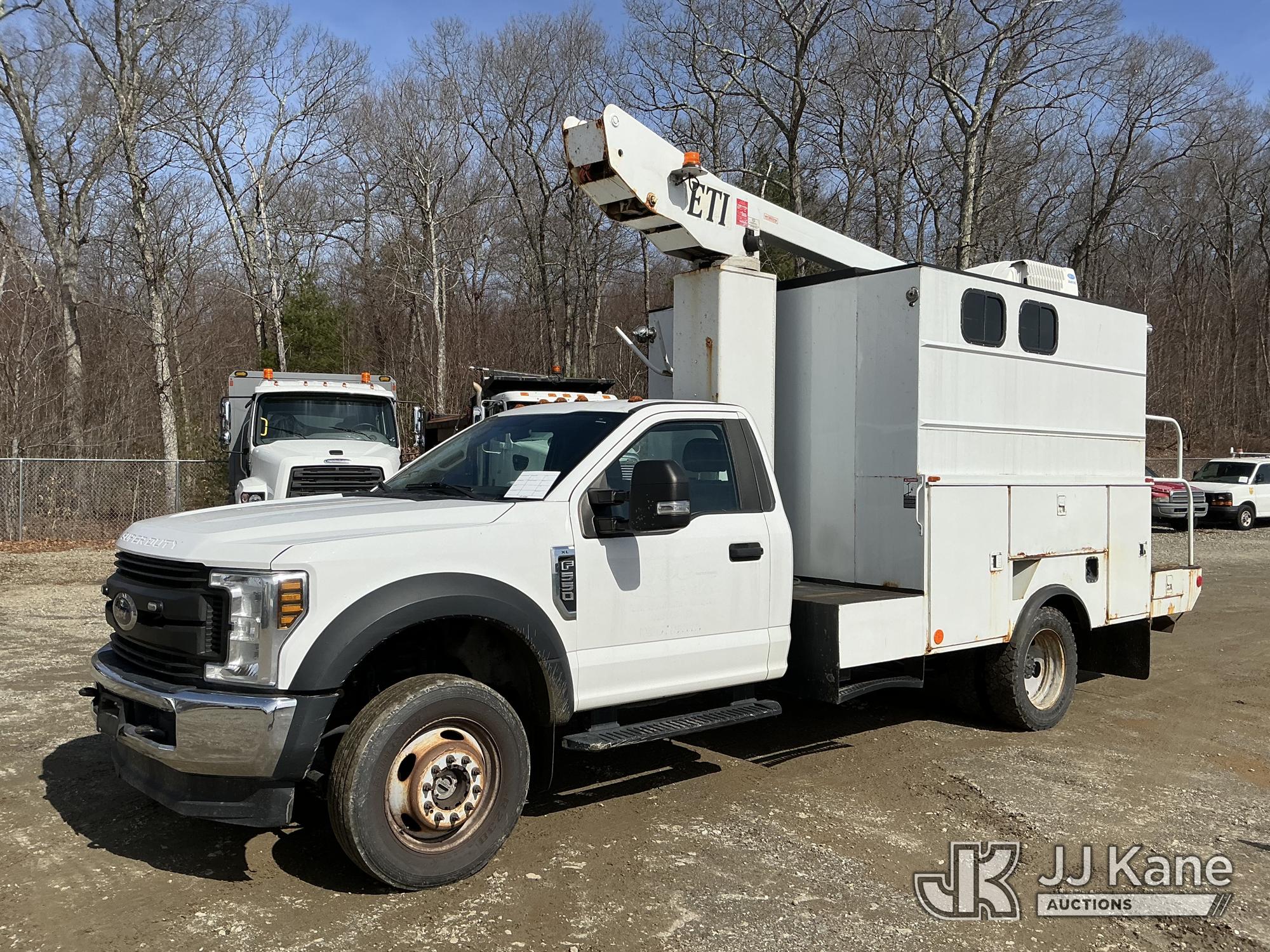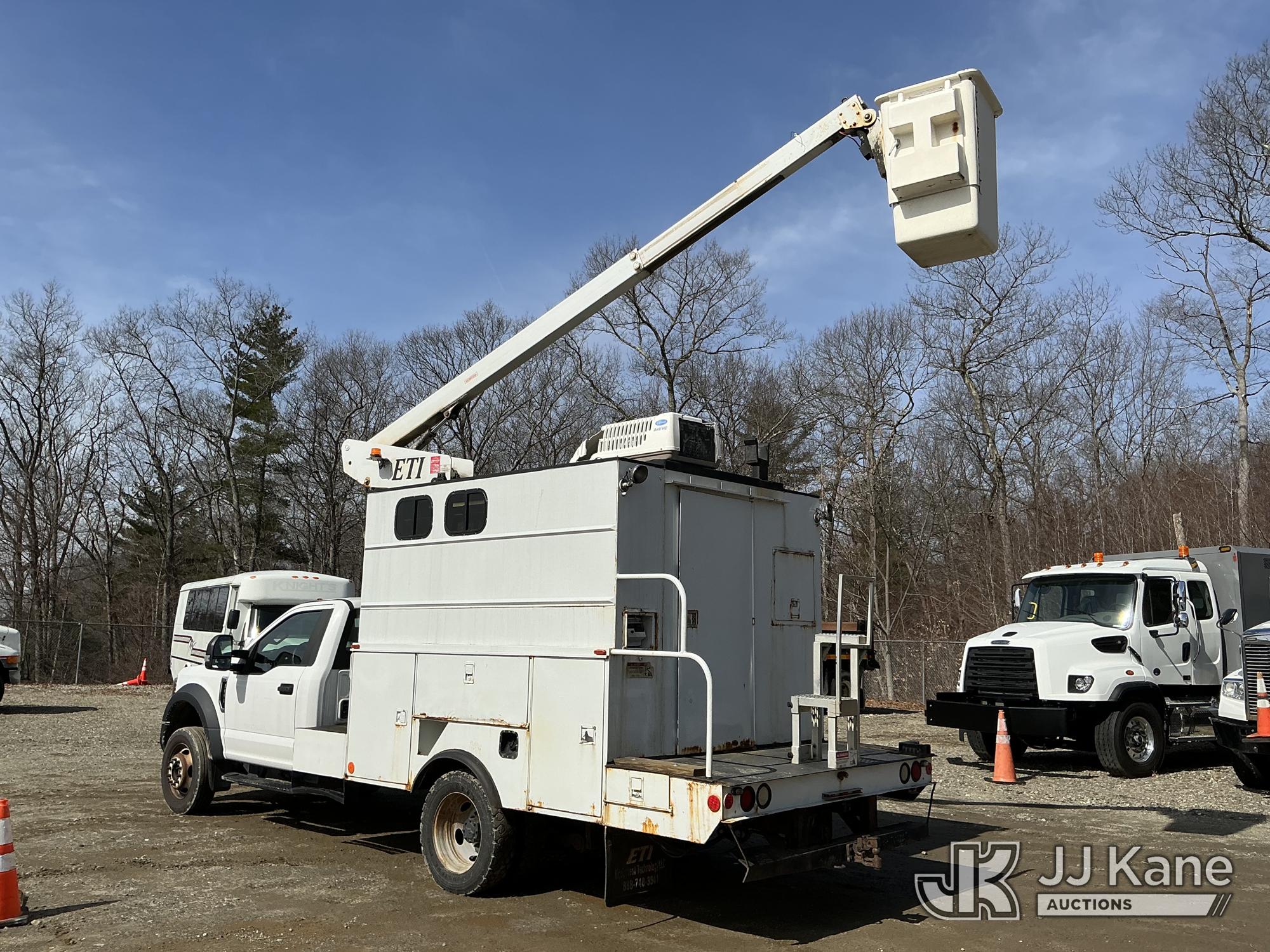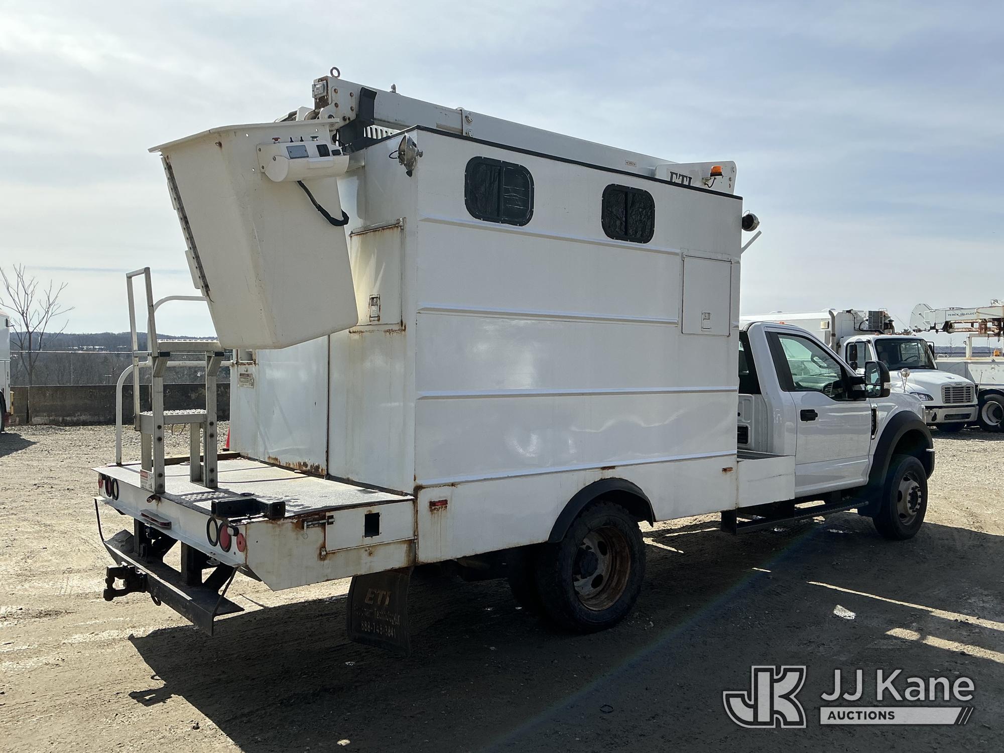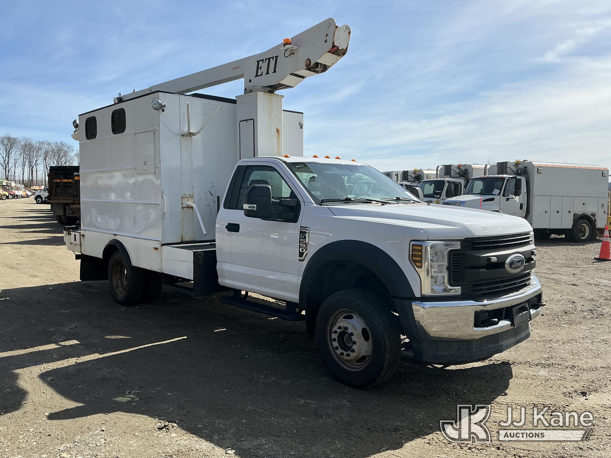 ETI ETT29-SNT, 34 ft, Telescopic Non-Insulated Bucket Truck s/n 0707T95273, with single-man bucket, mounted behind cab on 2019 Ford F-550 Regular Cab DRW 4WD Cable Splicing Truck, 6.8L V10 4wd, Gas, Auto, A/C, with roof top A/C, (109,059 miles) (Runs, Moves & Upper Operates) This is a Titled Item*
