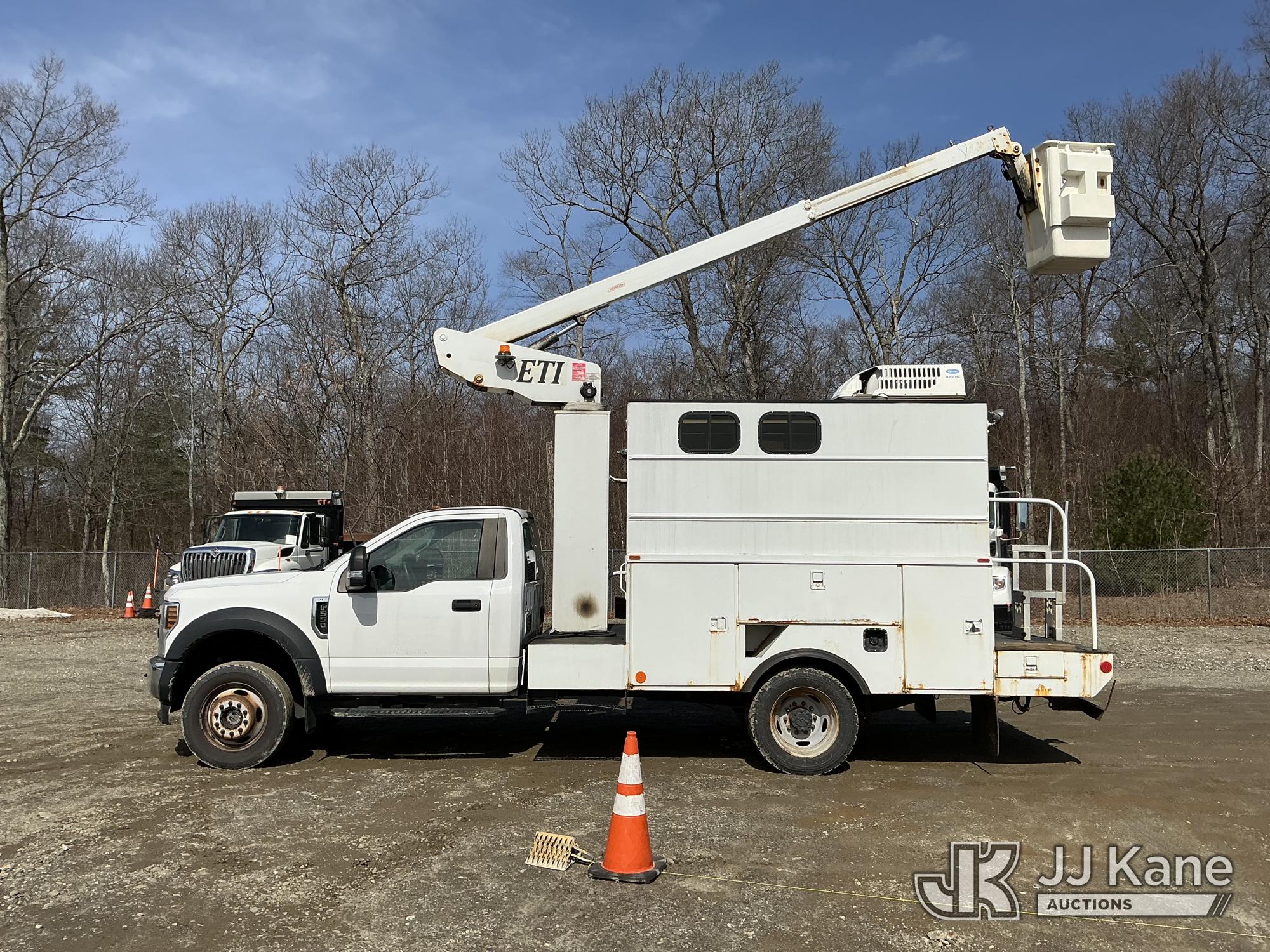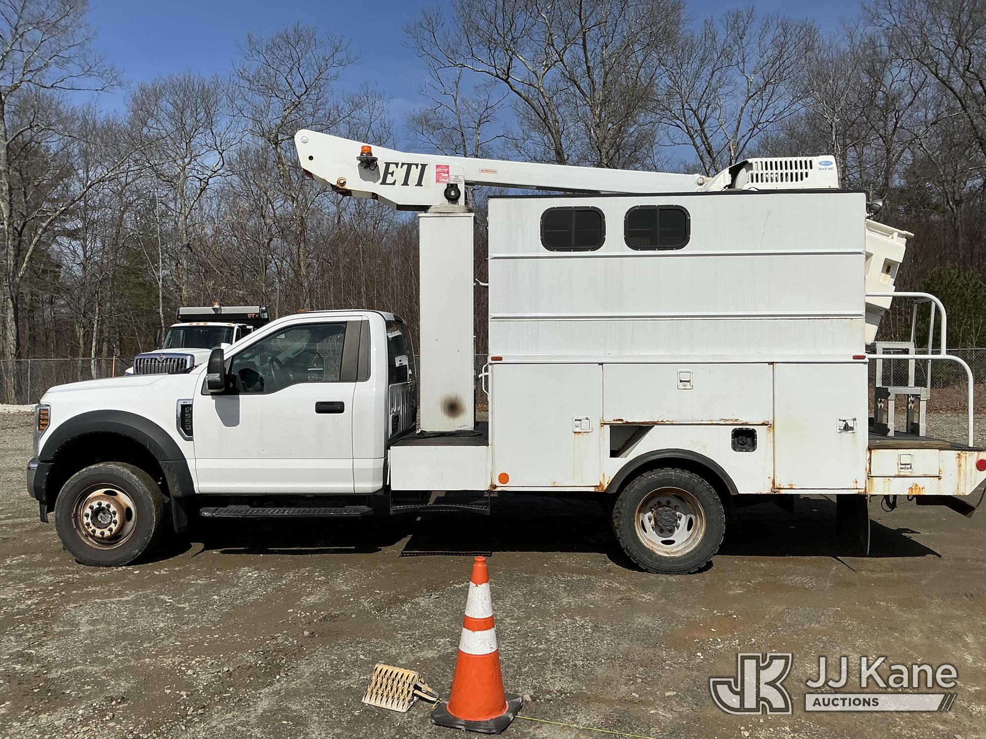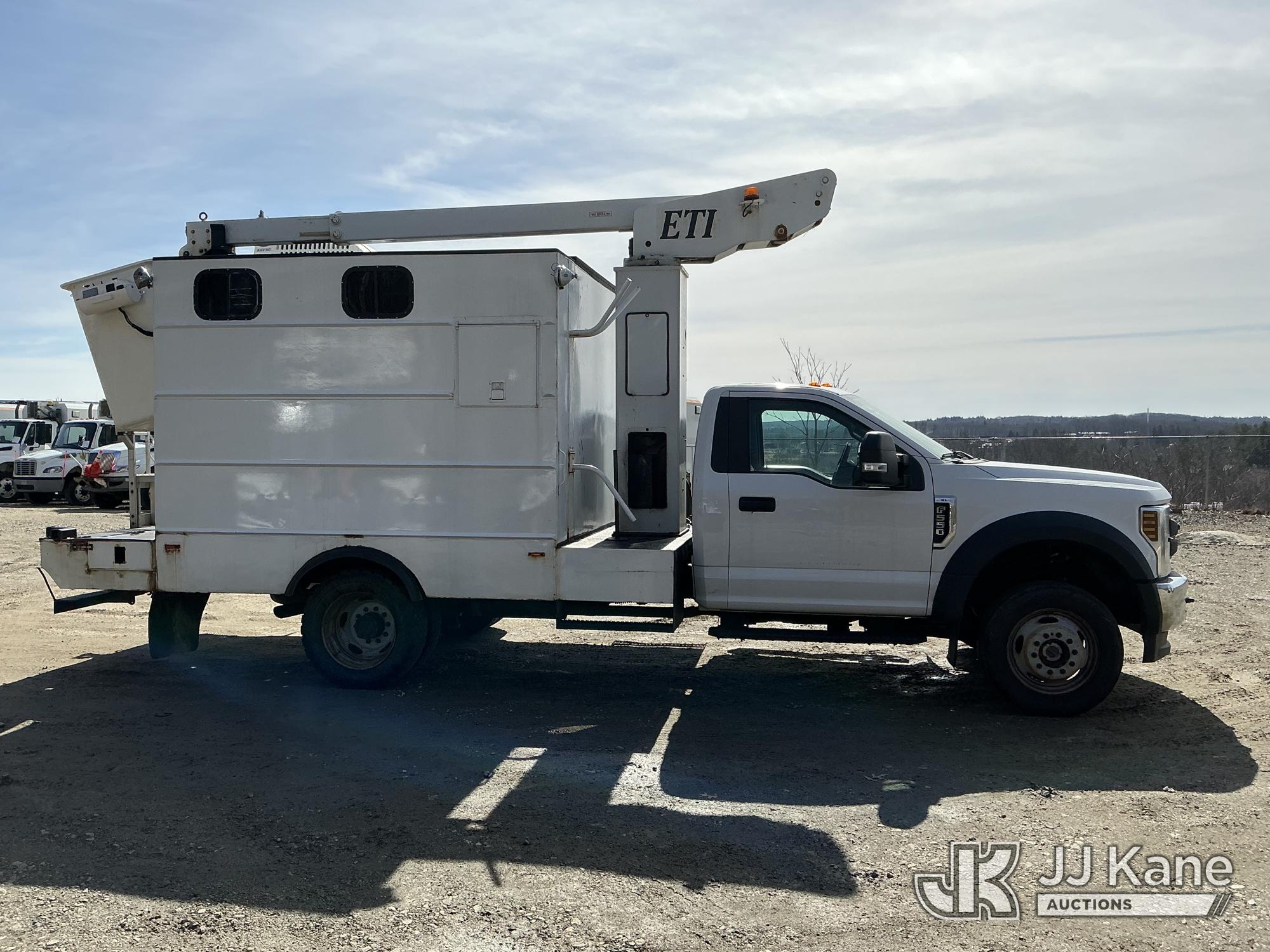 ETI ETT29-SNT, 34 ft, Telescopic Non-Insulated Bucket Truck s/n 0707T95273, with single-man bucket, mounted behind cab on 2019 Ford F-550 Regular Cab DRW 4WD Cable Splicing Truck, 6.8L V10 4wd, Gas, Auto, A/C, with roof top A/C, (109,059 miles) (Runs, Moves & Upper Operates) This is a Titled Item*