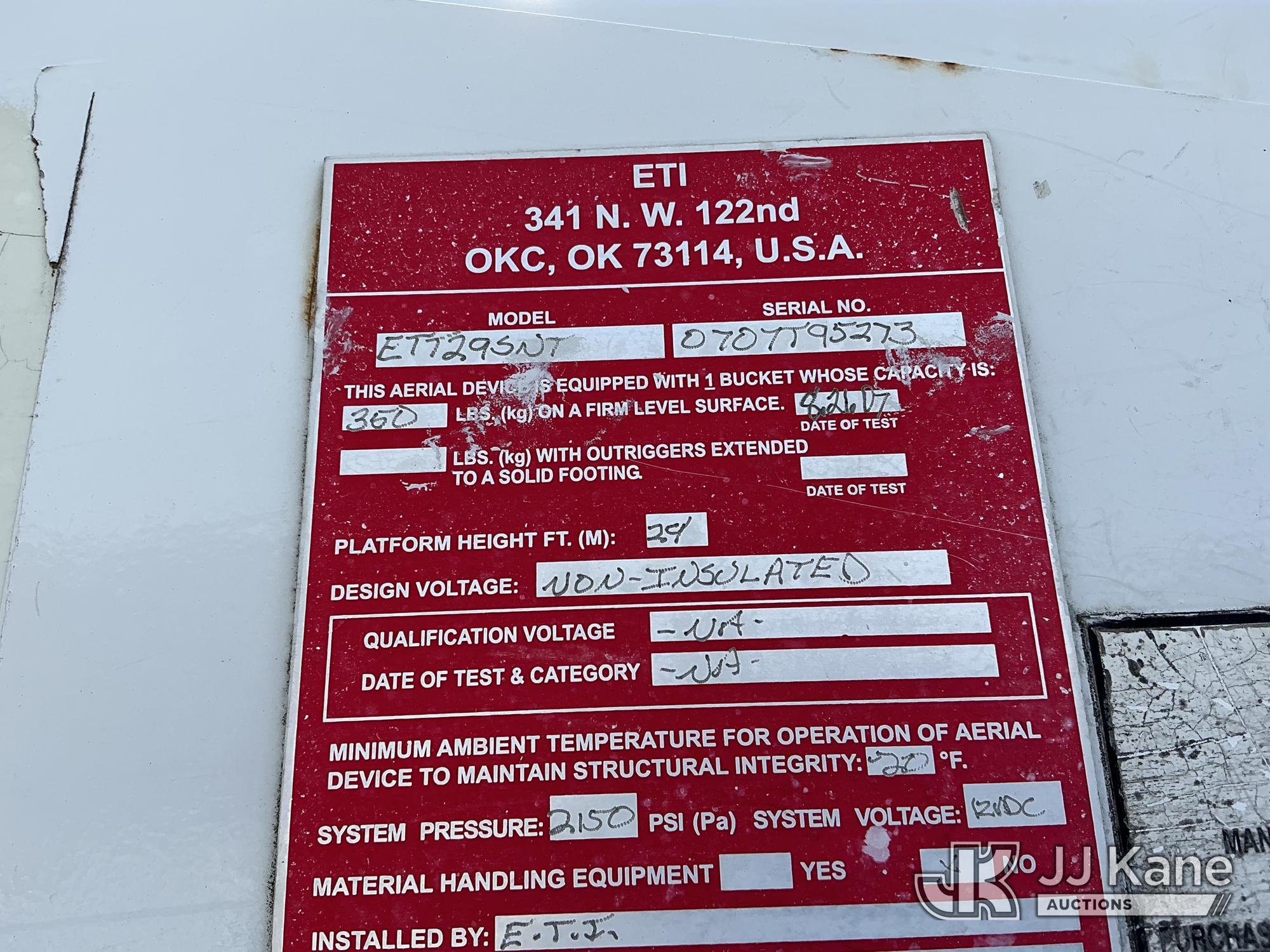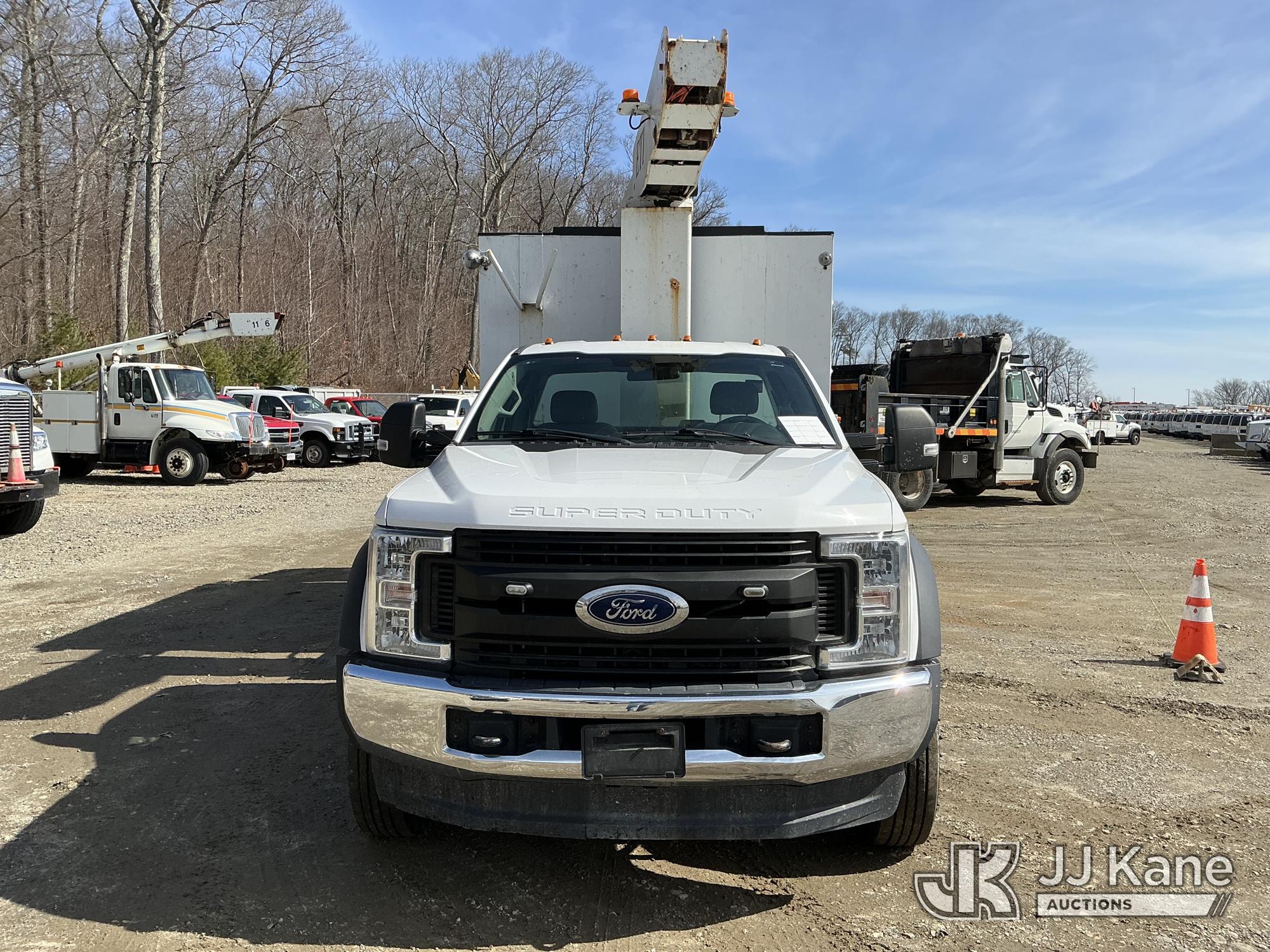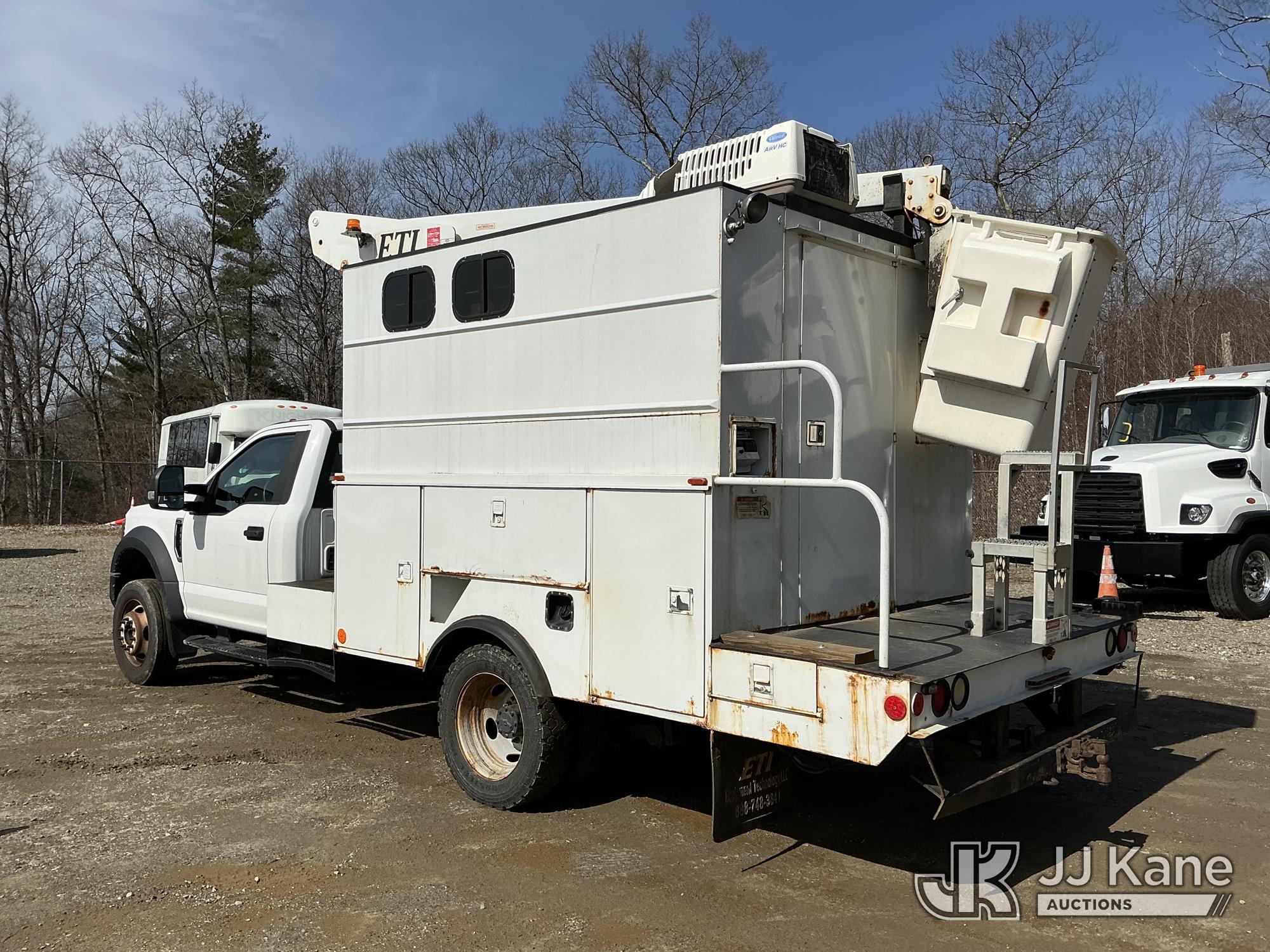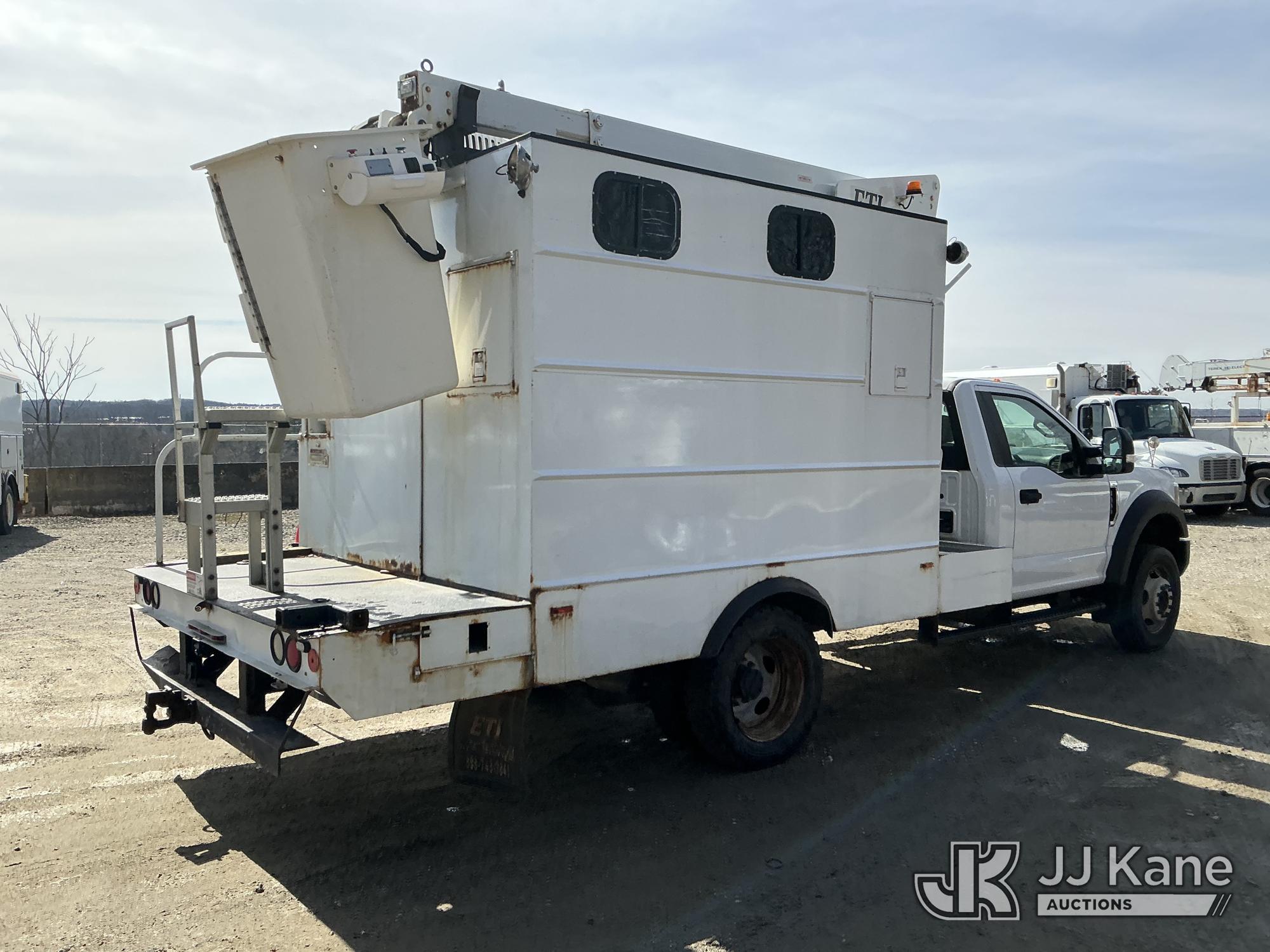 ETI ETT29-SNT, 34 ft, Telescopic Non-Insulated Bucket Truck s/n 0707T95273, with single-man bucket, mounted behind cab on 2019 Ford F-550 Regular Cab DRW 4WD Cable Splicing Truck, 6.8L V10 4wd, Gas, Auto, A/C, with roof top A/C, (109,059 miles) (Runs, Moves & Upper Operates) This is a Titled Item*