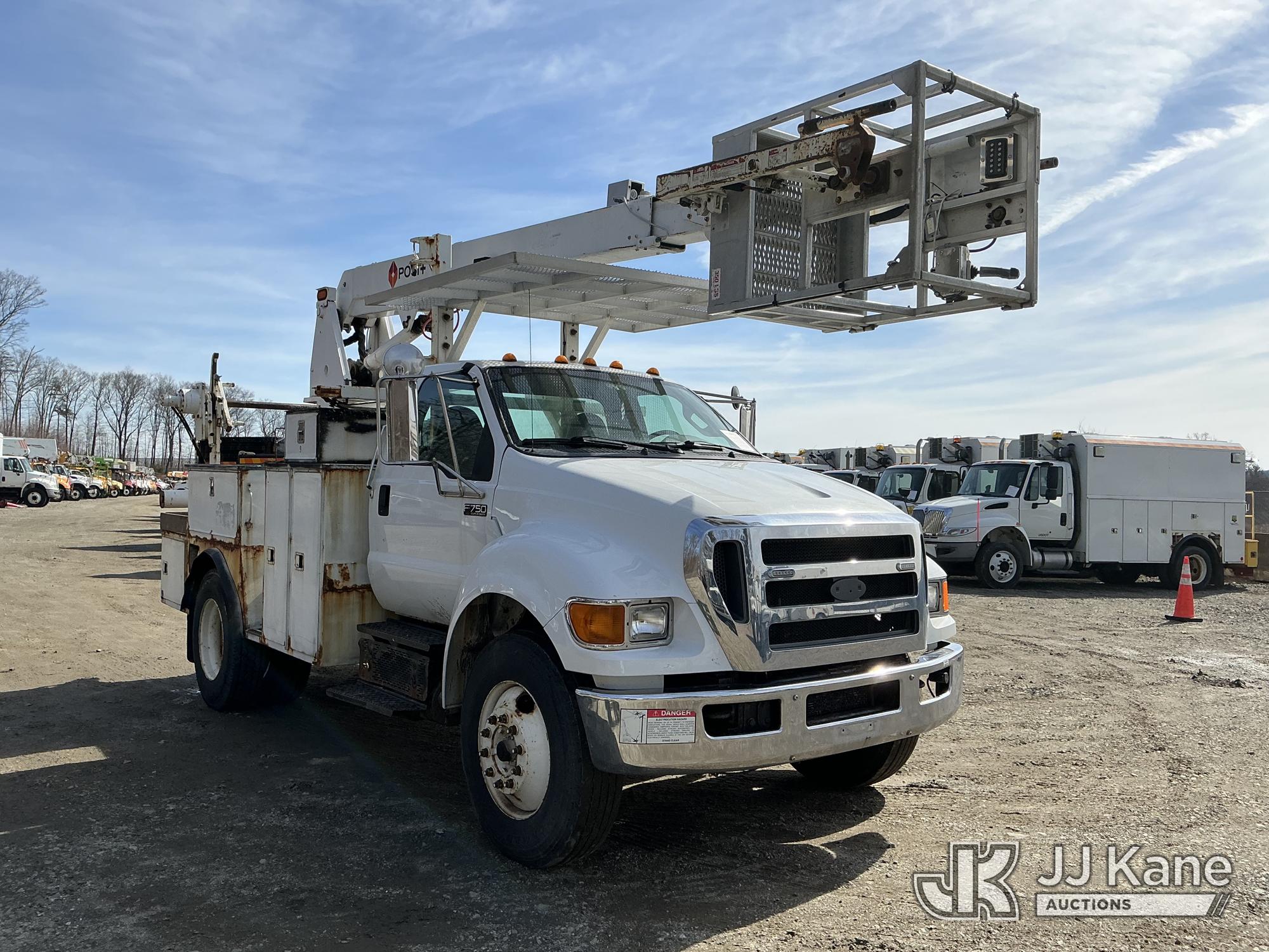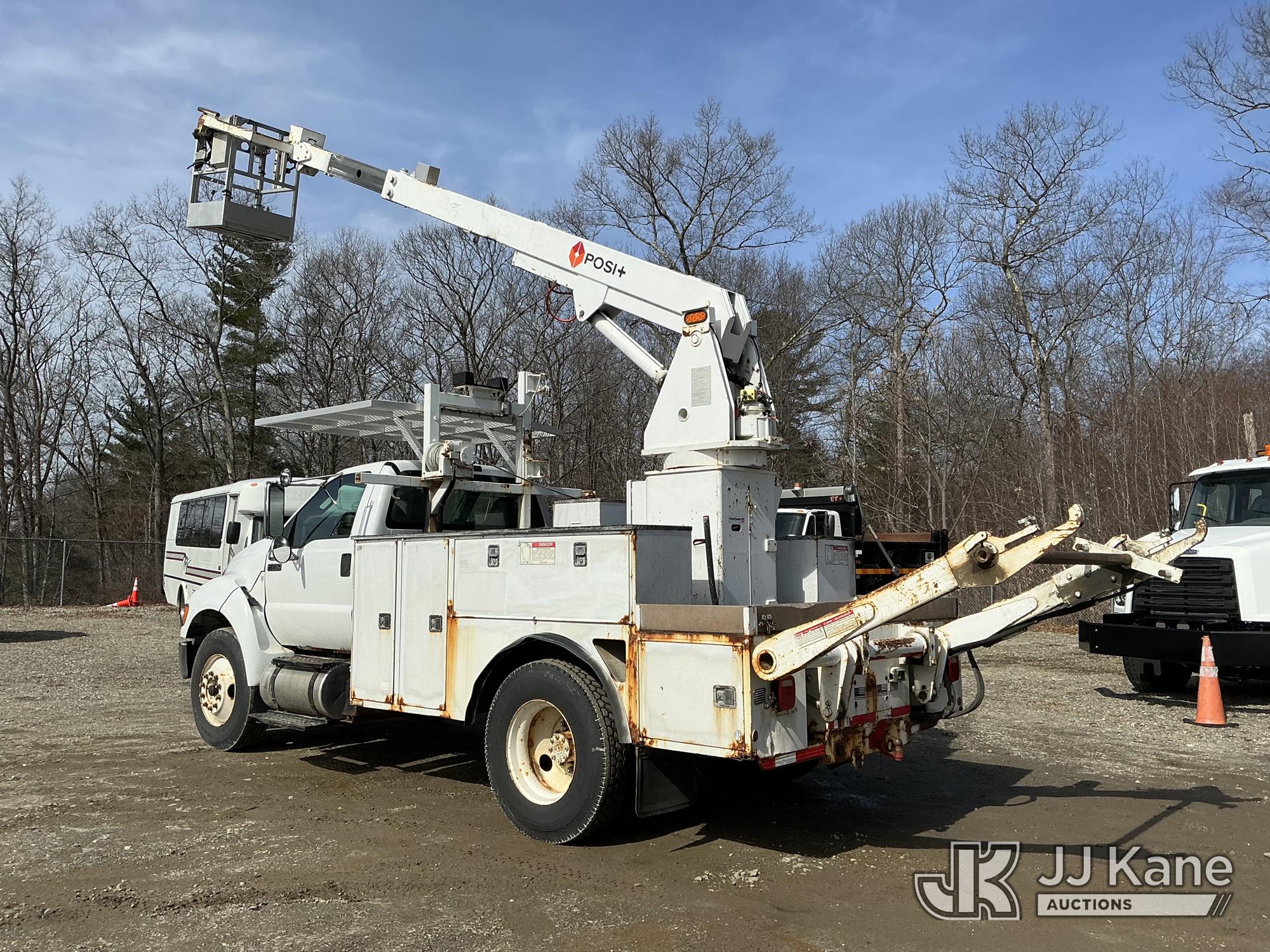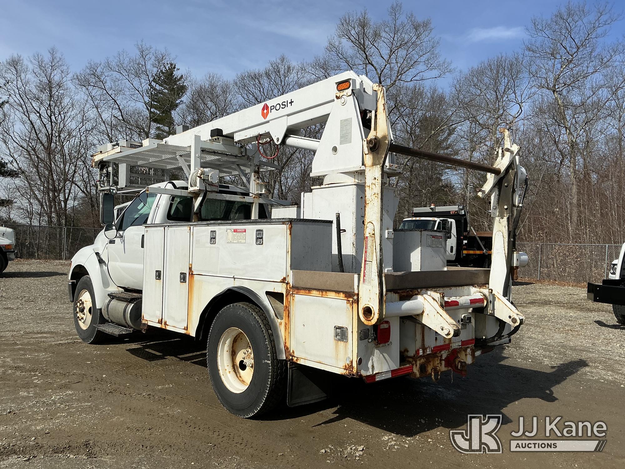 Posi Plus 800-40-015, 40 ft, Telescopic Cable Placing Bucket Truck s/n 12077913116, with single-man basket, rear mounted on 2013 Ford F-750 Utility Truck, Cummins 6.7L 4X2, diesel, Auto, A/C, with hyd reel carrier, (136,968 miles) (Runs, Moves & Upper Operates) (Check Engine Lights On) This is a Titled Item*