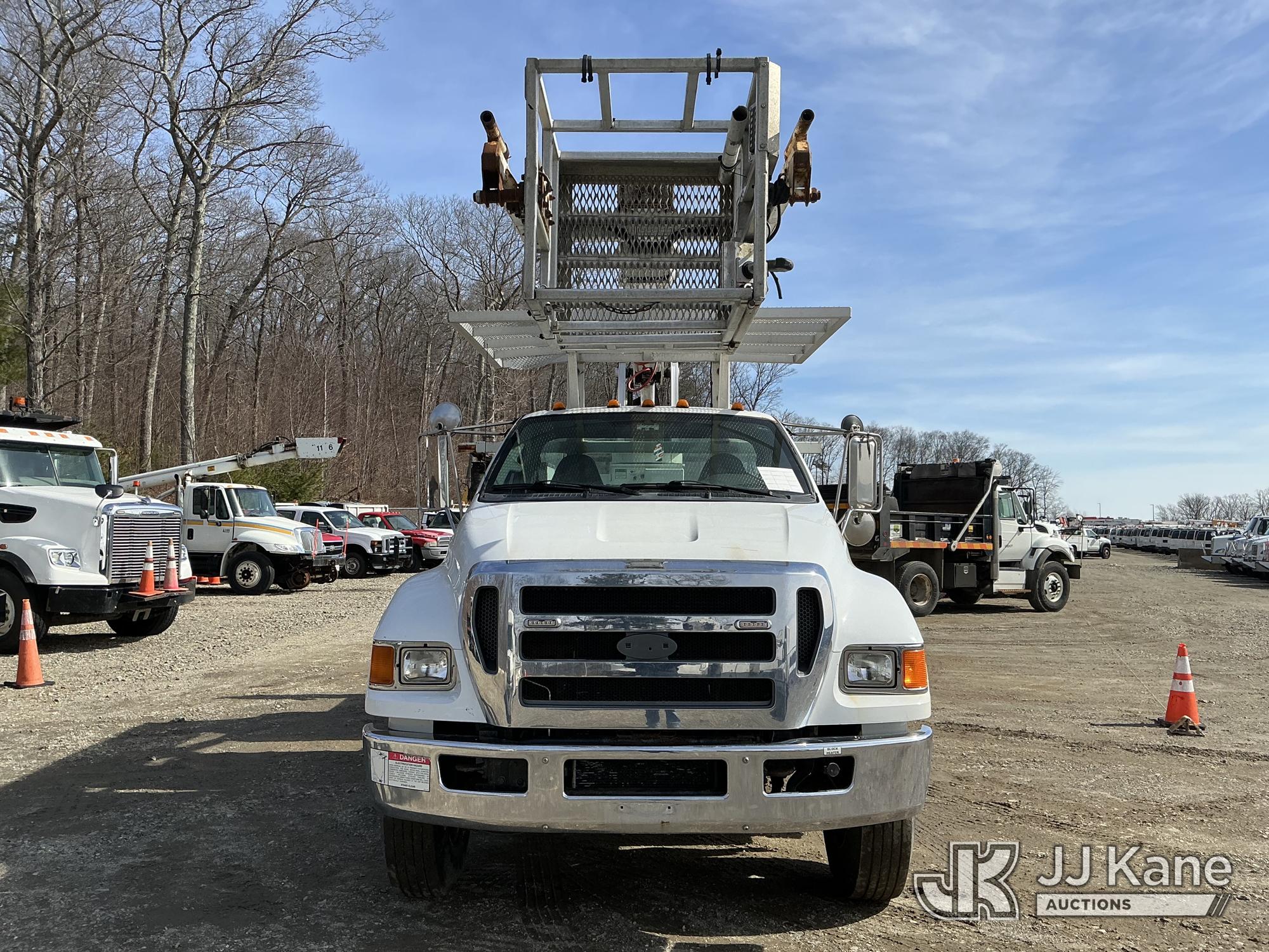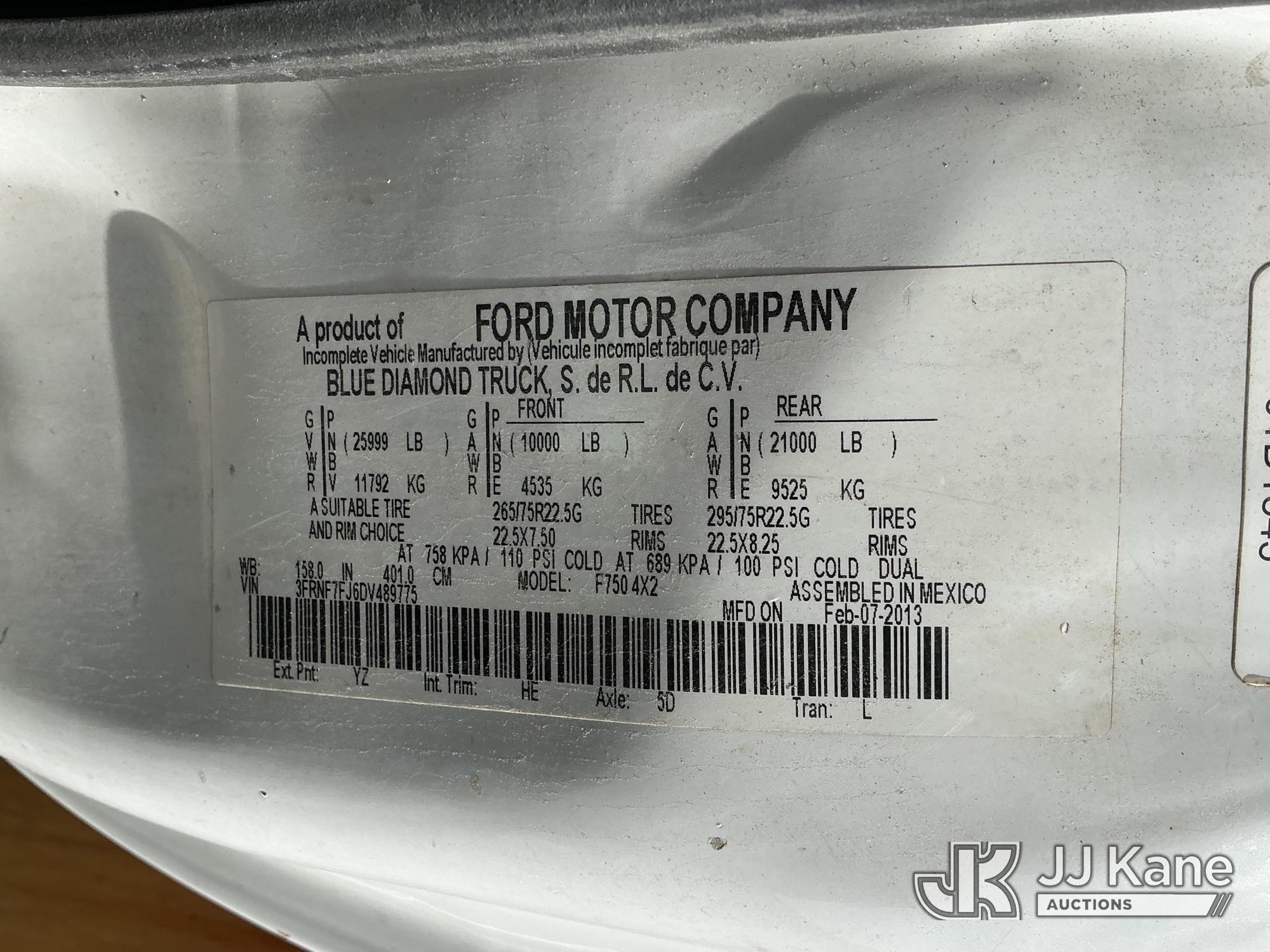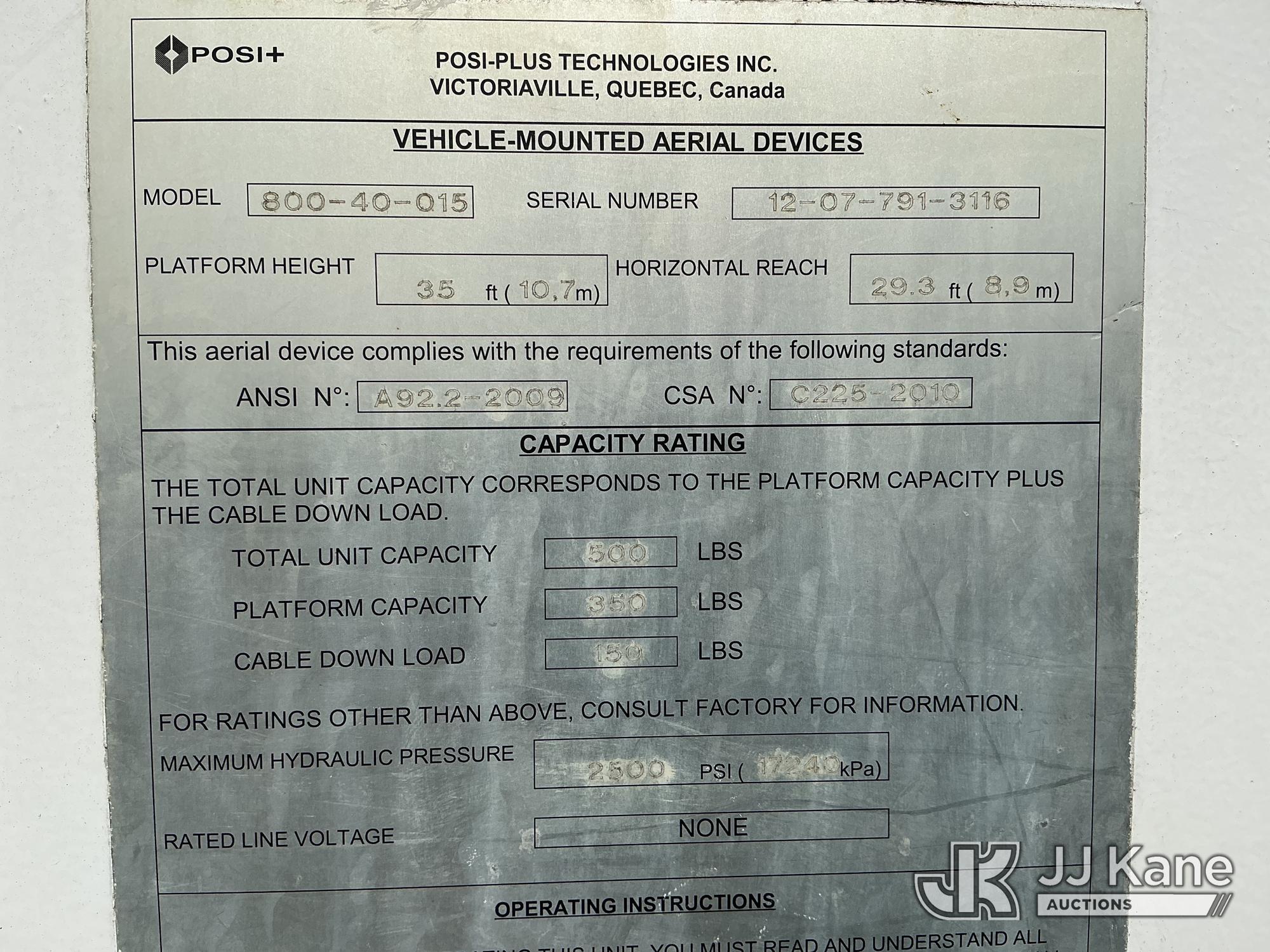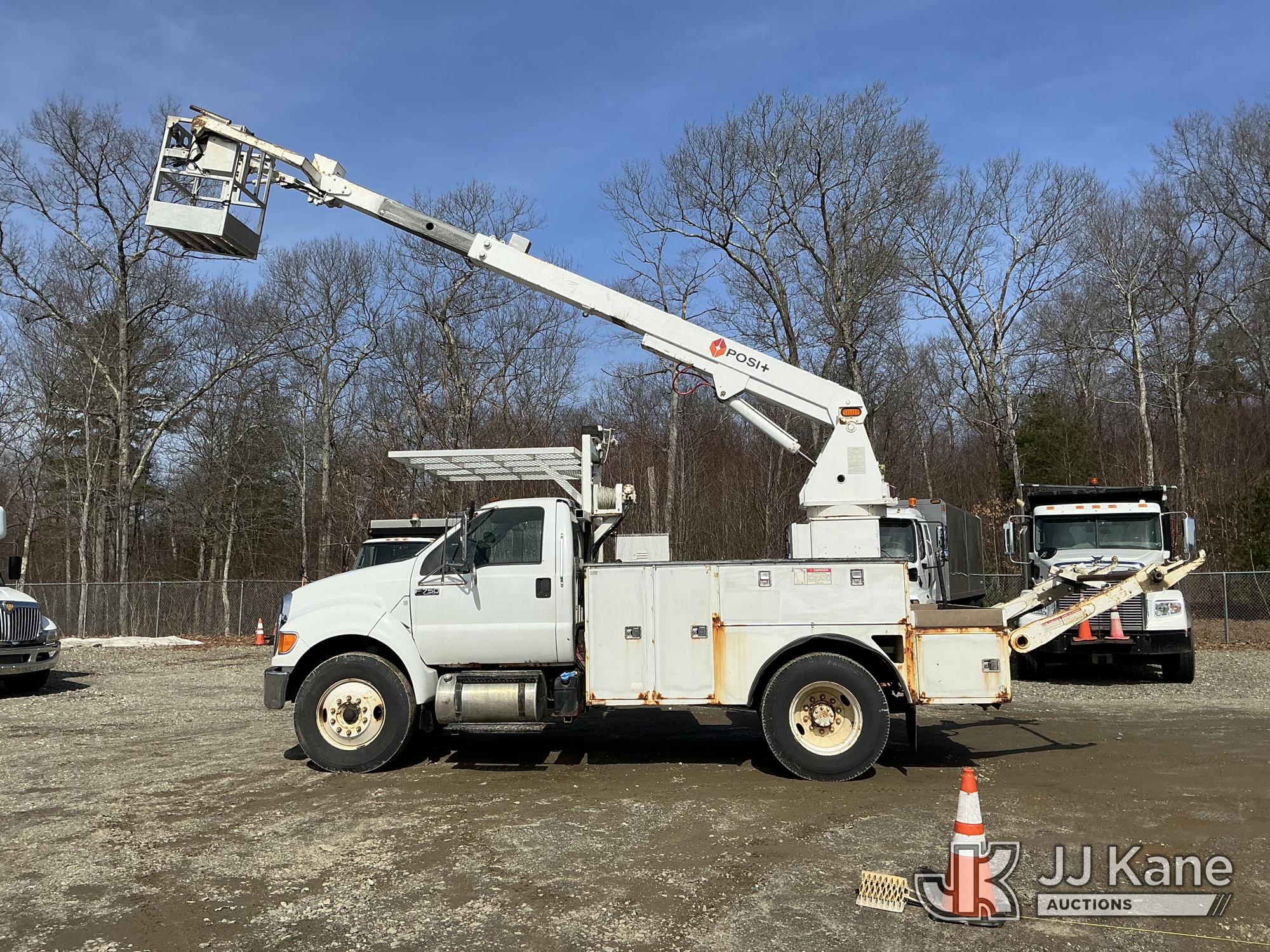 Posi Plus 800-40-015, 40 ft, Telescopic Cable Placing Bucket Truck s/n 12077913116, with single-man basket, rear mounted on 2013 Ford F-750 Utility Truck, Cummins 6.7L 4X2, diesel, Auto, A/C, with hyd reel carrier, (136,968 miles) (Runs, Moves & Upper Operates) (Check Engine Lights On) This is a Titled Item*