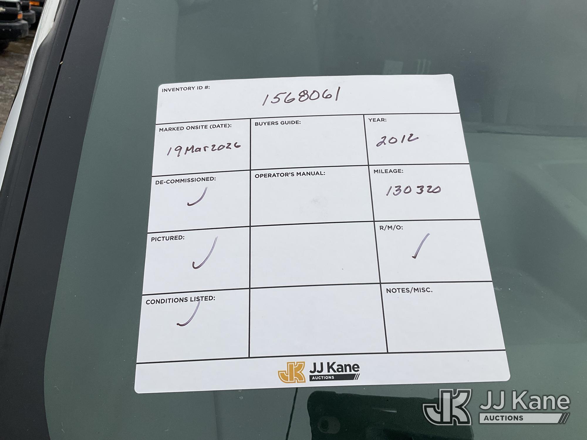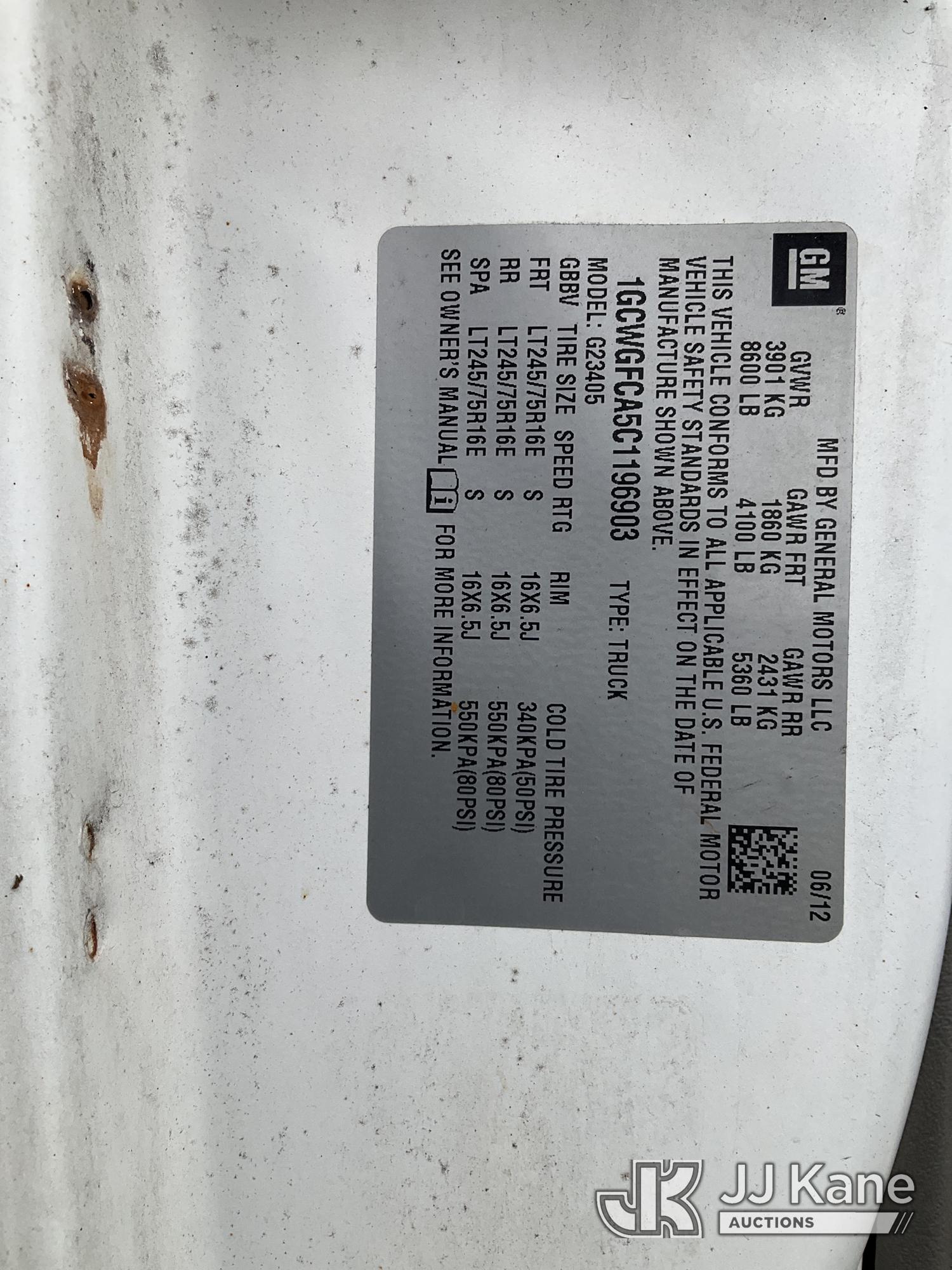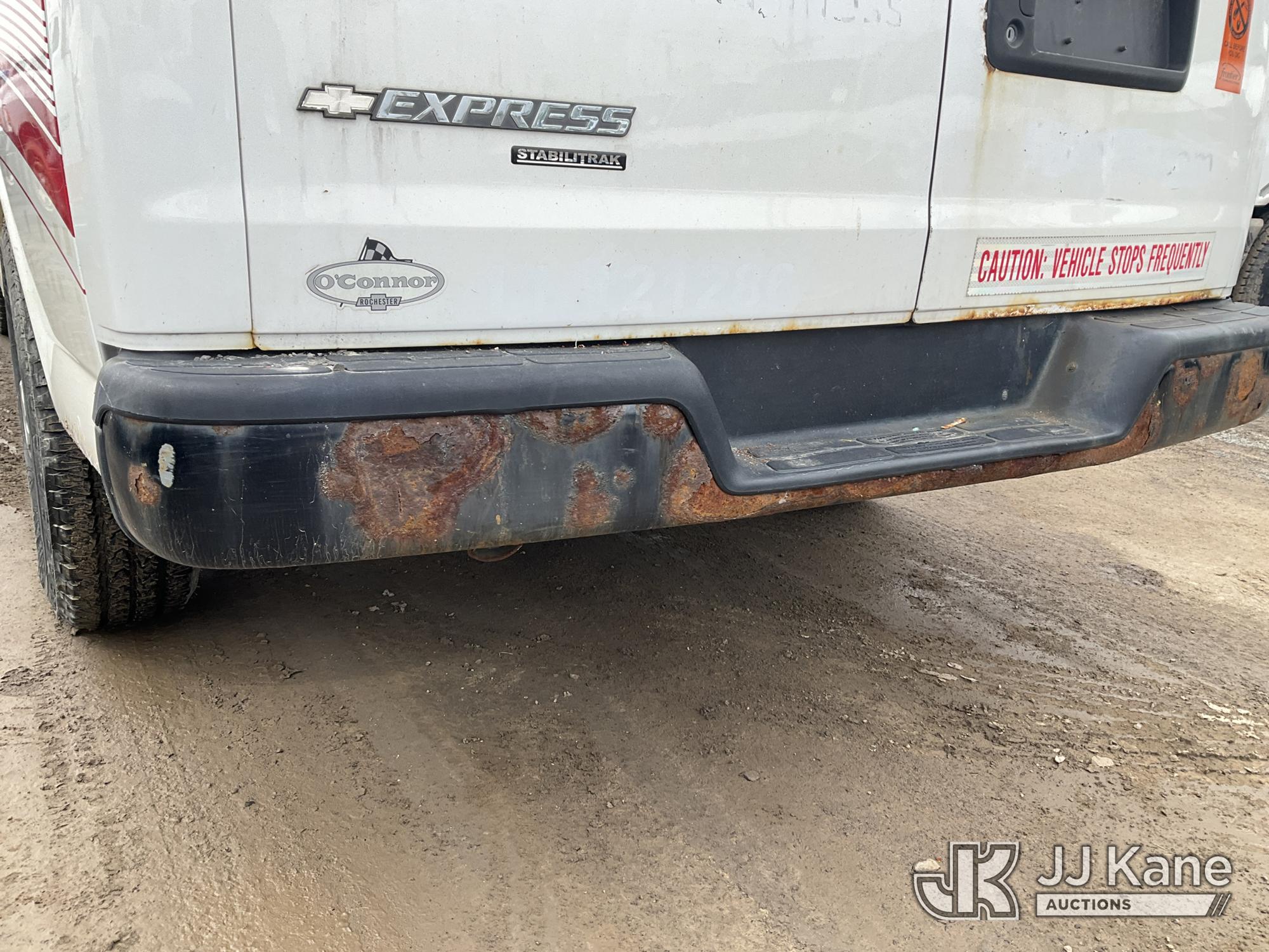 2012 Chevrolet Express G2500 Cargo Van, 8-cyl gas, Auto, A/C, (130,320 miles) (Runs Rough & Moves, Jump To Start, Check Engine Light On, Body & Rust Damage, Must Tow) This is a Titled Item*
