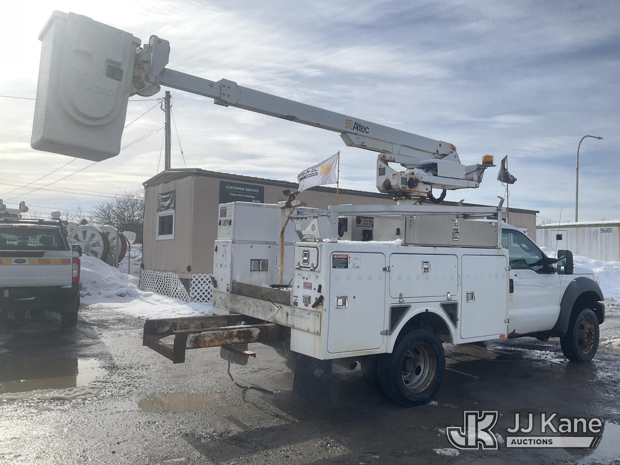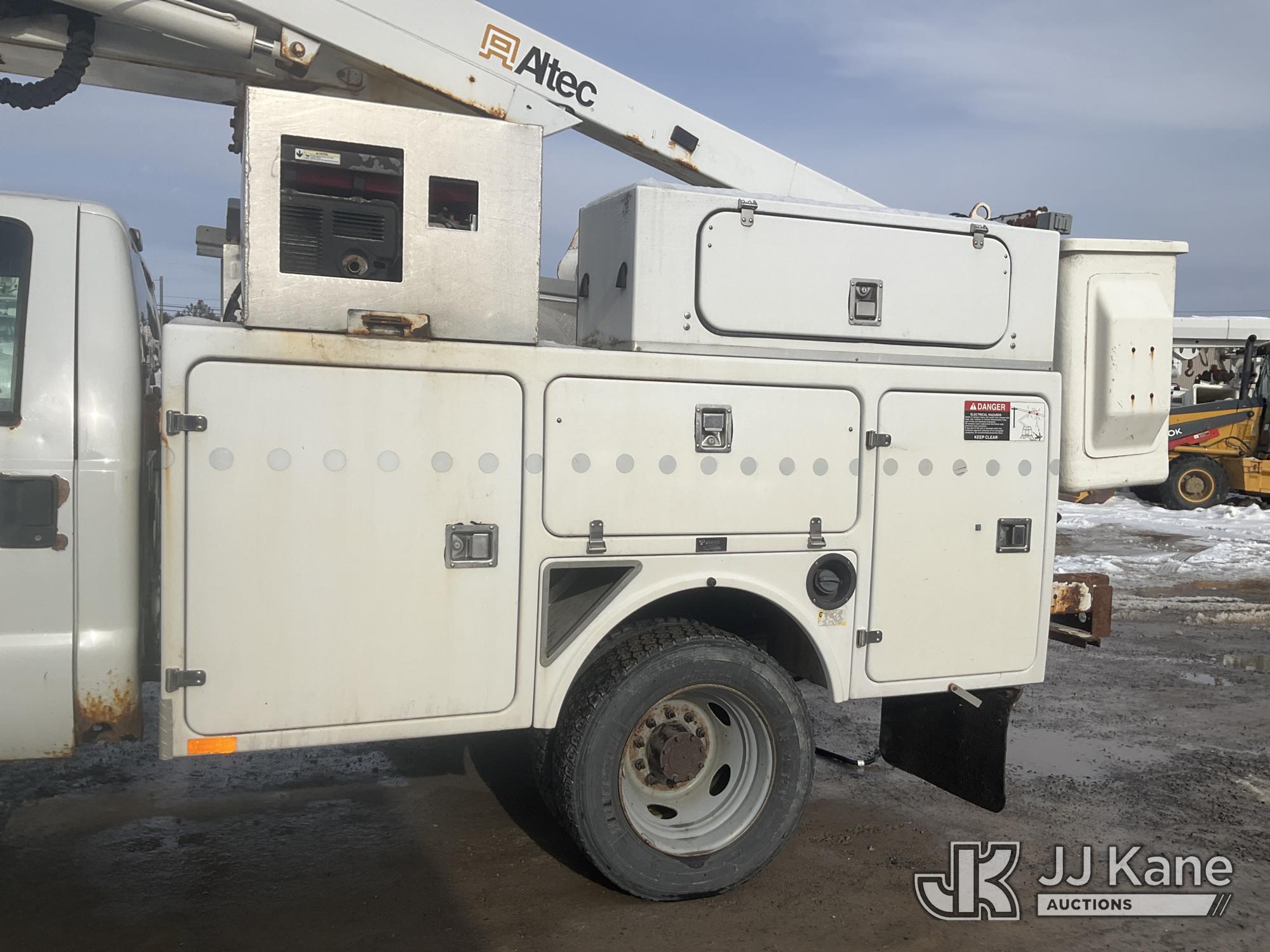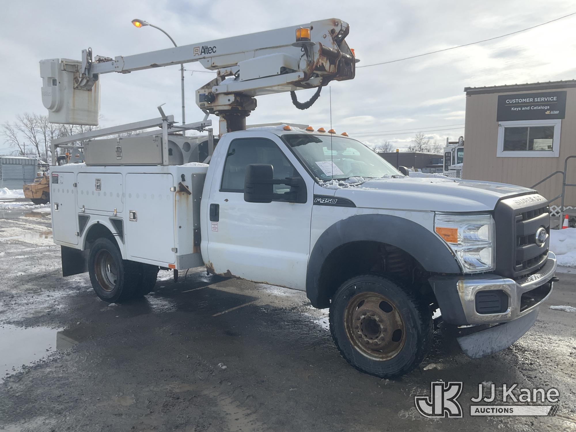 Altec AT235, 40 ft, Articulating & Telescopic Non-Insulated Bucket Truck s/n 1010BX4259, with Single-Man Bucket, mounted behind cab on 2011 Ford F450 2WD Service Truck, 10-cyl gas, Auto, A/C, (196,591 miles (unverified)) (Jump to Start, Runs, Moves & Upper Operates, No Brakes, ABS & Brake Lights On, Must Tow) This is a Titled Item*