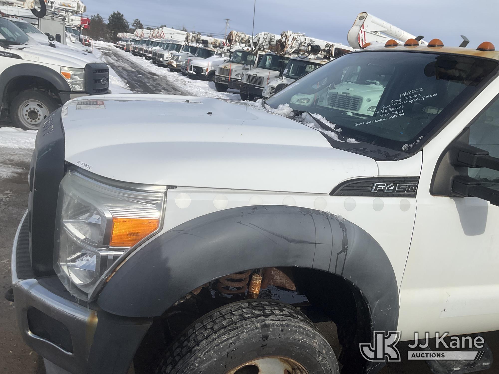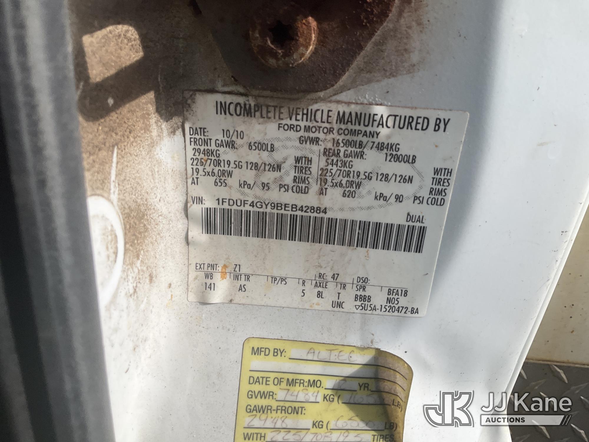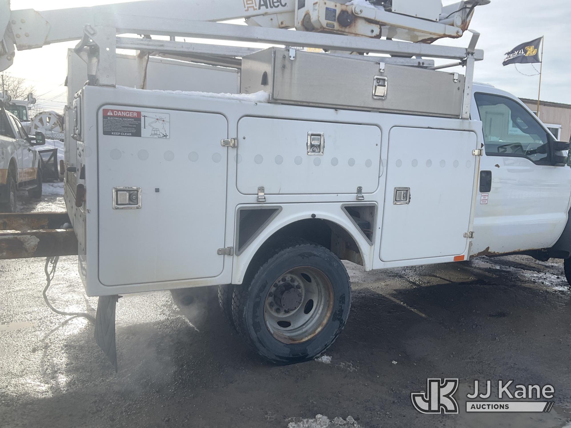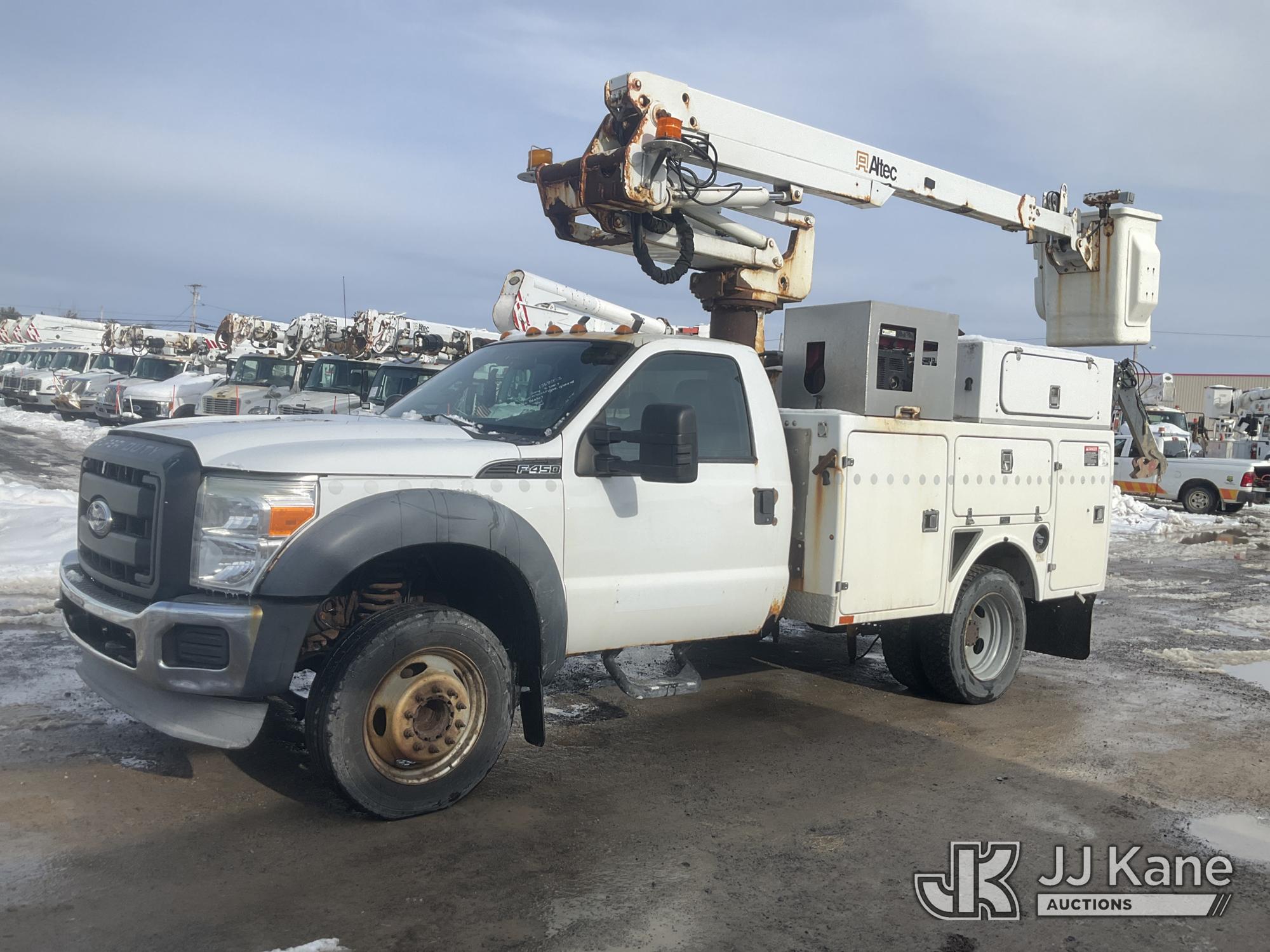 Altec AT235, 40 ft, Articulating & Telescopic Non-Insulated Bucket Truck s/n 1010BX4259, with Single-Man Bucket, mounted behind cab on 2011 Ford F450 2WD Service Truck, 10-cyl gas, Auto, A/C, (196,591 miles (unverified)) (Jump to Start, Runs, Moves & Upper Operates, No Brakes, ABS & Brake Lights On, Must Tow) This is a Titled Item*