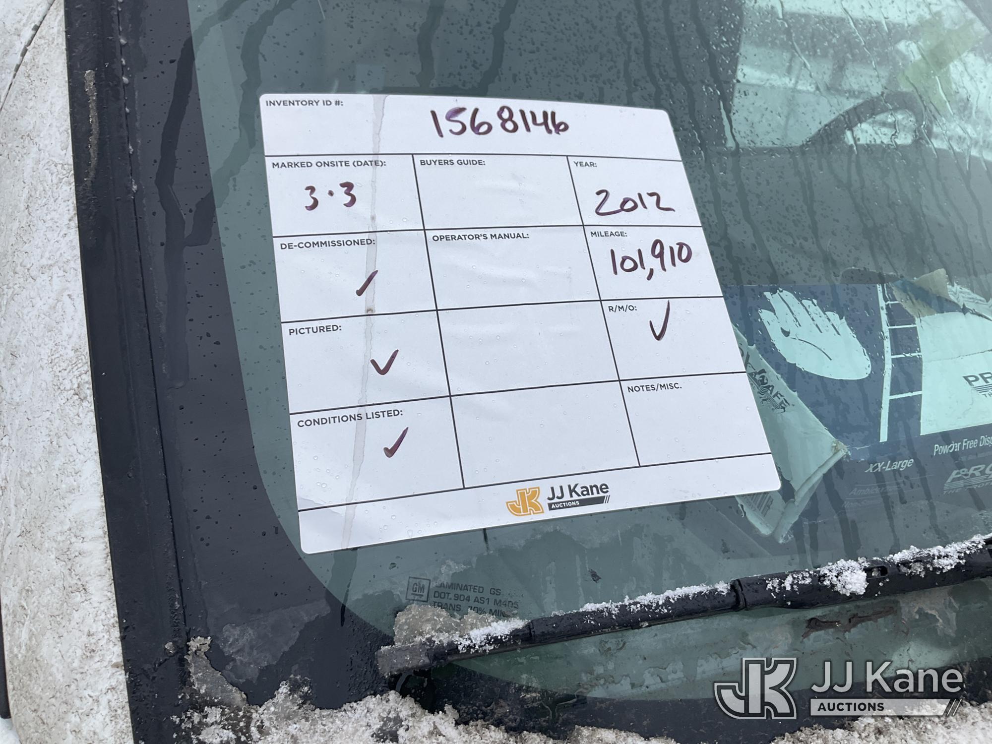 2012 Chevrolet Express G2500 Cargo Van, 8-cyl gas, Auto, A/C, (101,910 miles) (Runs & Moves, Jump to Start, Missing Front Bumper & Grill) This is a Titled Item*