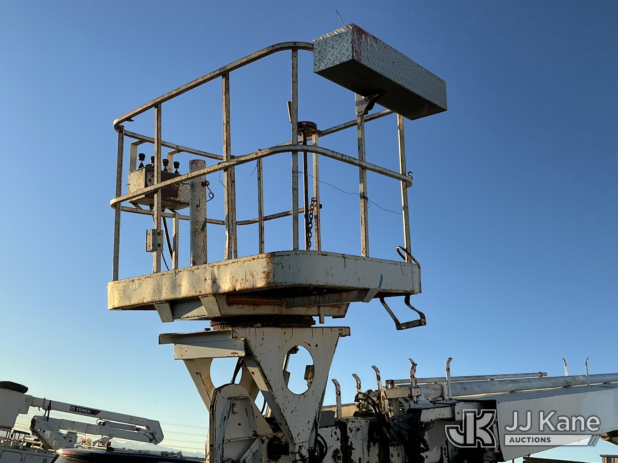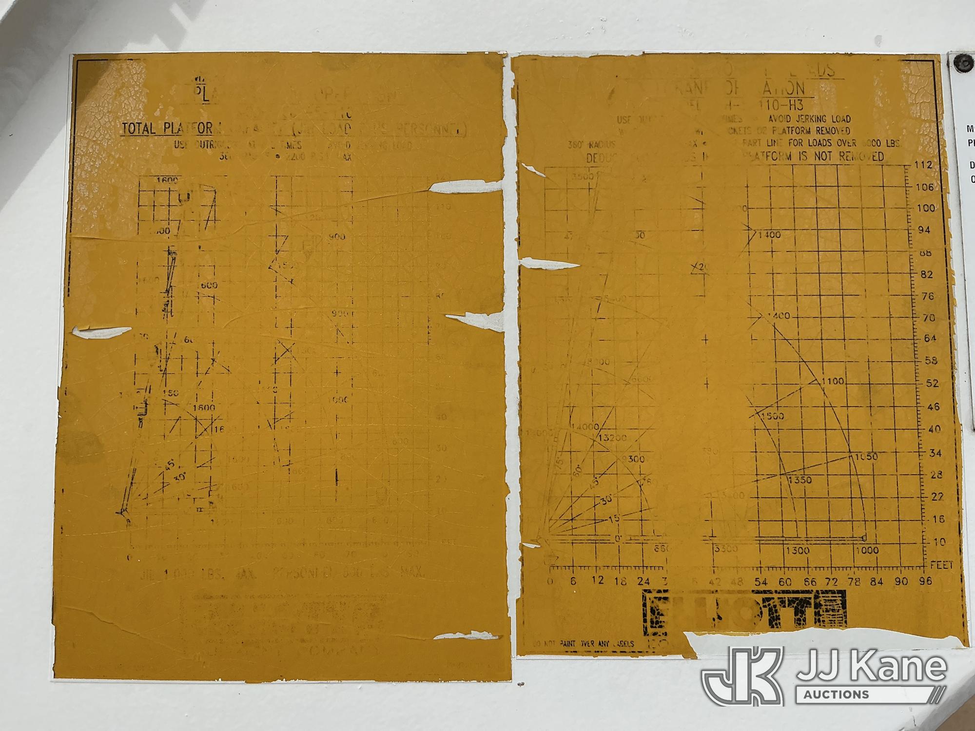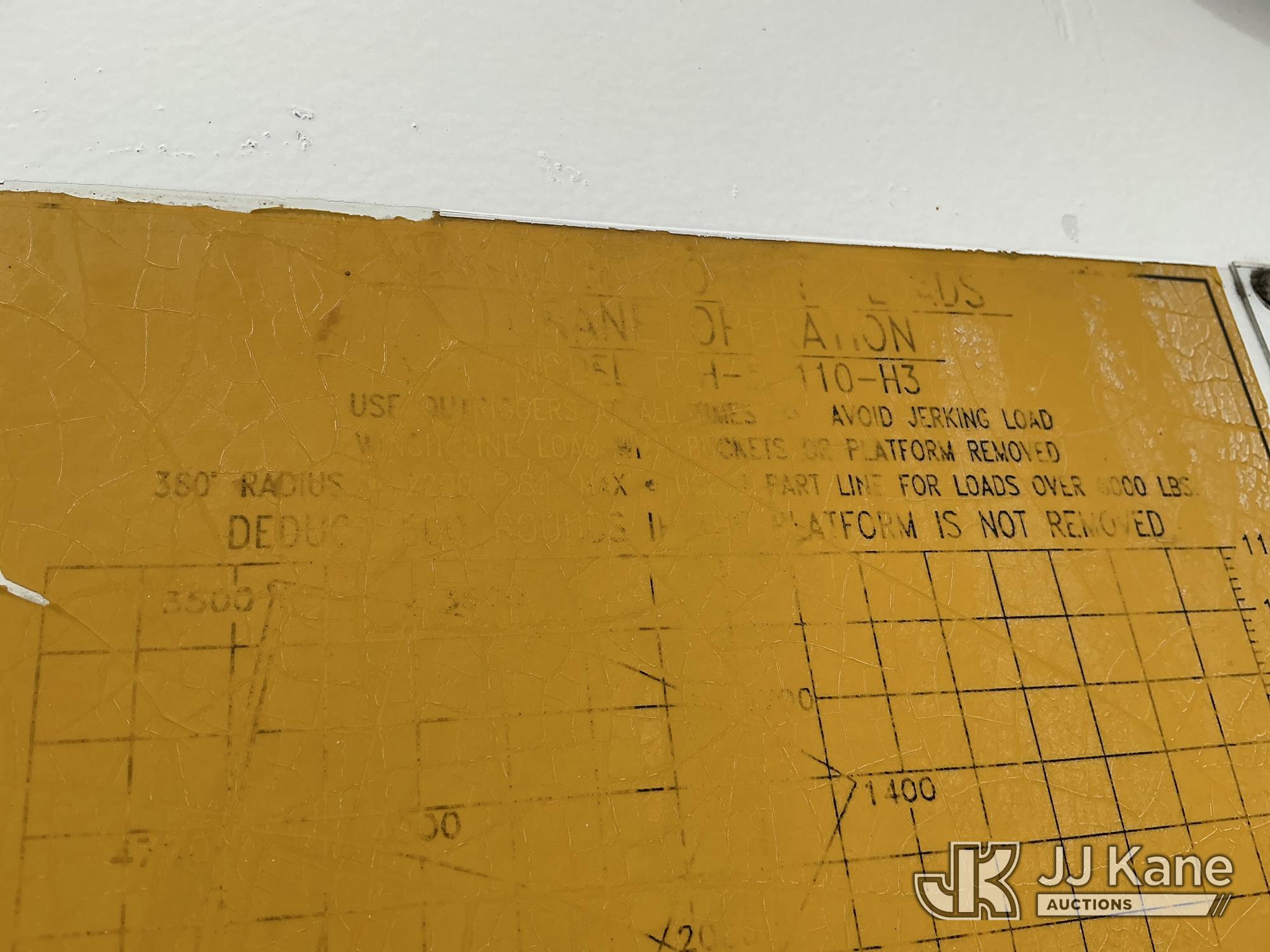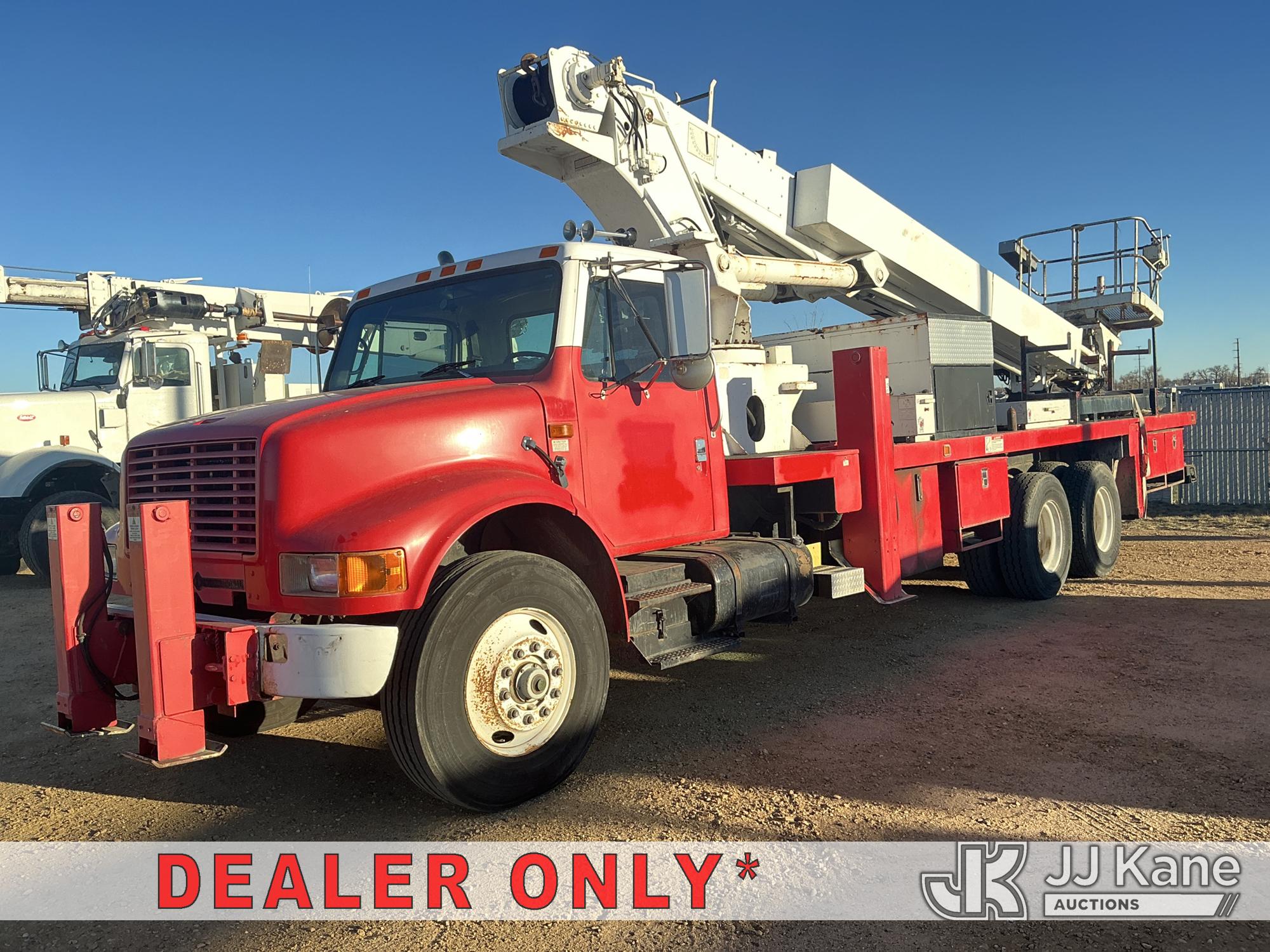 Elliott ECH-5-110-HC3H, 110 ft, Sign Crane Platform Lift s/n HF1725, with single man platform, mounted behind cab on 1996 International 4900 T/A Flatbed/Utility Truck, 8.7L diesel, 6X4, 8-spd w/ Lo-Lo, A/C, (Exempt from Odometer Disclosure - Reads 110,812 miles) (**Dealer Only**Runs & Moves) (Does Not Operate, Drivers Side Rear Outrigger Falls, Engine Rattle, Headlights Do Not Operate, Requires Cool Down After Stall) (No Emissions Provided, See Bidder Agreement) (Non Drive Away Removal Only: Safety Inspect An Altec inspection of the unit identified above has determined that the unit cannot be safely operated without completion of significant repairs. The unit has been removed from service until these repairs are accomplished. Serious injury or death can result for any attempt to operate the unit without the benefit of these repairs. Altec has recorded the out of service status of the unit. Until Altec has been notified, in writing, that the required repairs have been performed, or Altec performs the repairs, further service work, technical support, and part sales by Altec may be limited on this unit.) (Bidding Restricted to Licensed Vehicle Dealers Only), This is a Titled Item*