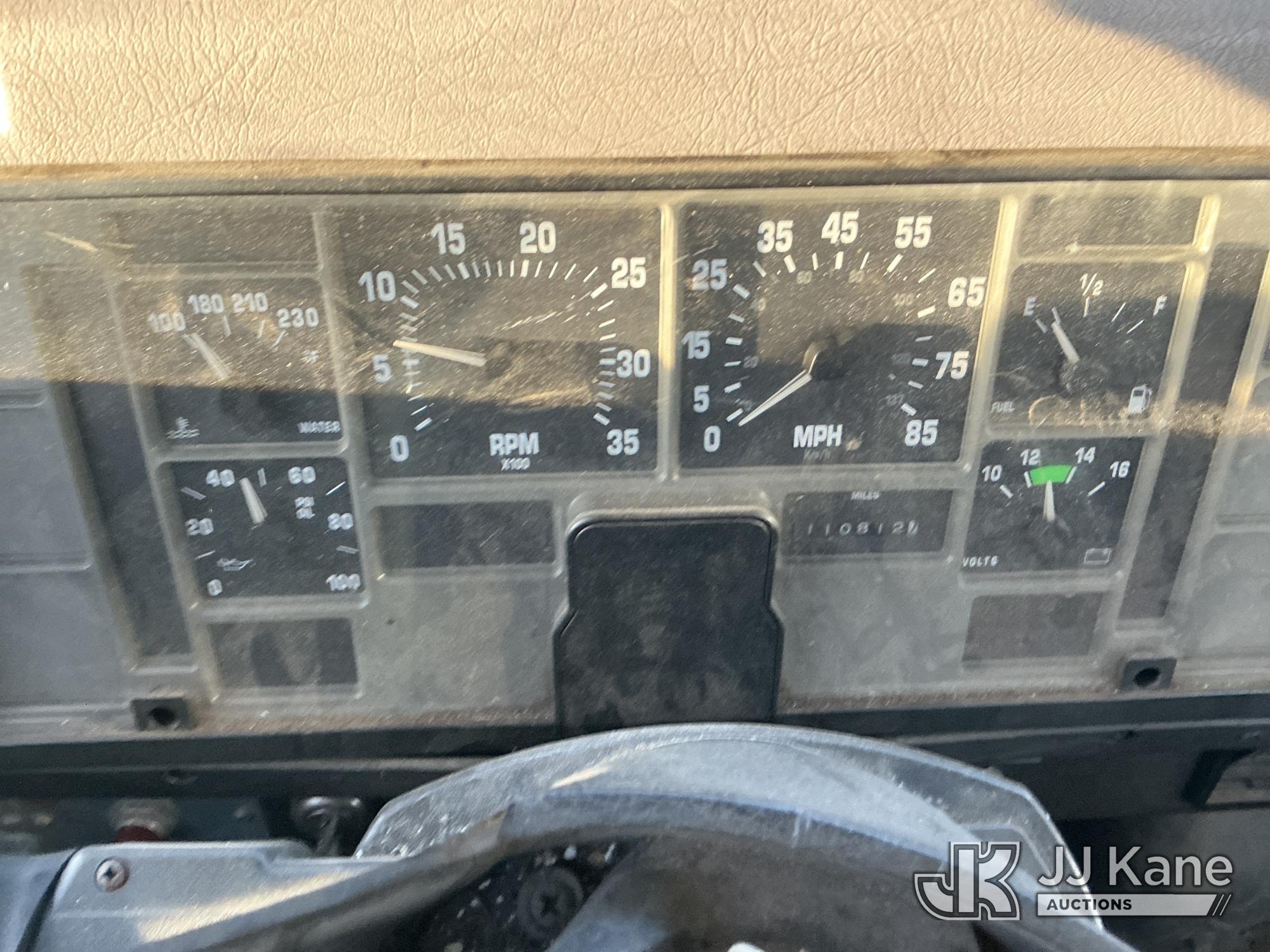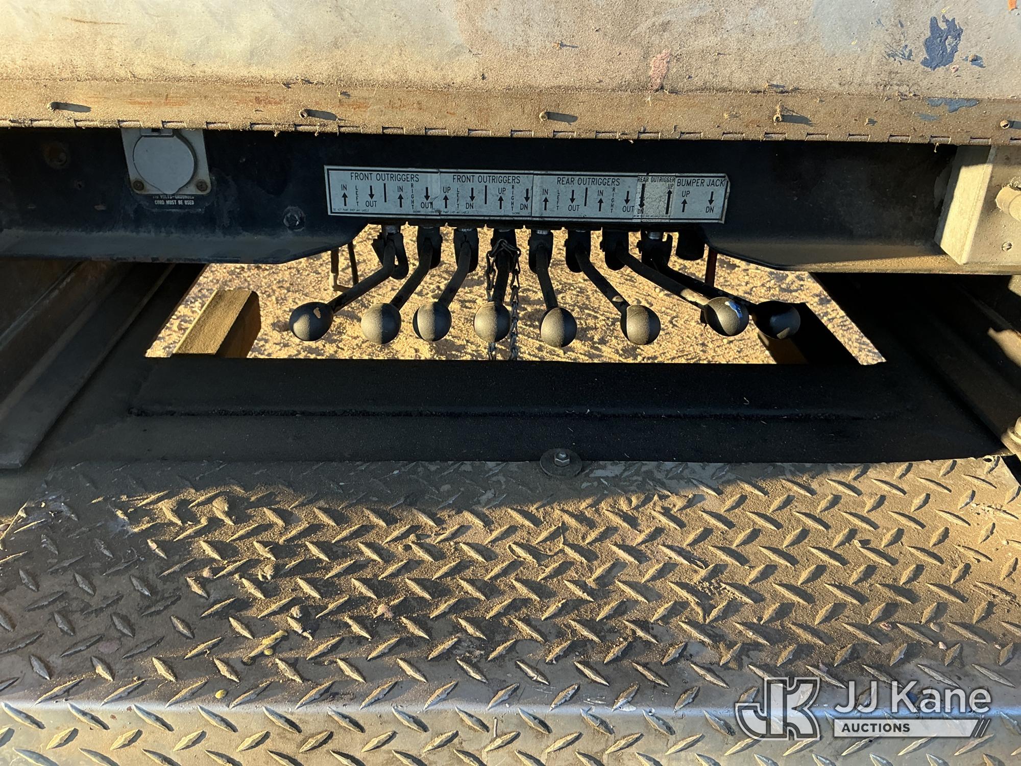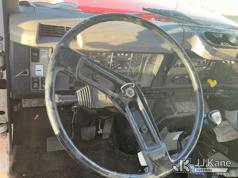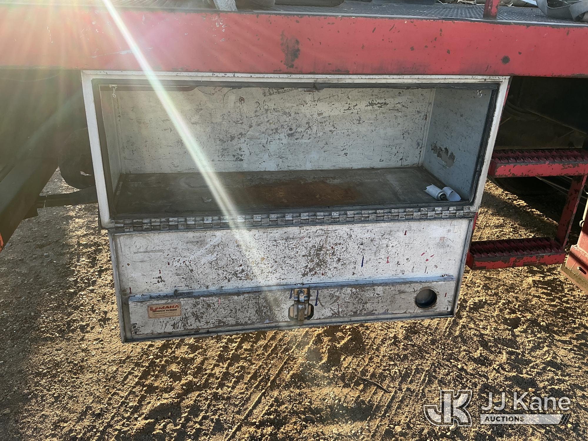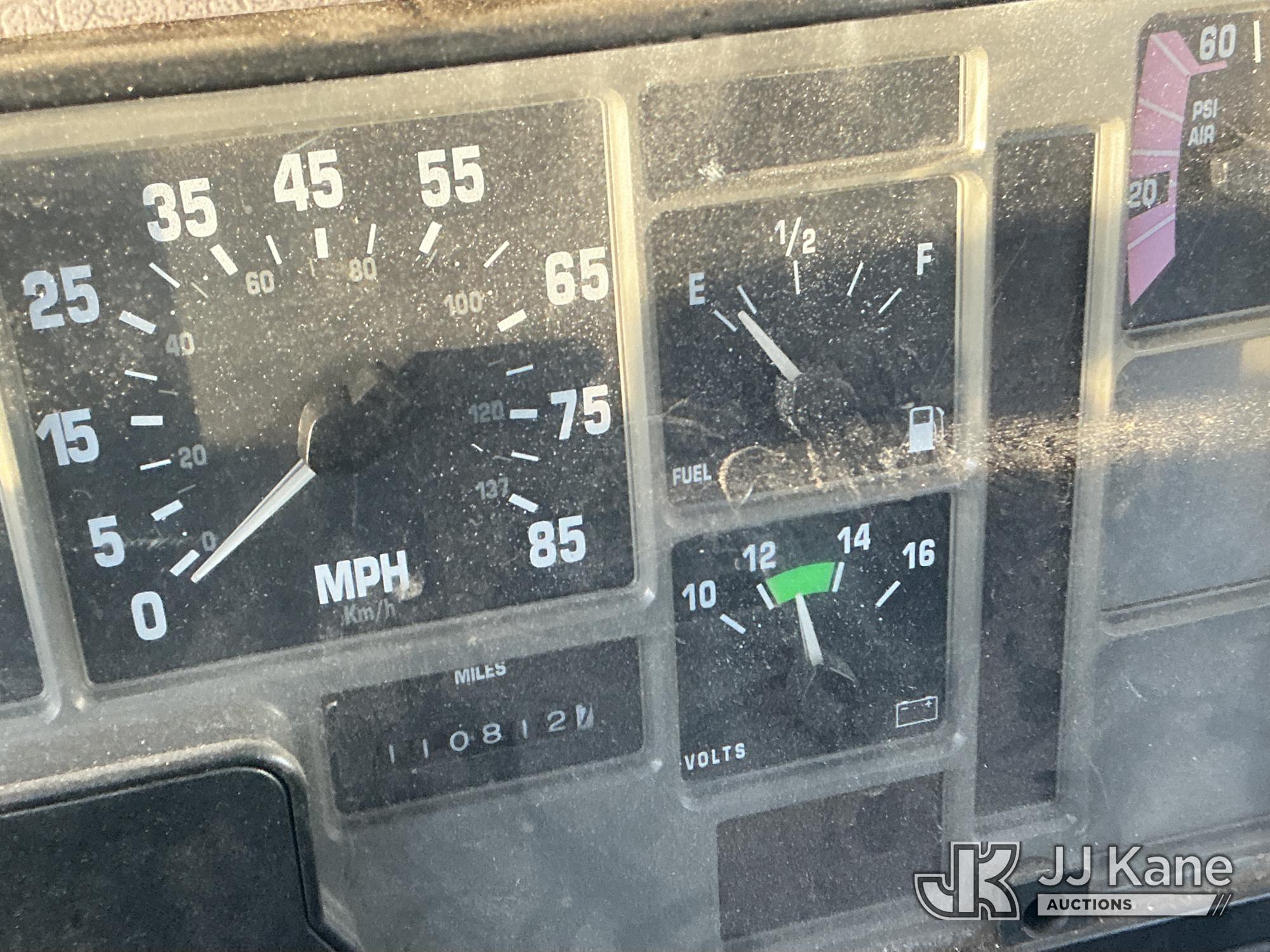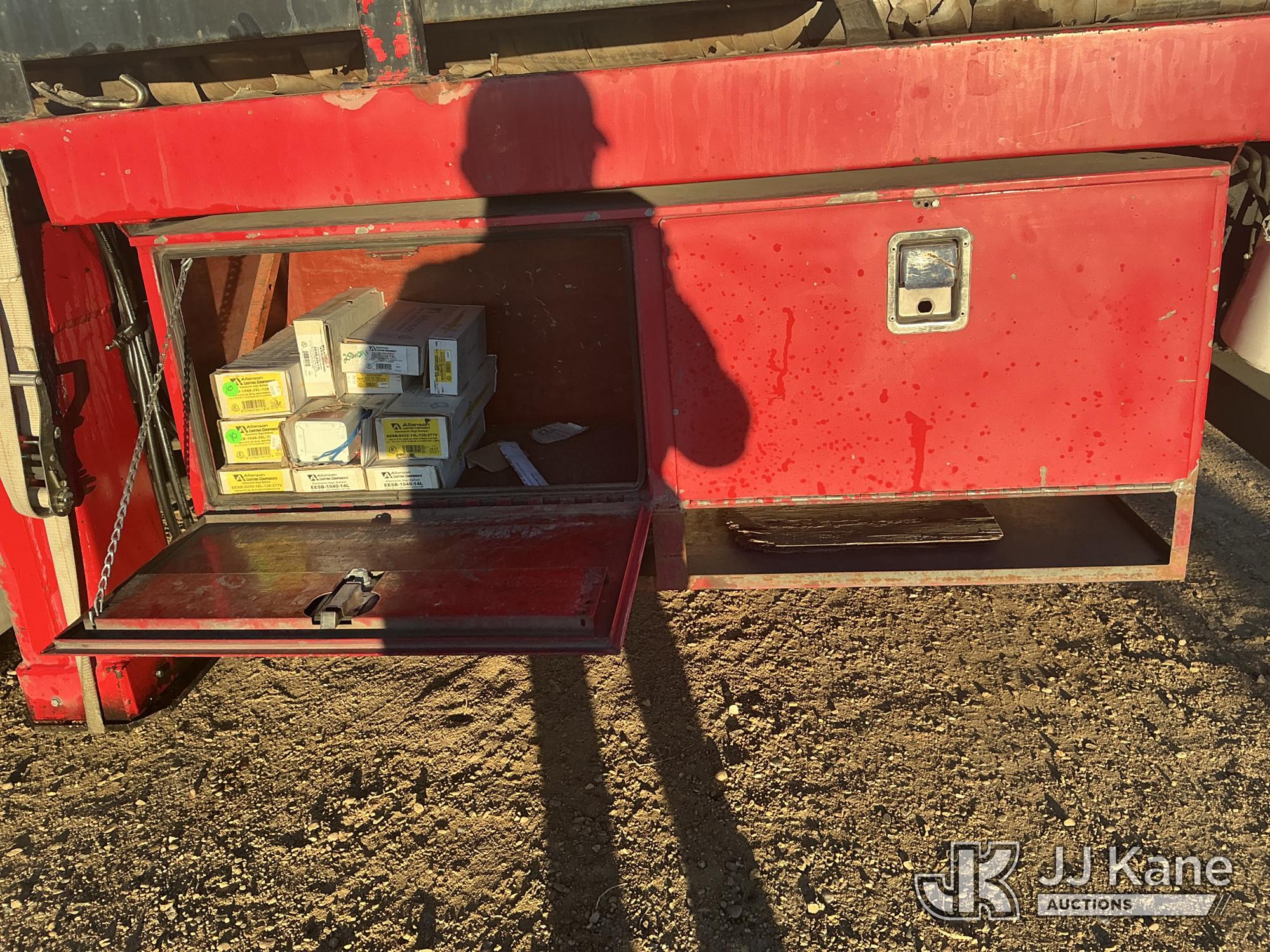 Elliott ECH-5-110-HC3H, 110 ft, Sign Crane Platform Lift s/n HF1725, with single man platform, mounted behind cab on 1996 International 4900 T/A Flatbed/Utility Truck, 8.7L diesel, 6X4, 8-spd w/ Lo-Lo, A/C, (Exempt from Odometer Disclosure - Reads 110,812 miles) (**Dealer Only**Runs & Moves) (Does Not Operate, Drivers Side Rear Outrigger Falls, Engine Rattle, Headlights Do Not Operate, Requires Cool Down After Stall) (No Emissions Provided, See Bidder Agreement) (Non Drive Away Removal Only: Safety Inspect An Altec inspection of the unit identified above has determined that the unit cannot be safely operated without completion of significant repairs. The unit has been removed from service until these repairs are accomplished. Serious injury or death can result for any attempt to operate the unit without the benefit of these repairs. Altec has recorded the out of service status of the unit. Until Altec has been notified, in writing, that the required repairs have been performed, or Altec performs the repairs, further service work, technical support, and part sales by Altec may be limited on this unit.) (Bidding Restricted to Licensed Vehicle Dealers Only), This is a Titled Item*