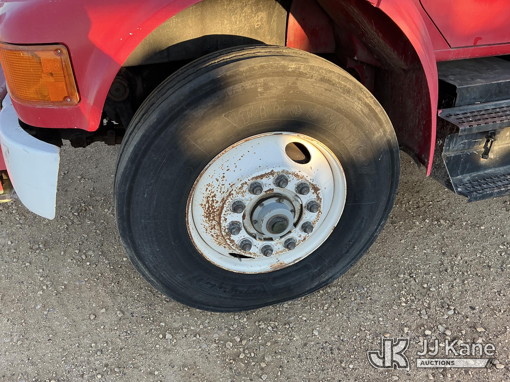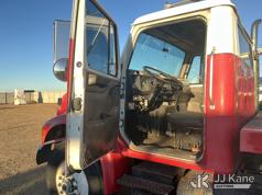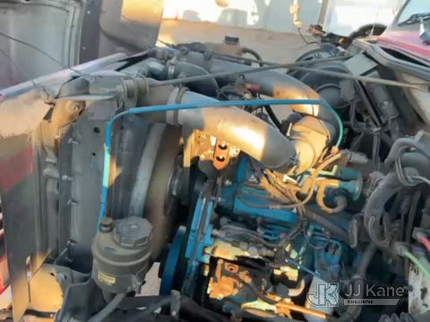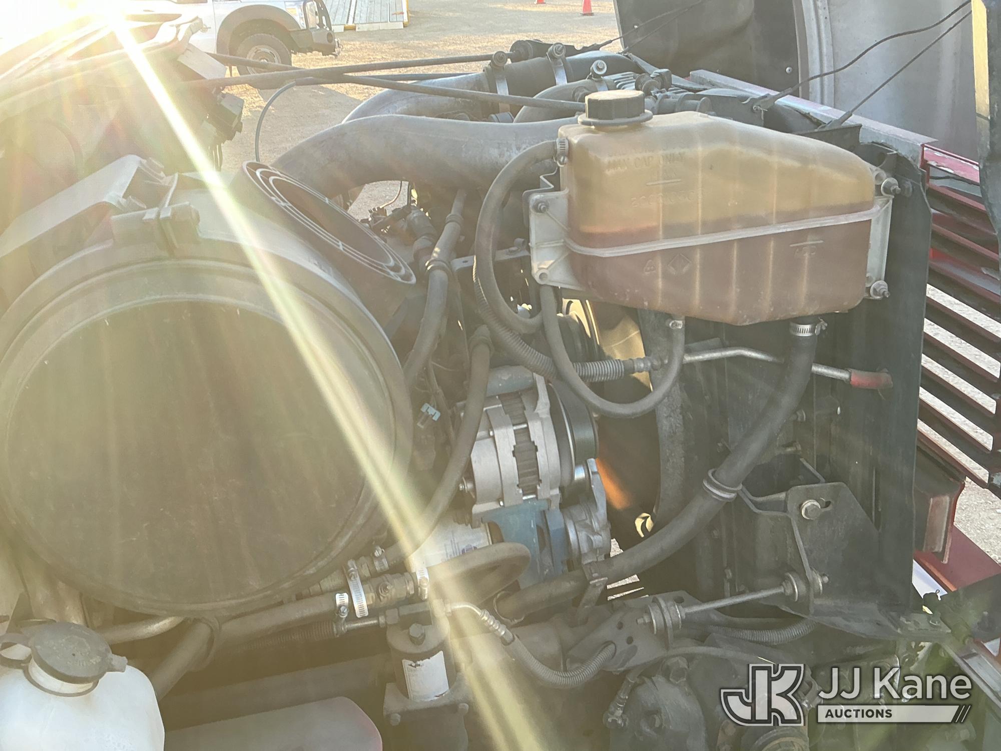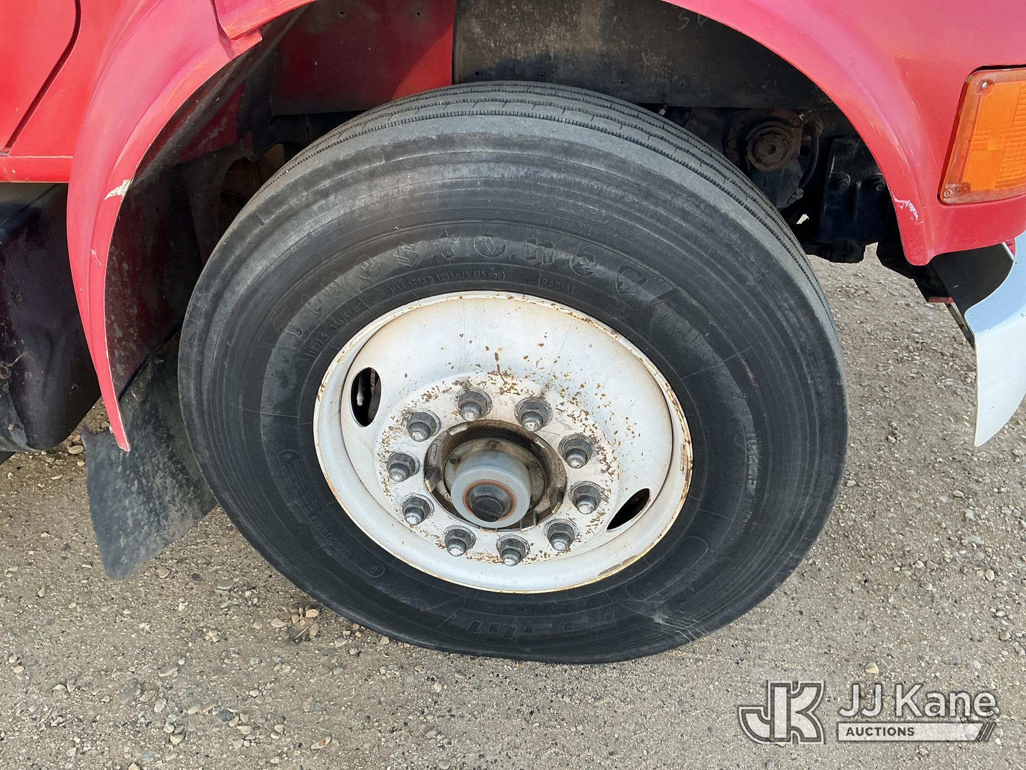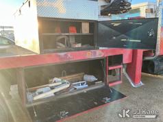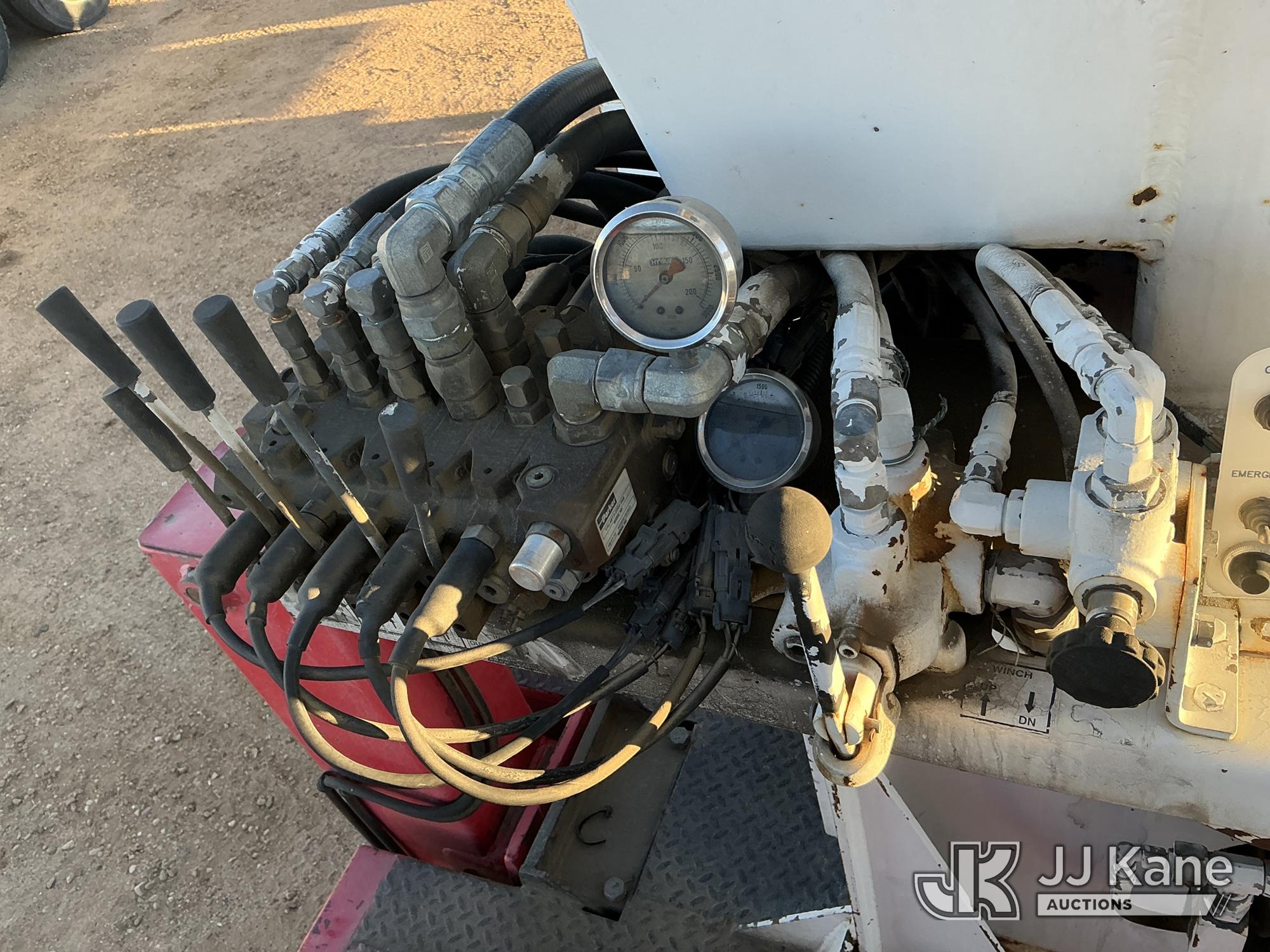 Elliott ECH-5-110-HC3H, 110 ft, Sign Crane Platform Lift s/n HF1725, with single man platform, mounted behind cab on 1996 International 4900 T/A Flatbed/Utility Truck, 8.7L diesel, 6X4, 8-spd w/ Lo-Lo, A/C, (Exempt from Odometer Disclosure - Reads 110,812 miles) (**Dealer Only**Runs & Moves) (Does Not Operate, Drivers Side Rear Outrigger Falls, Engine Rattle, Headlights Do Not Operate, Requires Cool Down After Stall) (No Emissions Provided, See Bidder Agreement) (Non Drive Away Removal Only: Safety Inspect An Altec inspection of the unit identified above has determined that the unit cannot be safely operated without completion of significant repairs. The unit has been removed from service until these repairs are accomplished. Serious injury or death can result for any attempt to operate the unit without the benefit of these repairs. Altec has recorded the out of service status of the unit. Until Altec has been notified, in writing, that the required repairs have been performed, or Altec performs the repairs, further service work, technical support, and part sales by Altec may be limited on this unit.) (Bidding Restricted to Licensed Vehicle Dealers Only), This is a Titled Item*