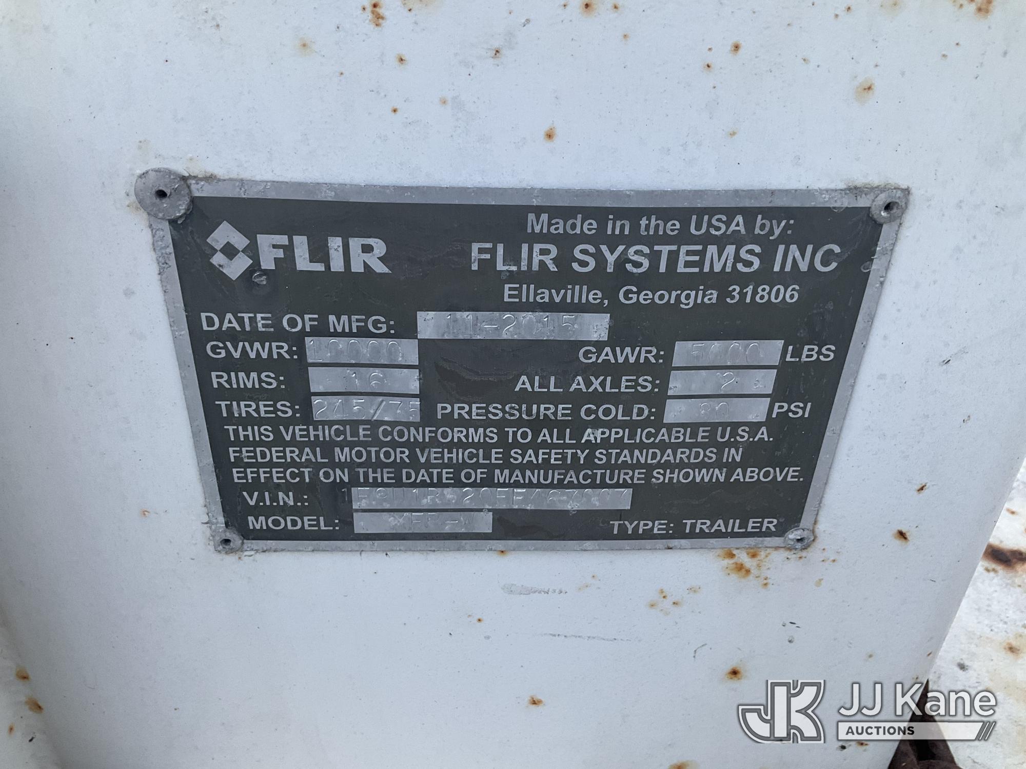 2015 Flir System Inc XFP-W Surveillance/Watch Tower Trailer, s/n 1F9U1BA20FE467007, with ball hitch, trailer length = 18ft 6in, trailer width = 7ft 9in, total trailer length= 22ft 7in, Onan generator with Kubota engine (diesel powered) , (Unable To Access Inside Of Tower Room, No Key, Onan Generator Not Operational) May be subject to ARB Regulations This is a Titled Item*