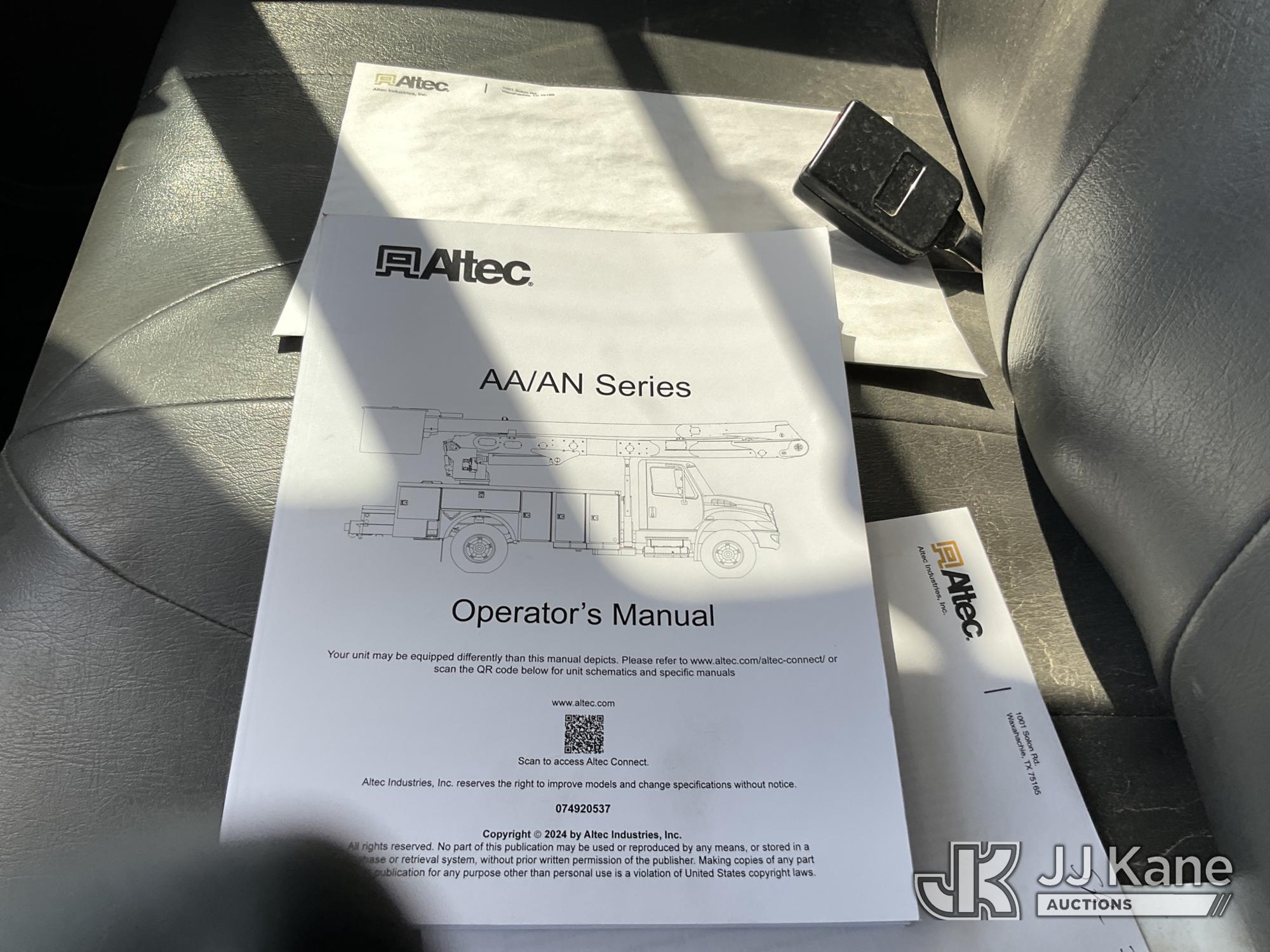 Altec AA55-MH, 60 ft, Material Handling Bucket Truck s/n 1117FH5314(YEAR 2017), with two-man bucket, rear mounted on 2019 International 4300 Utility Truck, Cummins ISB 6.7L diesel, Auto, A/C, (105,628 miles) (Runs, Moves & Upper Operates) (Remounted Upper Unit Year 2017, Check Engine Light On) This is a Titled Item*