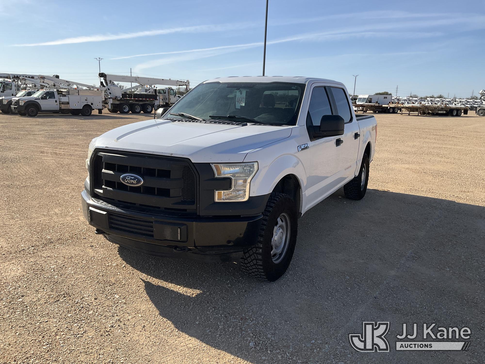 2015 Ford F150 4x4 Crew-Cab Pickup Truck, 8-cyl gas, Auto, A/C, (176,549 miles) (Runs & Moves) (Check Engine Light On, Tire Pressure Light On, Cracked Windshield, Minor Paint Damage) This is a Titled Item*