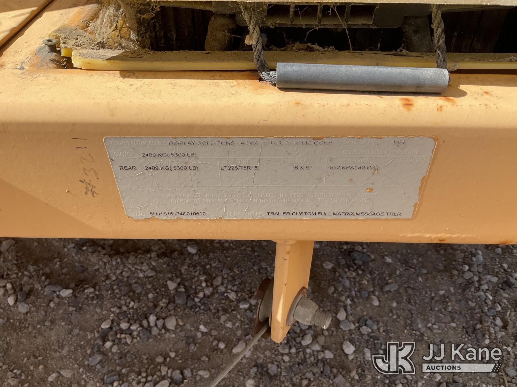 2004 s/n 5HJ1S16174S010690, 2004 Display Solutions Signal Message Board (Not Running, Condition Unknown)(Seller States: Bad Batteries, Weather Checked Tires)*