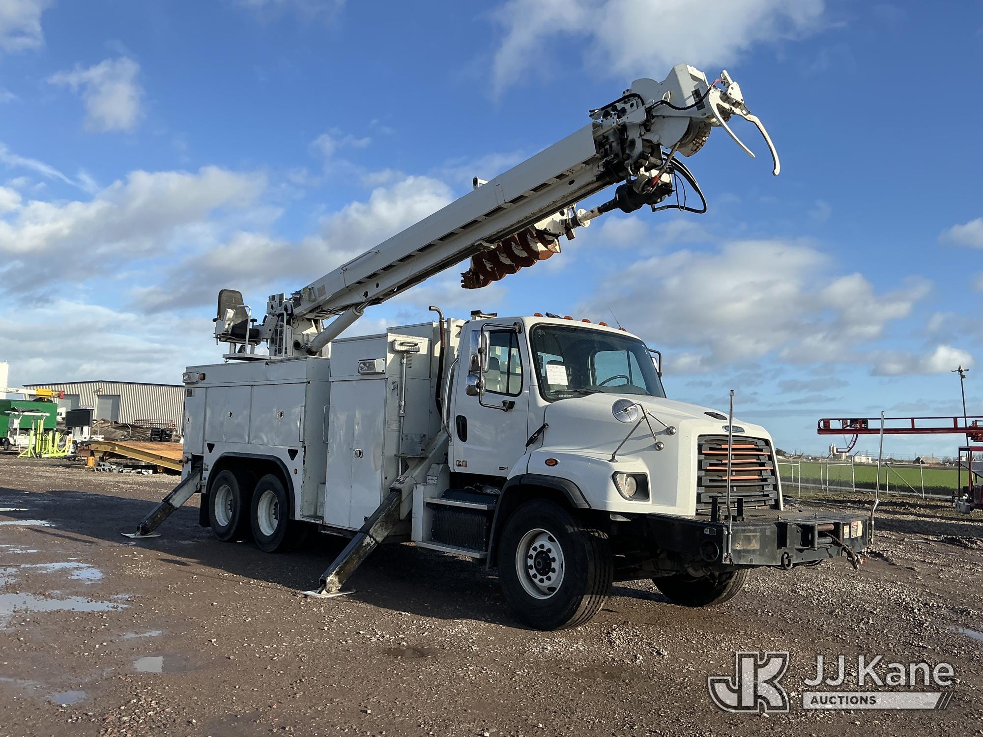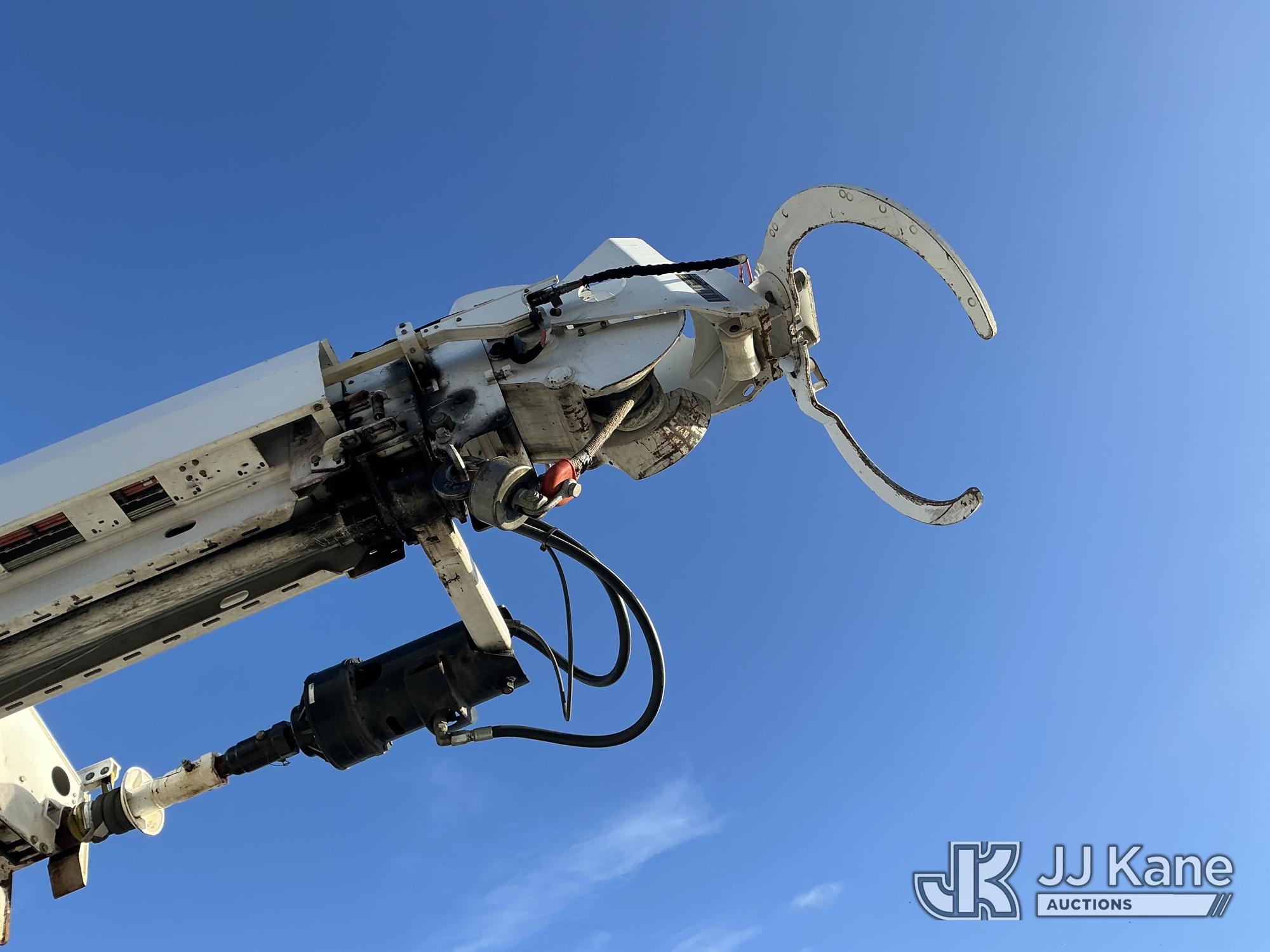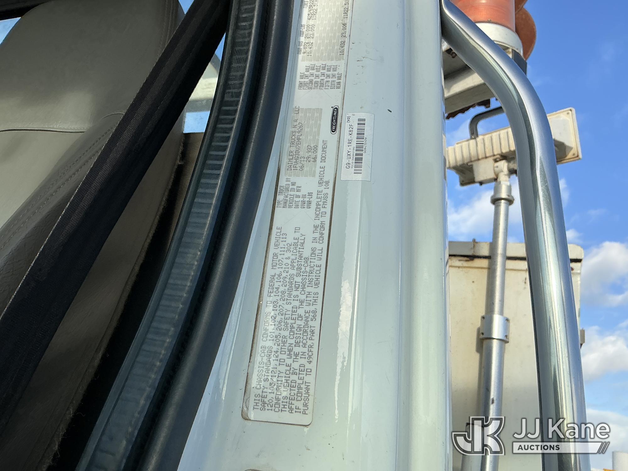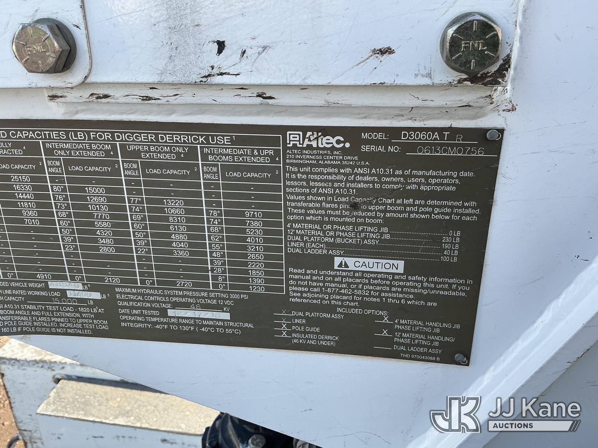 Altec D3060A-TR, 25,150 Lb Digger Derrick s/n 0613CM0756, with 60 ft. sheave height, 3 section hyd. boom, heel winch, upper controls, riding console & 4 hyd. outriggers, rear mounted on 2014 Freightliner 114SD T/A Utility Truck, 12.8L L6 diesel, Auto, A/C, with front winch, Onan Generator, Hours 763, (94,959 miles) (Runs & Moves, Upper Operates, PTO Hours 2540, Generator Operates, Check Engine Light On, Passenger Side Windshield Cracked. The manufacturer has notified JJ Kane that this equipment is subject to an open recall (CSN 591 - Feeder Tube Bracket Improvement and CSN 612 - Trailer Relay Module Circuit Breaker Change). The equipment should not be operated until this is addressed. Buyer is responsible for reviewing the recall notice and contacting the manufacturer to schedule the recommended corrective actions. Associated costs may be covered by the manufacturer in some cases.) (Reads 8,822 hours) Subject to CARB Regs,CARB non Compliant,Cannot Operate on CA Roads/Highways until Compliant This is a Titled Item*