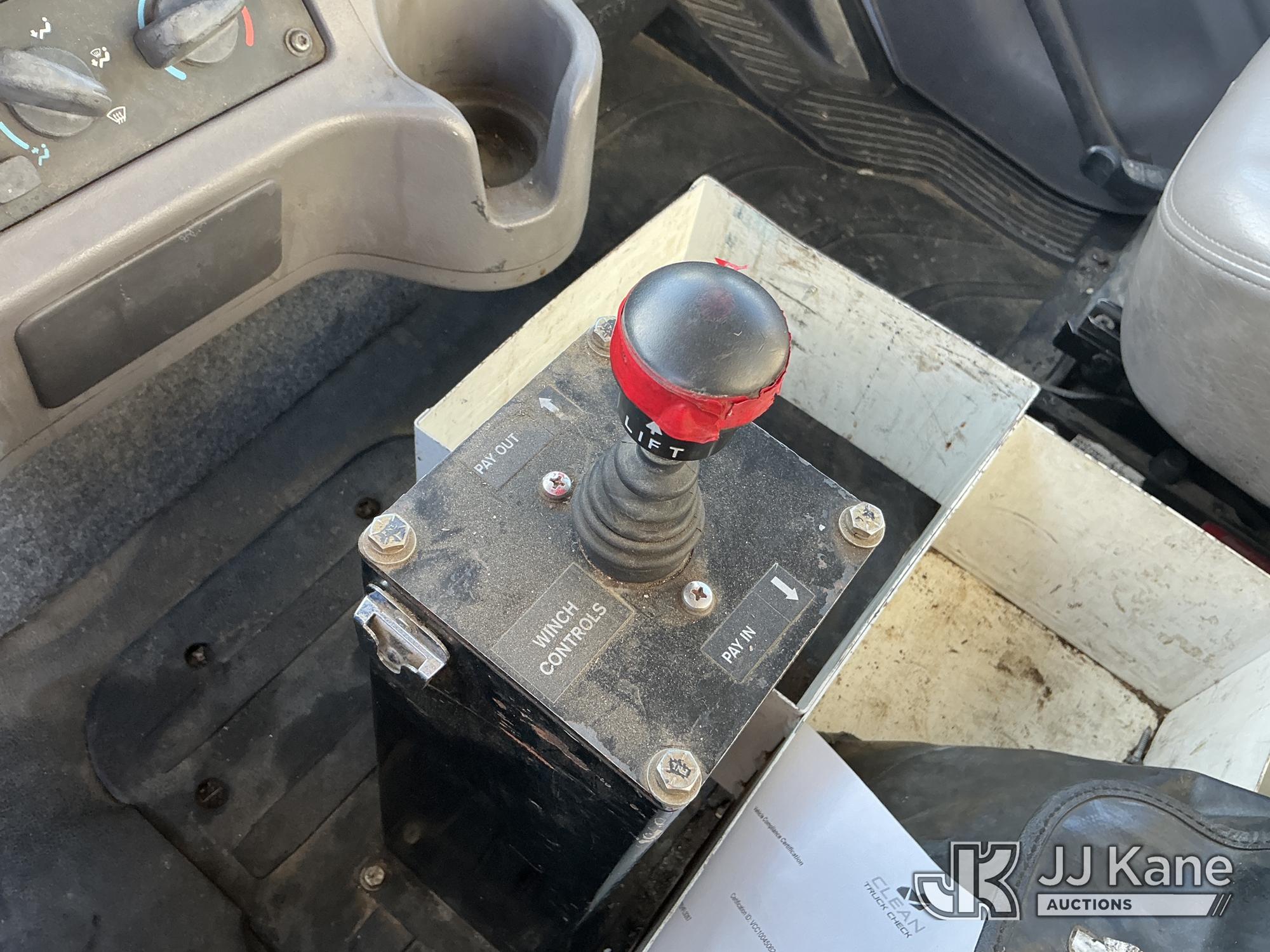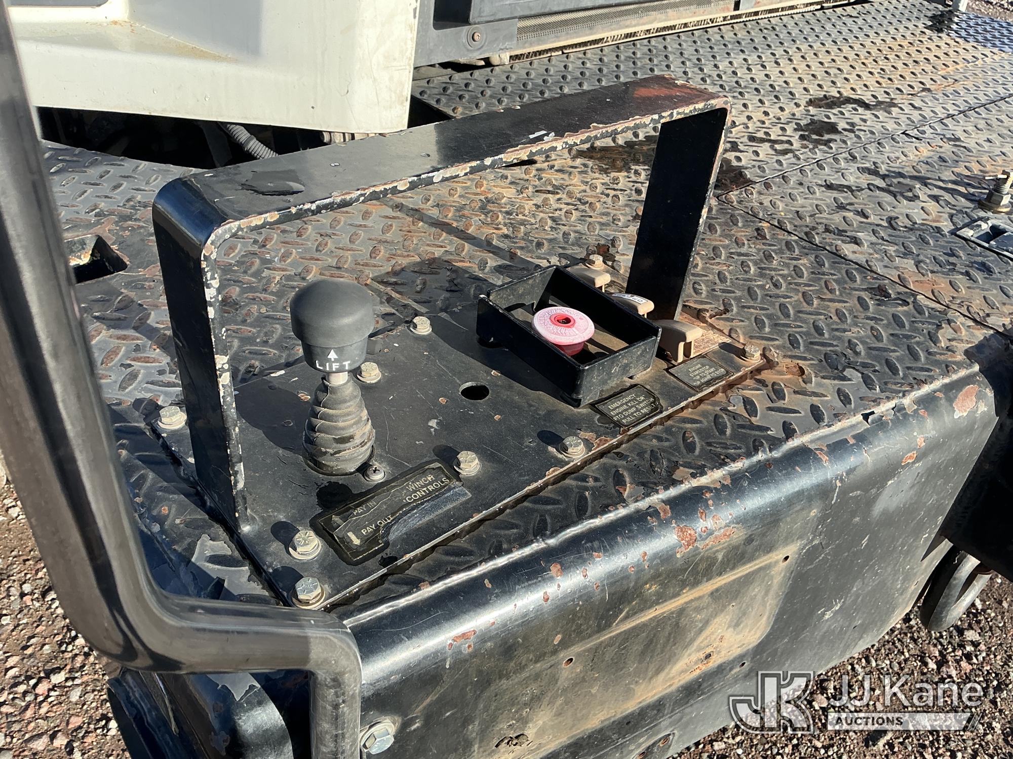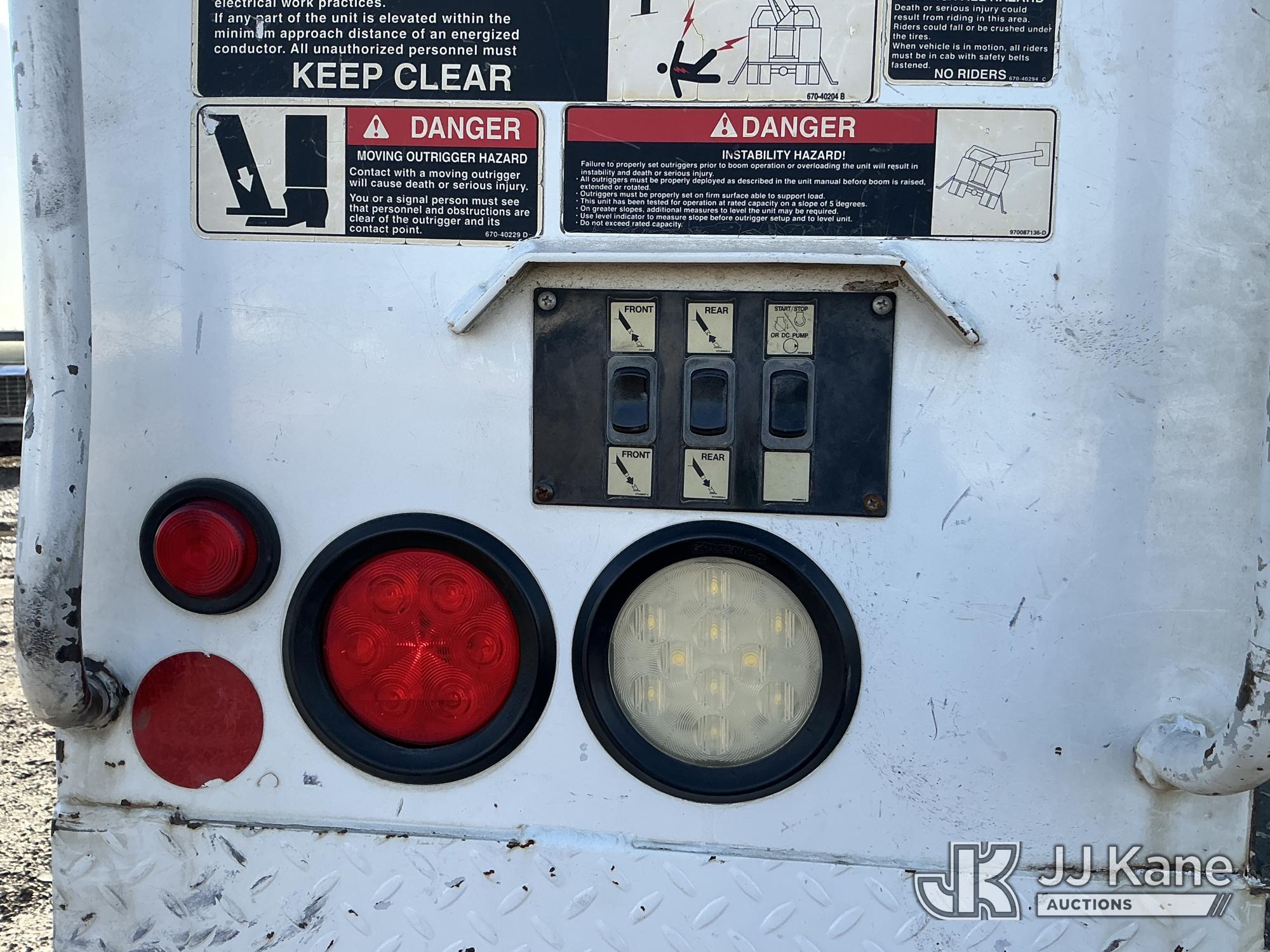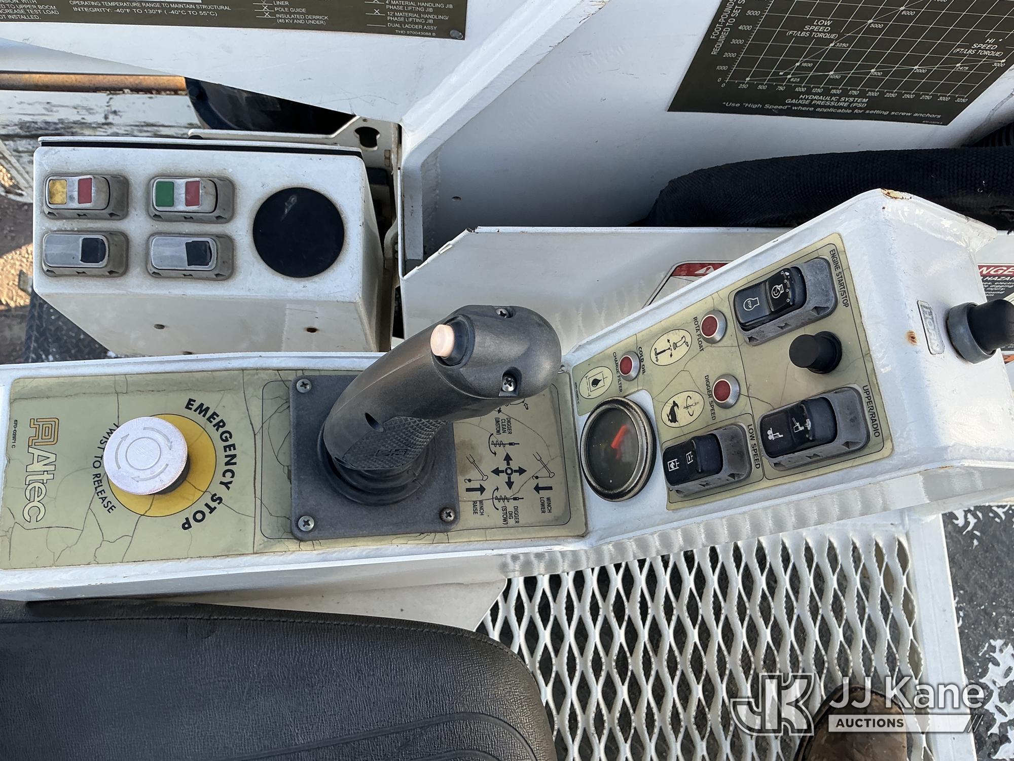 Altec D3060A-TR, 25,150 Lb Digger Derrick s/n 0613CM0756, with 60 ft. sheave height, 3 section hyd. boom, heel winch, upper controls, riding console & 4 hyd. outriggers, rear mounted on 2014 Freightliner 114SD T/A Utility Truck, 12.8L L6 diesel, Auto, A/C, with front winch, Onan Generator, Hours 763, (94,959 miles) (Runs & Moves, Upper Operates, PTO Hours 2540, Generator Operates, Check Engine Light On, Passenger Side Windshield Cracked. The manufacturer has notified JJ Kane that this equipment is subject to an open recall (CSN 591 - Feeder Tube Bracket Improvement and CSN 612 - Trailer Relay Module Circuit Breaker Change). The equipment should not be operated until this is addressed. Buyer is responsible for reviewing the recall notice and contacting the manufacturer to schedule the recommended corrective actions. Associated costs may be covered by the manufacturer in some cases.) (Reads 8,822 hours) Subject to CARB Regs,CARB non Compliant,Cannot Operate on CA Roads/Highways until Compliant This is a Titled Item*