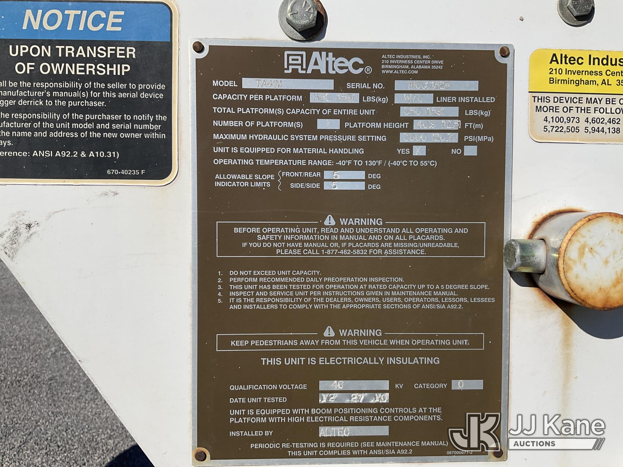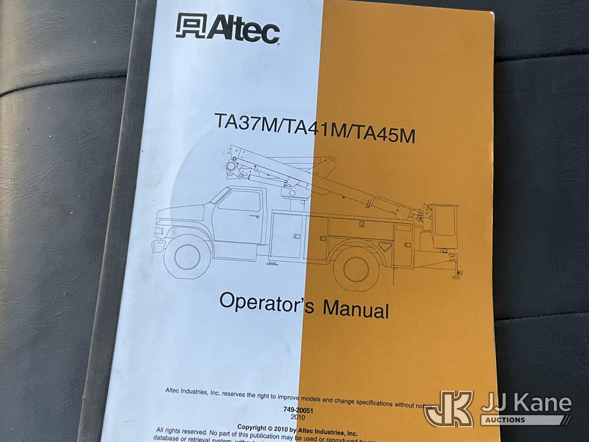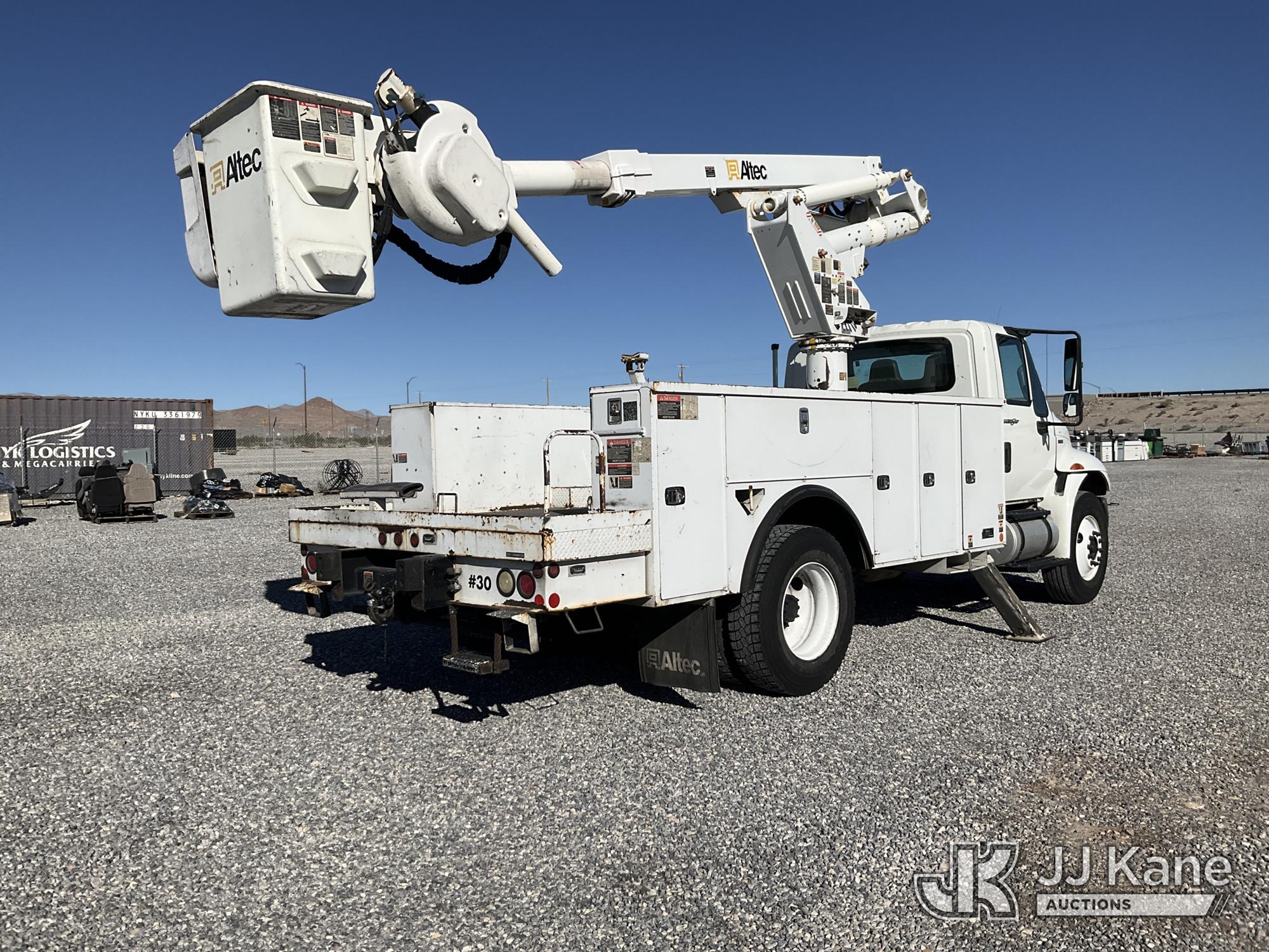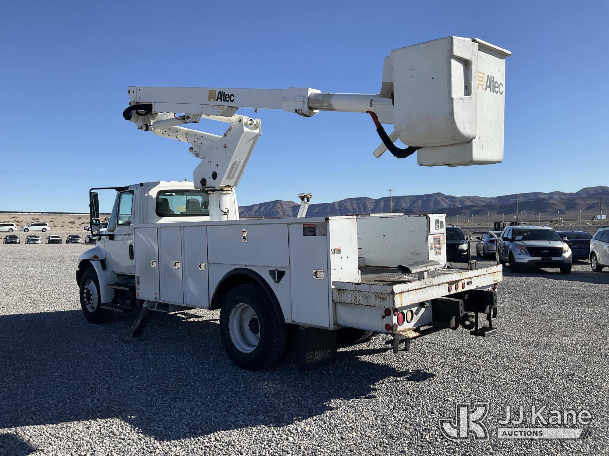Altec TA41M, 46 ft, Articulating & Telescopic Material Handling Bucket Truck s/n 1110CL1528, with single-man bucket, mounted behind cab on 2011 International 4300 Utility Truck, 6.4L V8 DIESEL, 4X2, Auto, A/C, (89,251 miles) (Runs, Moves & Upper Operates) (Warn Engine Light On, Check Engine Light On, Exhaust Filter Light On, Cracked Windshield) This is a Titled Item*