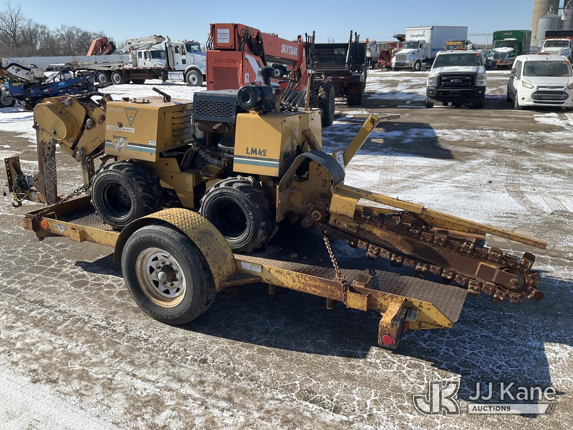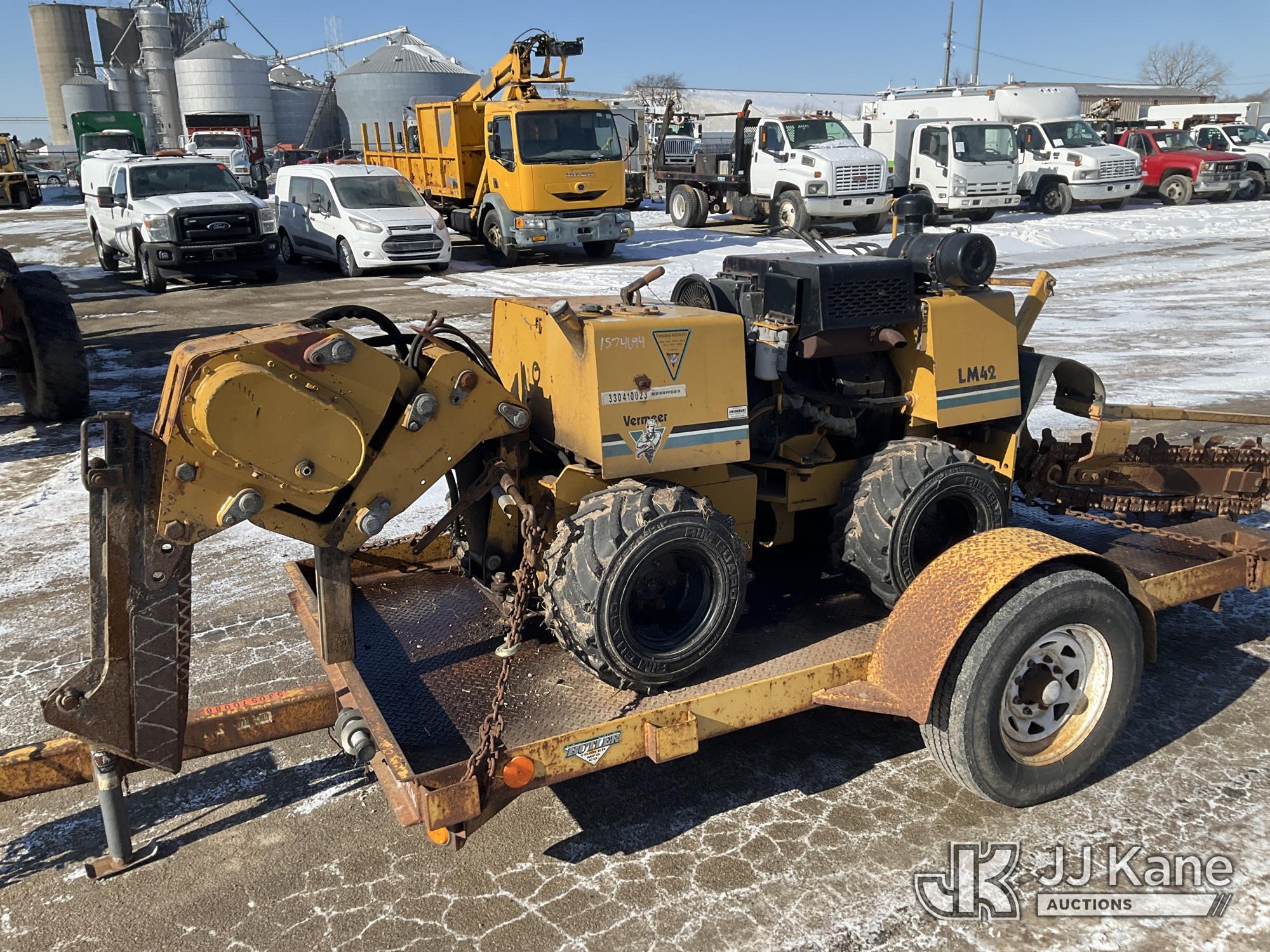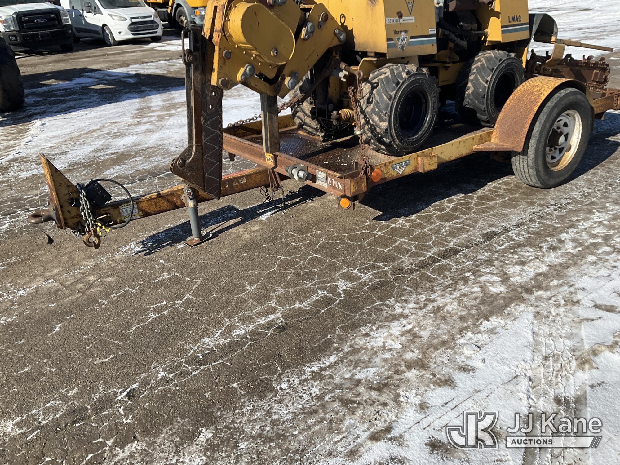 2004 Vermeer LM42 Walk Beside Articulating Combo Trencher/Vibratory Cable Plow, s/n 1VRM112L341002482, Deutz diesel, Hydrostatic, with 2005 Butler Tagalong Support Trailer 1BUD1210451002227, Selling With Item ID 1575696.(Equipment and trailer price will be split out on invoice to reflect 80/20, equipment to trailer price ratio for tax purposes.) (Not Running, Condition Unknown, Cranks, Partially Disassembled) (Reads 815 hours)*