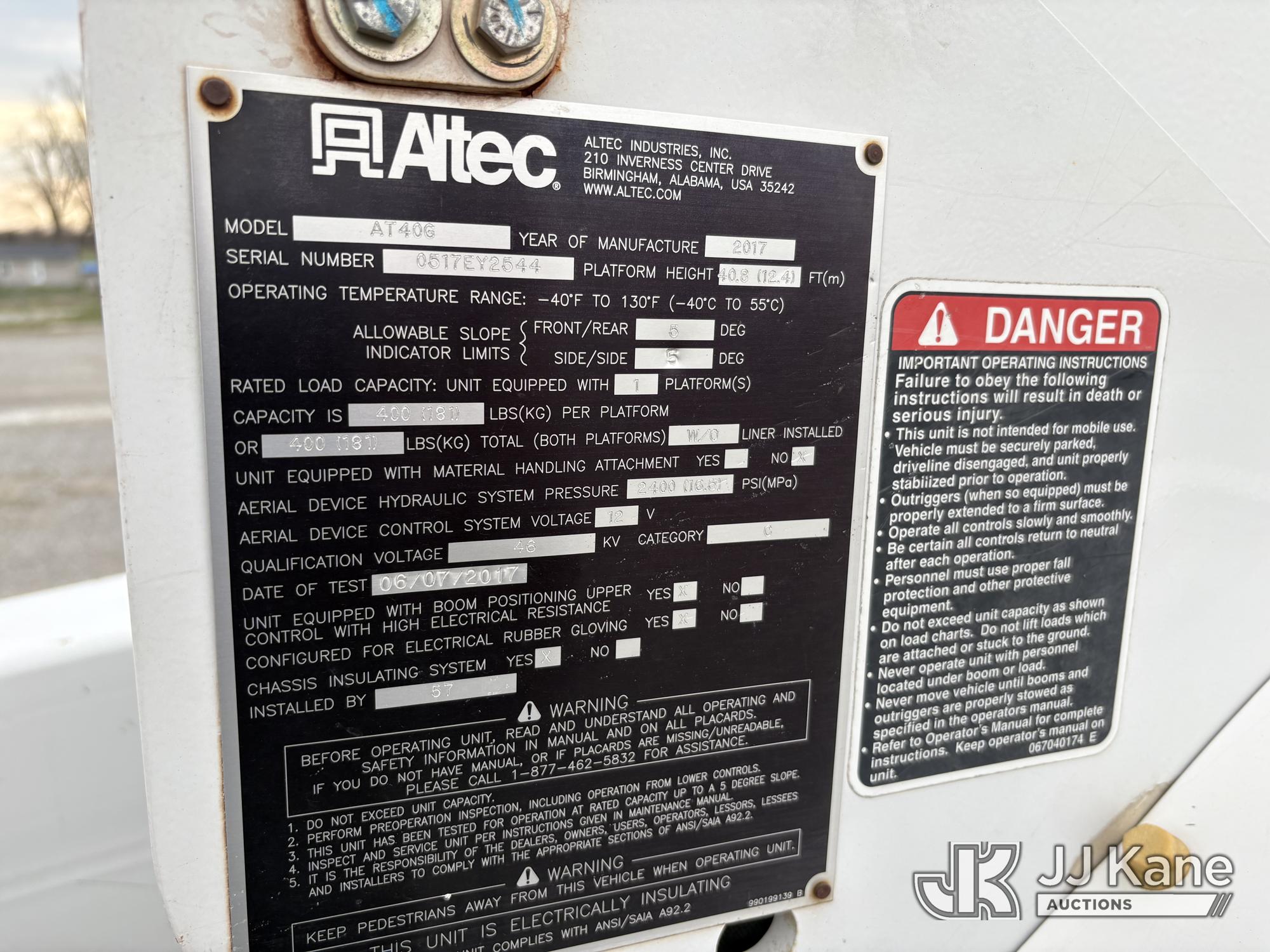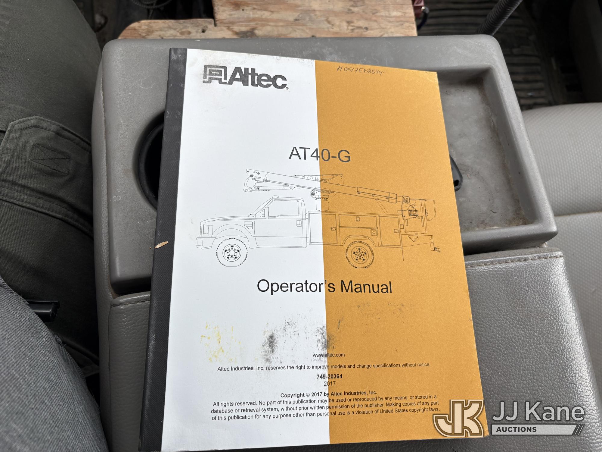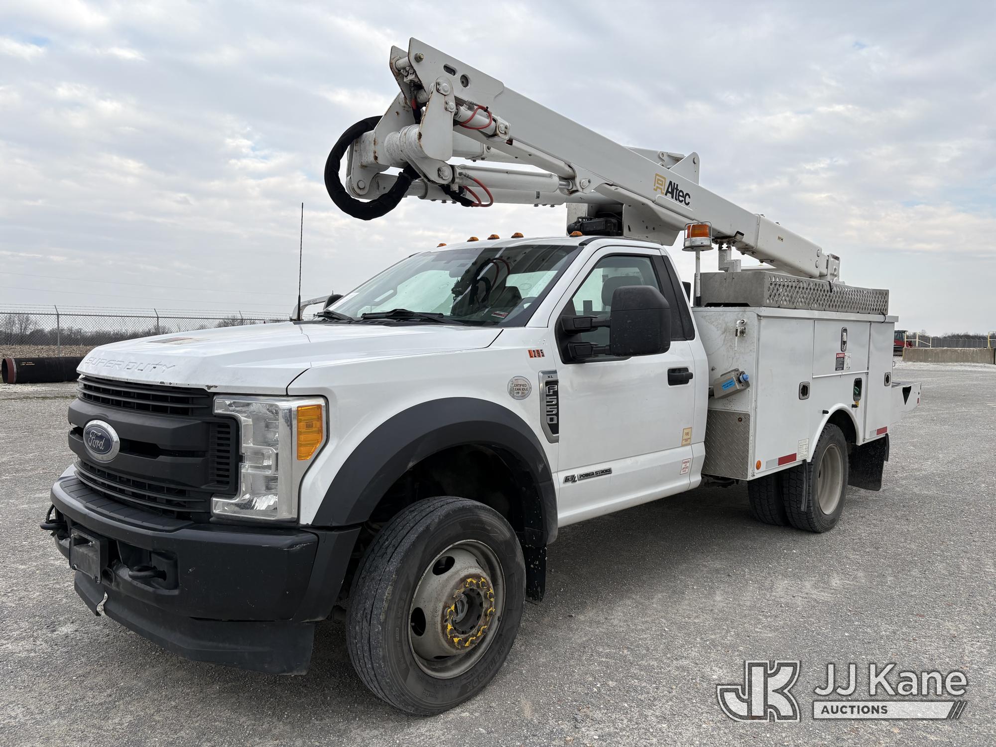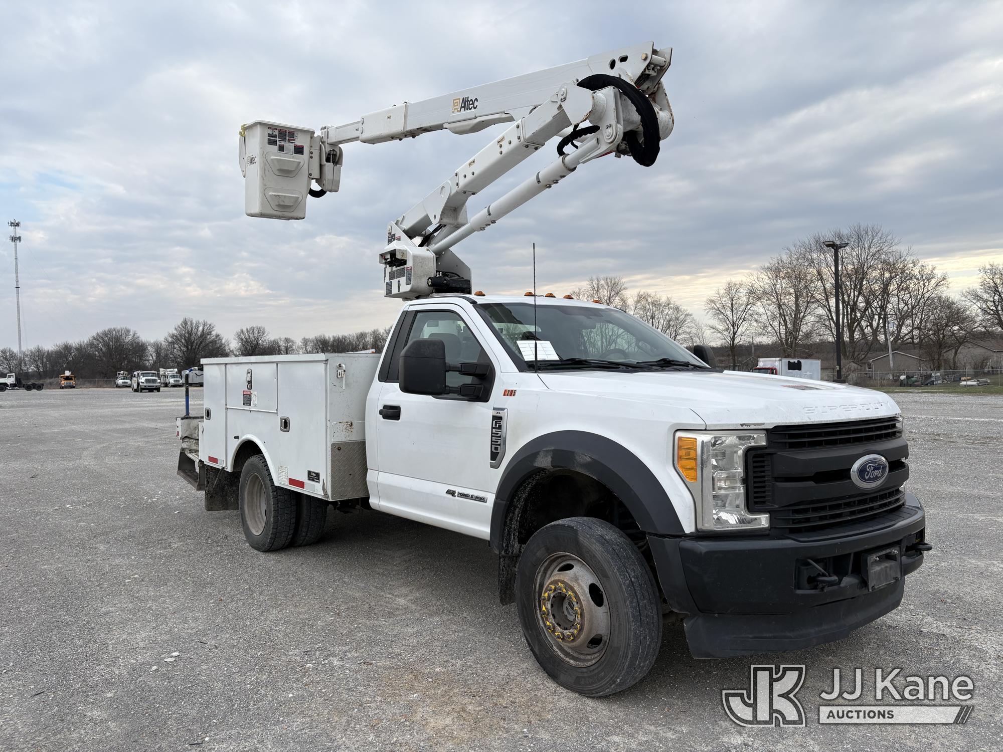 Altec AT40G, 45 ft, Articulating & Telescopic Bucket s/n 0517EY2544, with single man bucket, mounted behind cab on 2017 Ford F-550 Service Truck, s/n 1FDUF5HTXHED46840, 6.7L diesel, 4wd, Auto, A/C, (159,350 miles) (Runs, Moves & Upper Operates) (Check Engine Light On, Minor damage on rear step of utility bed) (Reads 10,939 hours)*
