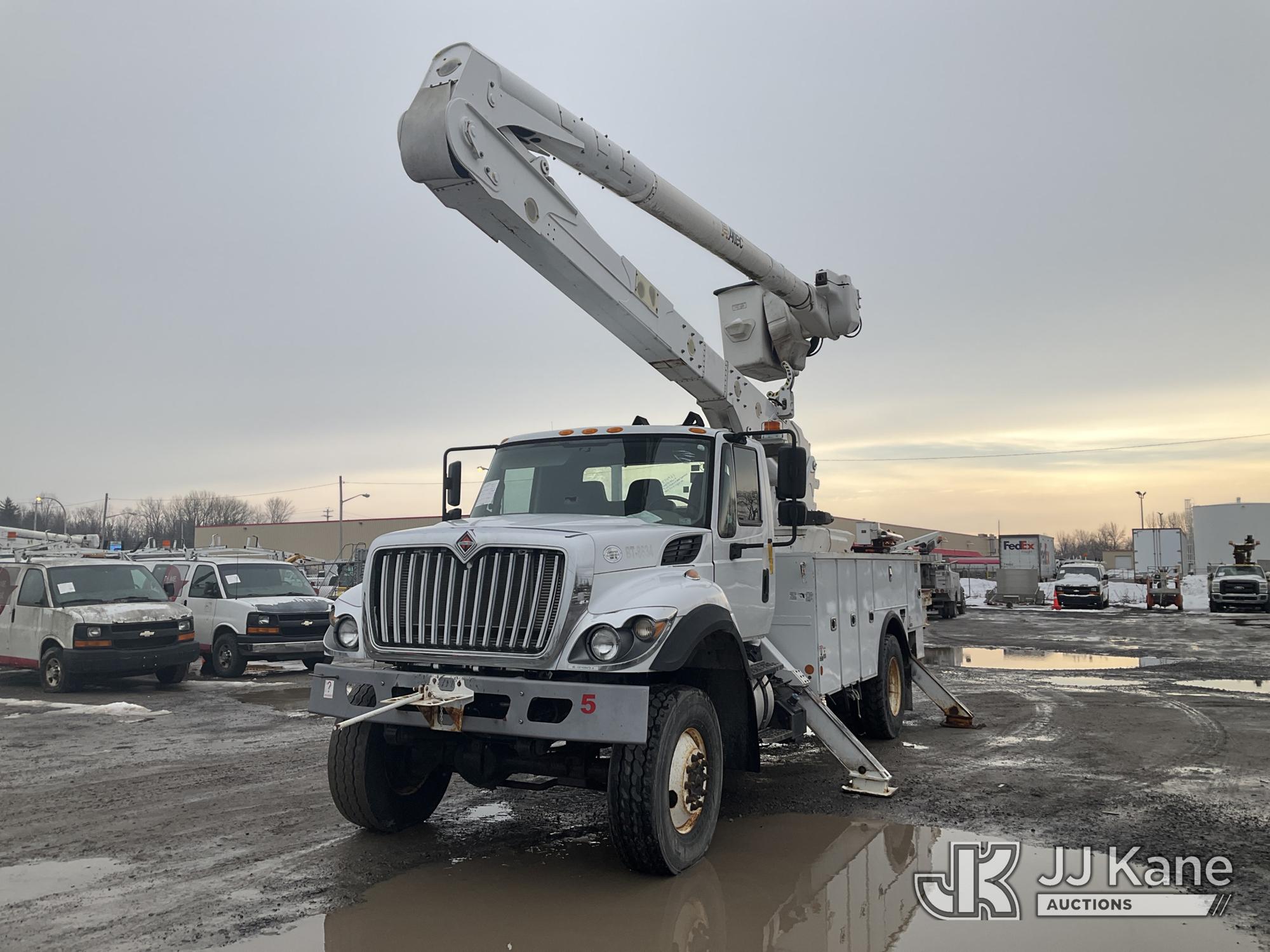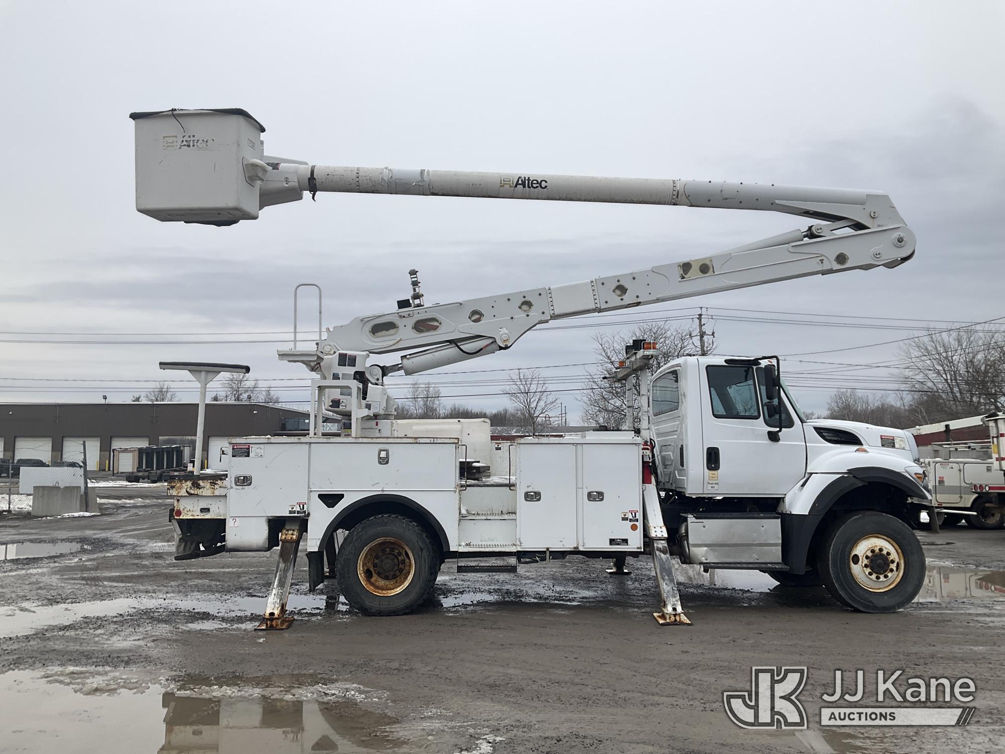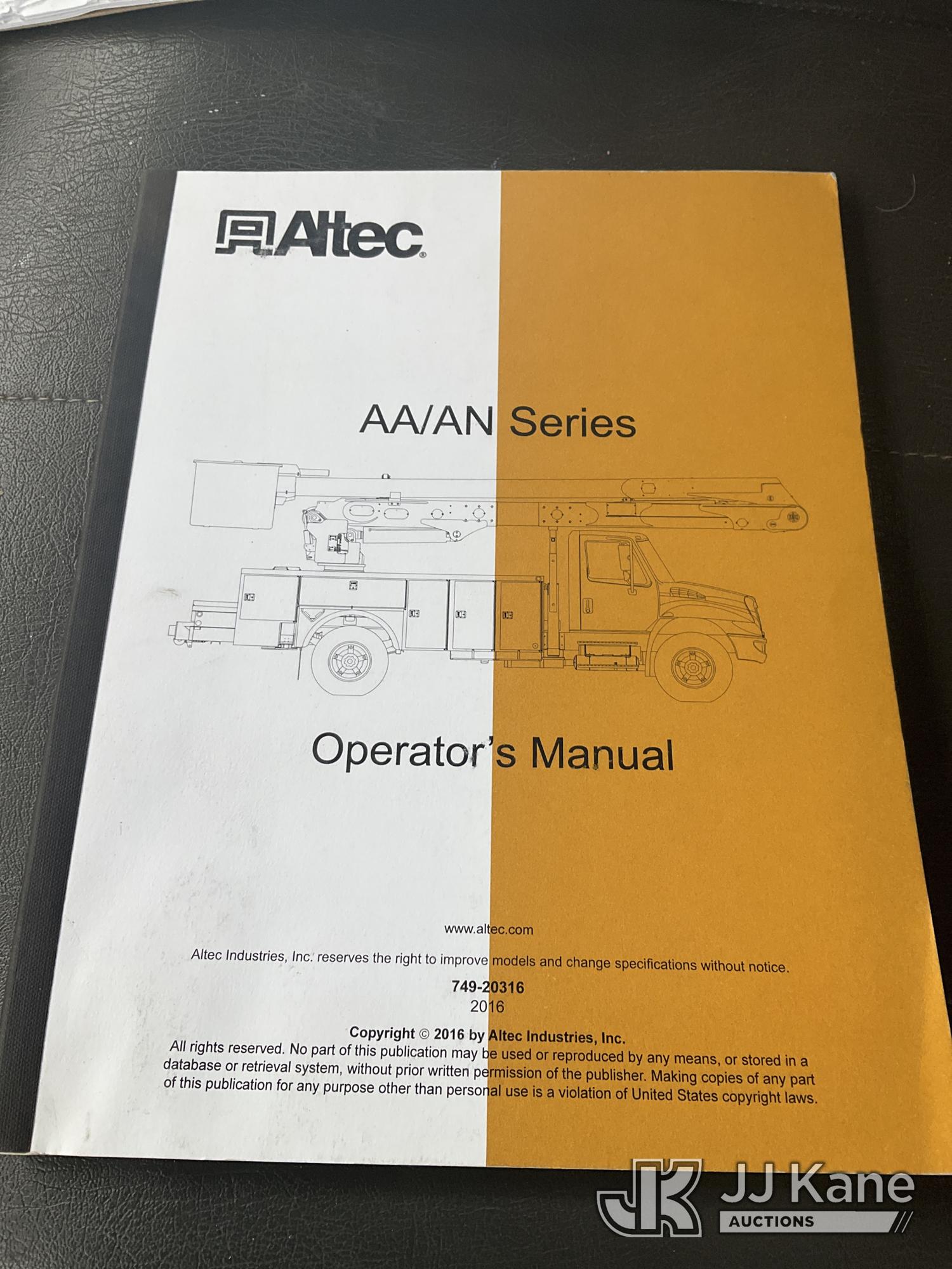 Altec AA55E-MH, 60 ft, Material Handling Bucket Truck s/n 0316FH3086 , with Two-Man Bucket & 4 Outriggers, rear mounted on 2017 International 7300 4x4 Utility Truck, Cummins 6.7L diesel, Auto, A/C, (78,801 miles) (Runs, Moves & Upper Operates, Jump To Start, DEF Fluid Light On, No Upper Plate) This is a Titled Item*