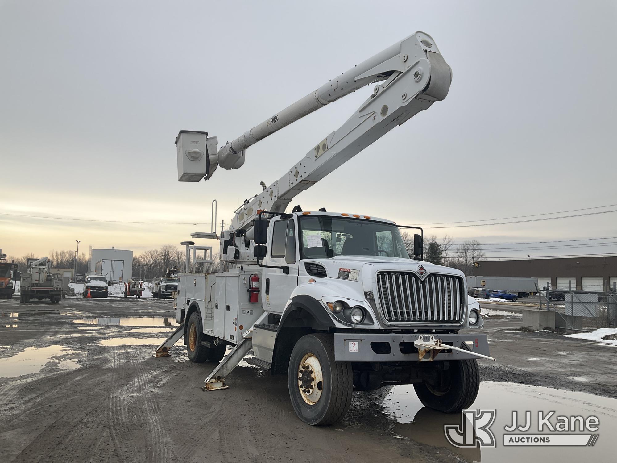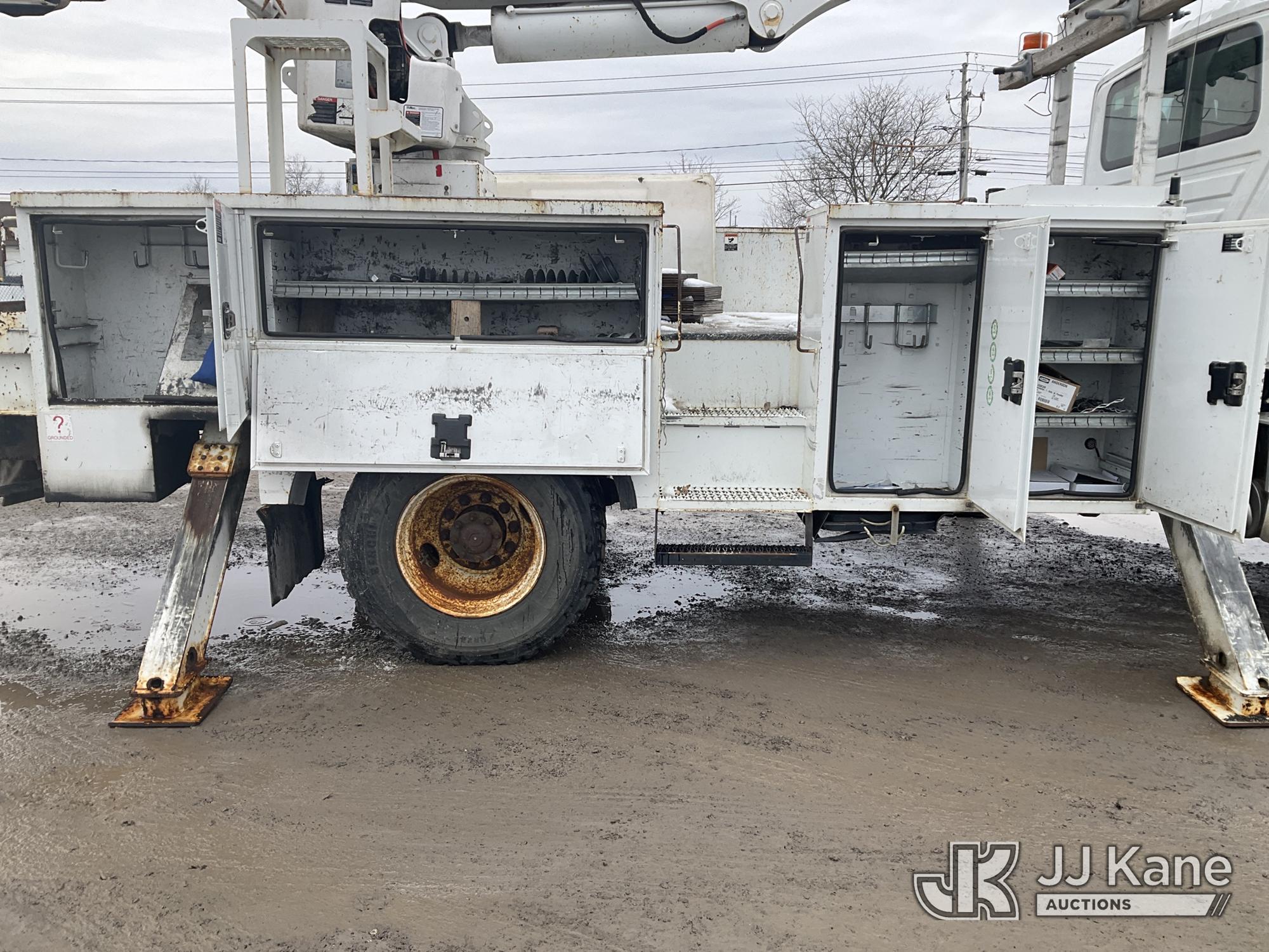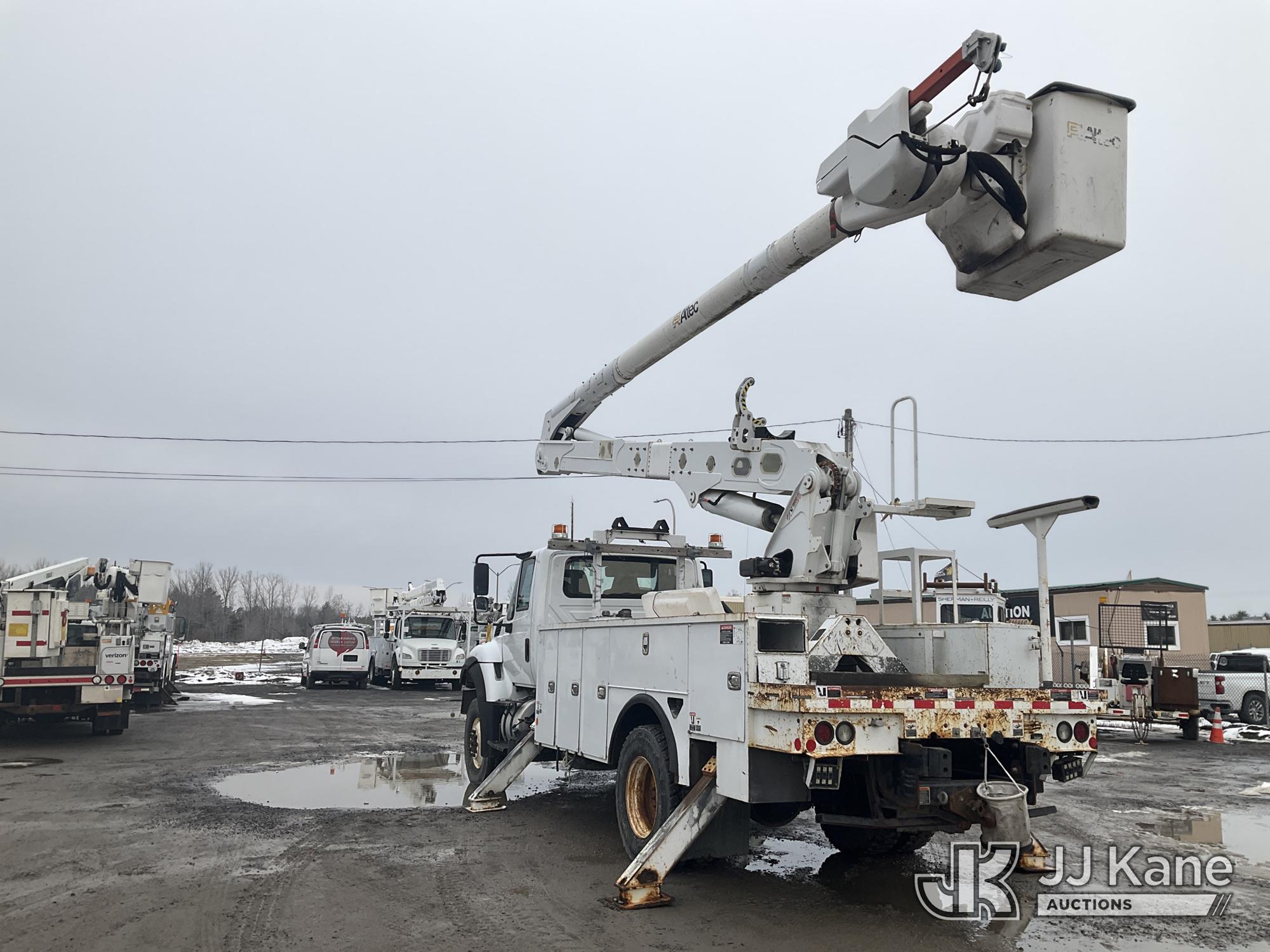 Altec AA55E-MH, 60 ft, Material Handling Bucket Truck s/n 0316FH3086 , with Two-Man Bucket & 4 Outriggers, rear mounted on 2017 International 7300 4x4 Utility Truck, Cummins 6.7L diesel, Auto, A/C, (78,801 miles) (Runs, Moves & Upper Operates, Jump To Start, DEF Fluid Light On, No Upper Plate) This is a Titled Item*