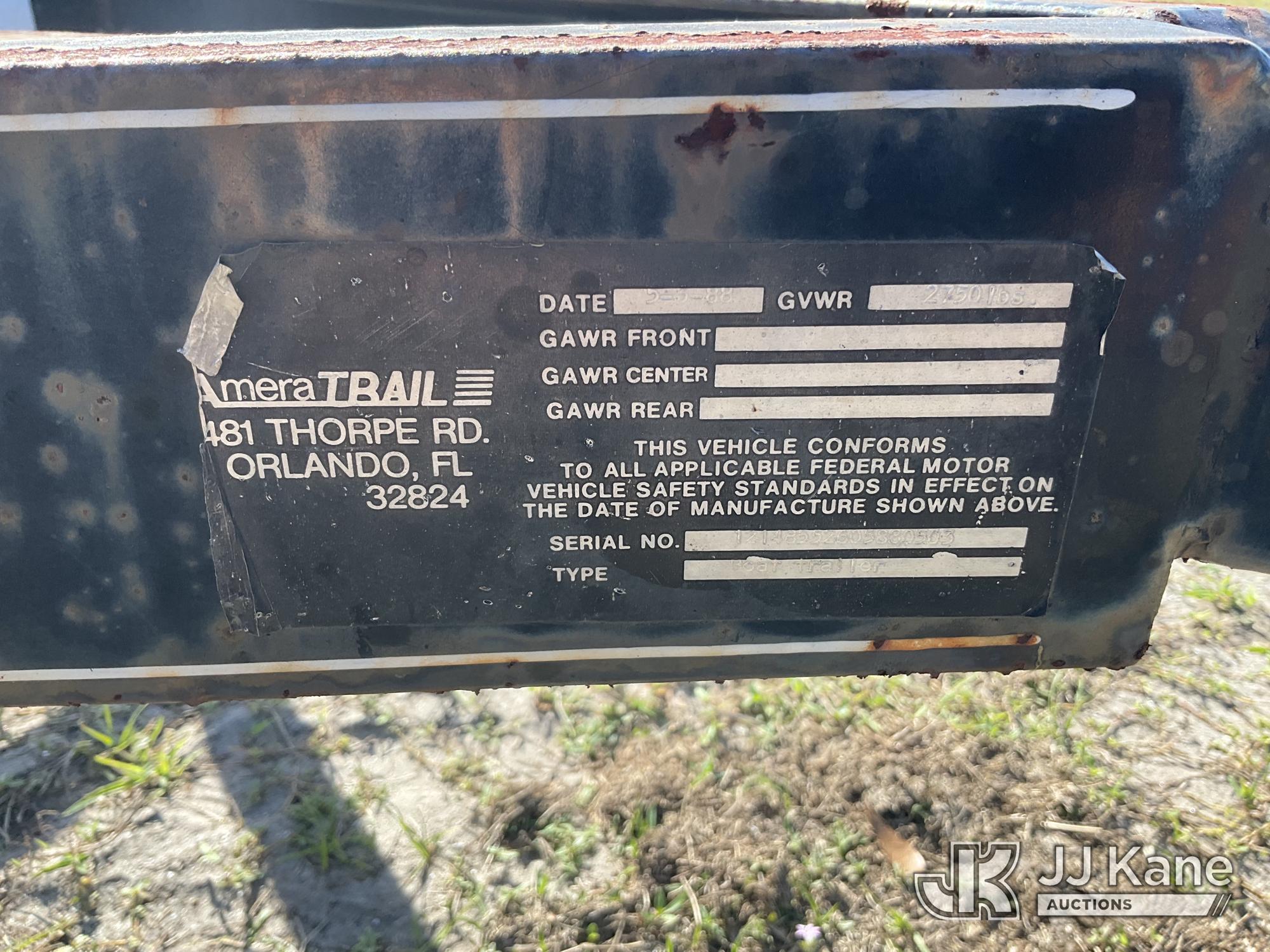 1988 Ameratrail Airboat Trailer Single Axle Boat Trailer, s/n 12148552605880503, State of FL Unit (No Title) (FL Residents Purchasing Titled Items - tax, title & registration fees will be collected at the maximum rate of $400.00 under 25,999 and $800.00 for Over 26,000 and $250.00 trailers - Proof of insurance is mandatory; Out of State Residents Purchasing Title Items - tax will be collected based upon your state rate.)*