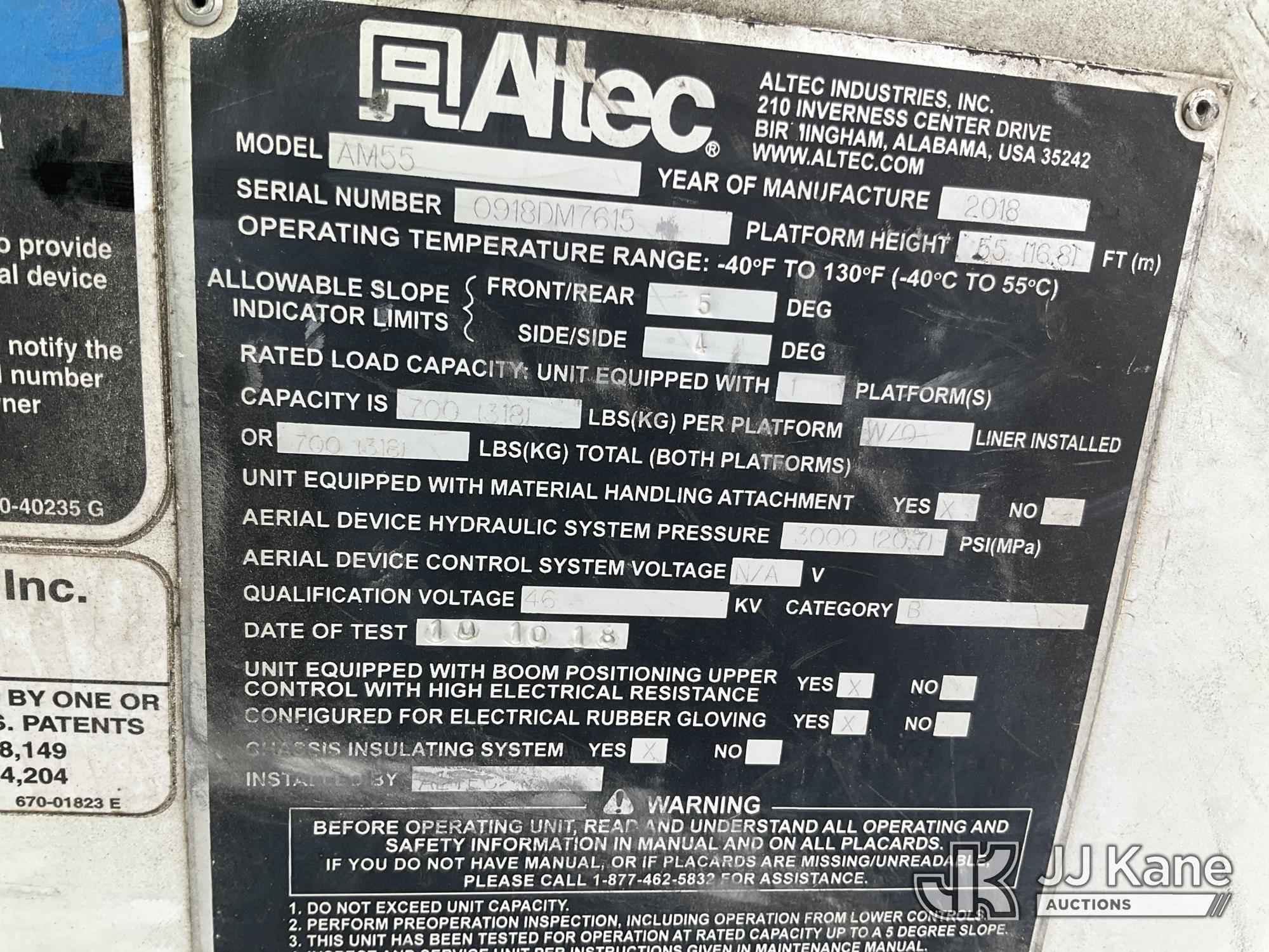 Altec AM55, 60 ft, Over-Center Material Handling Bucket s/n 0918DM7615, with Two-Man Bucket, rear mounted on 2019 Freightliner M2 Utility Truck, Cummins ISB 6.7L Diesel A/C, (43,174 miles) (Runs, Moves & Upper Operates) (Reads 6,632 hours) This is a Titled Item*