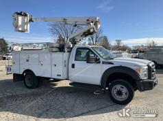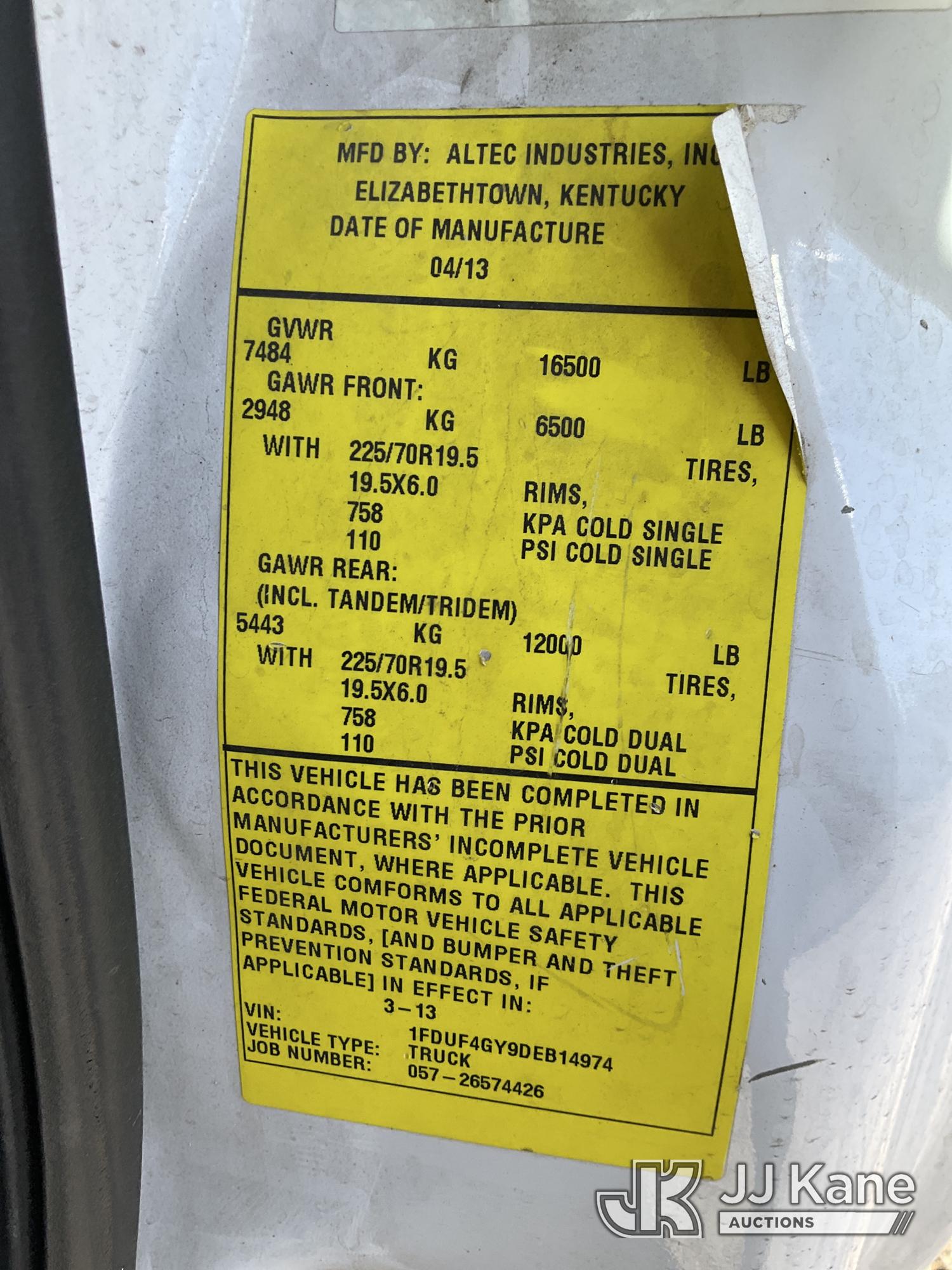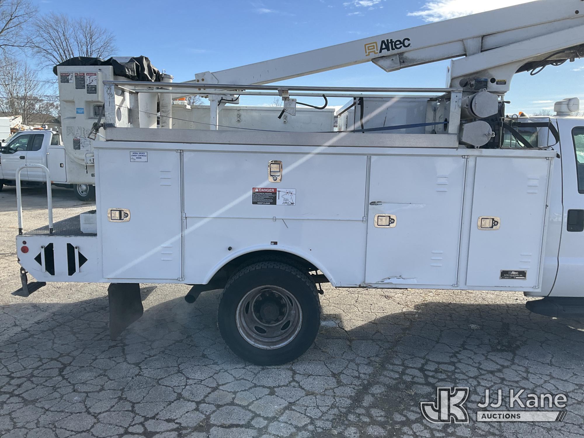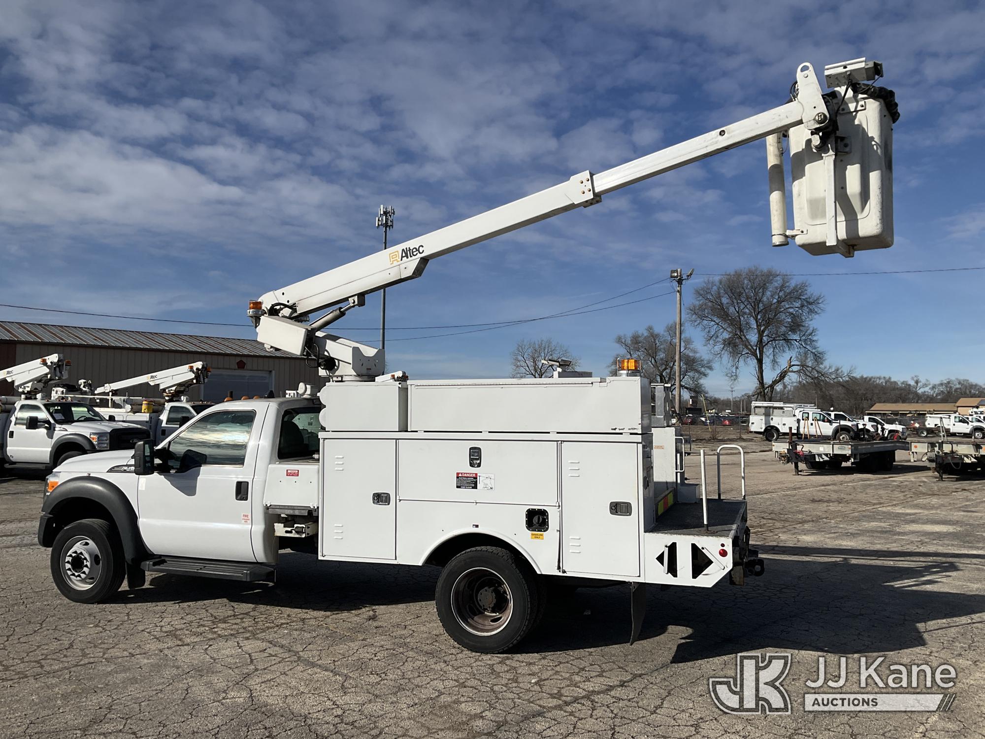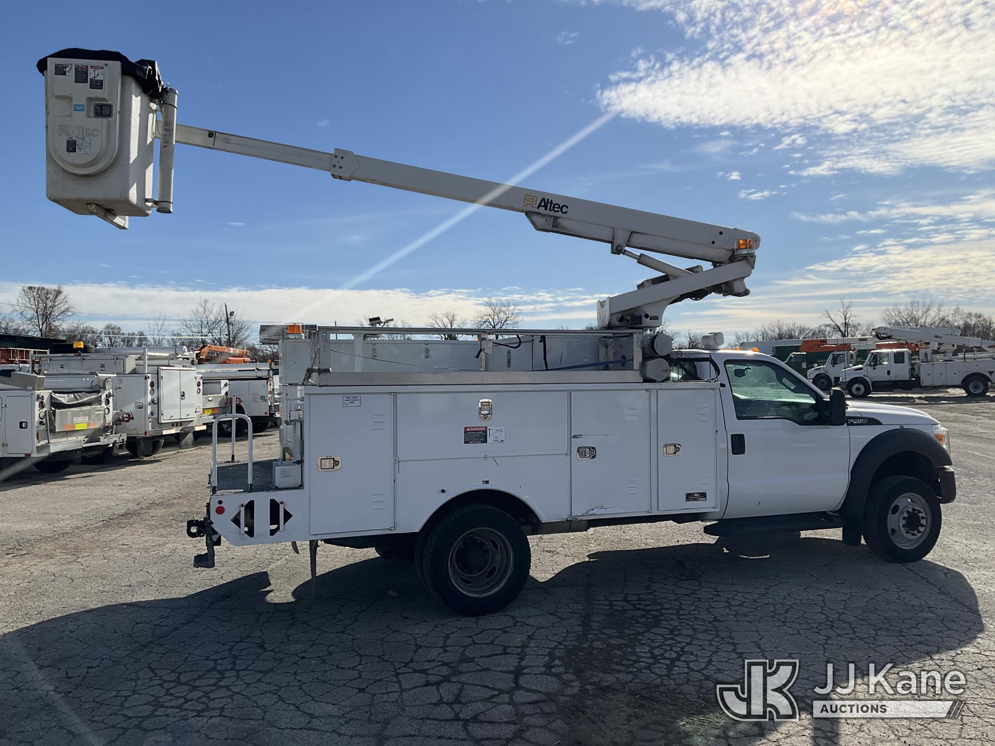 Altec AT200A, 35 ft, Telescopic Bucket Truck s/n 0413BV20268, with single-man, mounted behind cab on 2013 Ford F-450 SD Regular Cab DRW 2WD Service Truck, 6.8L V10 SOHC 30V RWD, GAS, Auto, A/C, (42,849 miles) (Runs, Moves & Upper Operates)(Need Upper Battery, Damage-Passenger Side Service Body) This is a Titled Item*