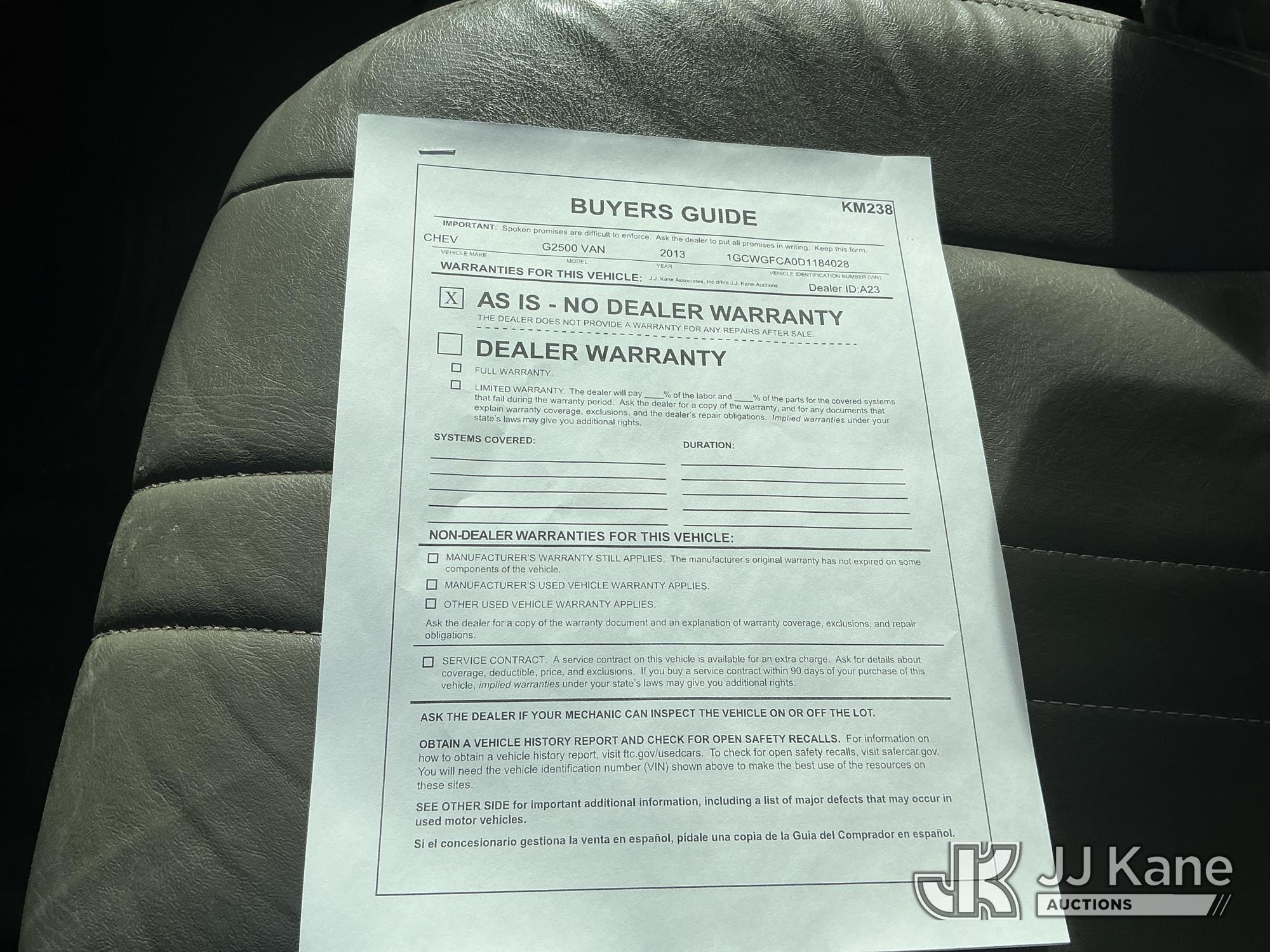 2013 Chevrolet Express G2500 Cargo Van, 8-cyl gas, Auto, A/C, (329,035 miles) (Runs & Moves) (Cracked Windshield, Paint Damage) This is a Titled Item*