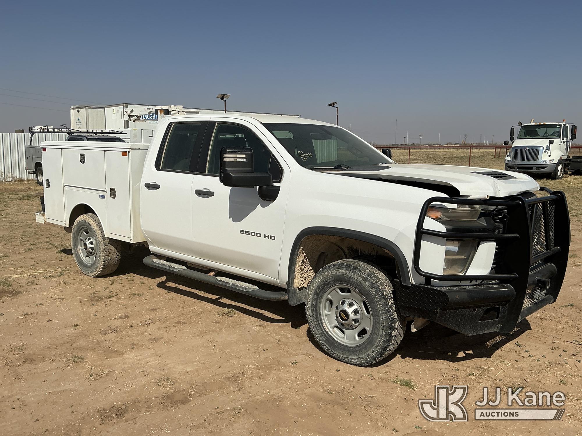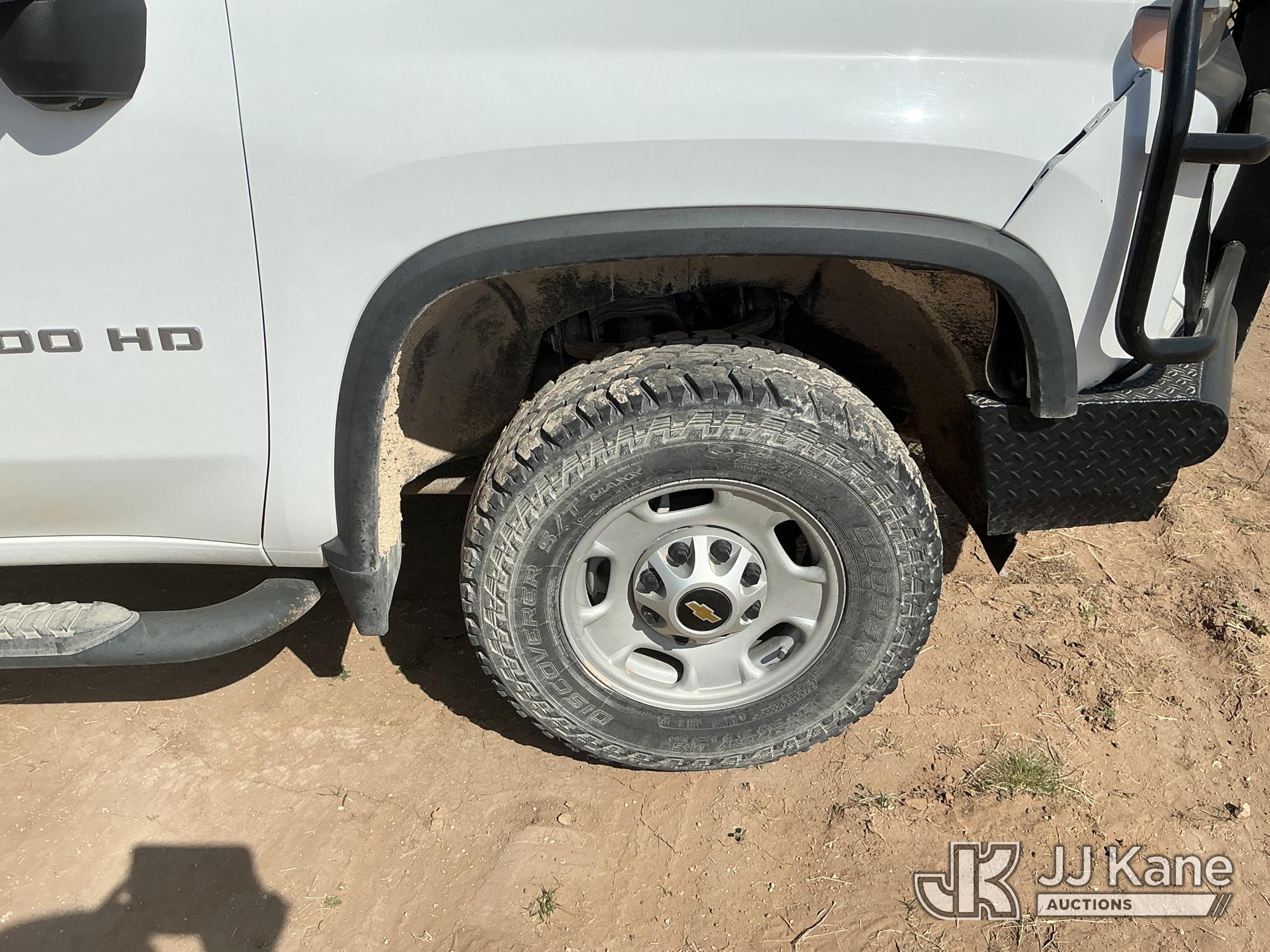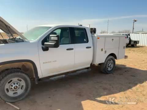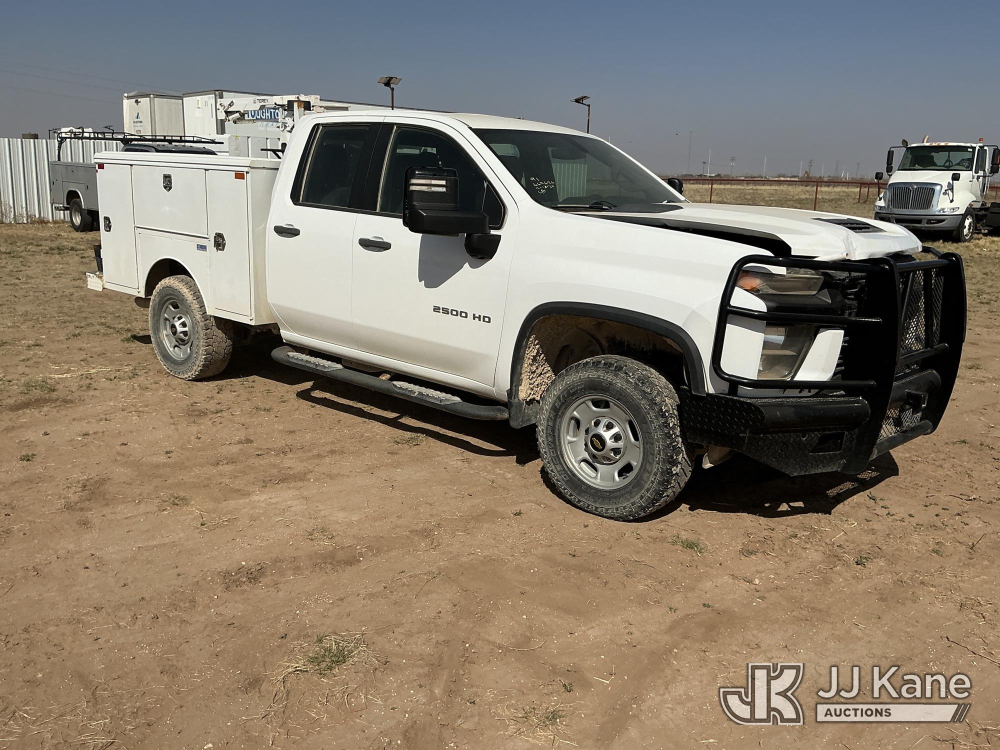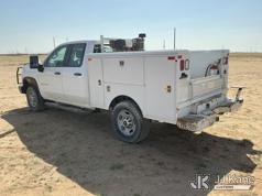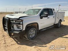2020 Chevrolet Silverado 2500HD Crew-Cab Service Truck, 8-cyl gas, 4wd, 6-Speed Automatic, A/C, with heavy duty front bumper w/ brush guard, air compressor, (126,749 miles) (Jump To Start, Engine Shuts Down Once Jumpstart Box Is Removed, Moves) (Significant Hood Damage Hood Is Hard To Open, Paint & Body Damage. Unit must be picked up within 10 calendar days or a $39.99/day storage fee and a $22.95 + plus tax impound fee will apply.) (Reads 5,836 hours) This is a Titled Item*