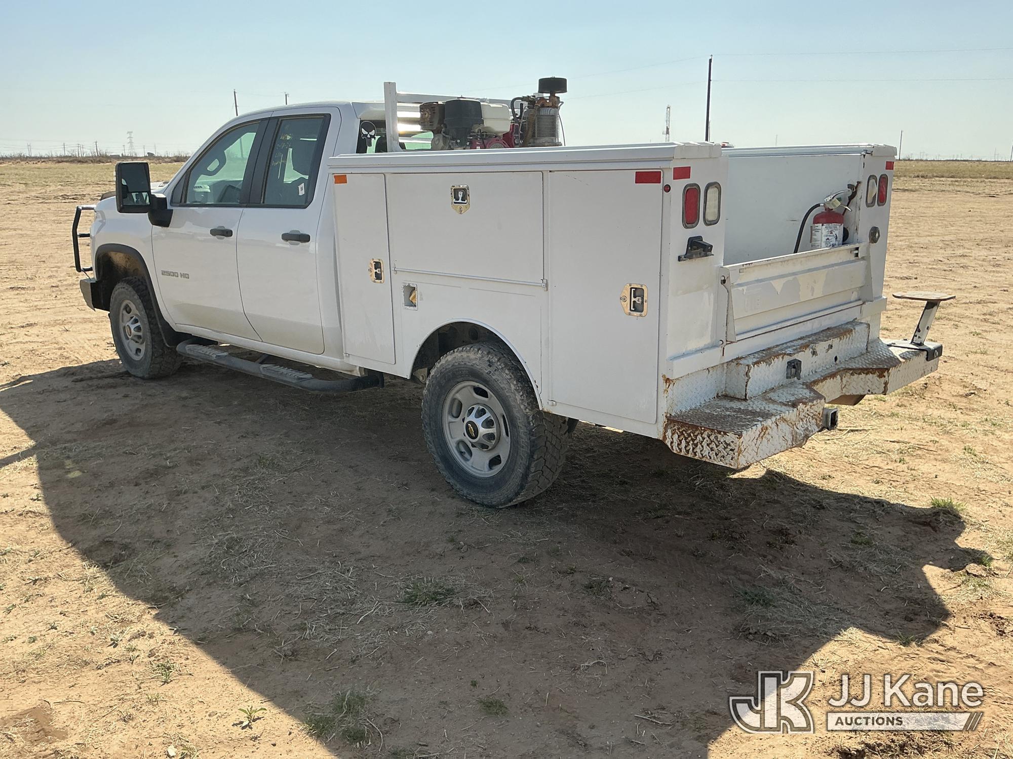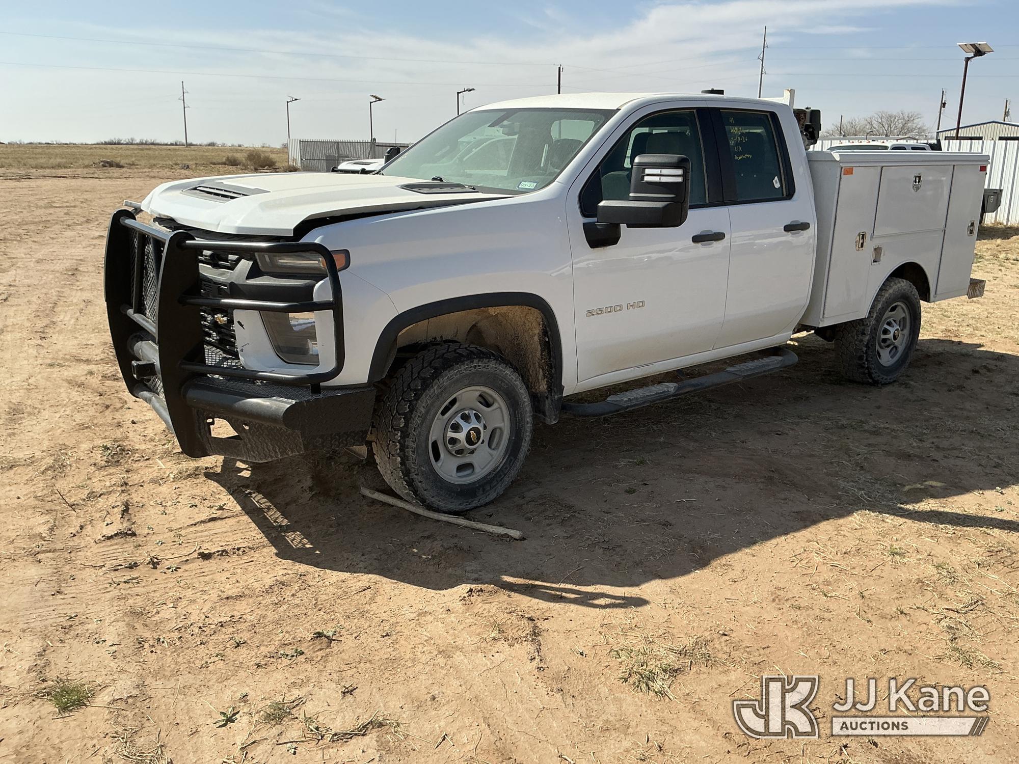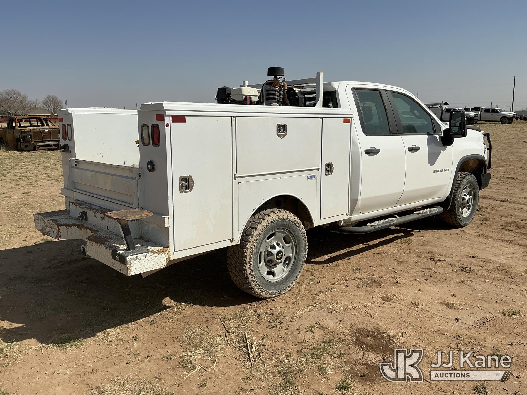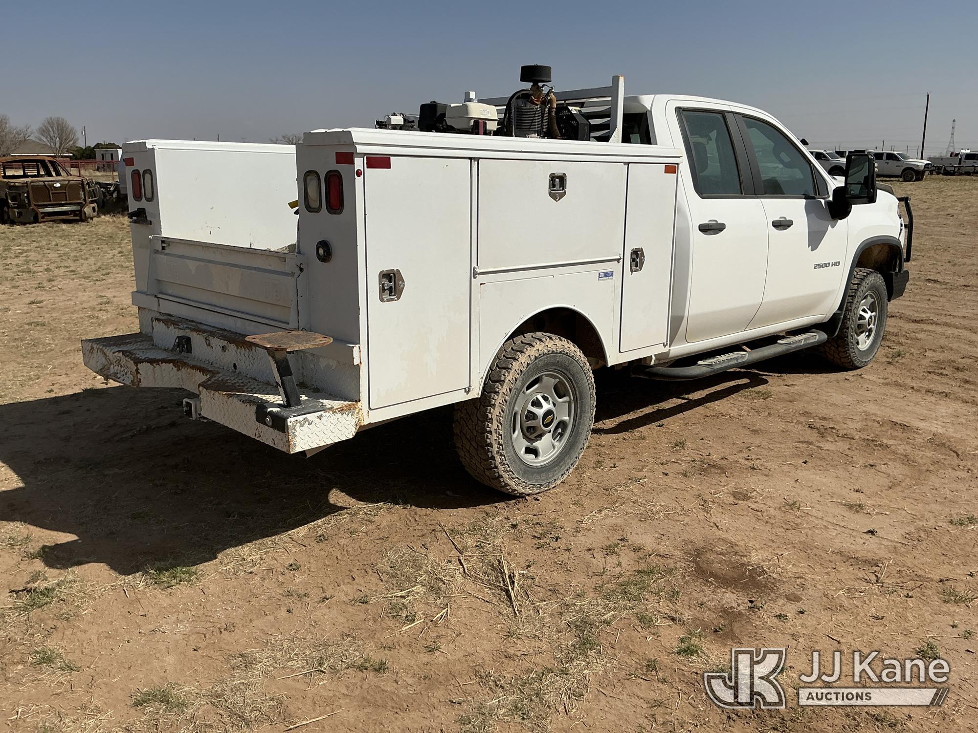 2020 Chevrolet Silverado 2500HD Crew-Cab Service Truck, 8-cyl gas, 4wd, 6-Speed Automatic, A/C, with heavy duty front bumper w/ brush guard, air compressor, (126,749 miles) (Jump To Start, Engine Shuts Down Once Jumpstart Box Is Removed, Moves) (Significant Hood Damage Hood Is Hard To Open, Paint & Body Damage. Unit must be picked up within 10 calendar days or a $39.99/day storage fee and a $22.95 + plus tax impound fee will apply.) (Reads 5,836 hours) This is a Titled Item*