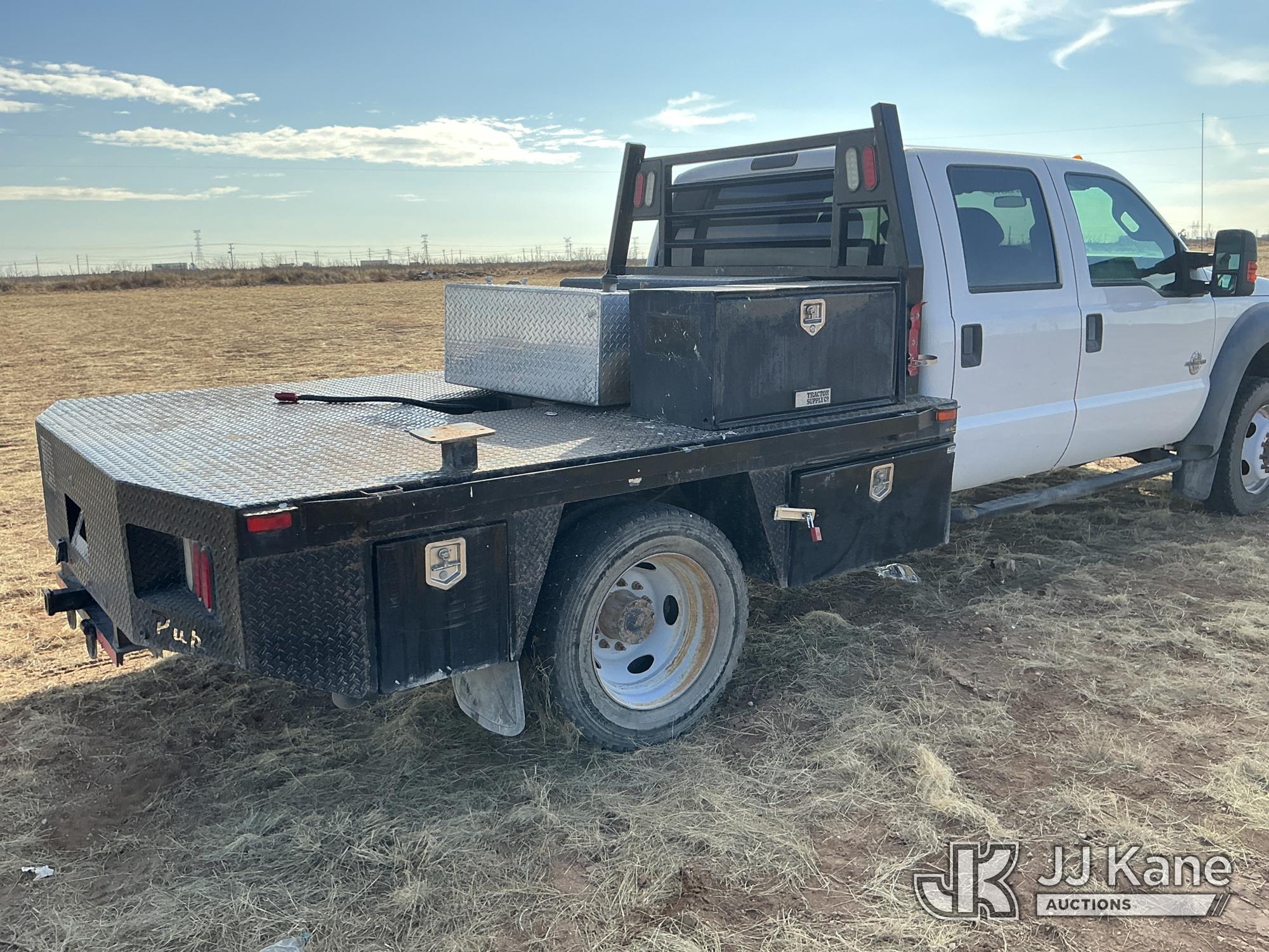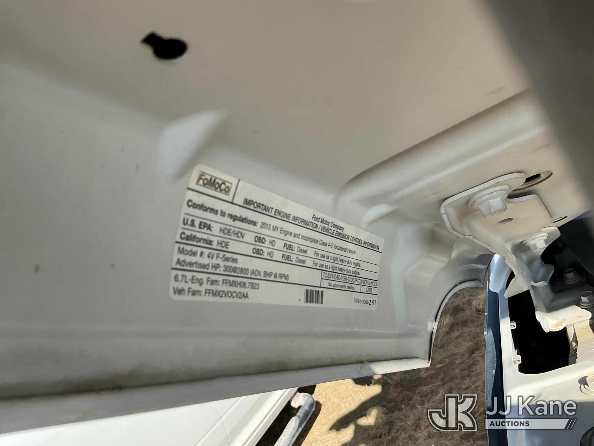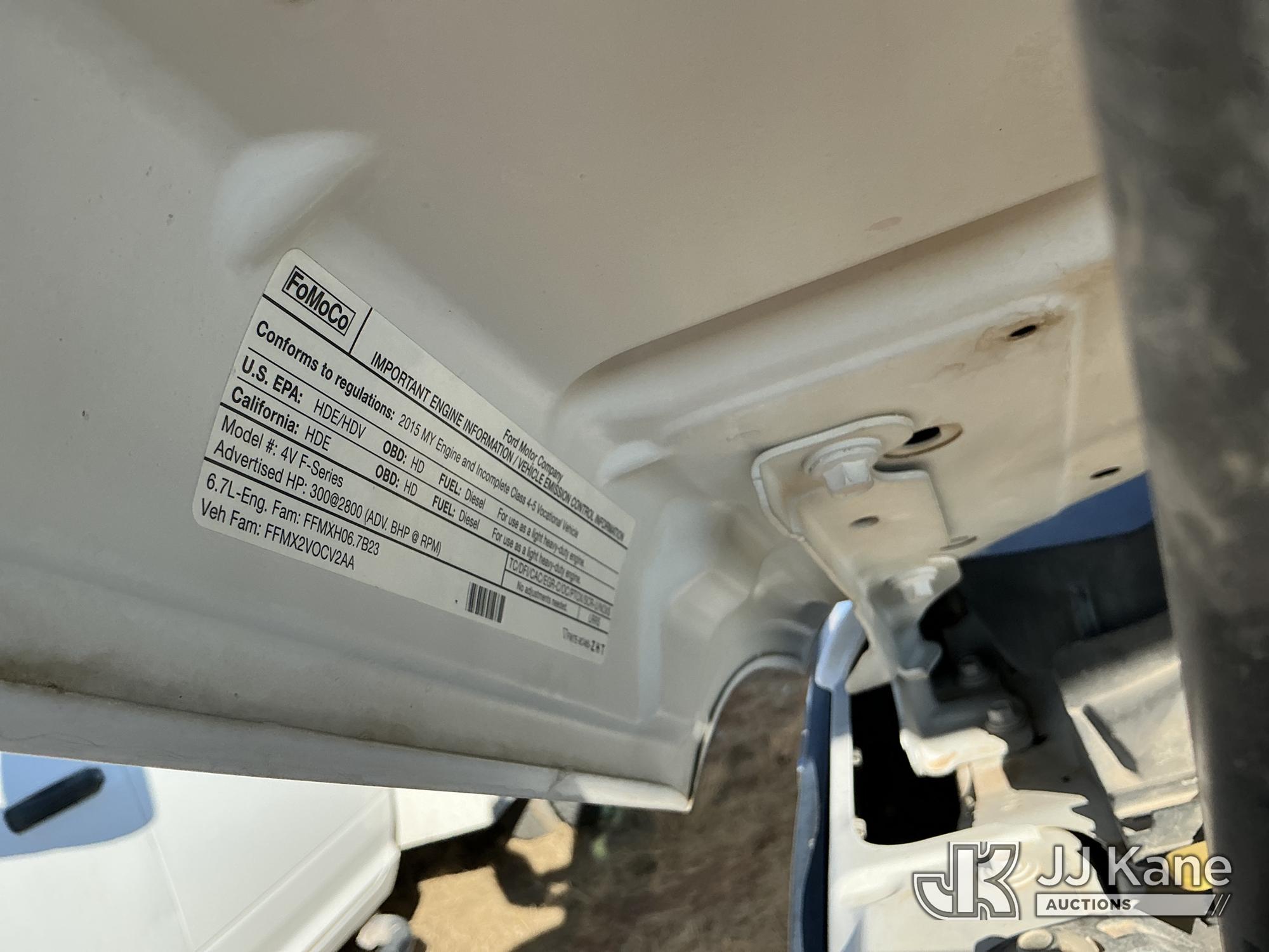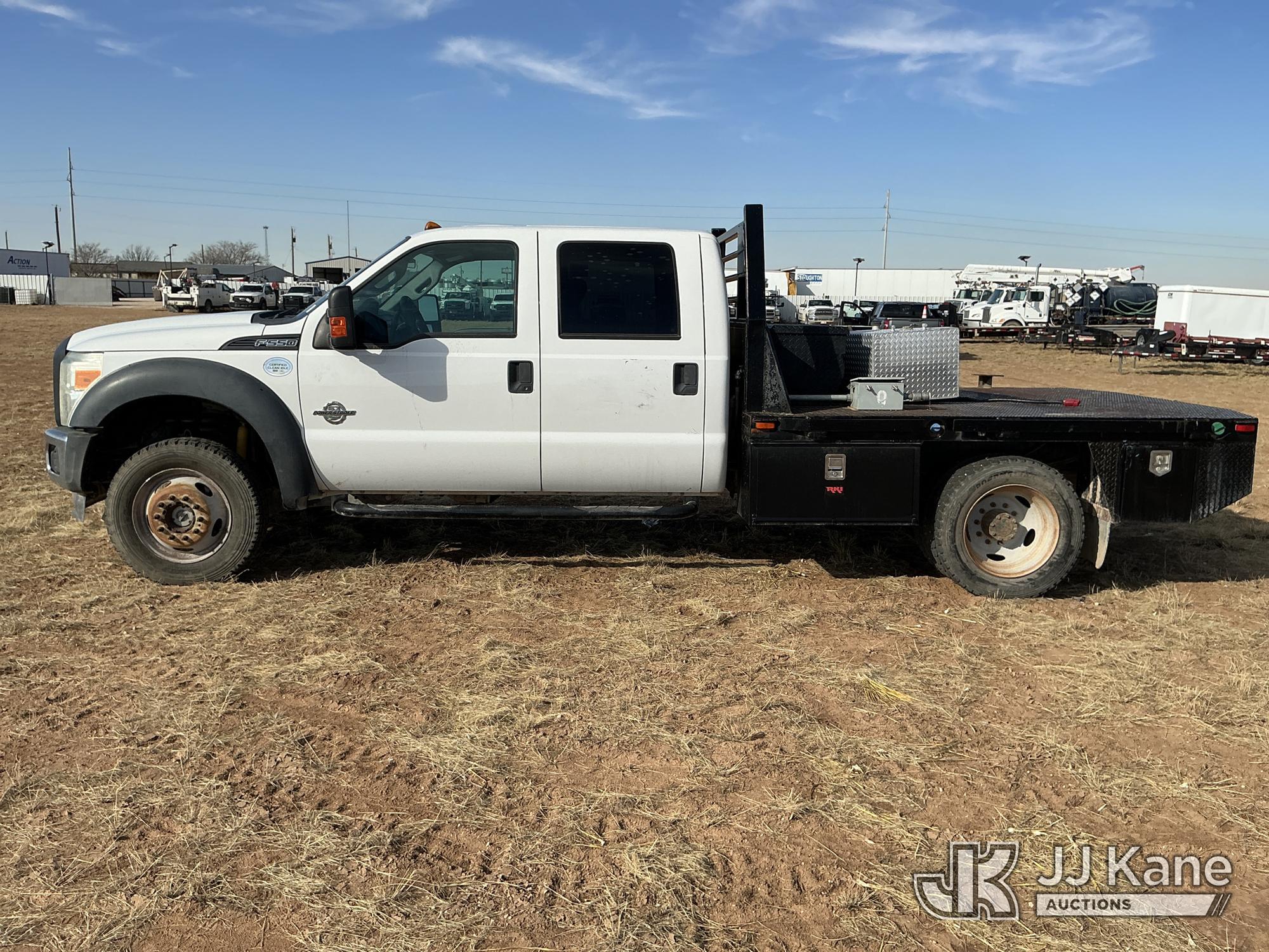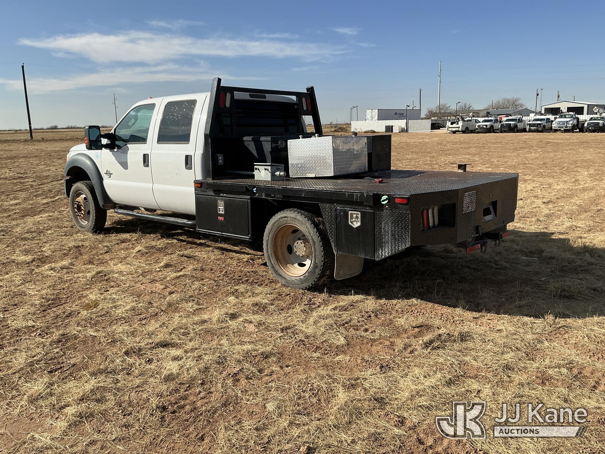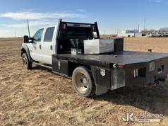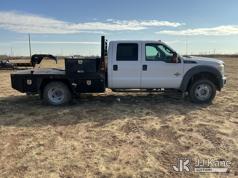 2015 Ford F-550 4WD Crew-Cab Flatbed/Service Truck, 6.7L diesel, Auto, A/C, with fuel transfer tank, (117,889 miles) (Runs & Moves) (Electrical Cables Are Out & Disarrayed In The Back Seat, Windshield Cracked, Paint & Body Damage, Passenger Side Cargo Toolbox Does Not Close. Unit must be picked up within 10 calendar days or a $39.99/day storage fee and a $22.95 + plus tax impound fee will apply.) (Reads 6,927 hours) This is a Titled Item*