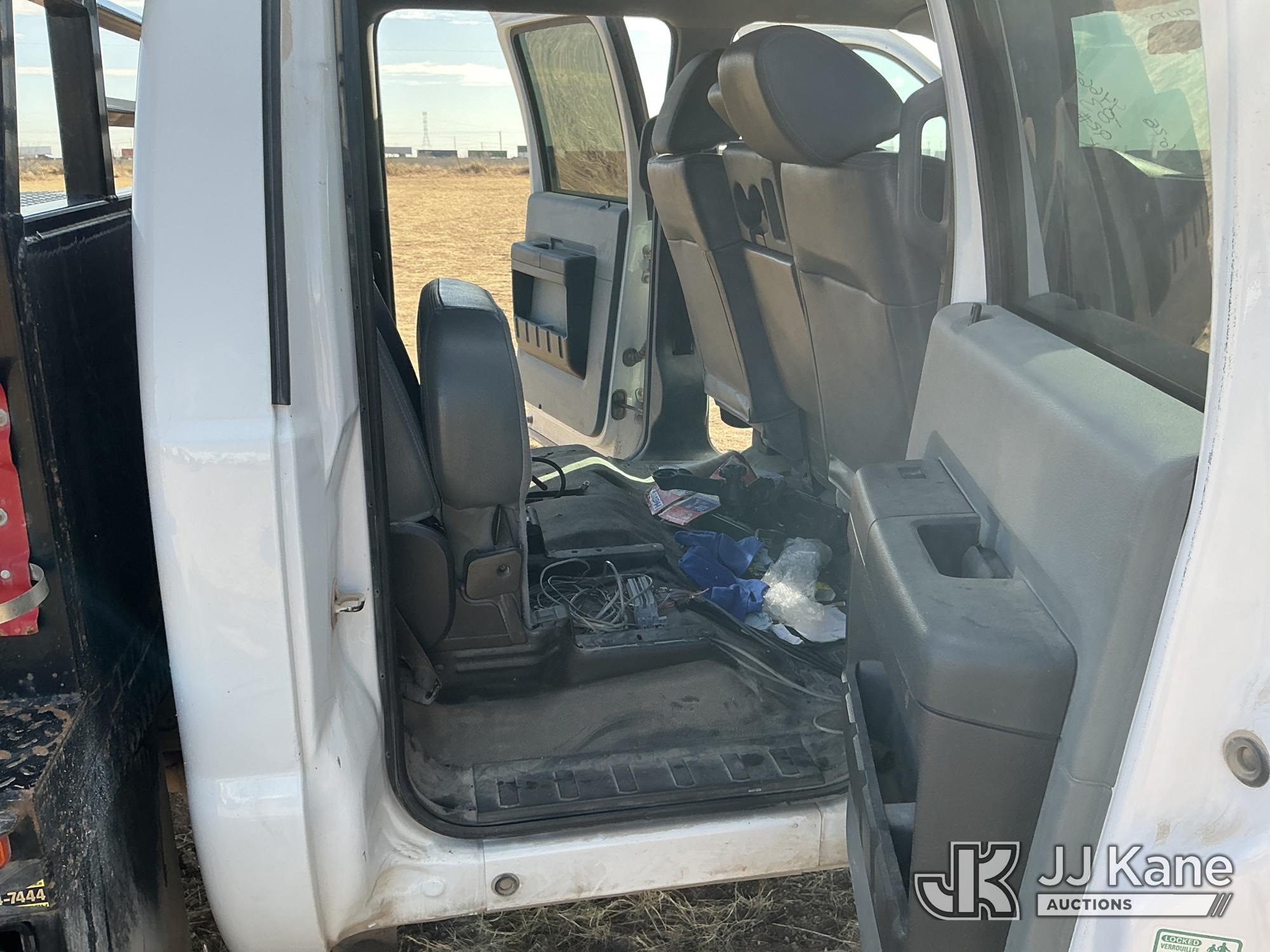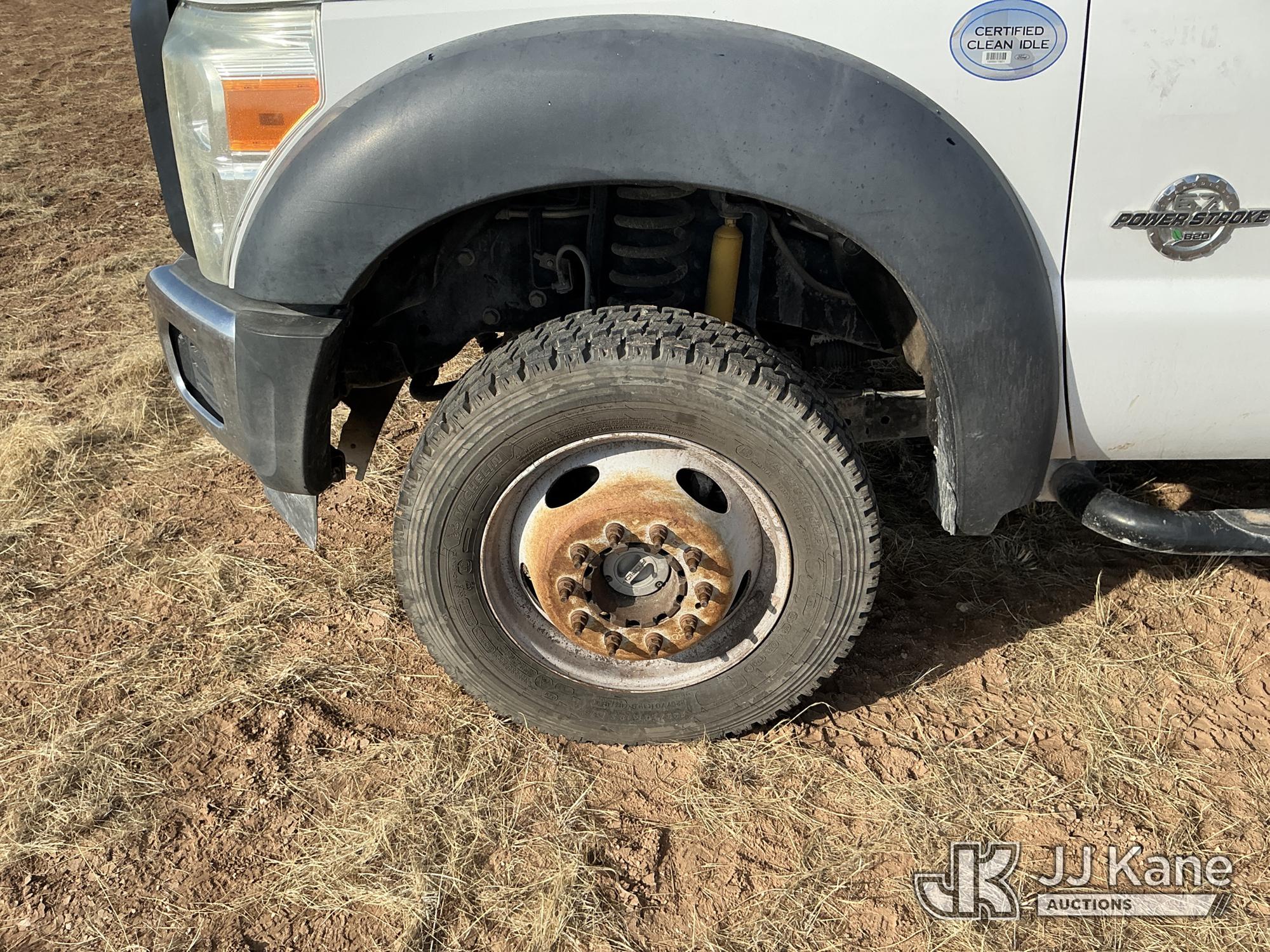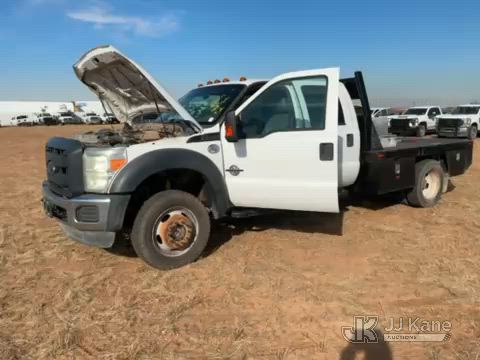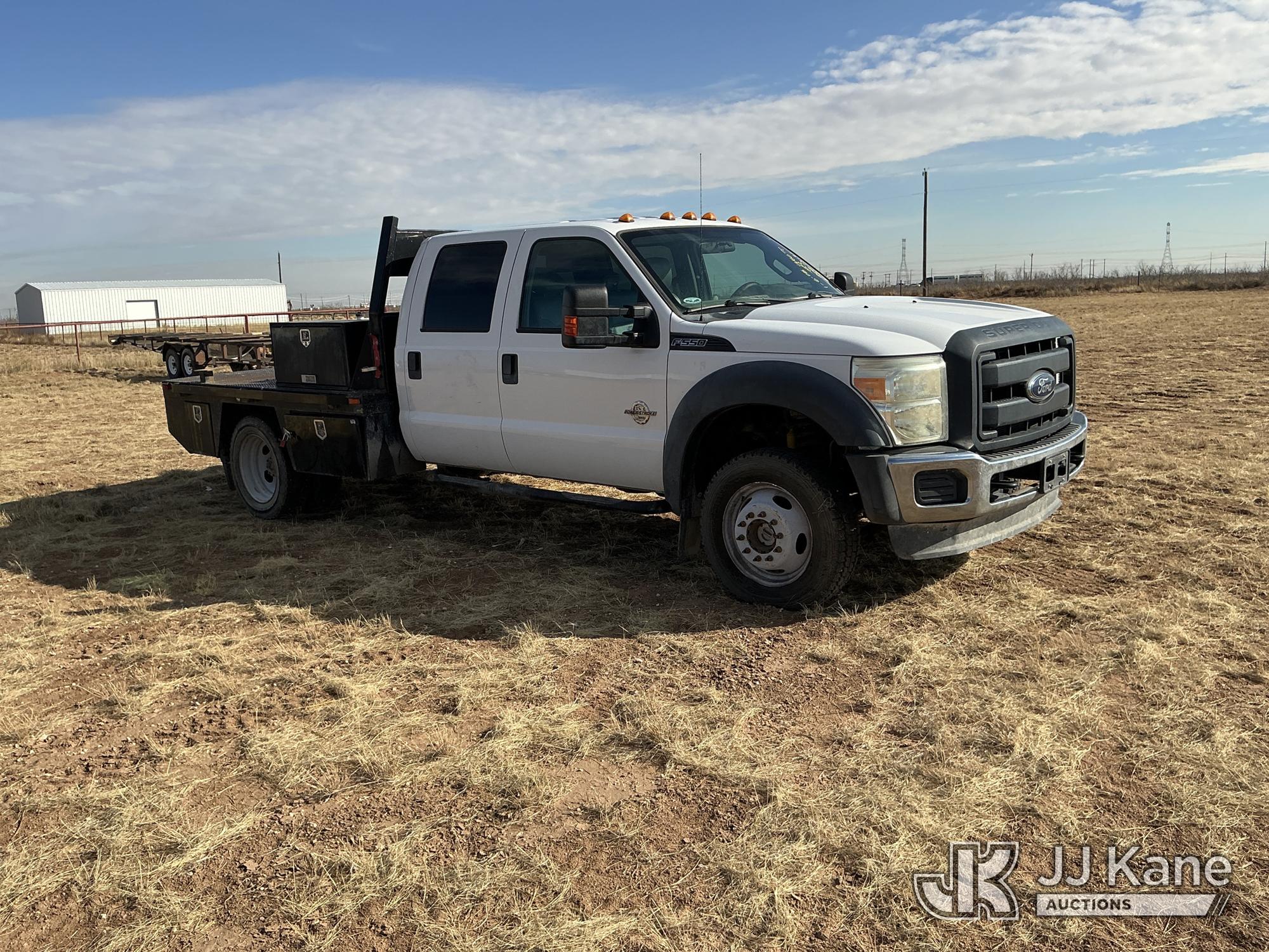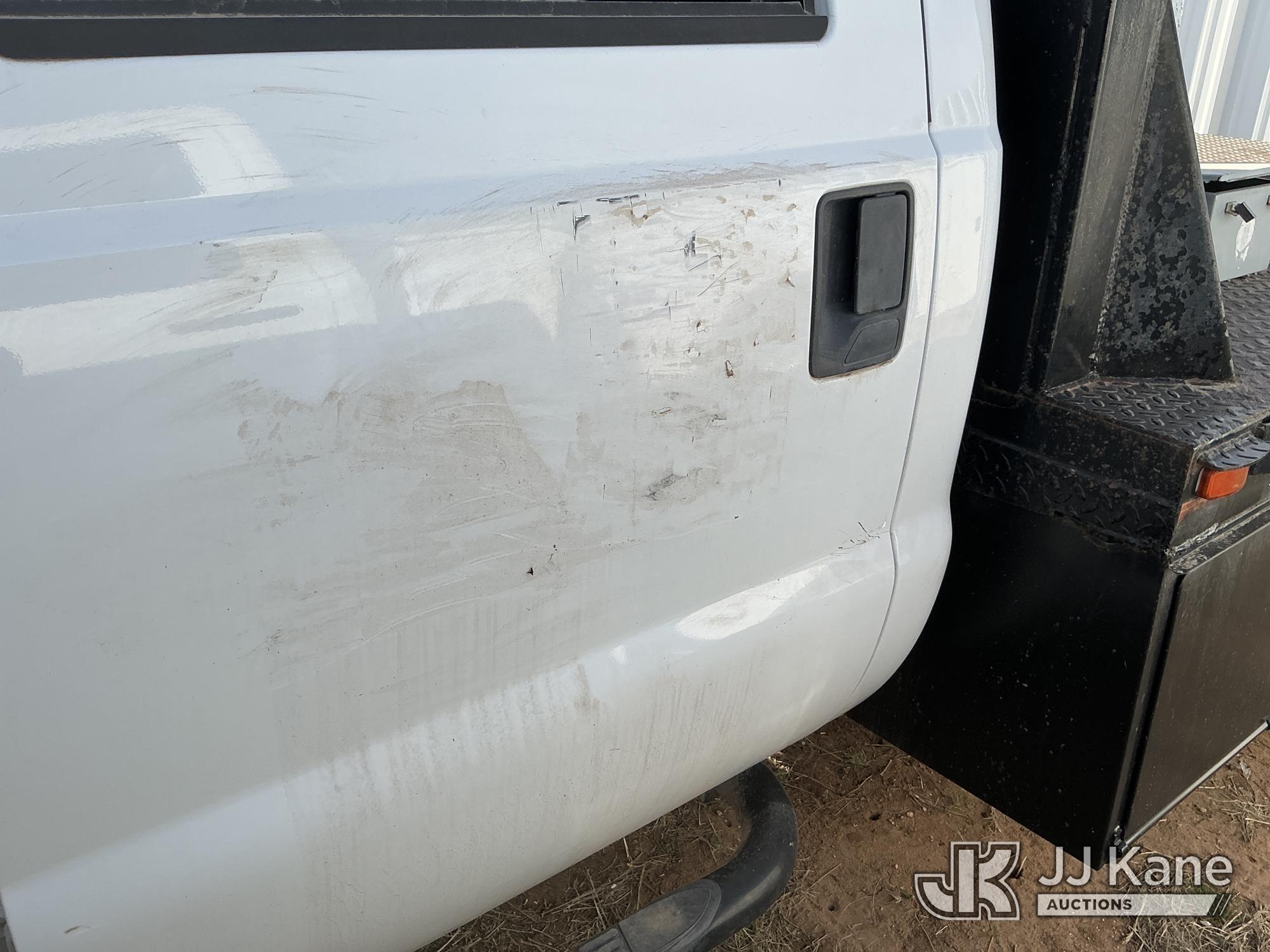 2015 Ford F-550 4WD Crew-Cab Flatbed/Service Truck, 6.7L diesel, Auto, A/C, with fuel transfer tank, (117,889 miles) (Runs & Moves) (Electrical Cables Are Out & Disarrayed In The Back Seat, Windshield Cracked, Paint & Body Damage, Passenger Side Cargo Toolbox Does Not Close. Unit must be picked up within 10 calendar days or a $39.99/day storage fee and a $22.95 + plus tax impound fee will apply.) (Reads 6,927 hours) This is a Titled Item*