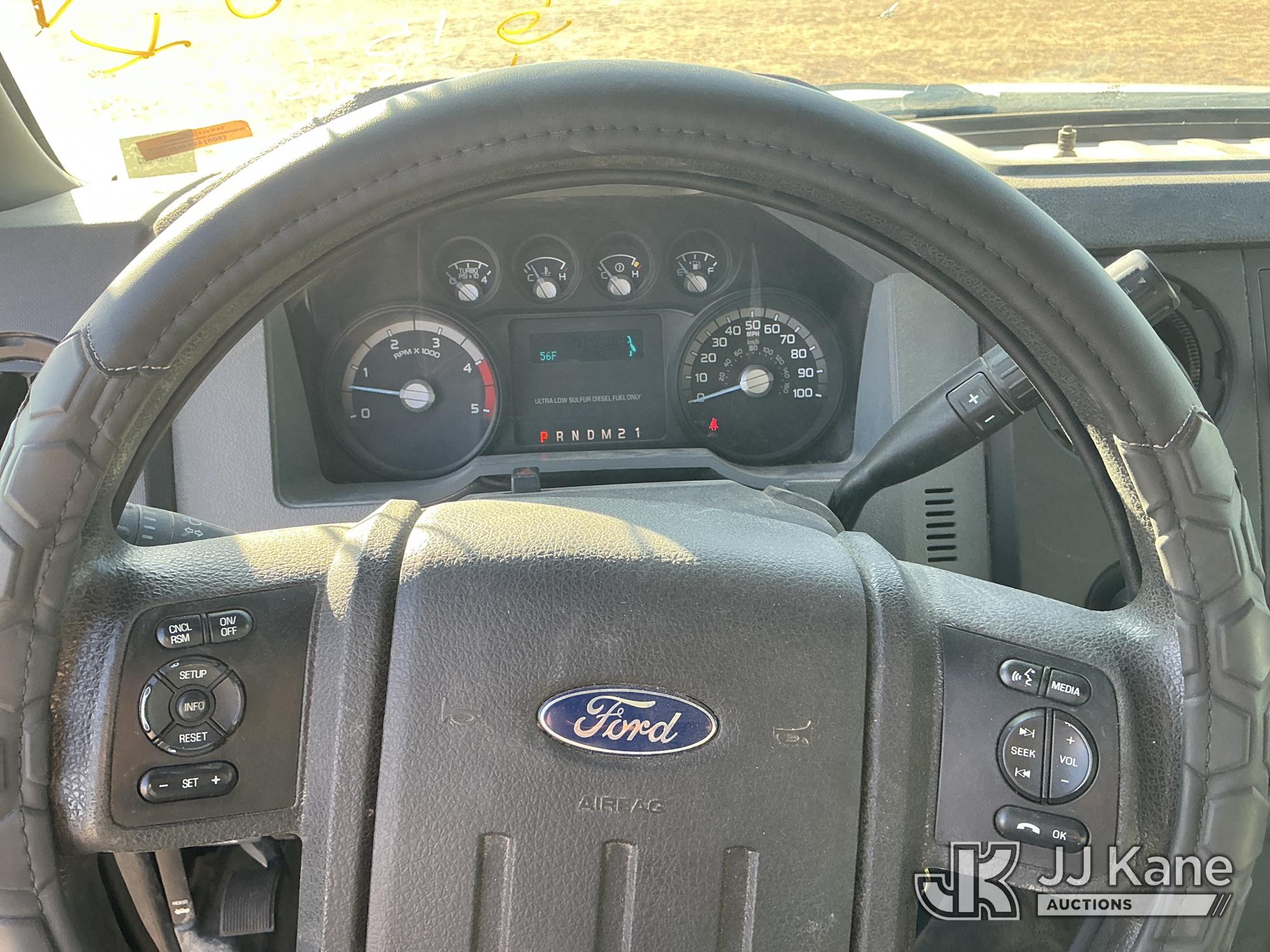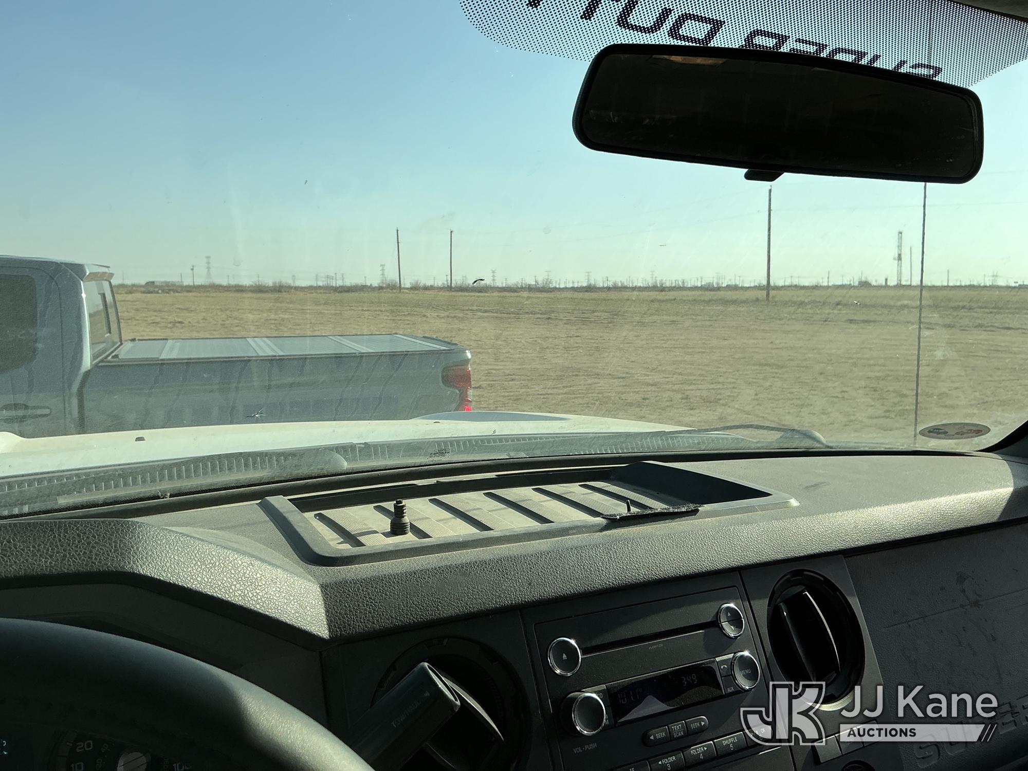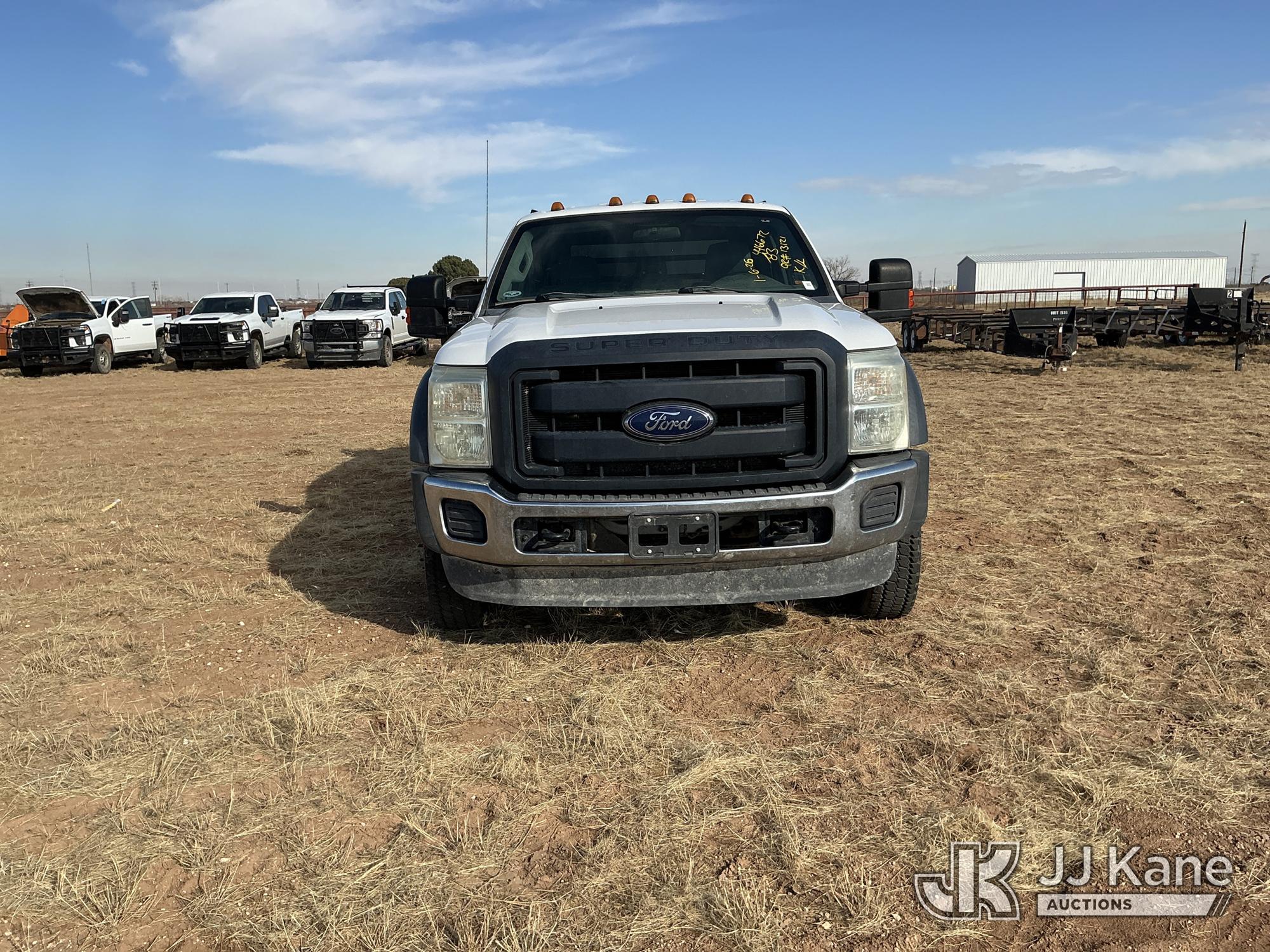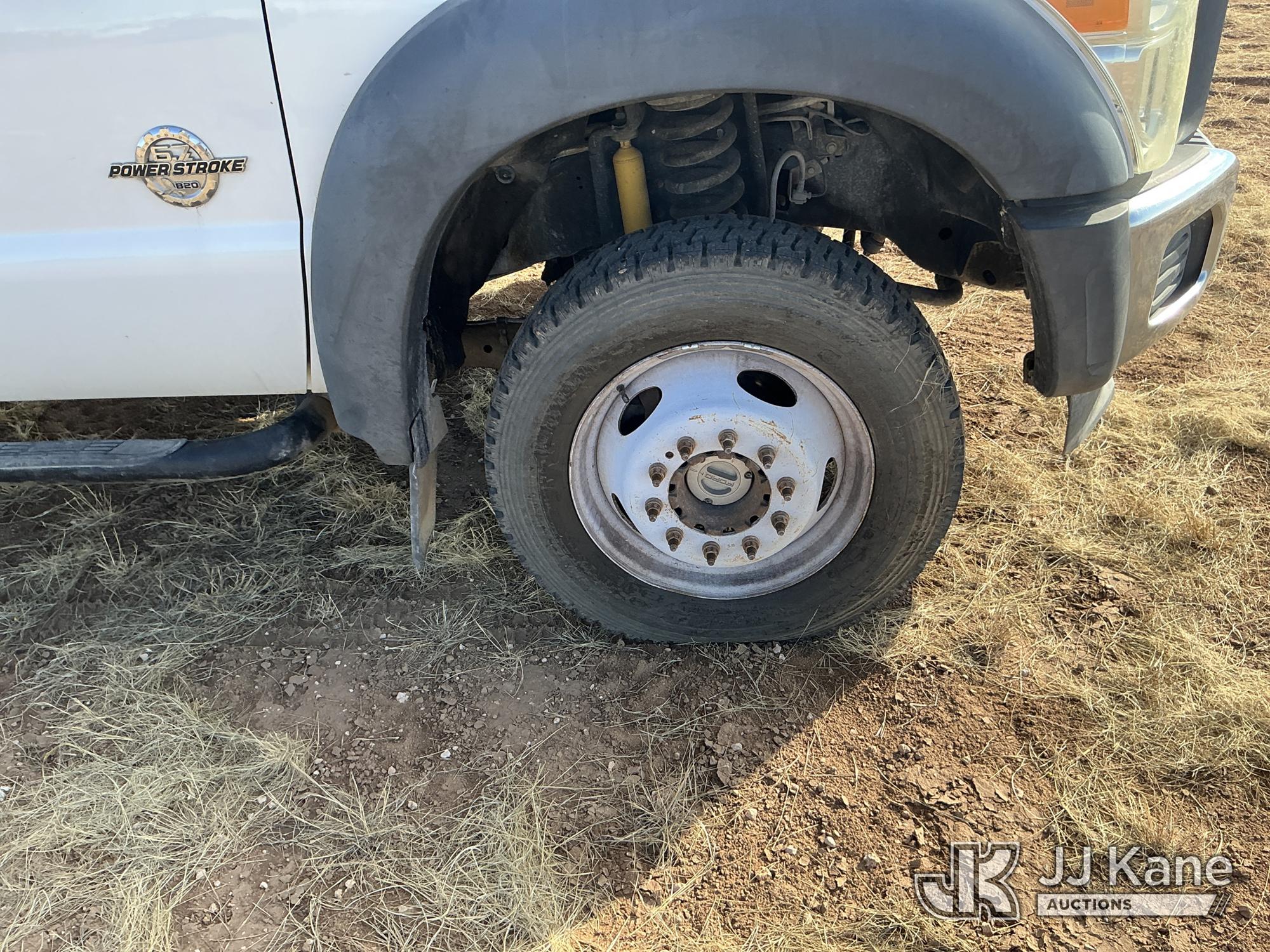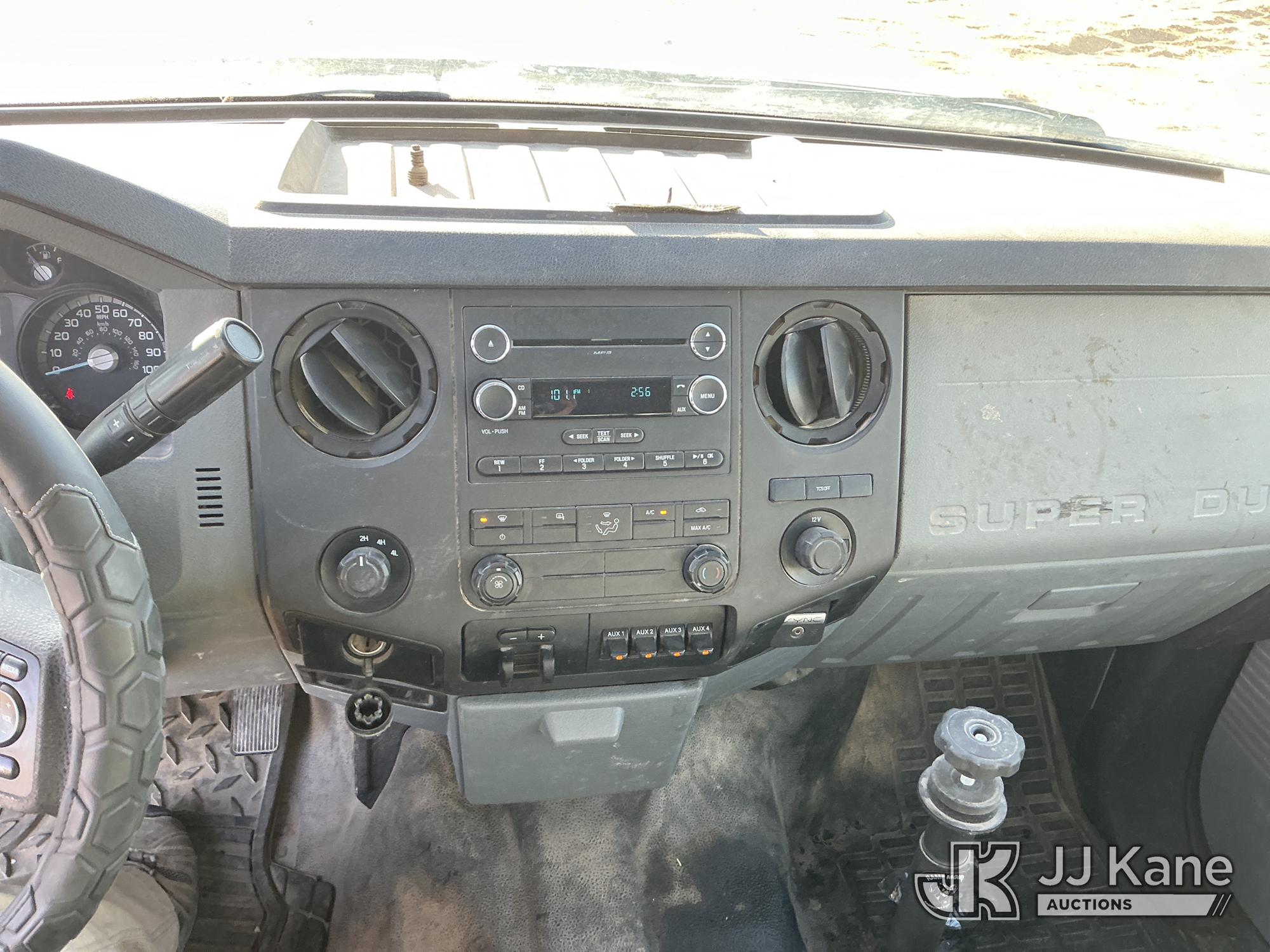 2015 Ford F-550 4WD Crew-Cab Flatbed/Service Truck, 6.7L diesel, Auto, A/C, with fuel transfer tank, (117,889 miles) (Runs & Moves) (Electrical Cables Are Out & Disarrayed In The Back Seat, Windshield Cracked, Paint & Body Damage, Passenger Side Cargo Toolbox Does Not Close. Unit must be picked up within 10 calendar days or a $39.99/day storage fee and a $22.95 + plus tax impound fee will apply.) (Reads 6,927 hours) This is a Titled Item*