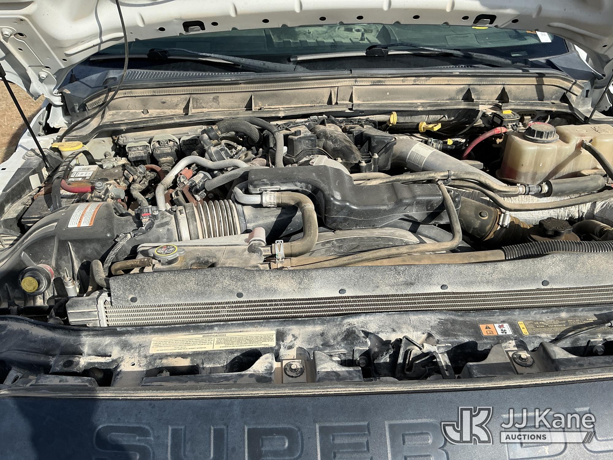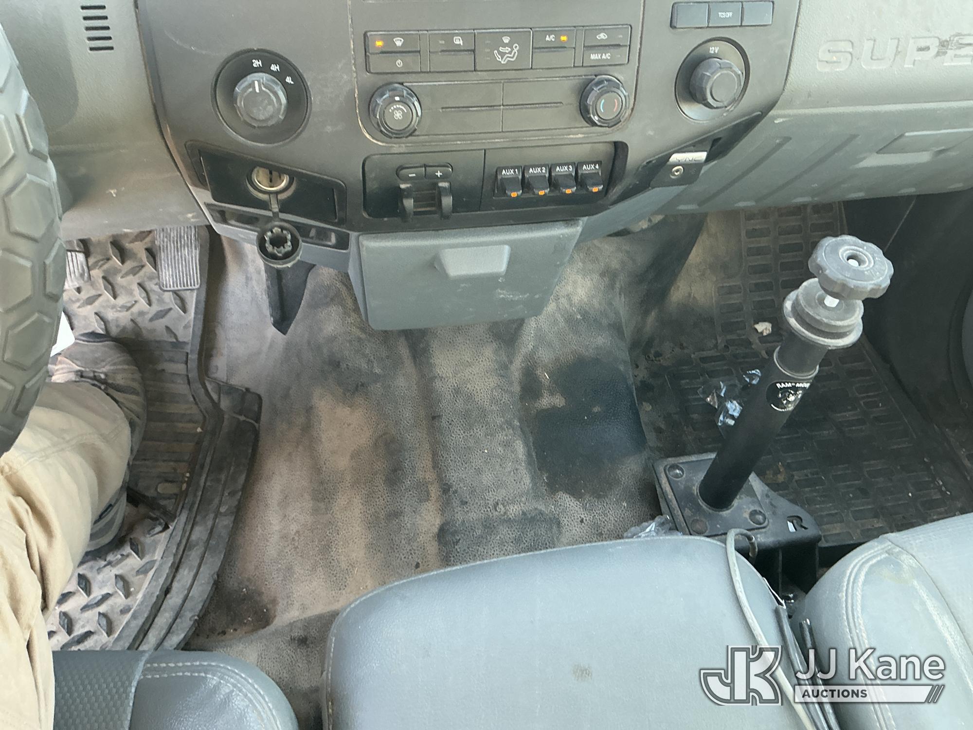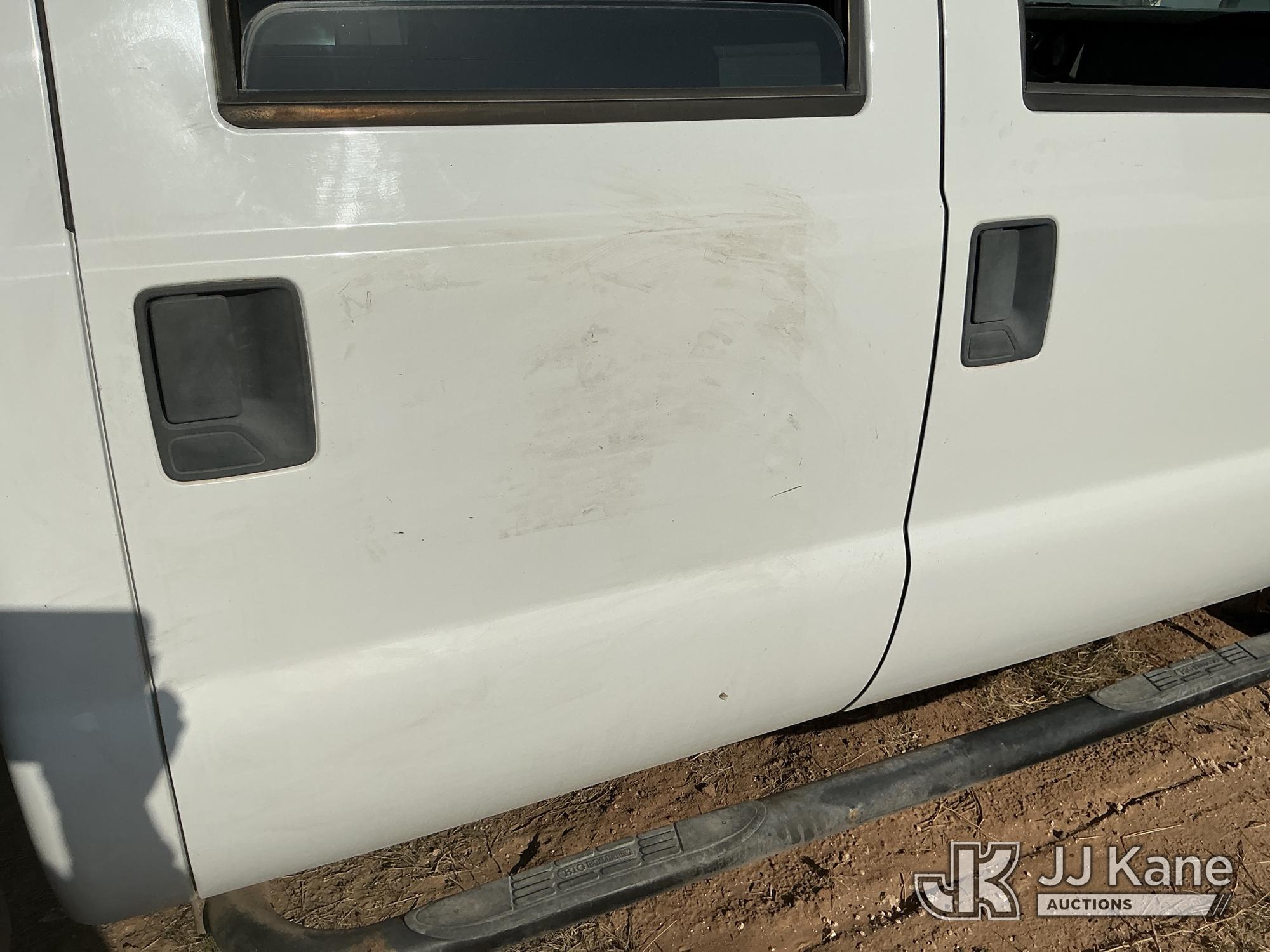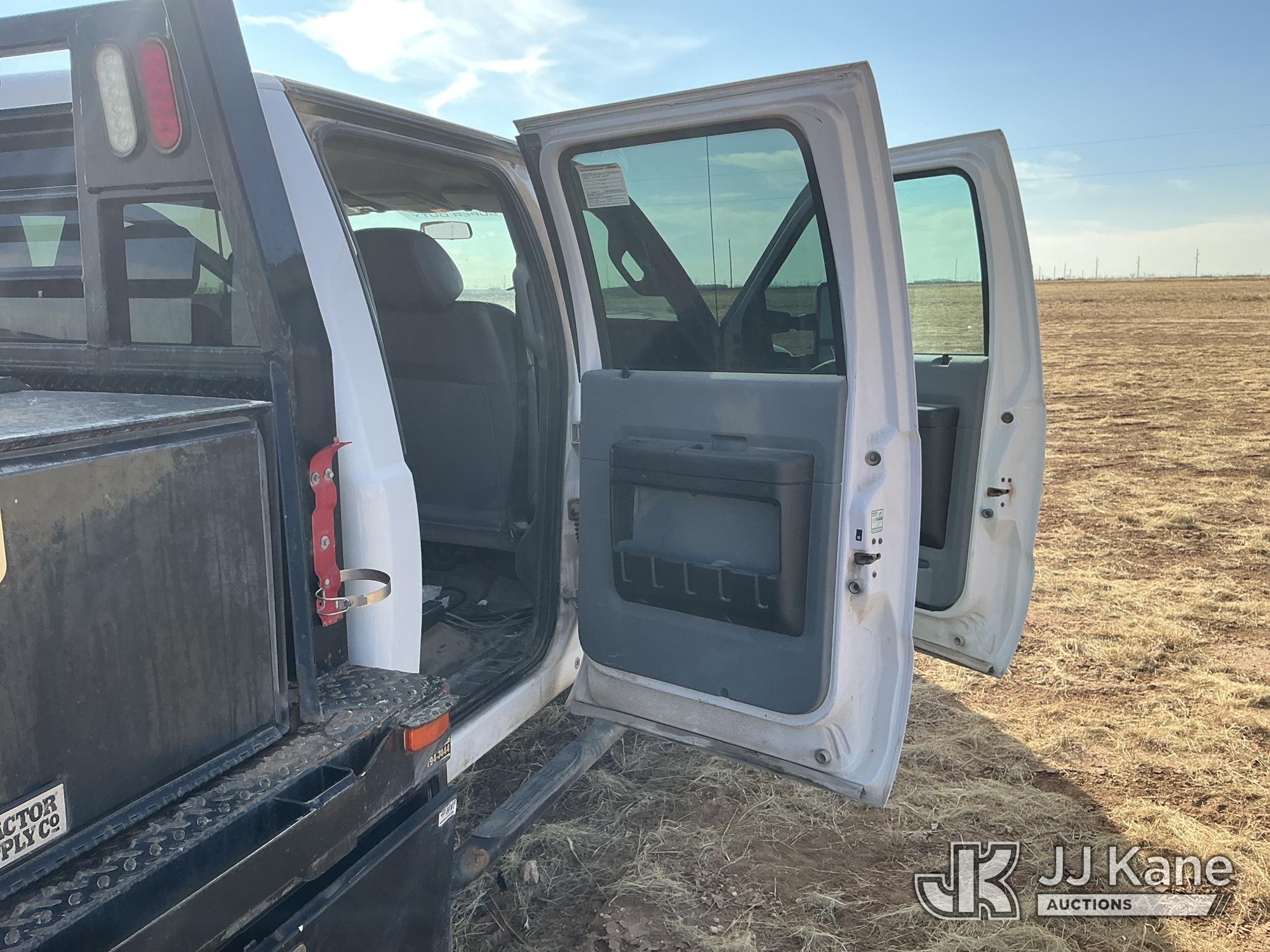 2015 Ford F-550 4WD Crew-Cab Flatbed/Service Truck, 6.7L diesel, Auto, A/C, with fuel transfer tank, (117,889 miles) (Runs & Moves) (Electrical Cables Are Out & Disarrayed In The Back Seat, Windshield Cracked, Paint & Body Damage, Passenger Side Cargo Toolbox Does Not Close. Unit must be picked up within 10 calendar days or a $39.99/day storage fee and a $22.95 + plus tax impound fee will apply.) (Reads 6,927 hours) This is a Titled Item*