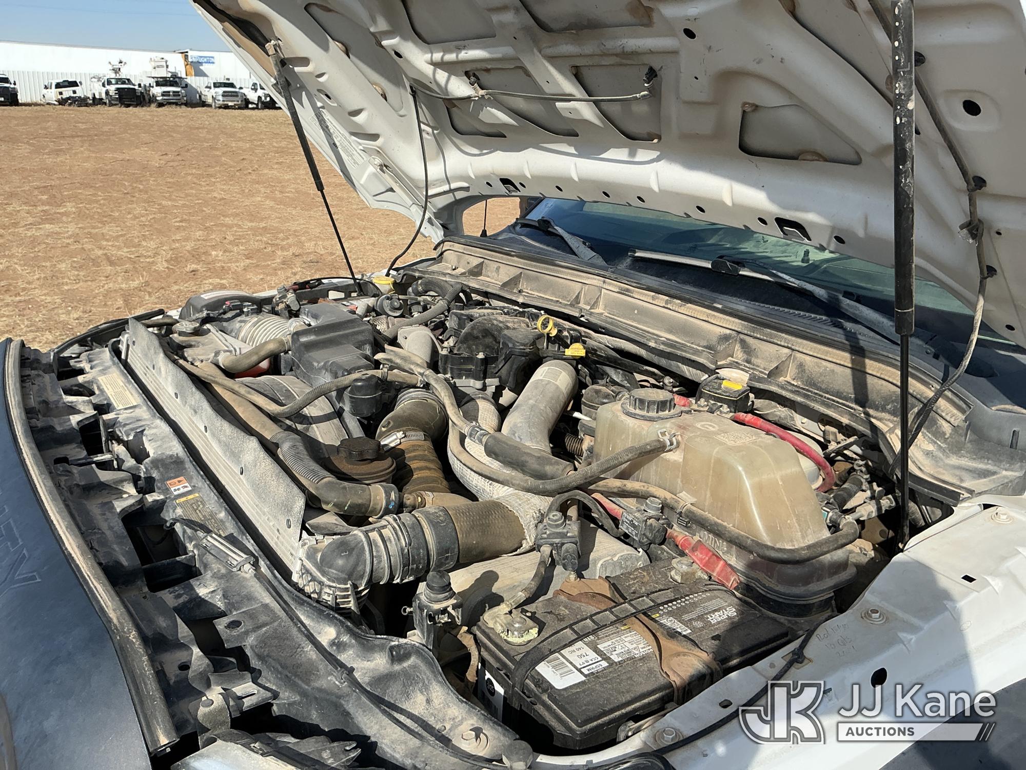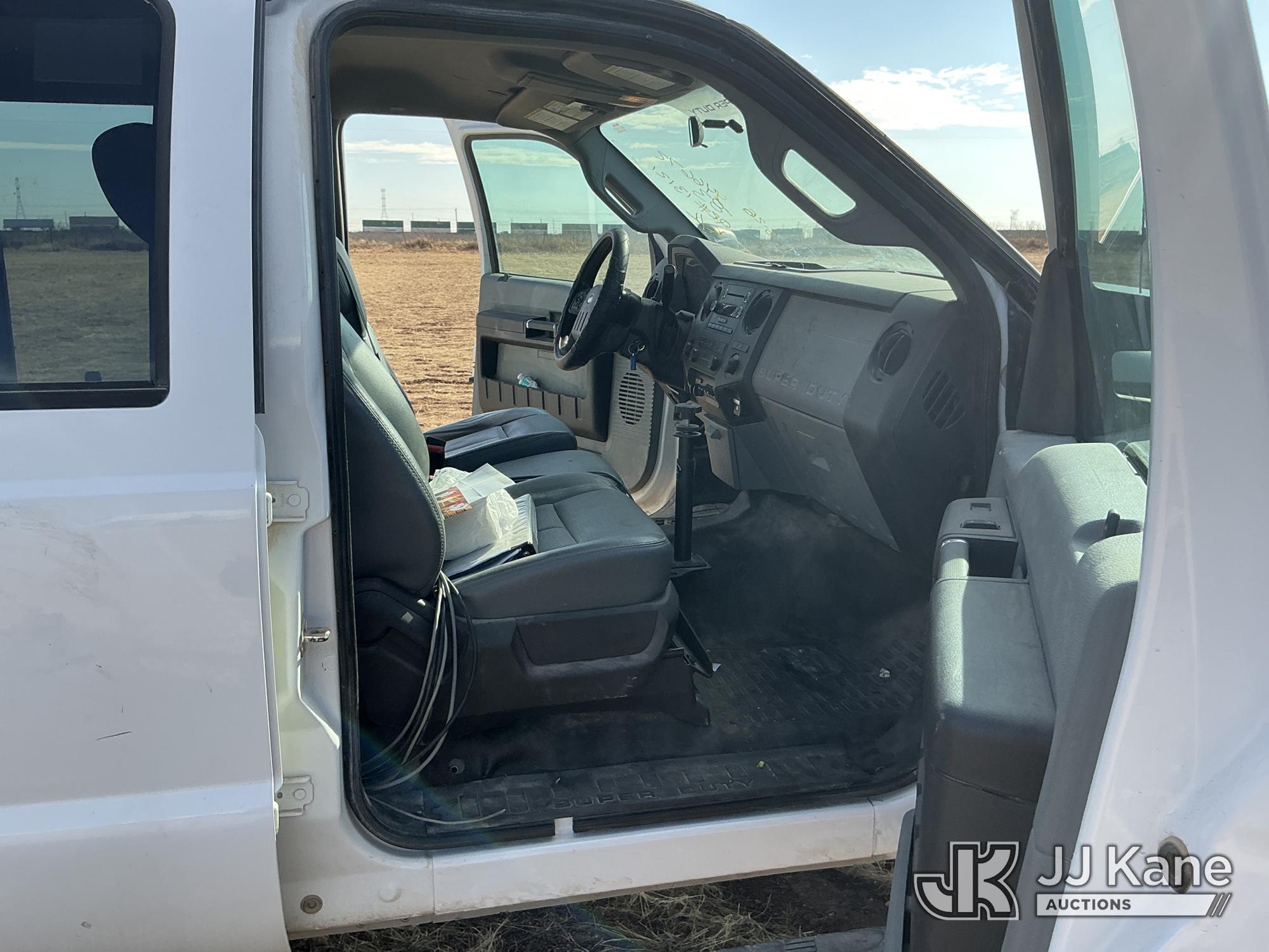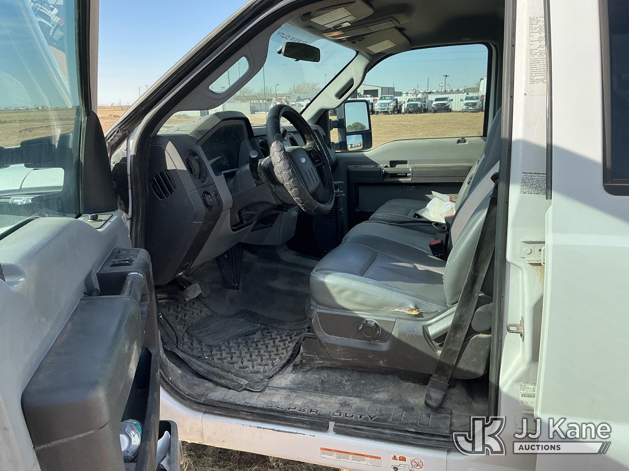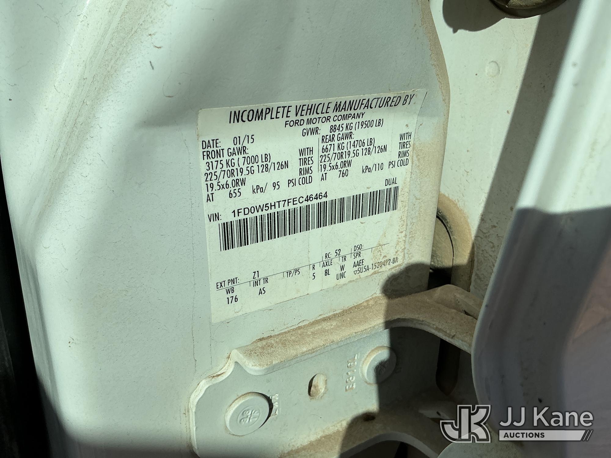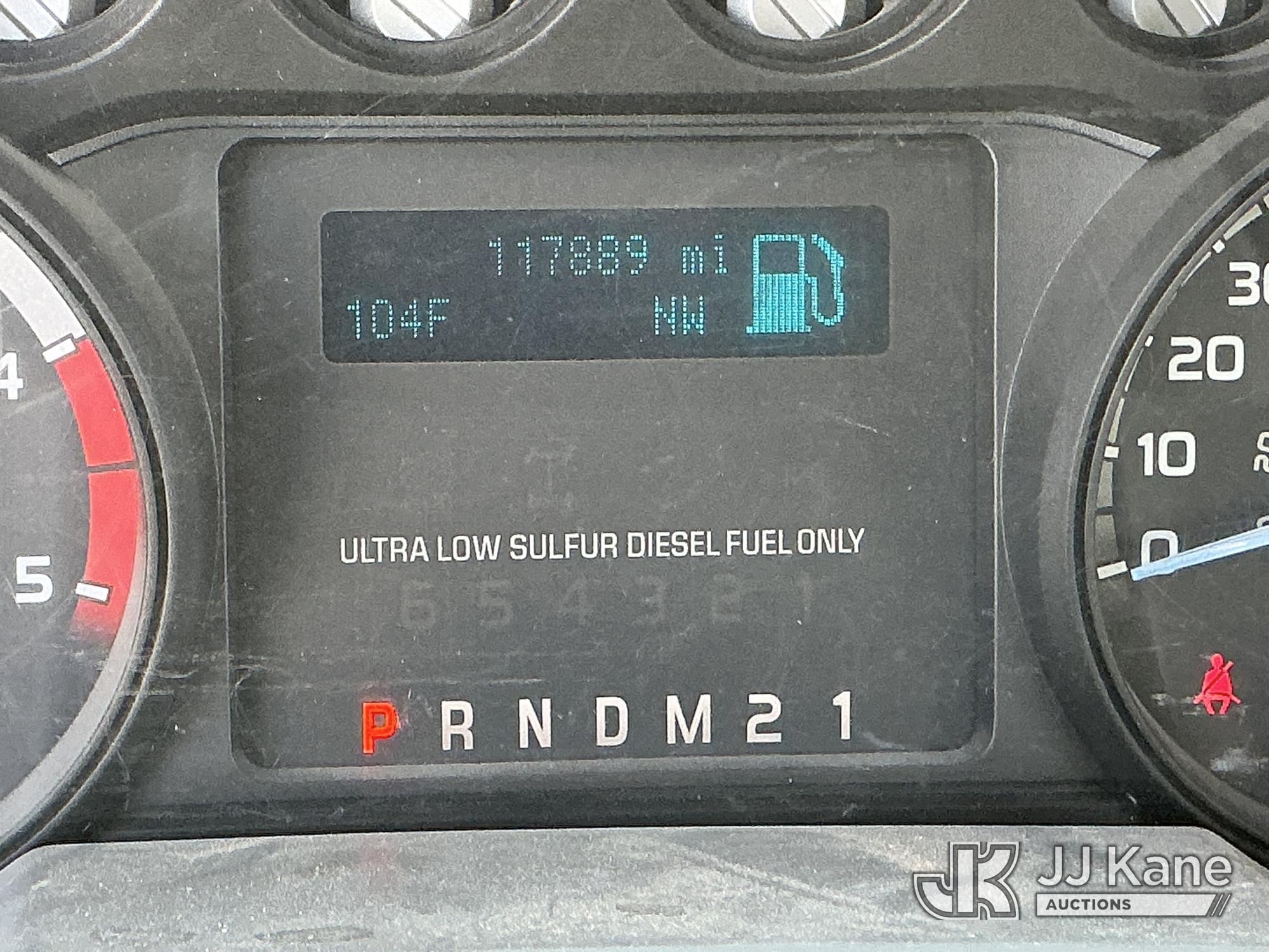 2015 Ford F-550 4WD Crew-Cab Flatbed/Service Truck, 6.7L diesel, Auto, A/C, with fuel transfer tank, (117,889 miles) (Runs & Moves) (Electrical Cables Are Out & Disarrayed In The Back Seat, Windshield Cracked, Paint & Body Damage, Passenger Side Cargo Toolbox Does Not Close. Unit must be picked up within 10 calendar days or a $39.99/day storage fee and a $22.95 + plus tax impound fee will apply.) (Reads 6,927 hours) This is a Titled Item*