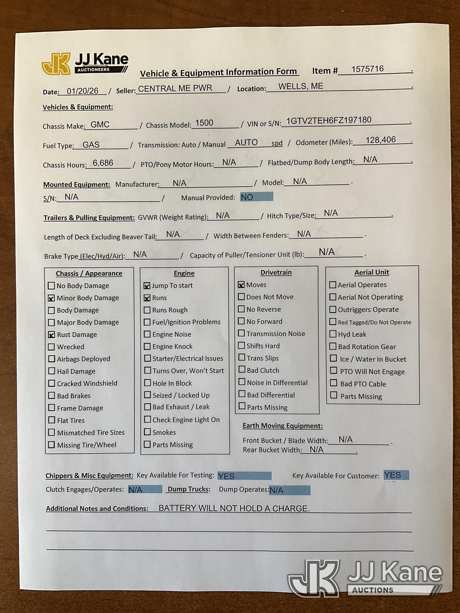 2015 GMC Sierra 1500 4x4 Extended-Cab Pickup Truck, 6-cyl gas, Auto, A/C, (128,406 miles) (Runs & Moves) (Jump To Start, Minor Body Damage, Rust Damage) (Removal is by Appointment Only, Buyer MUST make a appointment prior to picking up, Buyer/Transporter Must have PAID IN FULL RELEASE. No onsite assistance available, Please Come prepared.) This is a Titled Item*
