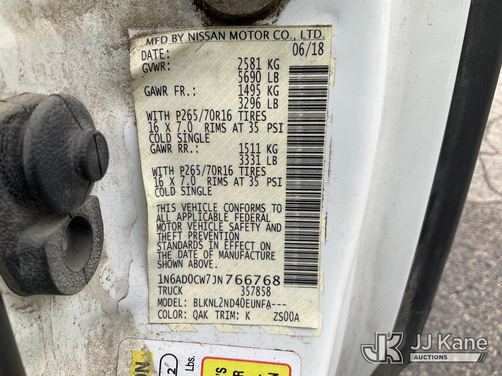 2018 Nissan Frontier Extended-Cab Pickup Truck, 6-cyl gas, 4wd, Gas, 5-Speed Automatic, A/C, with utility rack, (176,007 miles) (Runs & Moves) (Major Driver Side Door Damage, Headliner in Bed, Check Engine & ABS Light On) (Removal is by Appointment Only, Buyer MUST make a appointment prior to picking up, Buyer/Transporter Must have PAID IN FULL RELEASE. No onsite assistance available, Please Come prepared.) This is a Titled Item*