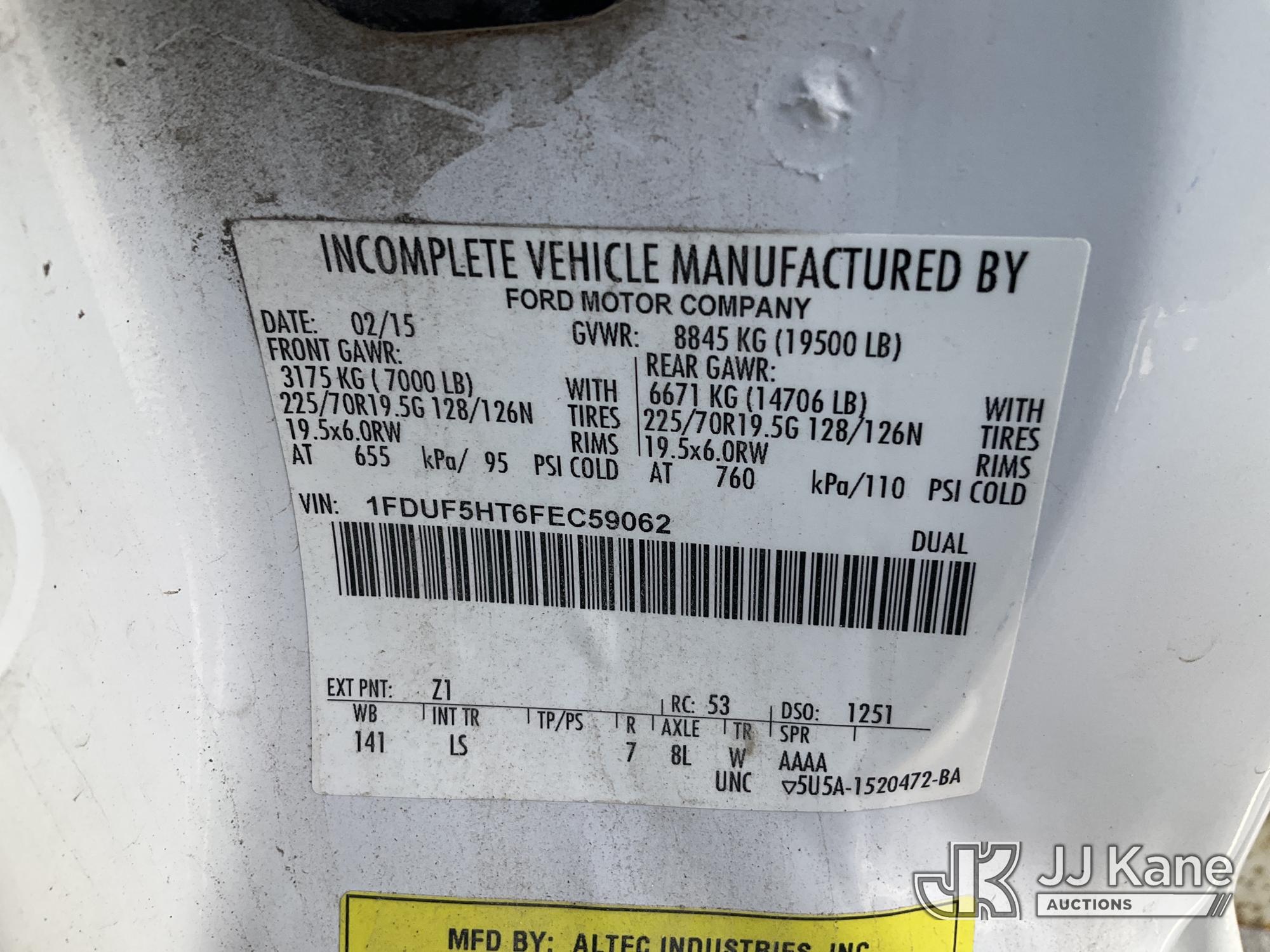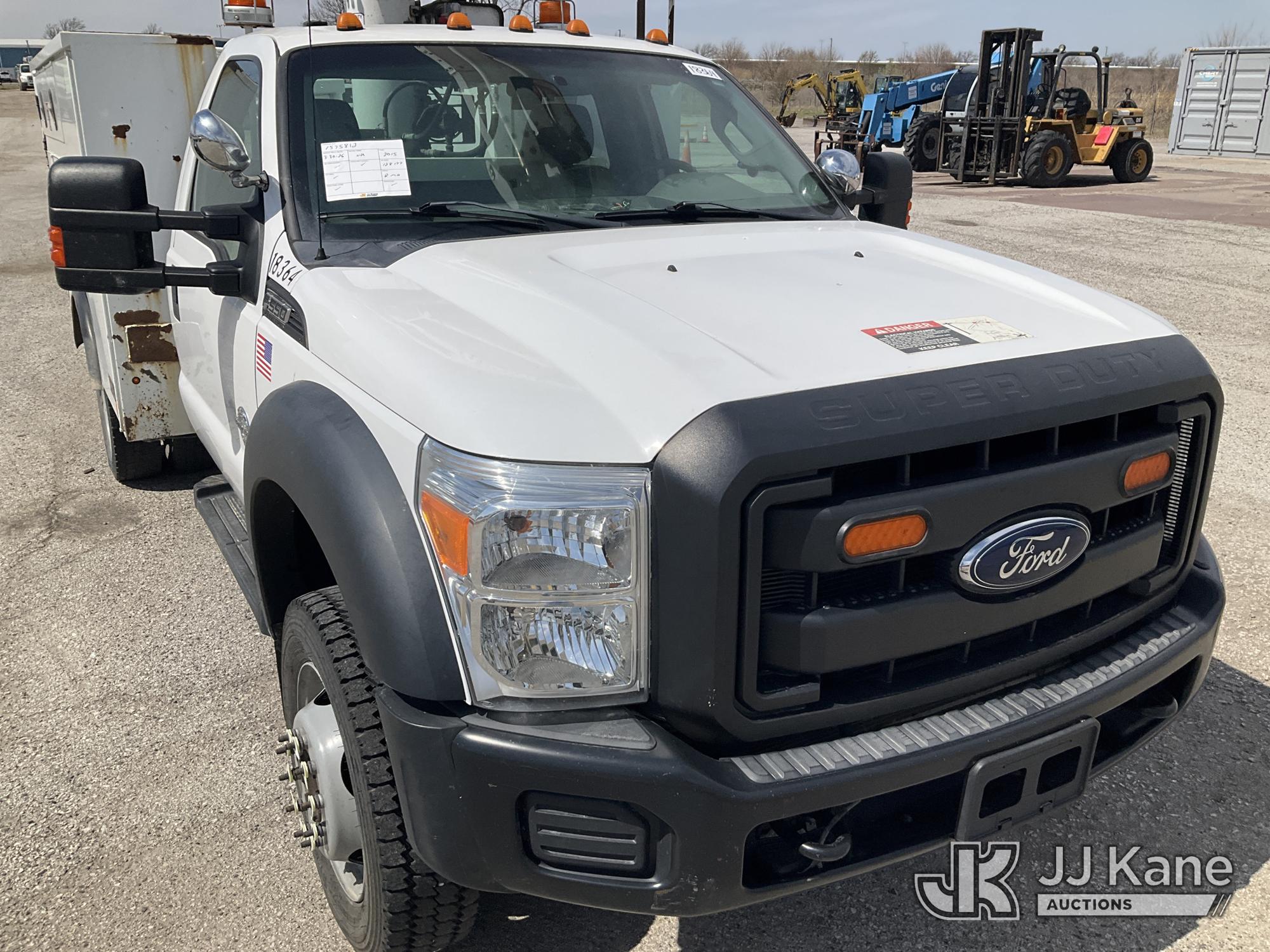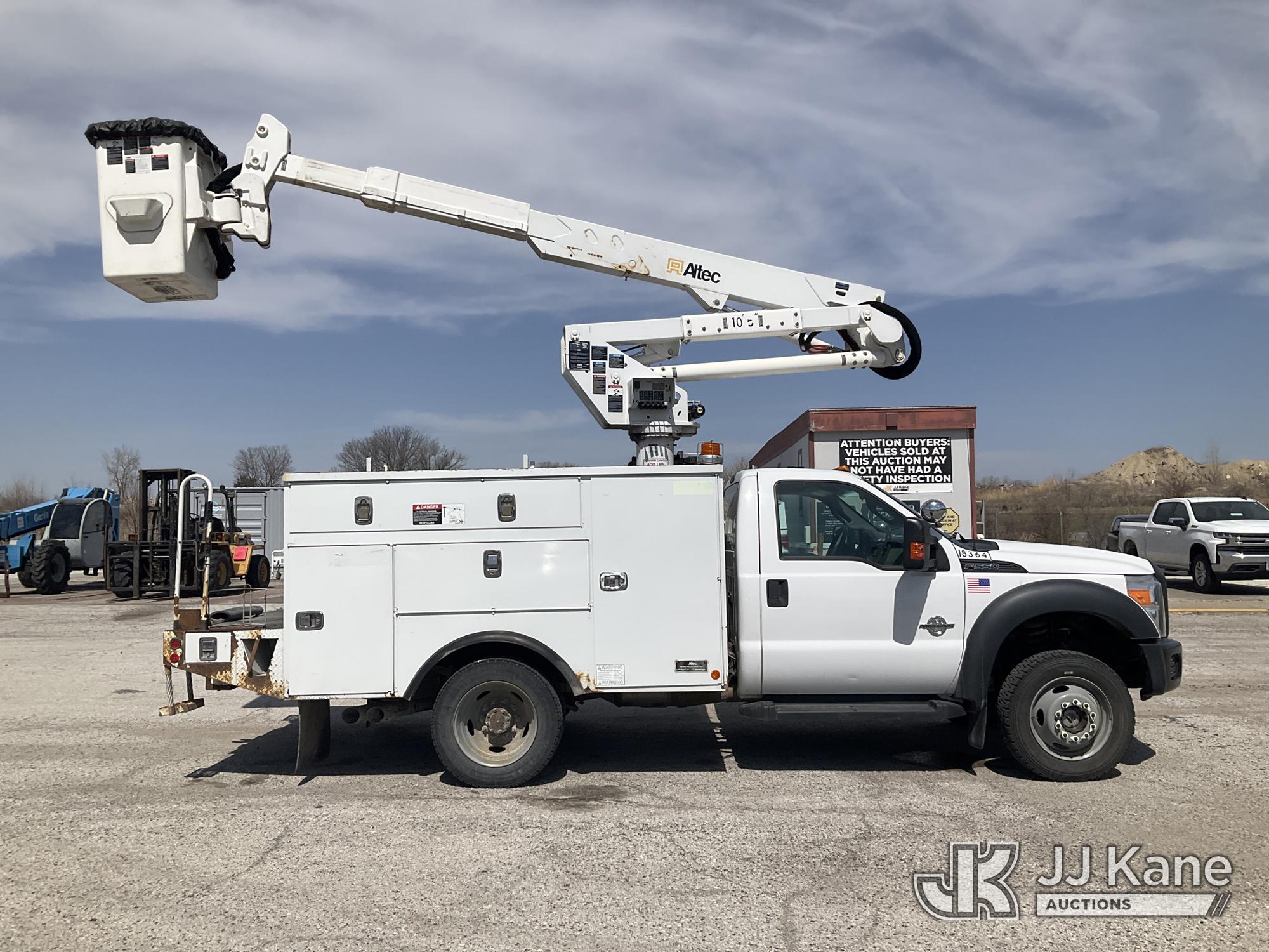 Altec AT37G, 42 ft, Articulating & Telescopic Bucket s/n 0615DE17958, with single man bucket, mounted behind cab on 2015 Ford F-550 Service Truck, 6.7L diesel, 4wd, Auto, A/C, (128,177 miles) (Runs, Moves, & Upper Operates) (Dents On The Hood) (Reads 7,234 hours) This is a Titled Item*